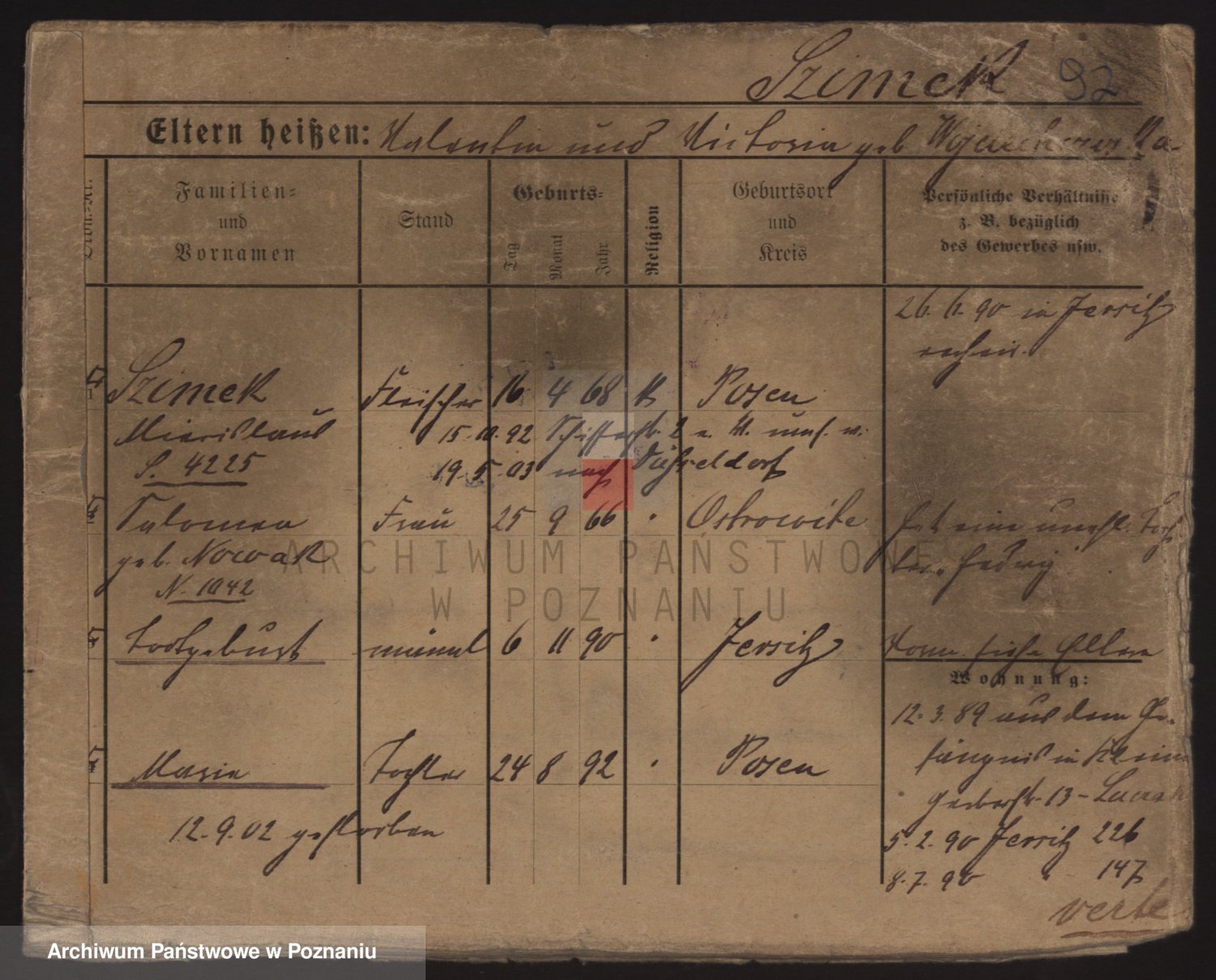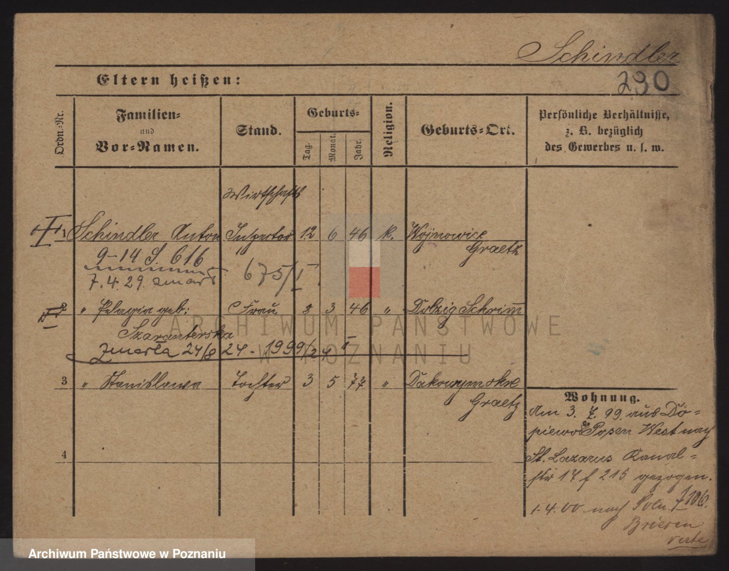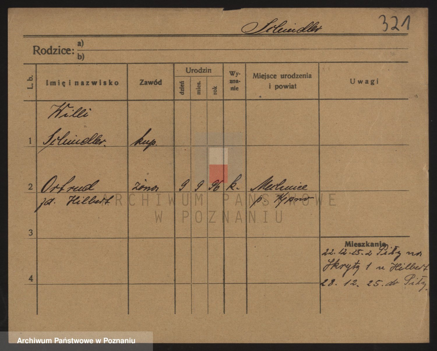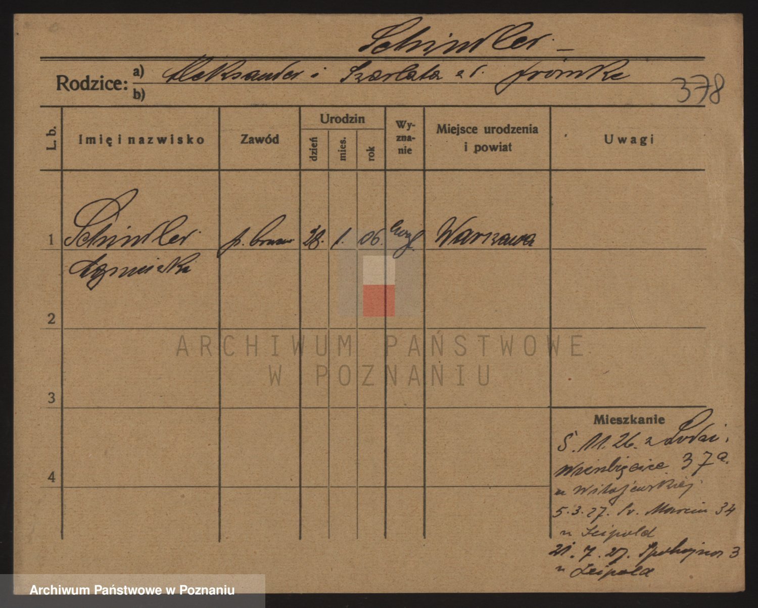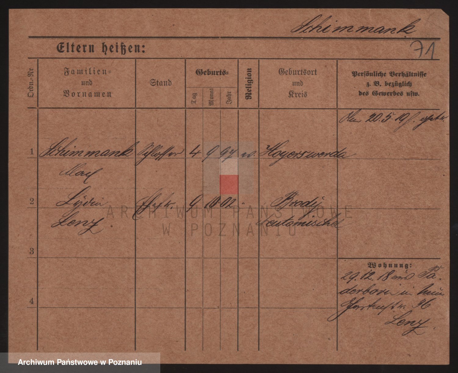 Podgląd karty osobowej dostępny jest po kliknięciu na nazwisko lub ikonkę karty. Można dokonywać powiększenia (ikony na górze) lub przechodzić między kolejnymi skanami (strzałki po bokach).