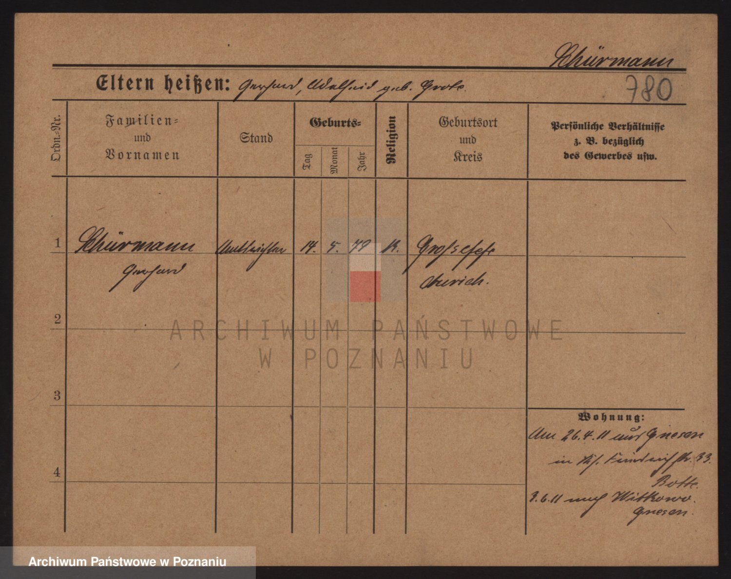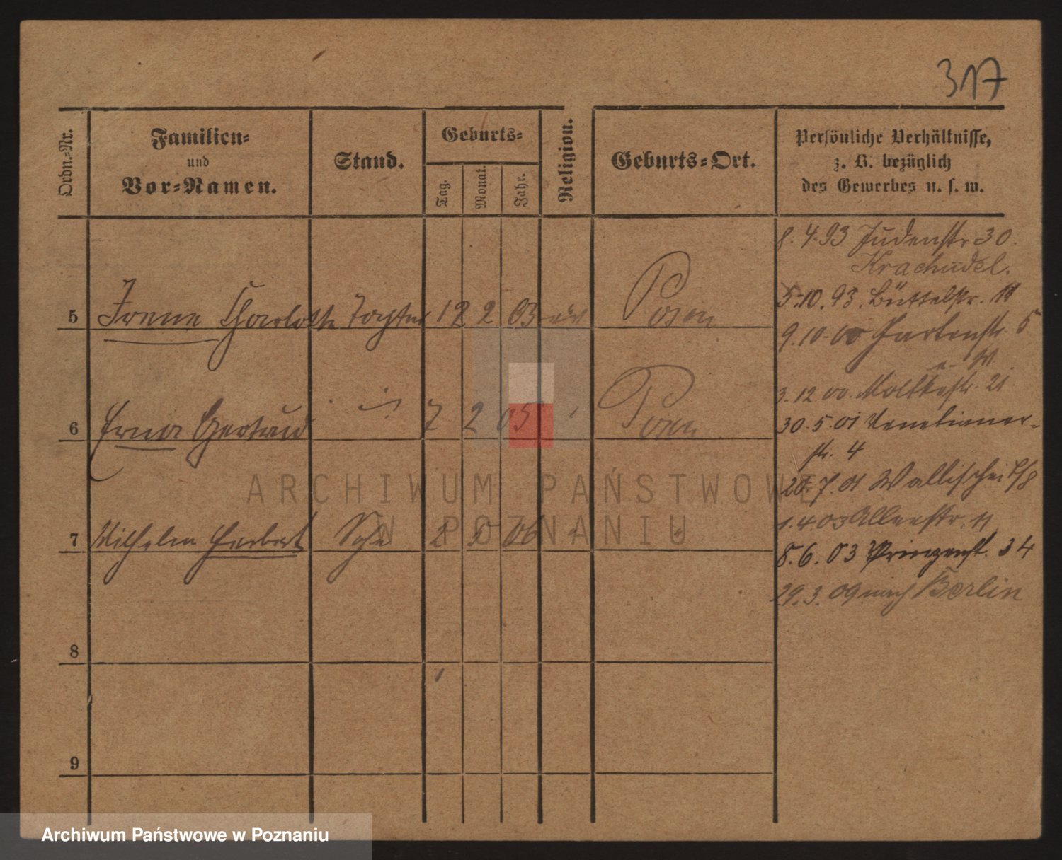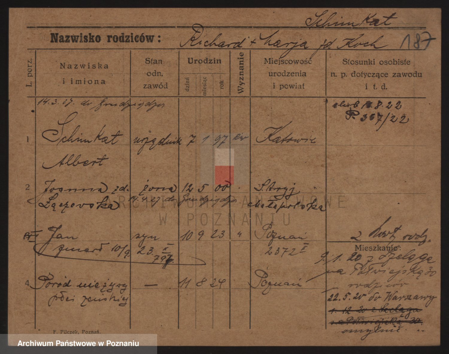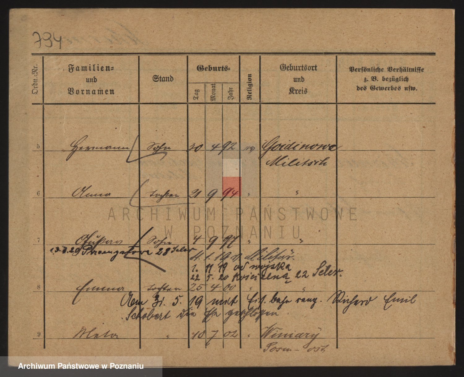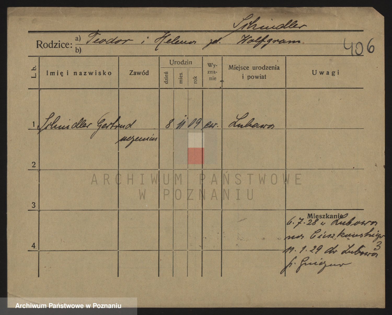 Podgląd karty osobowej dostępny jest po kliknięciu na nazwisko lub ikonkę karty. Można dokonywać powiększenia (ikony na górze) lub przechodzić między kolejnymi skanami (strzałki po bokach).