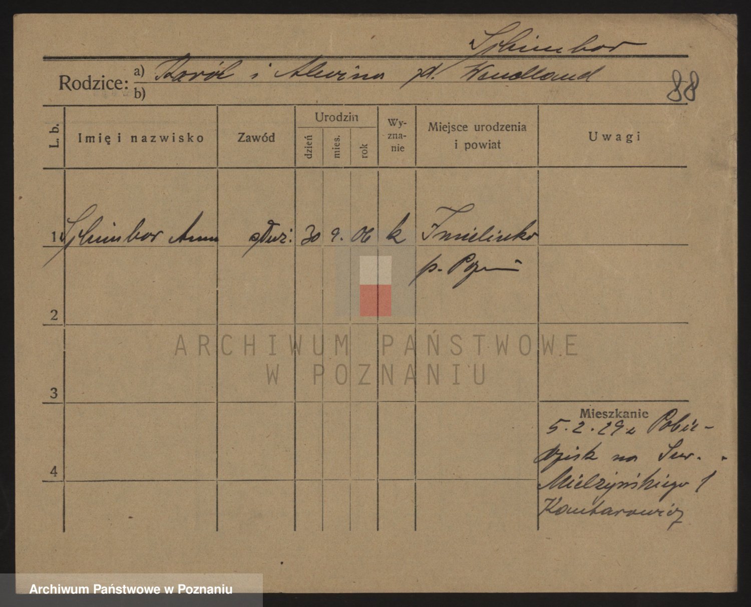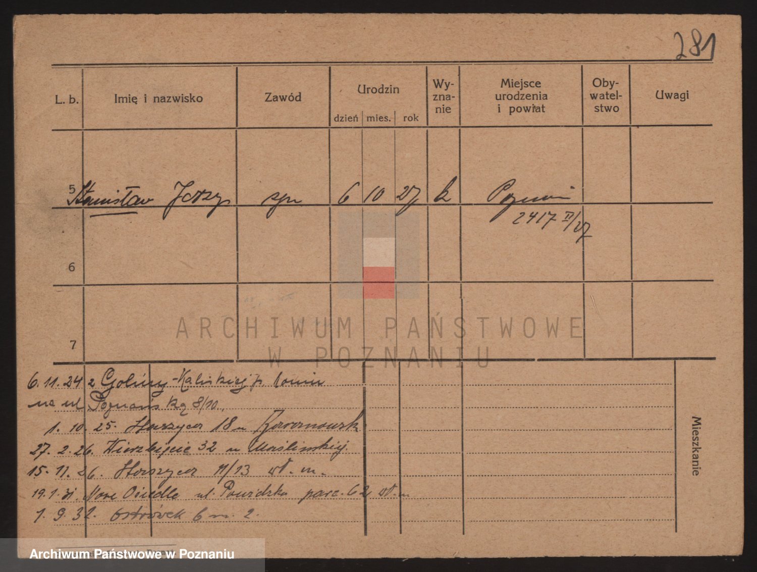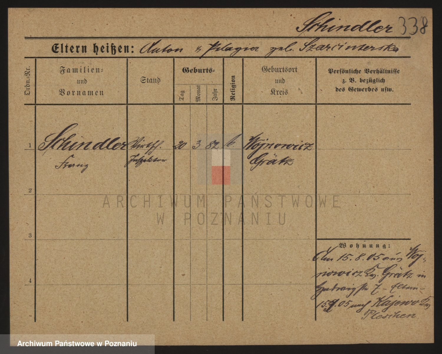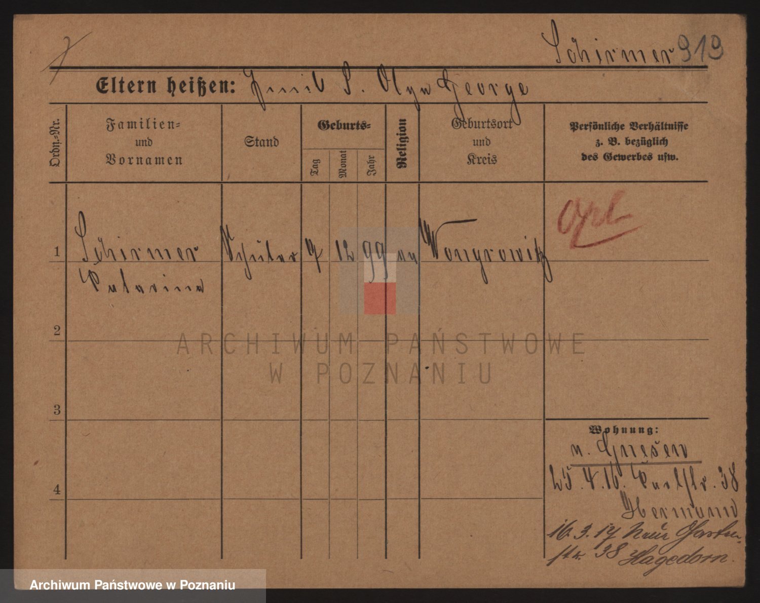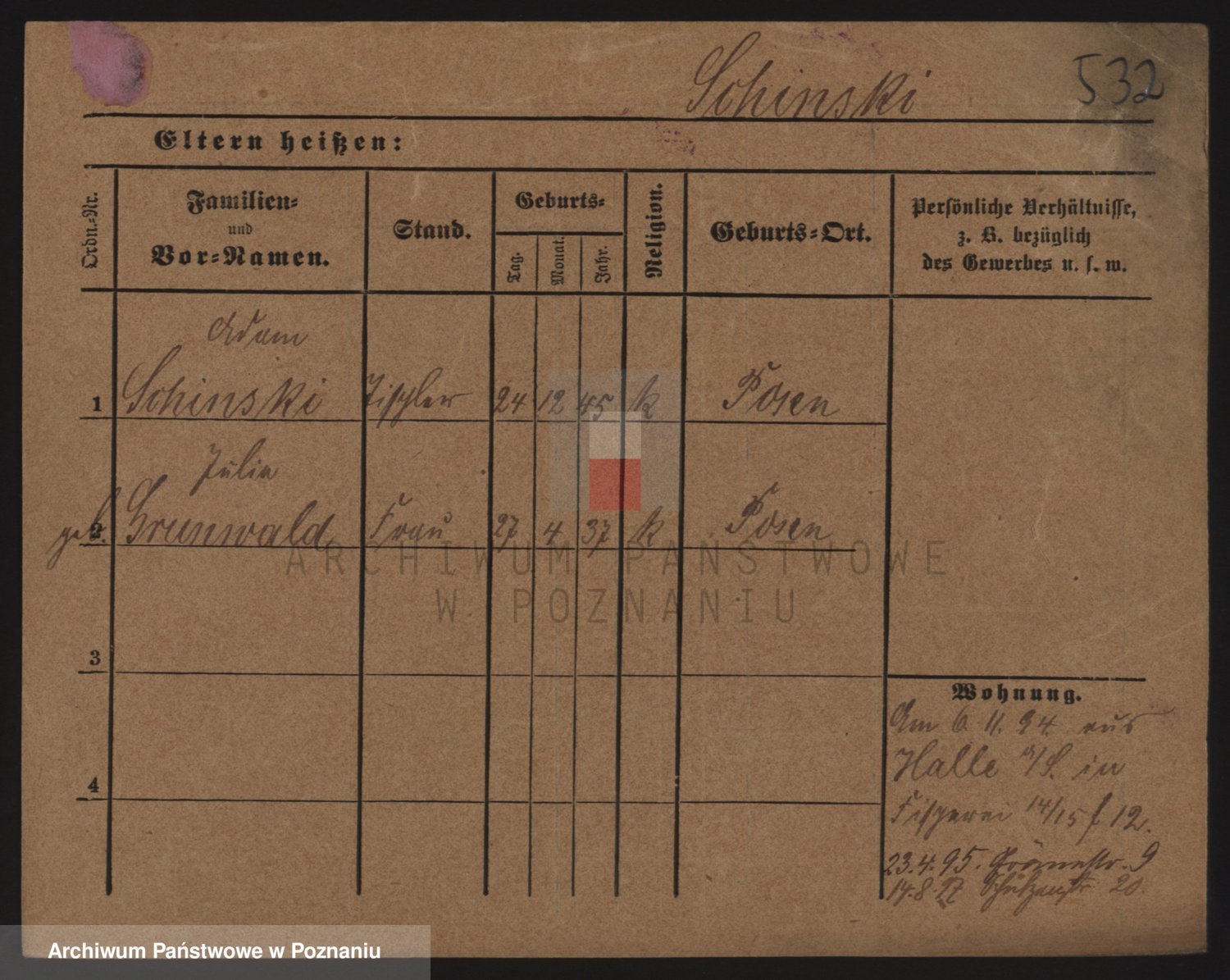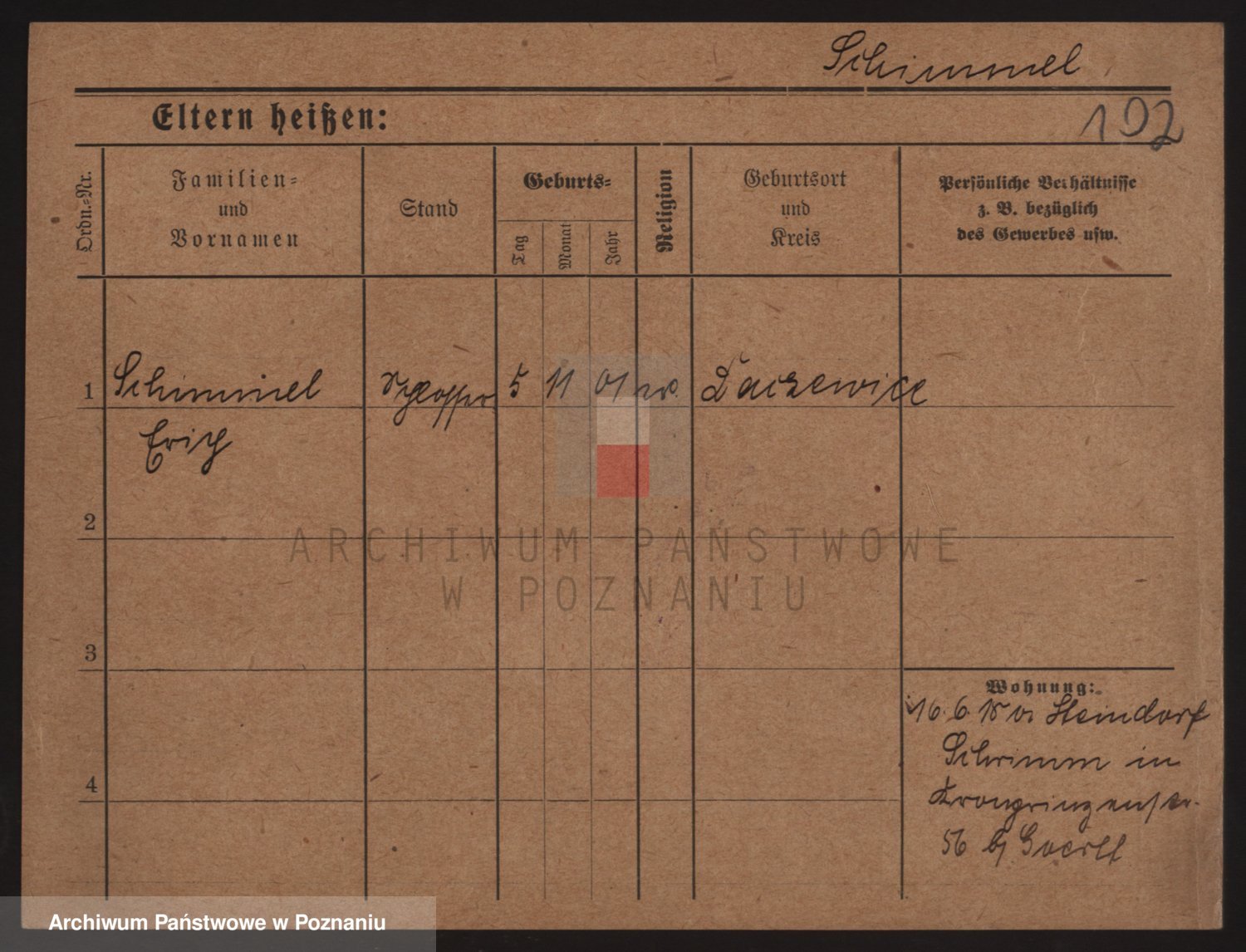 Podgląd karty osobowej dostępny jest po kliknięciu na nazwisko lub ikonkę karty. Można dokonywać powiększenia (ikony na górze) lub przechodzić między kolejnymi skanami (strzałki po bokach).