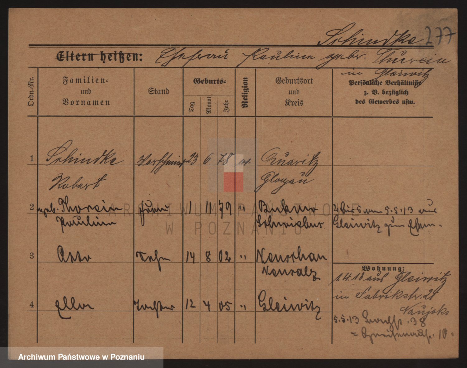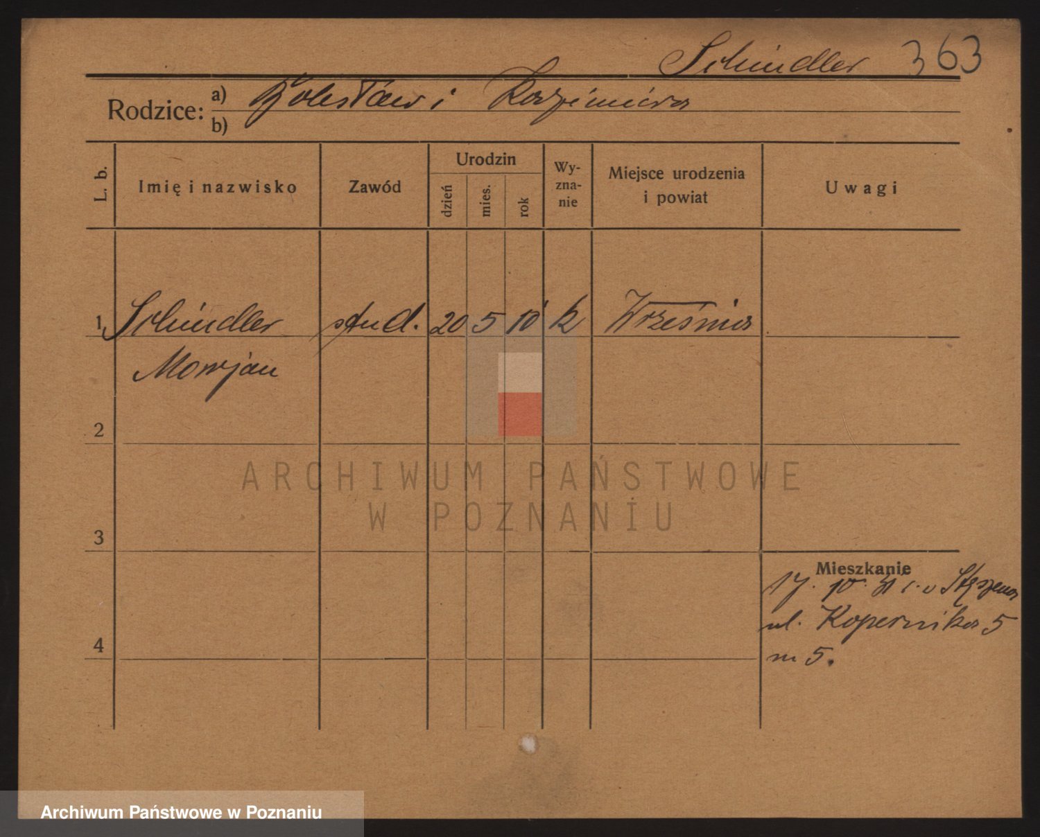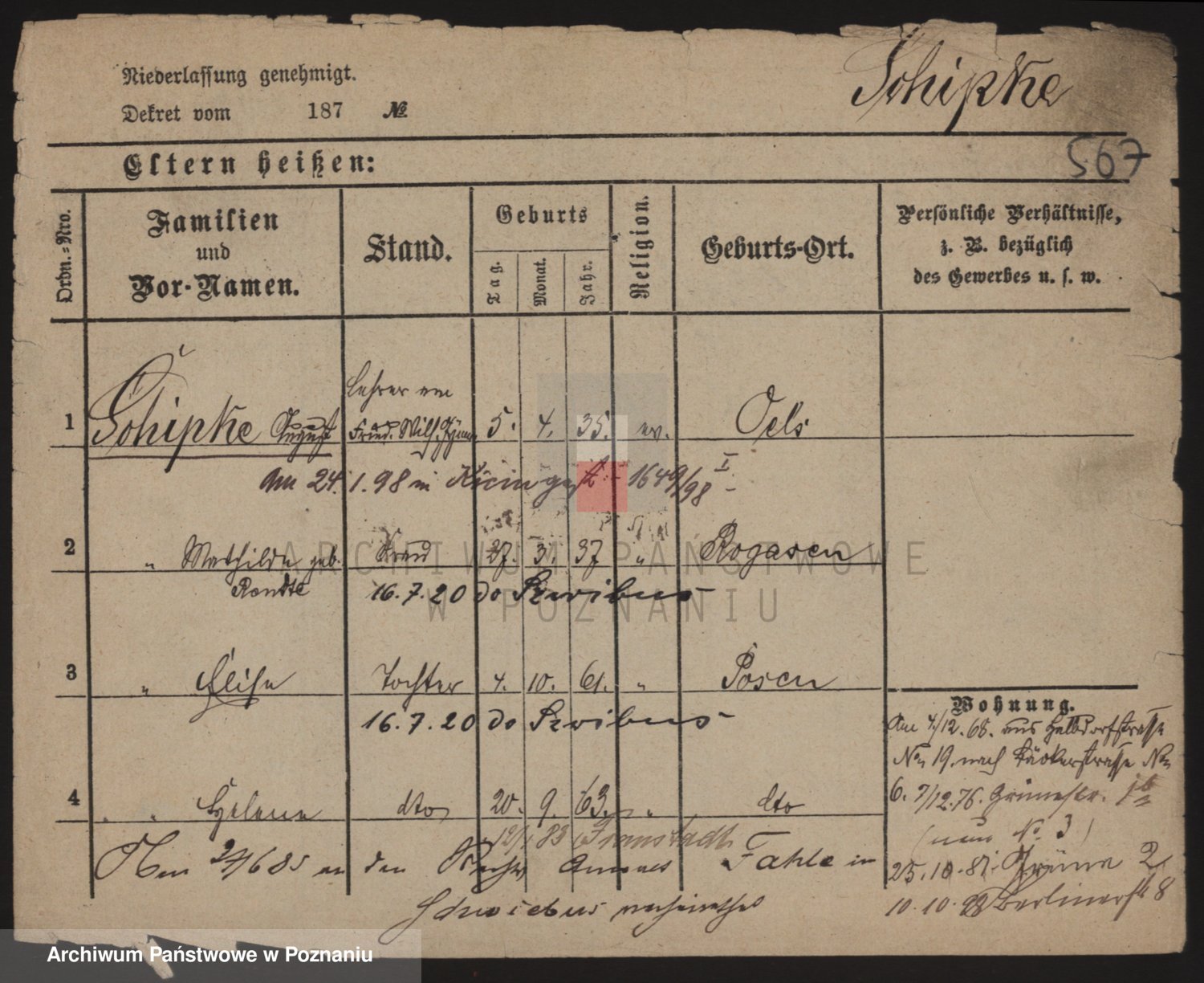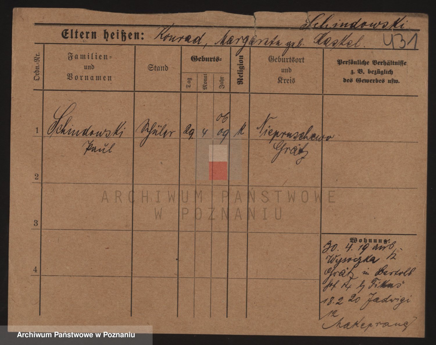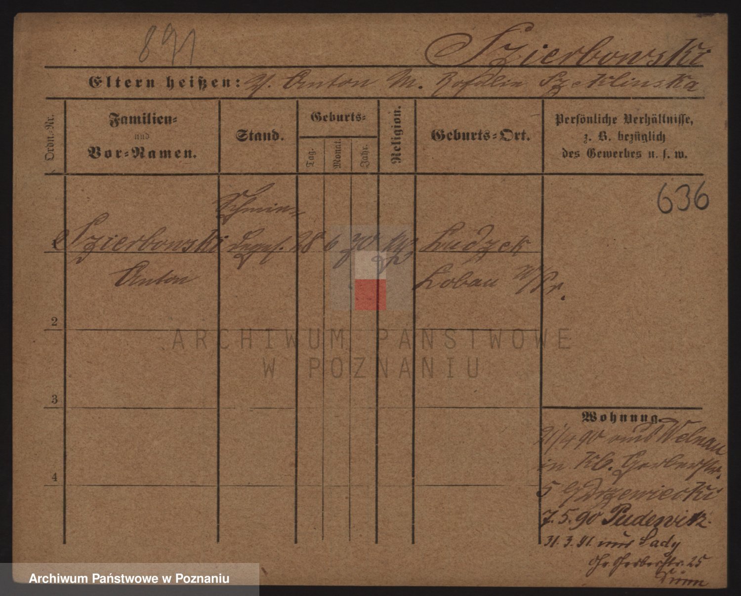 Podgląd karty osobowej dostępny jest po kliknięciu na nazwisko lub ikonkę karty. Można dokonywać powiększenia (ikony na górze) lub przechodzić między kolejnymi skanami (strzałki po bokach).