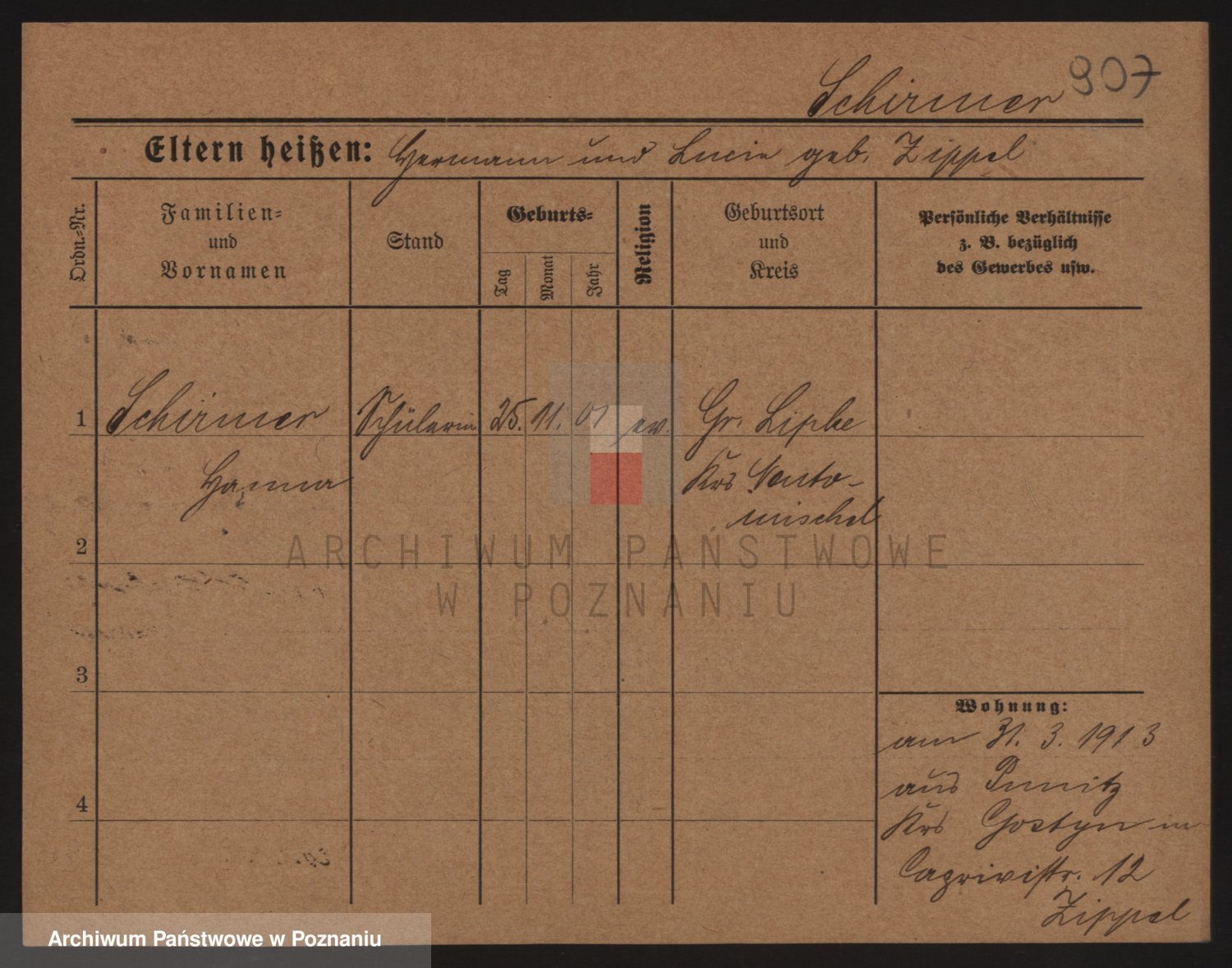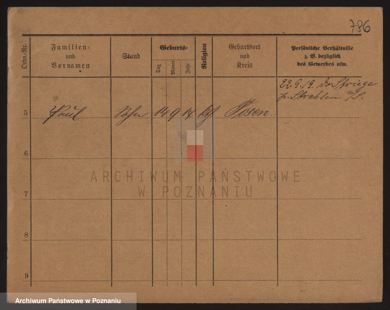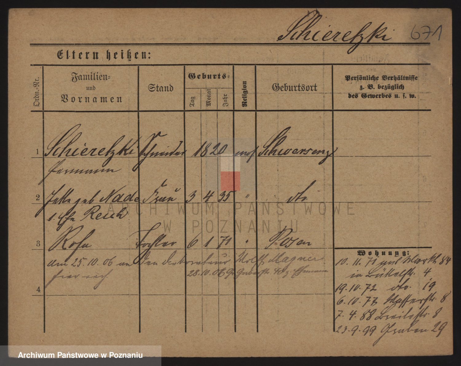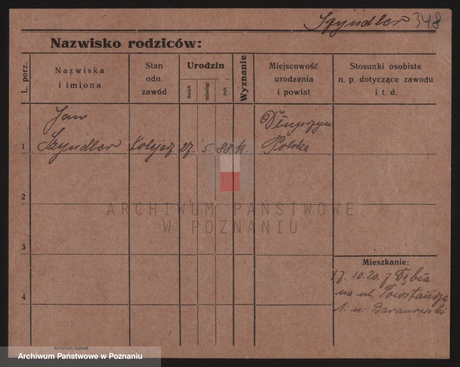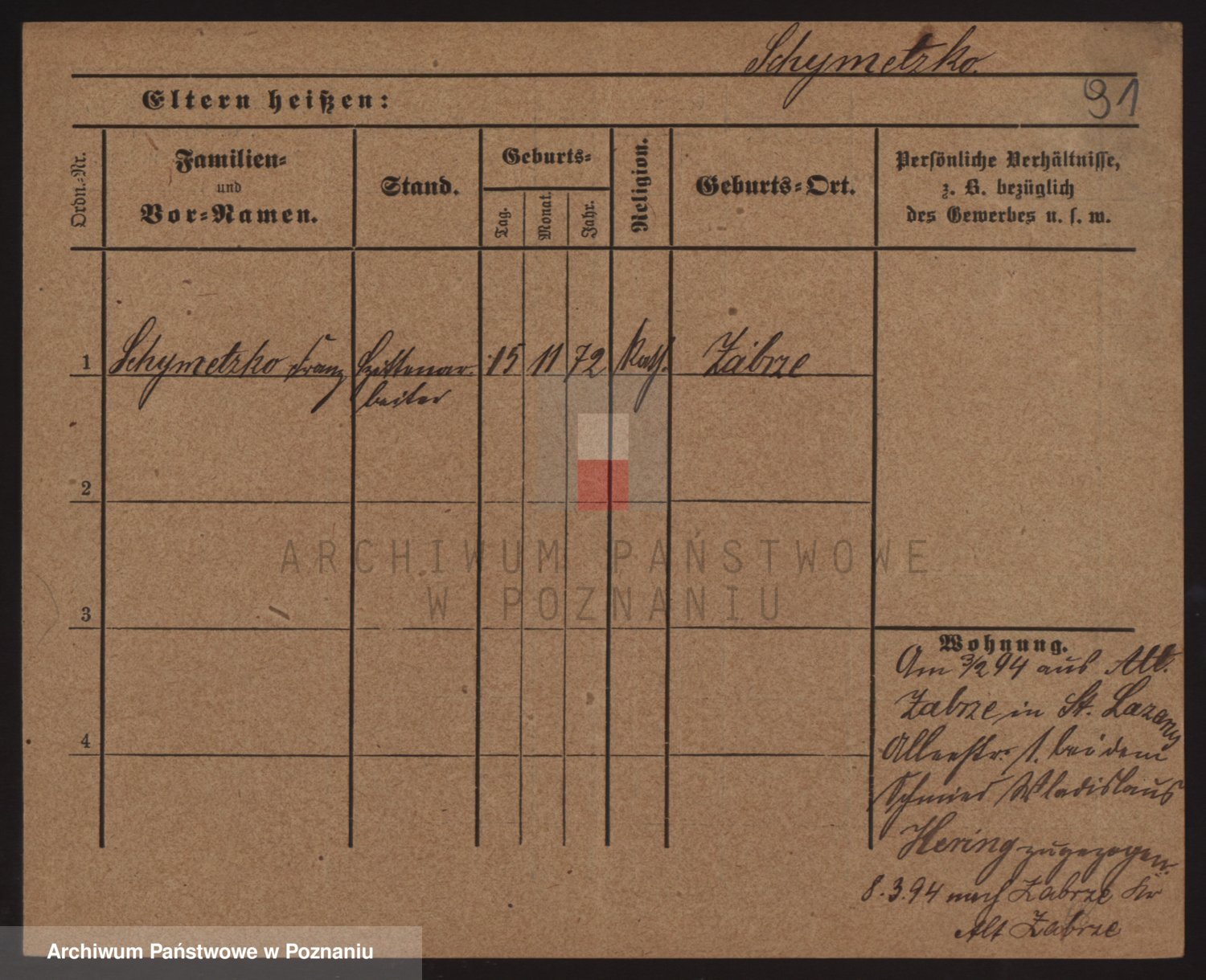 Podgląd karty osobowej dostępny jest po kliknięciu na nazwisko lub ikonkę karty. Można dokonywać powiększenia (ikony na górze) lub przechodzić między kolejnymi skanami (strzałki po bokach).