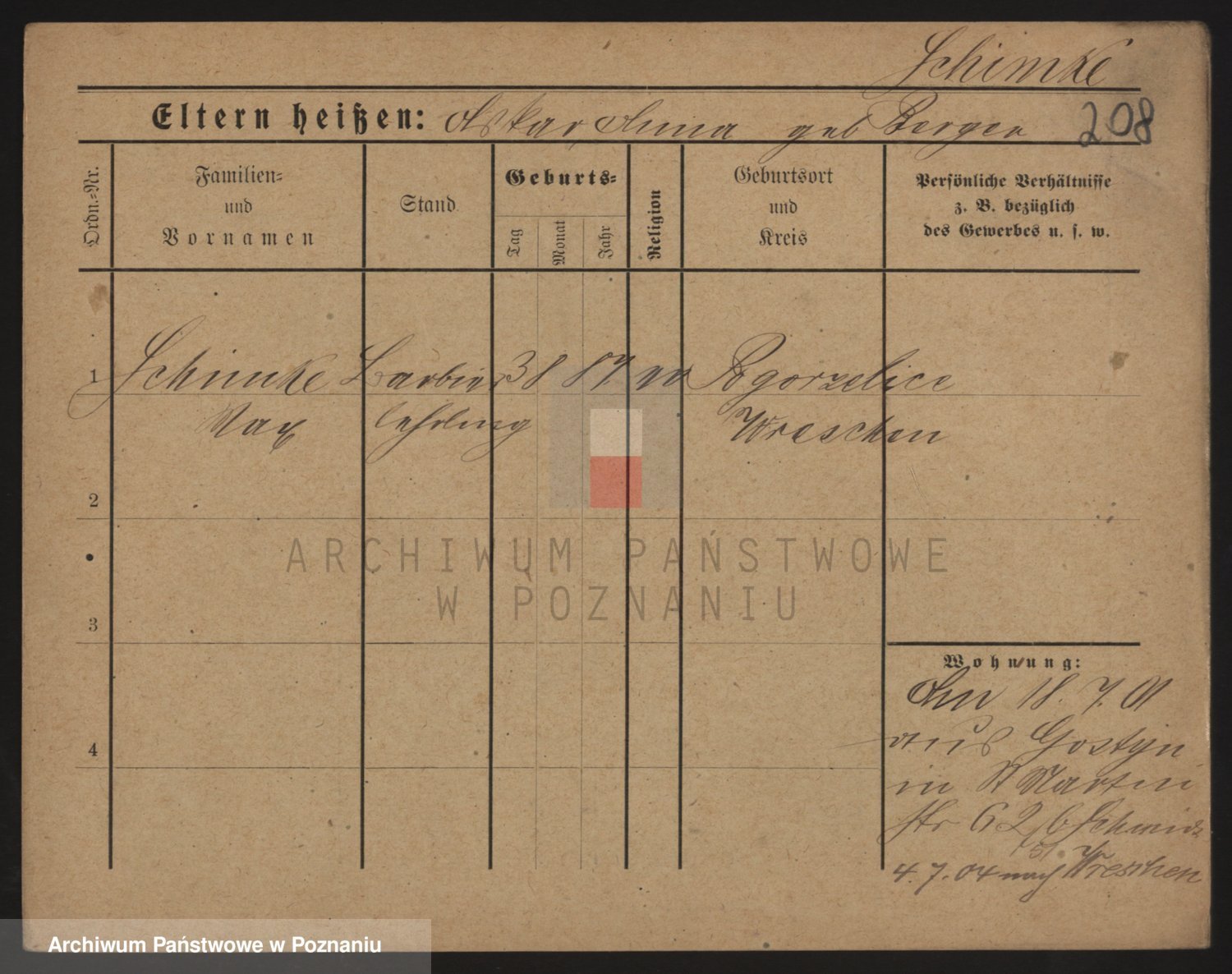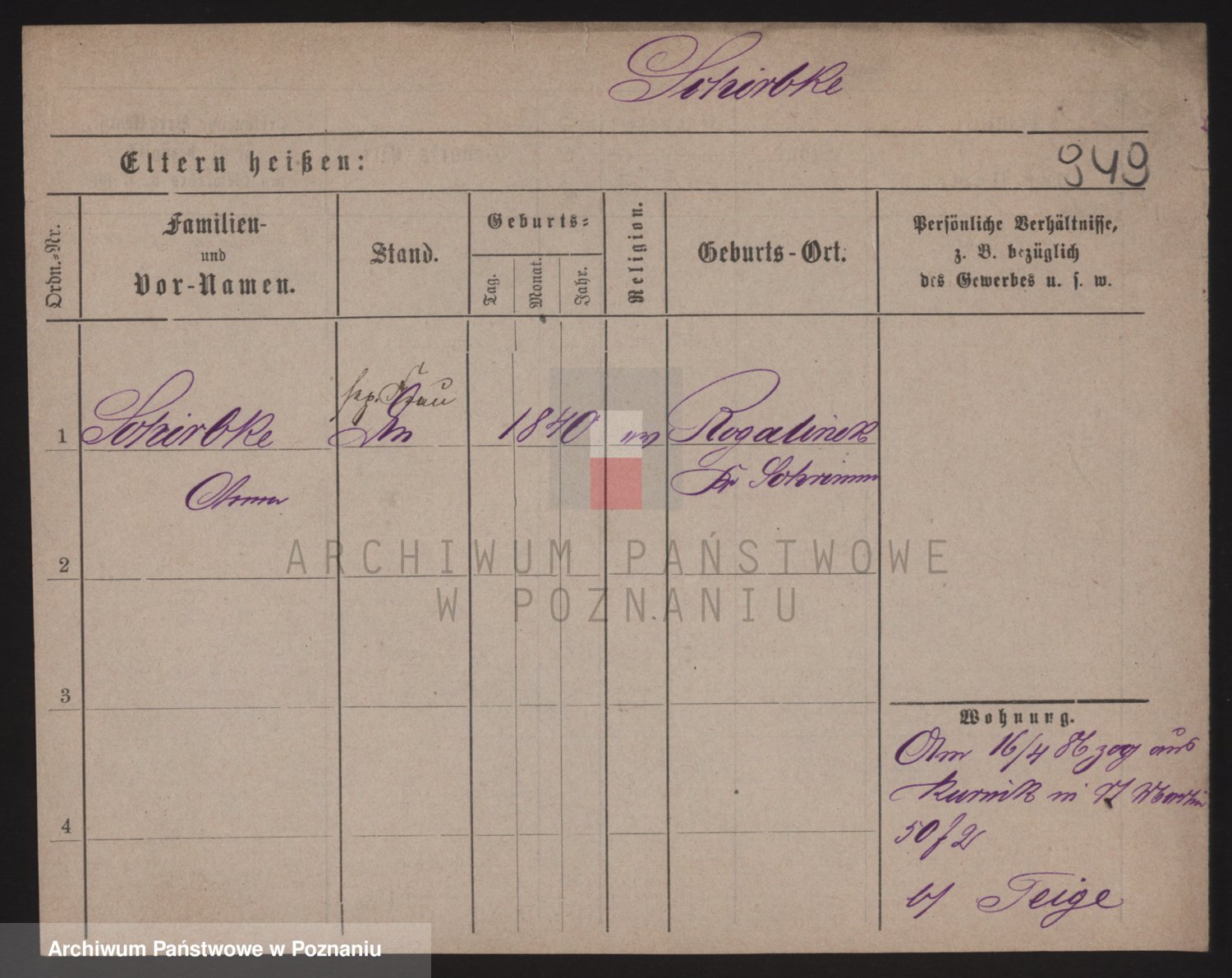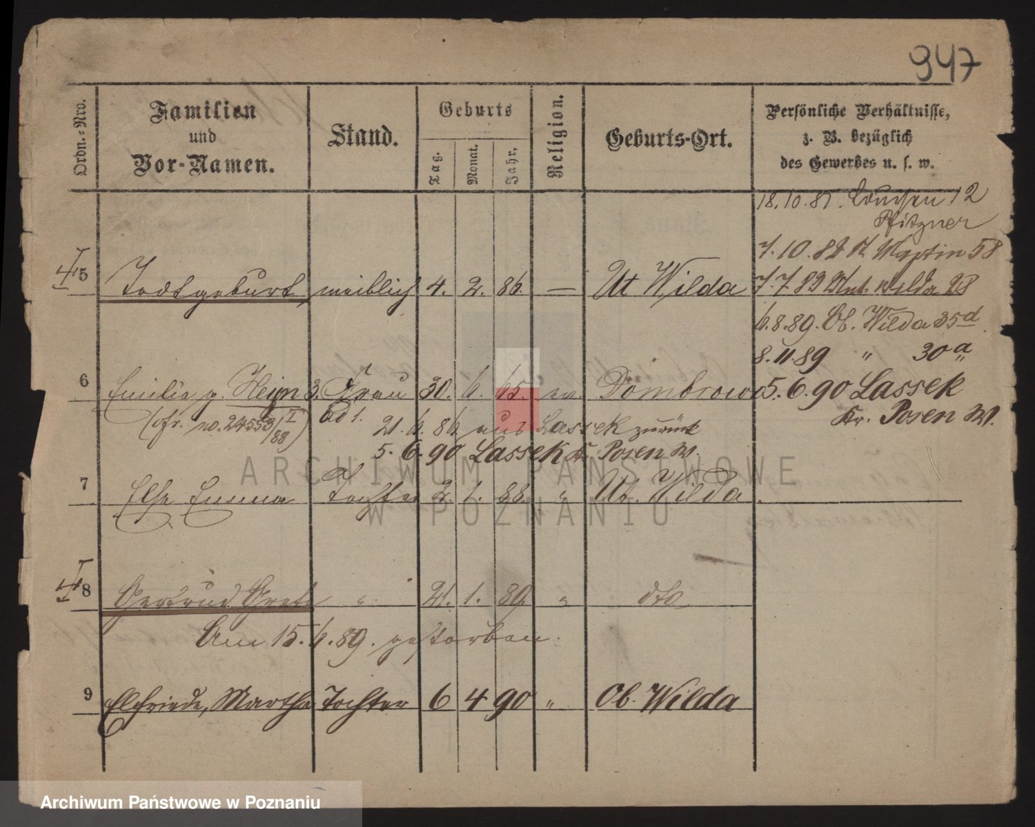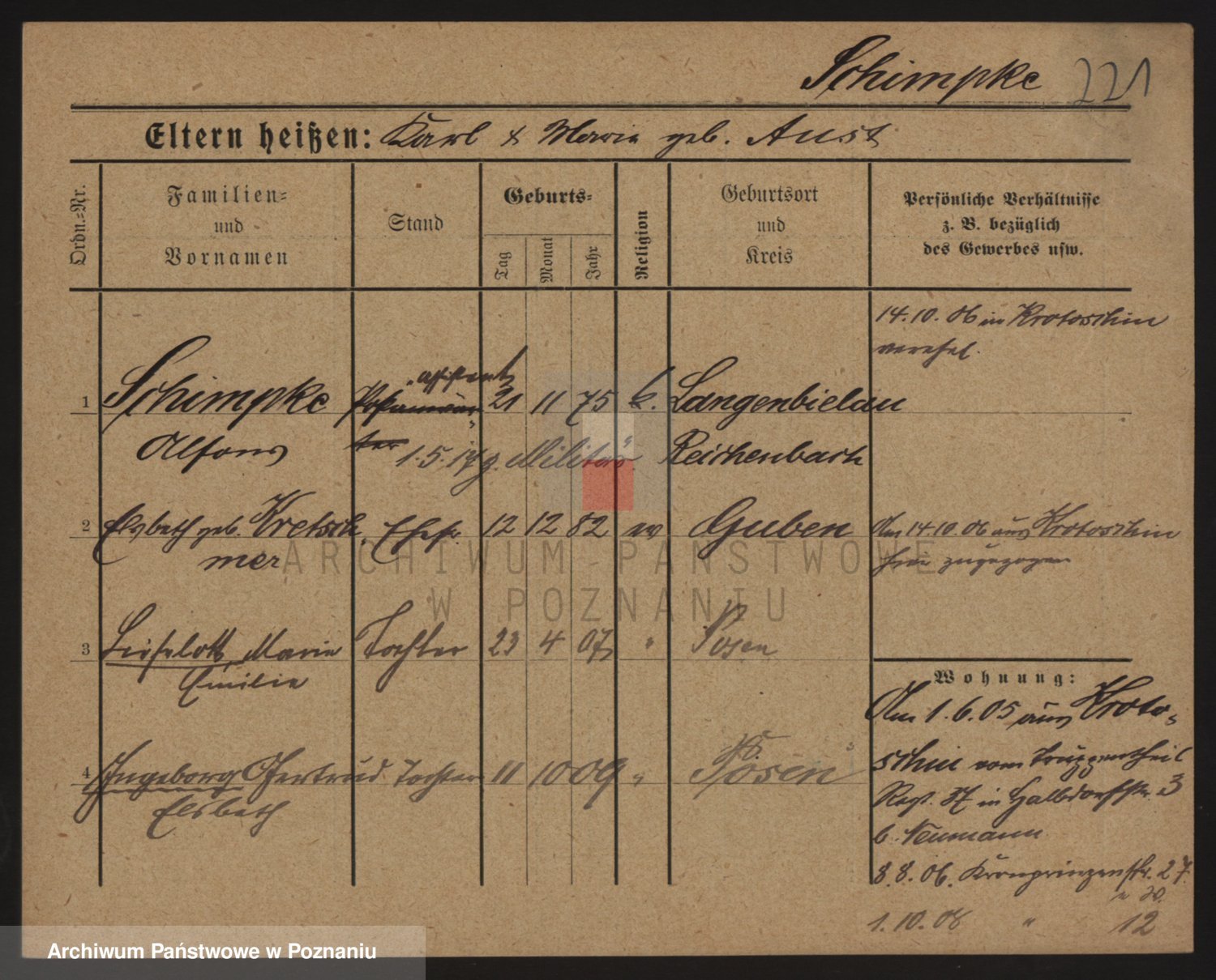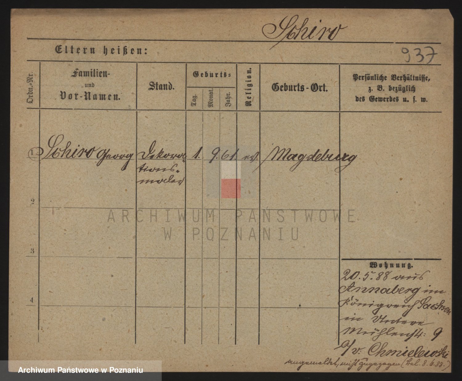 Podgląd karty osobowej dostępny jest po kliknięciu na nazwisko lub ikonkę karty. Można dokonywać powiększenia (ikony na górze) lub przechodzić między kolejnymi skanami (strzałki po bokach).