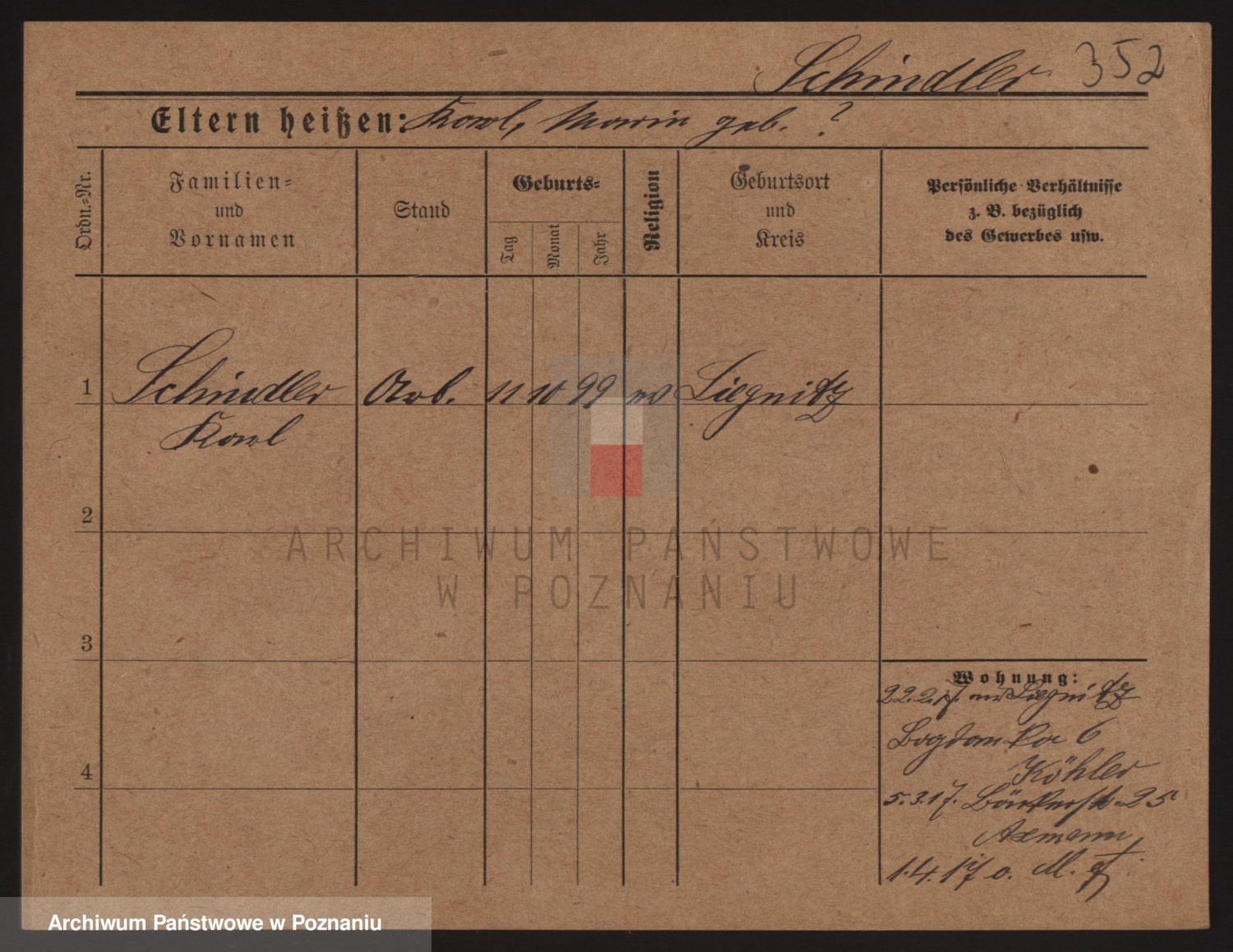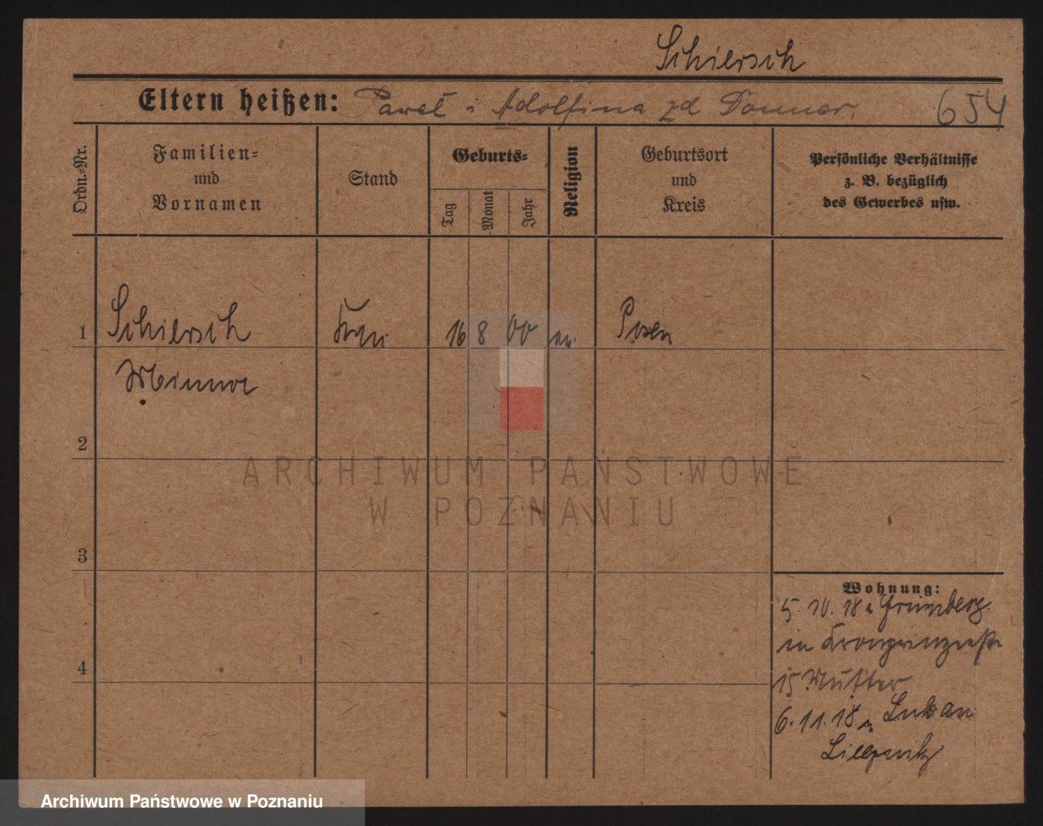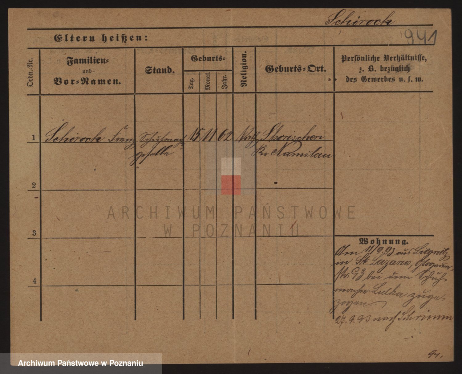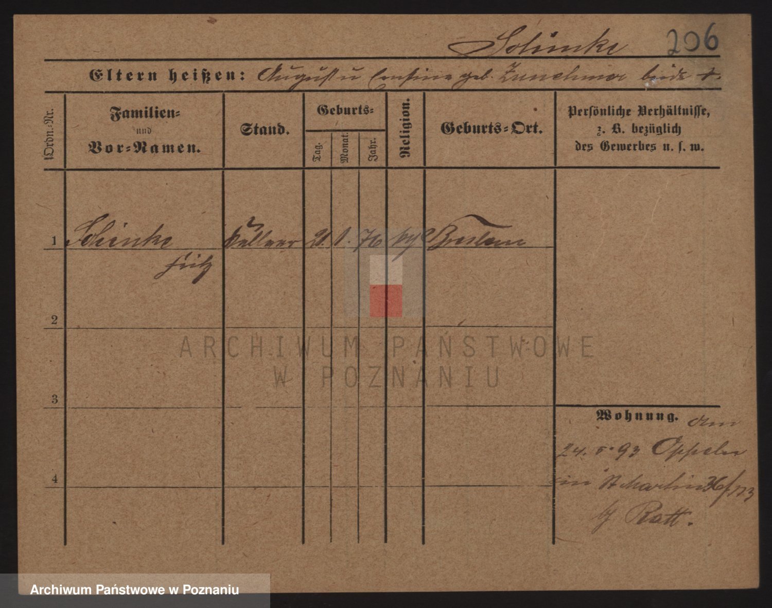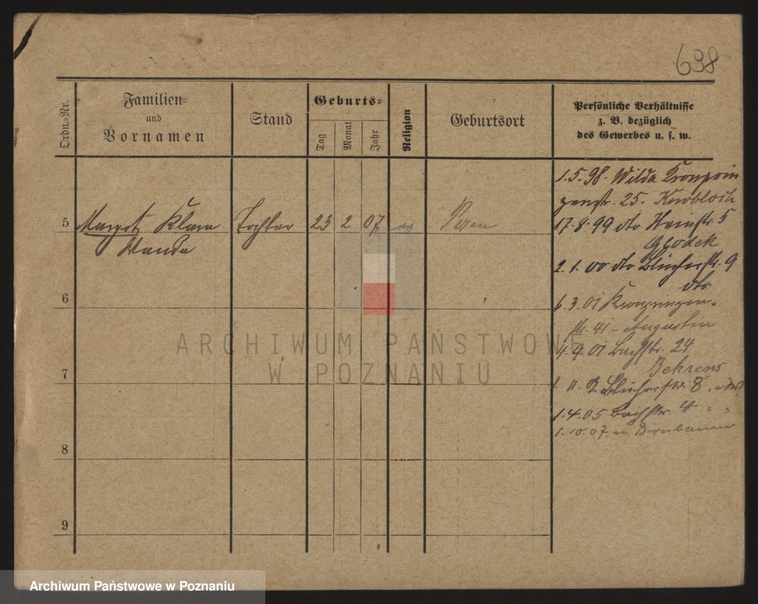 Podgląd karty osobowej dostępny jest po kliknięciu na nazwisko lub ikonkę karty. Można dokonywać powiększenia (ikony na górze) lub przechodzić między kolejnymi skanami (strzałki po bokach).