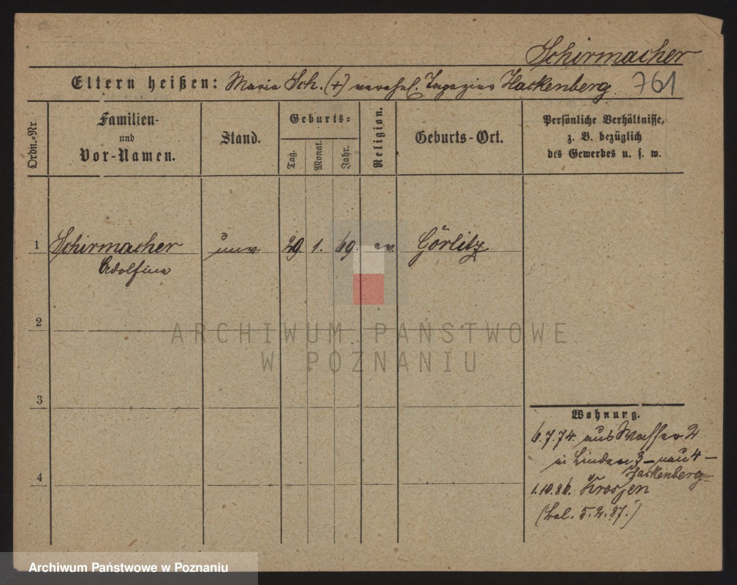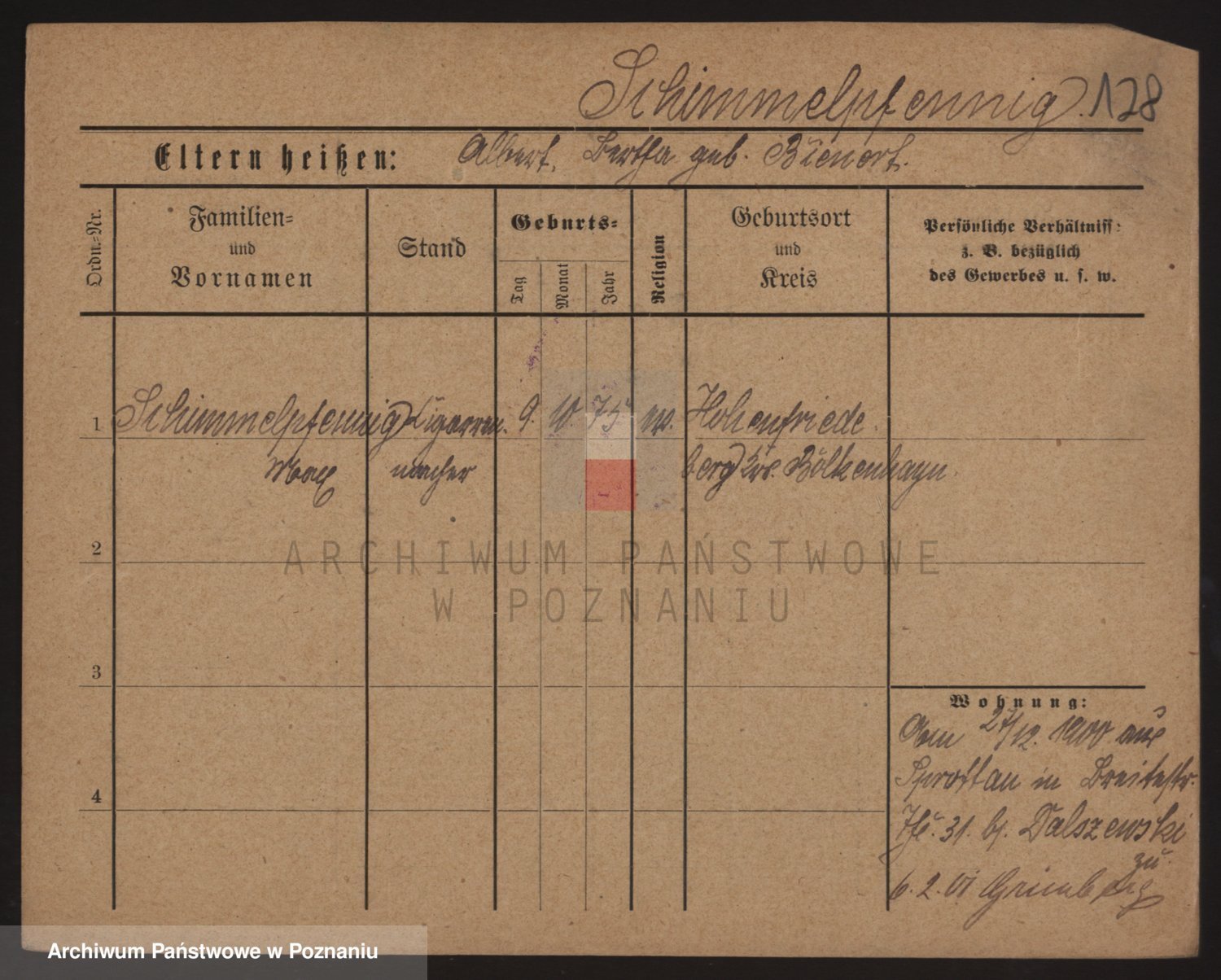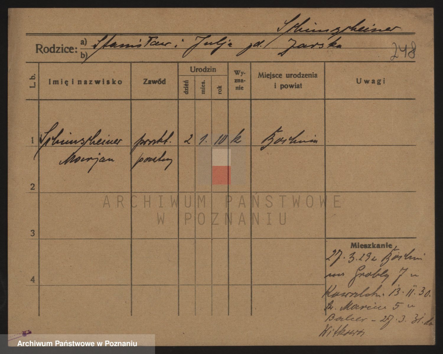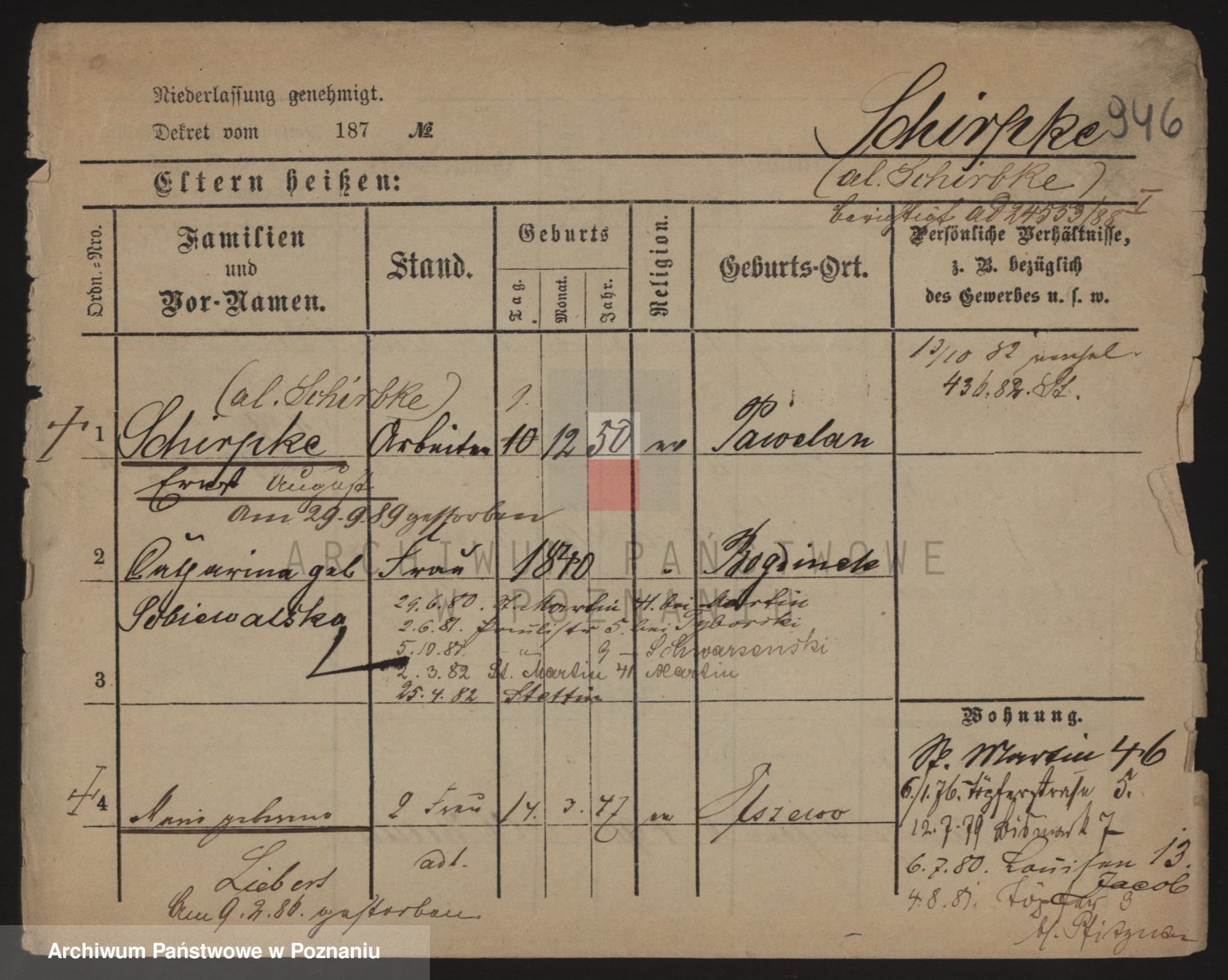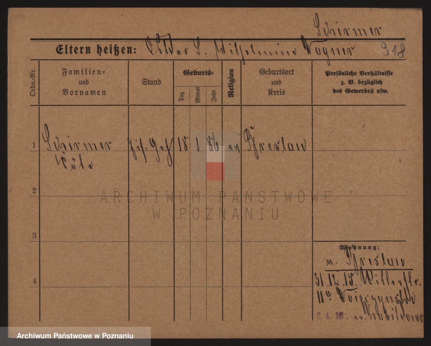 Podgląd karty osobowej dostępny jest po kliknięciu na nazwisko lub ikonkę karty. Można dokonywać powiększenia (ikony na górze) lub przechodzić między kolejnymi skanami (strzałki po bokach).