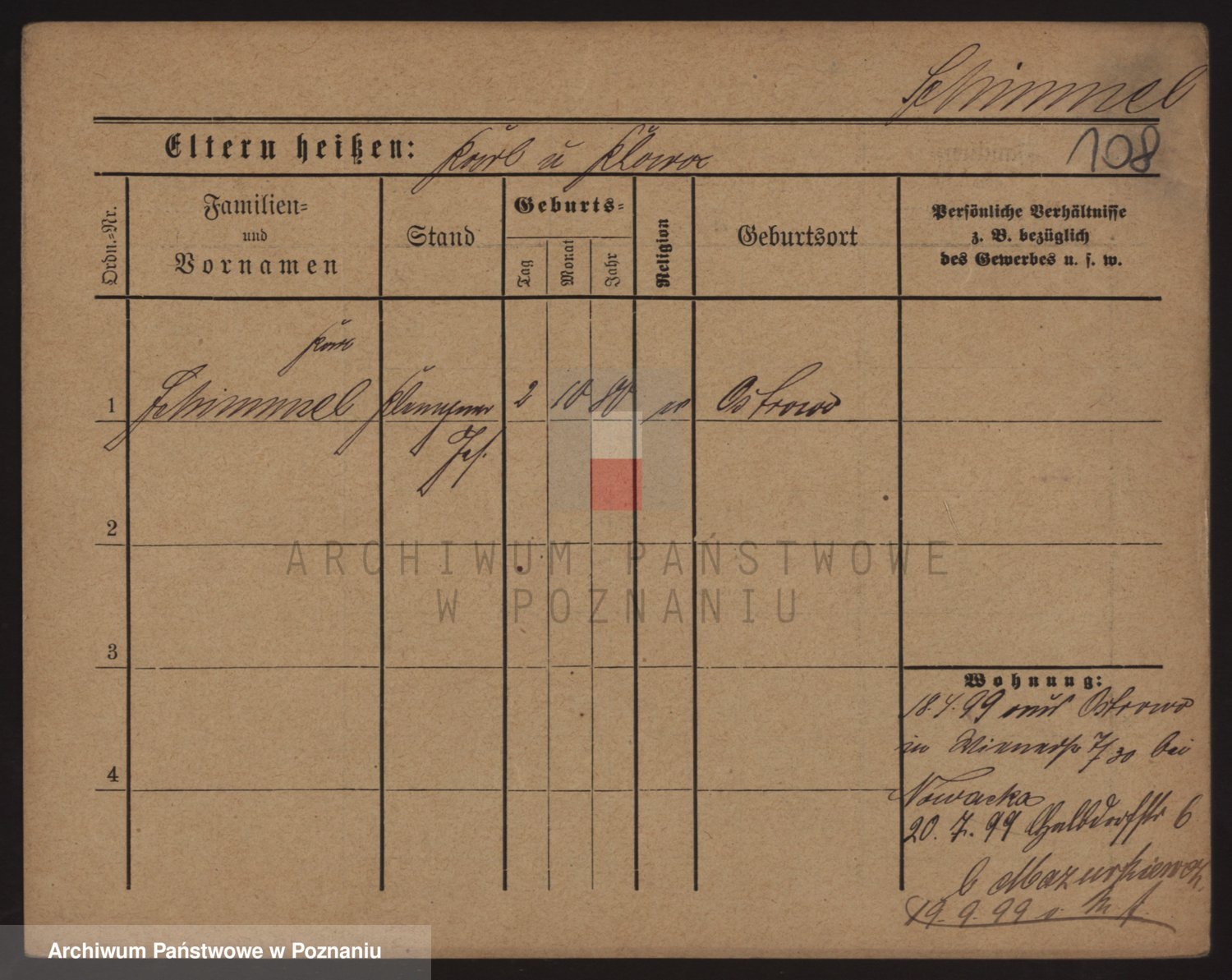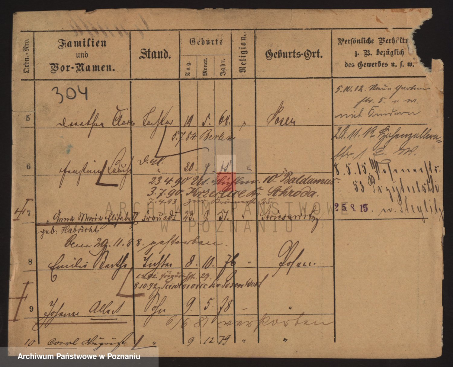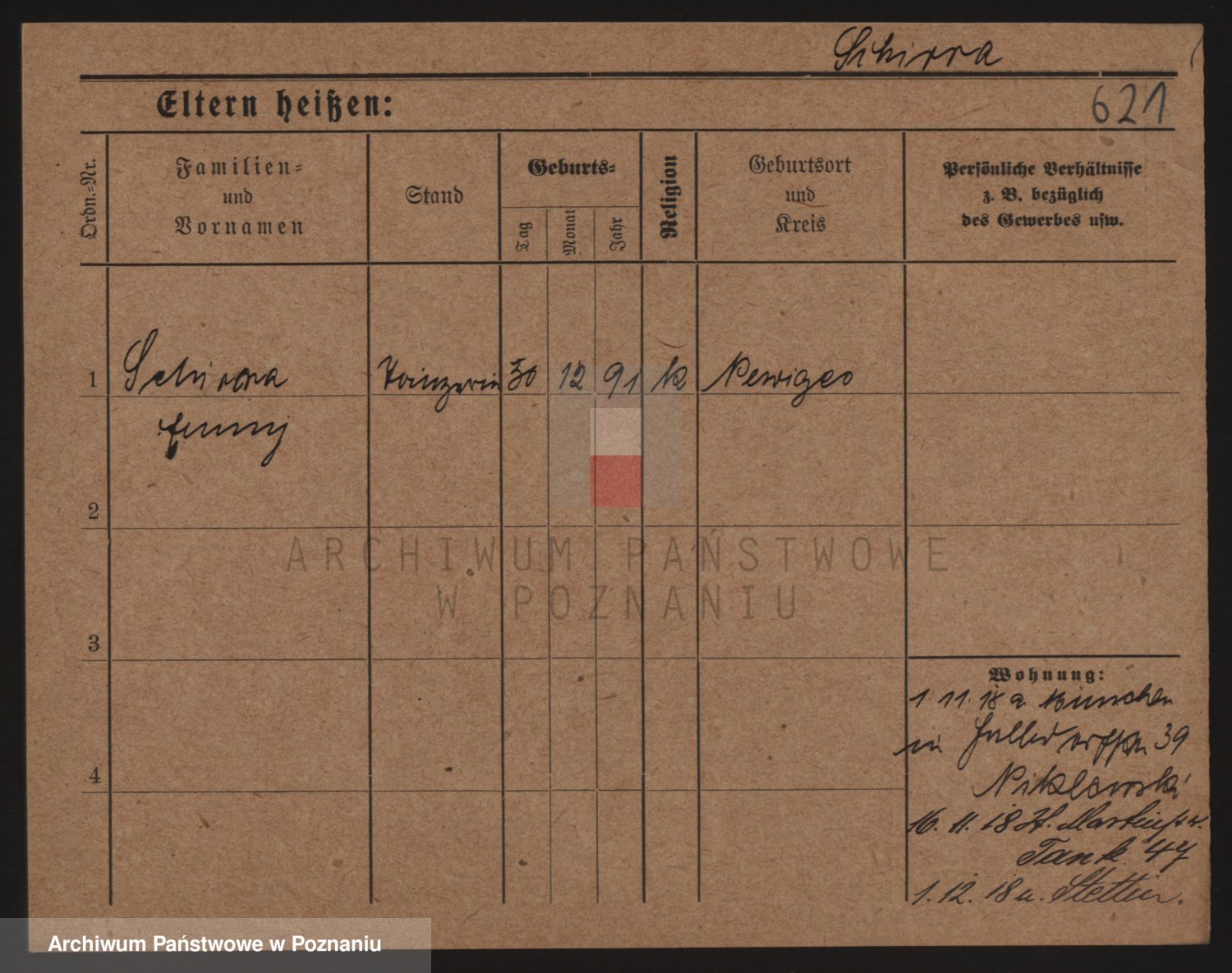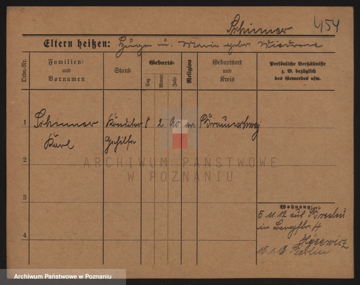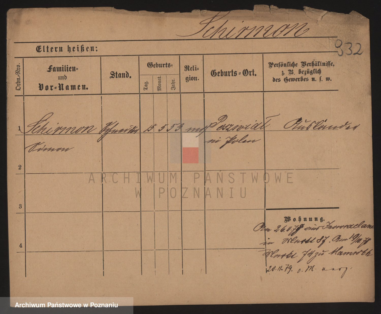 Podgląd karty osobowej dostępny jest po kliknięciu na nazwisko lub ikonkę karty. Można dokonywać powiększenia (ikony na górze) lub przechodzić między kolejnymi skanami (strzałki po bokach).