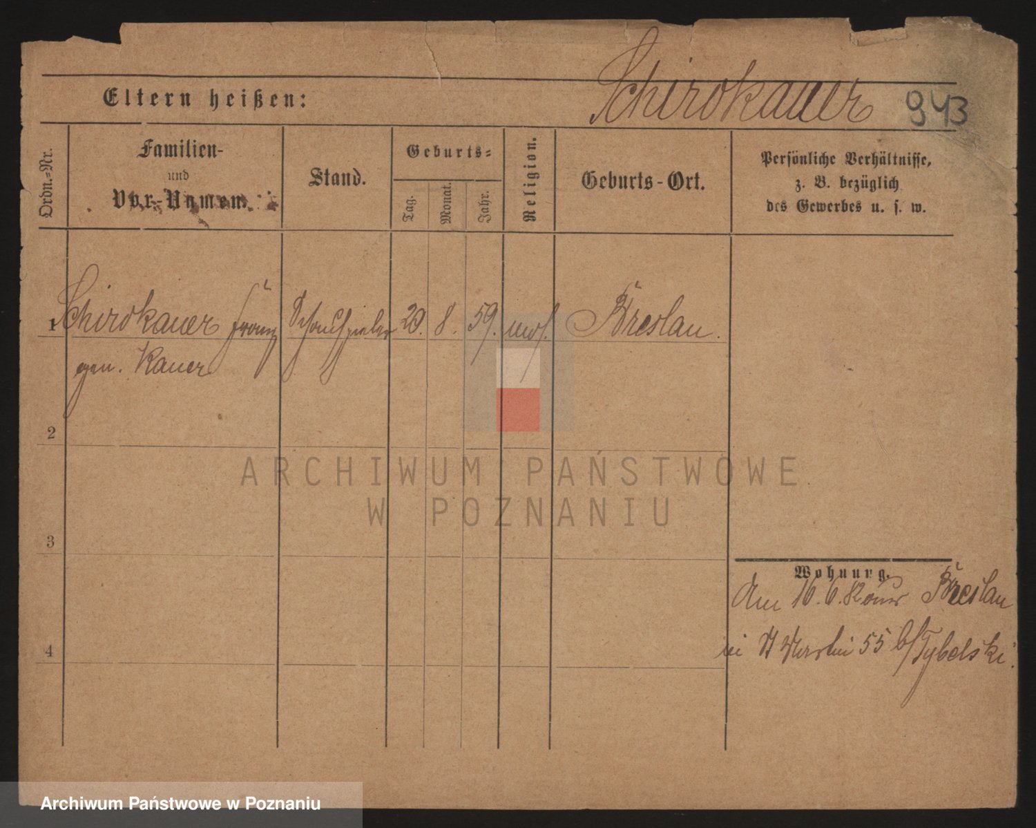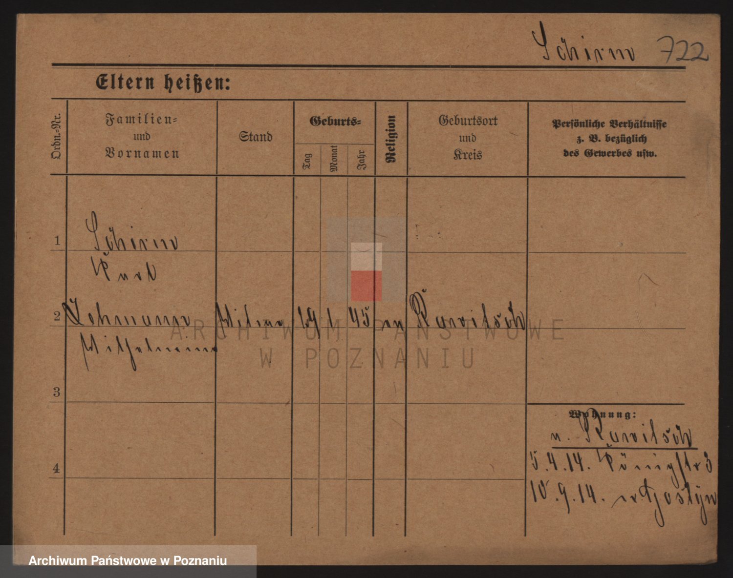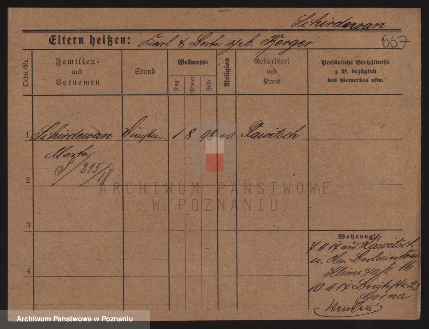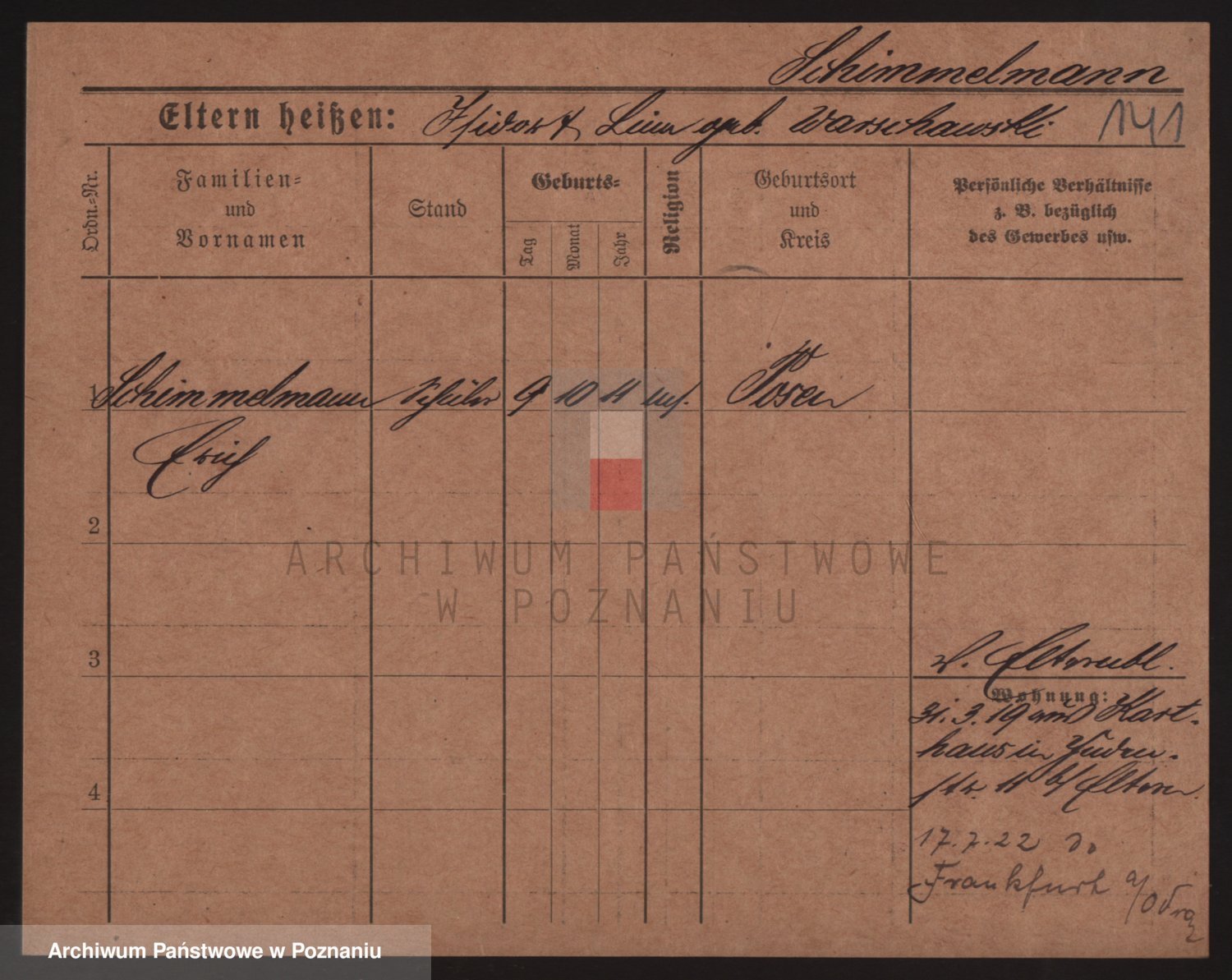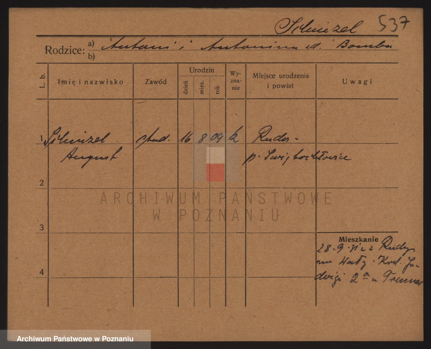 Podgląd karty osobowej dostępny jest po kliknięciu na nazwisko lub ikonkę karty. Można dokonywać powiększenia (ikony na górze) lub przechodzić między kolejnymi skanami (strzałki po bokach).