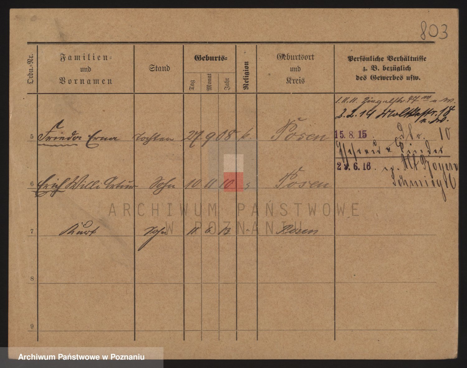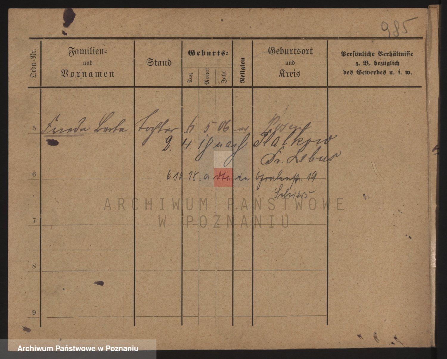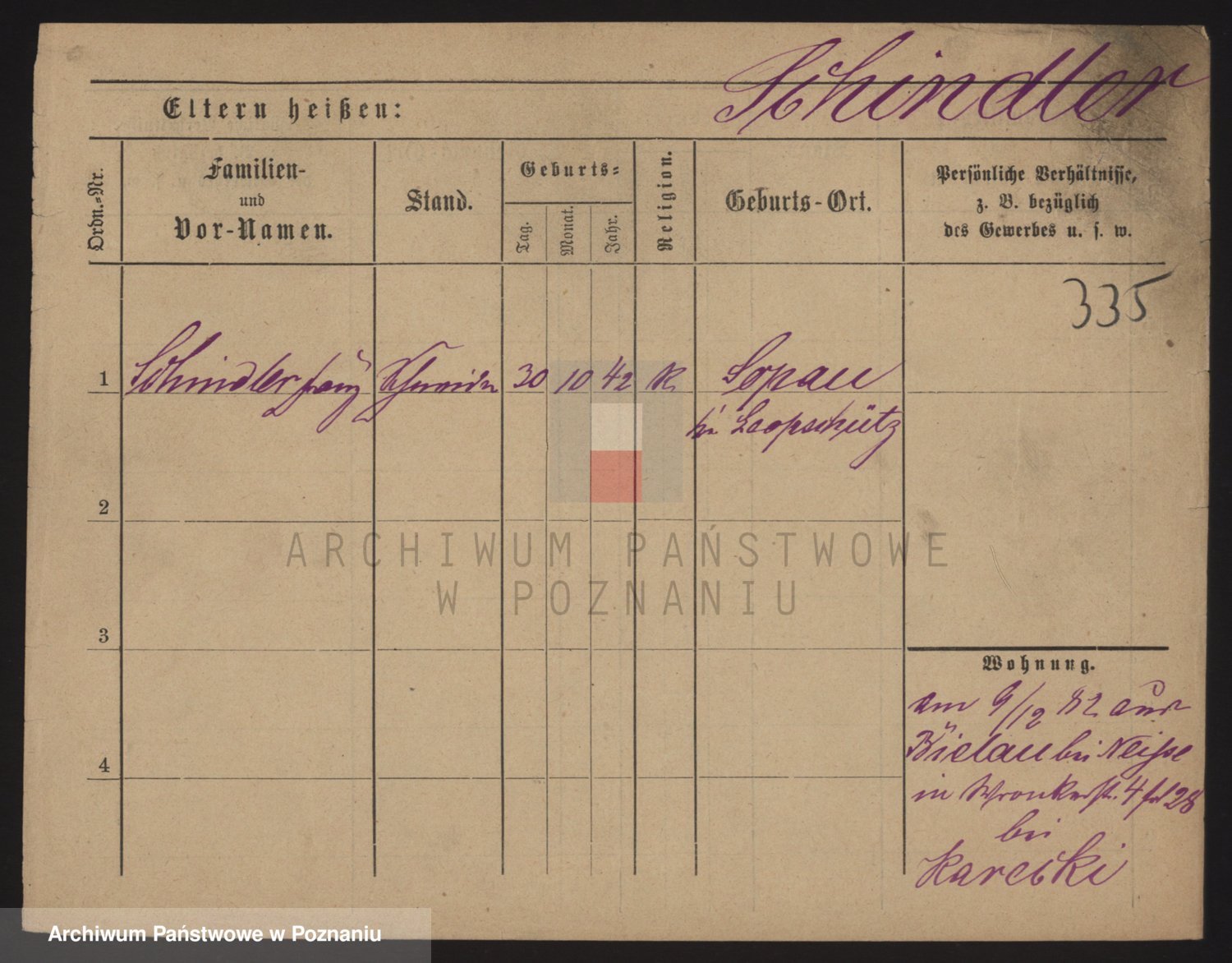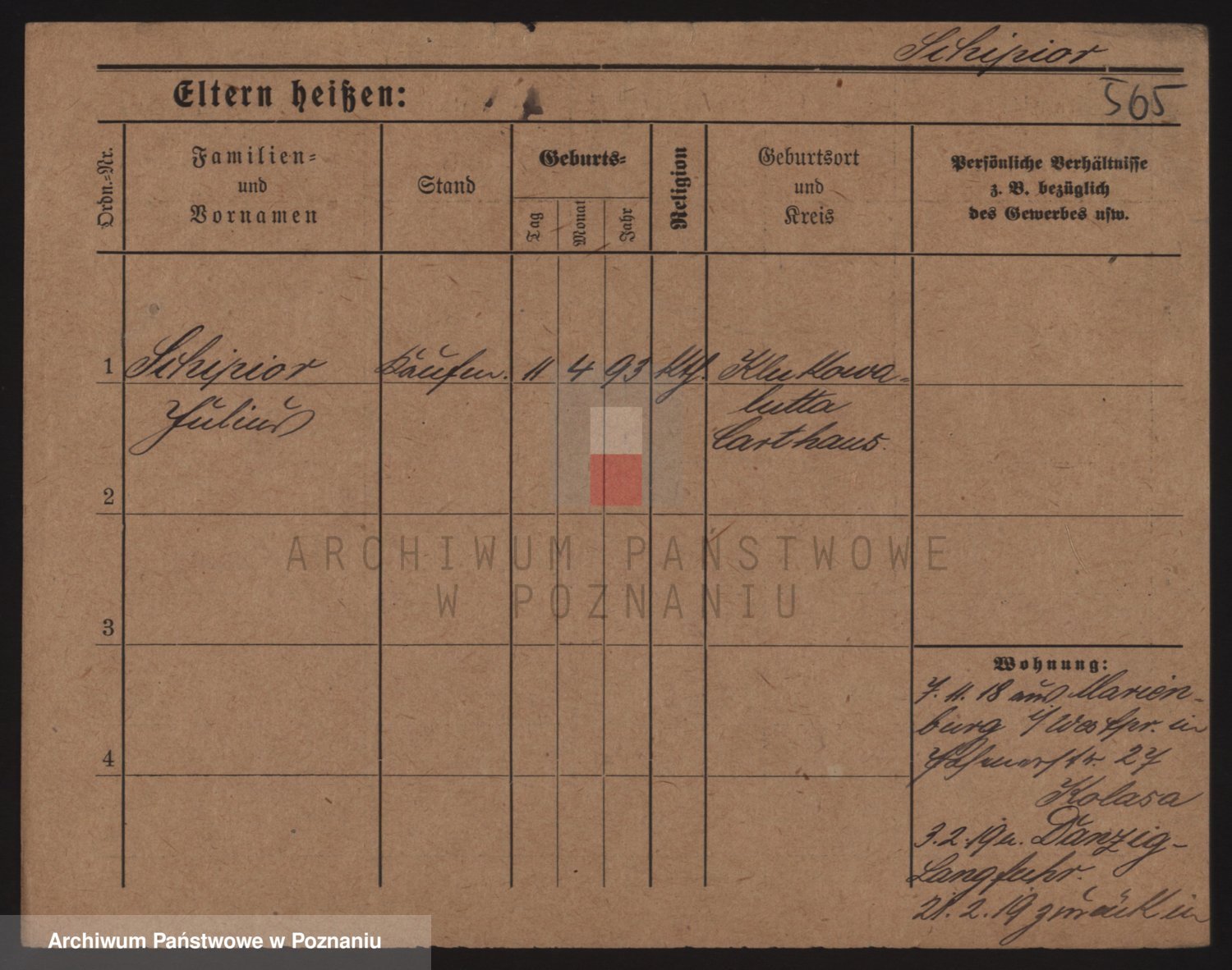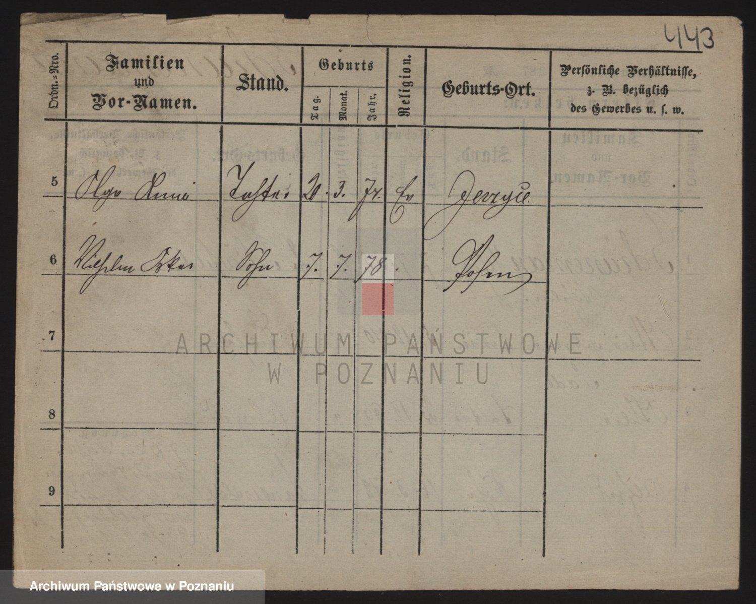 Podgląd karty osobowej dostępny jest po kliknięciu na nazwisko lub ikonkę karty. Można dokonywać powiększenia (ikony na górze) lub przechodzić między kolejnymi skanami (strzałki po bokach).