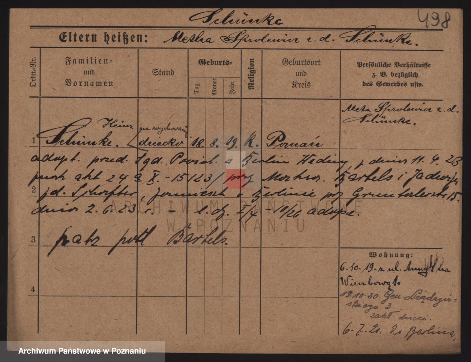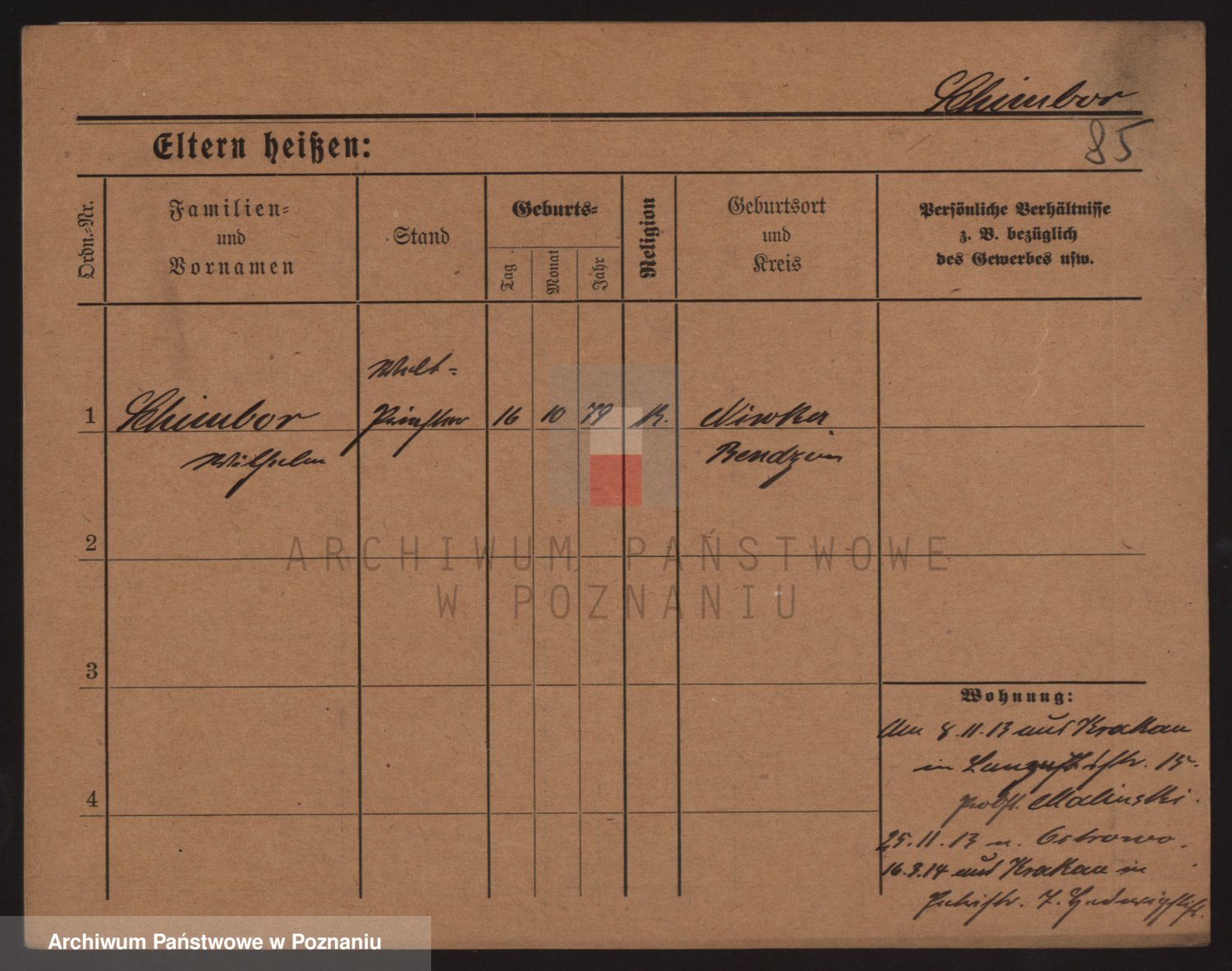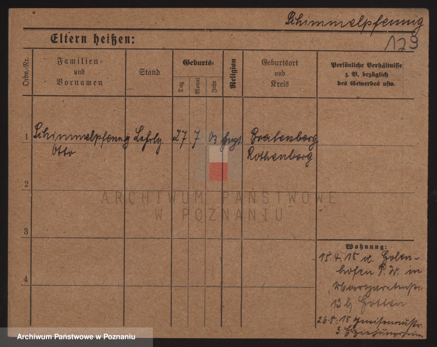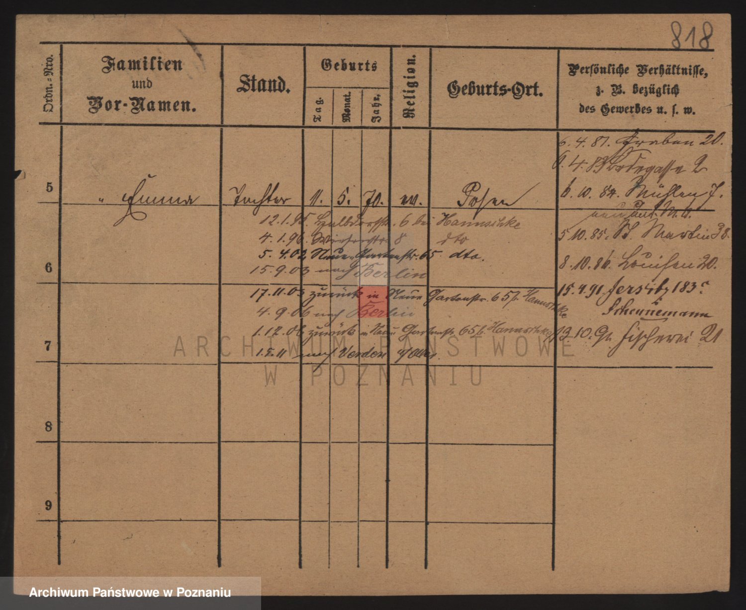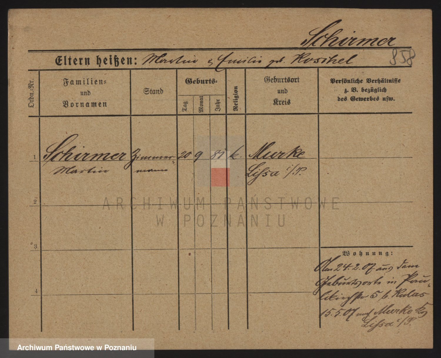 Podgląd karty osobowej dostępny jest po kliknięciu na nazwisko lub ikonkę karty. Można dokonywać powiększenia (ikony na górze) lub przechodzić między kolejnymi skanami (strzałki po bokach).