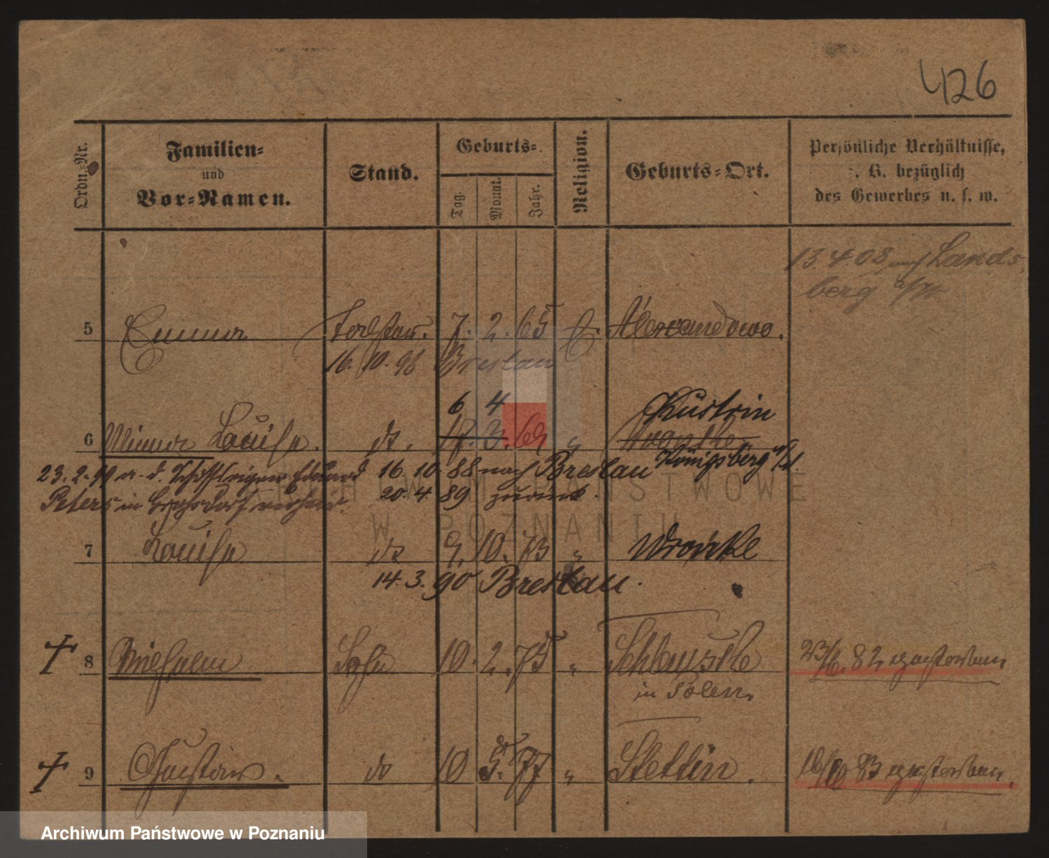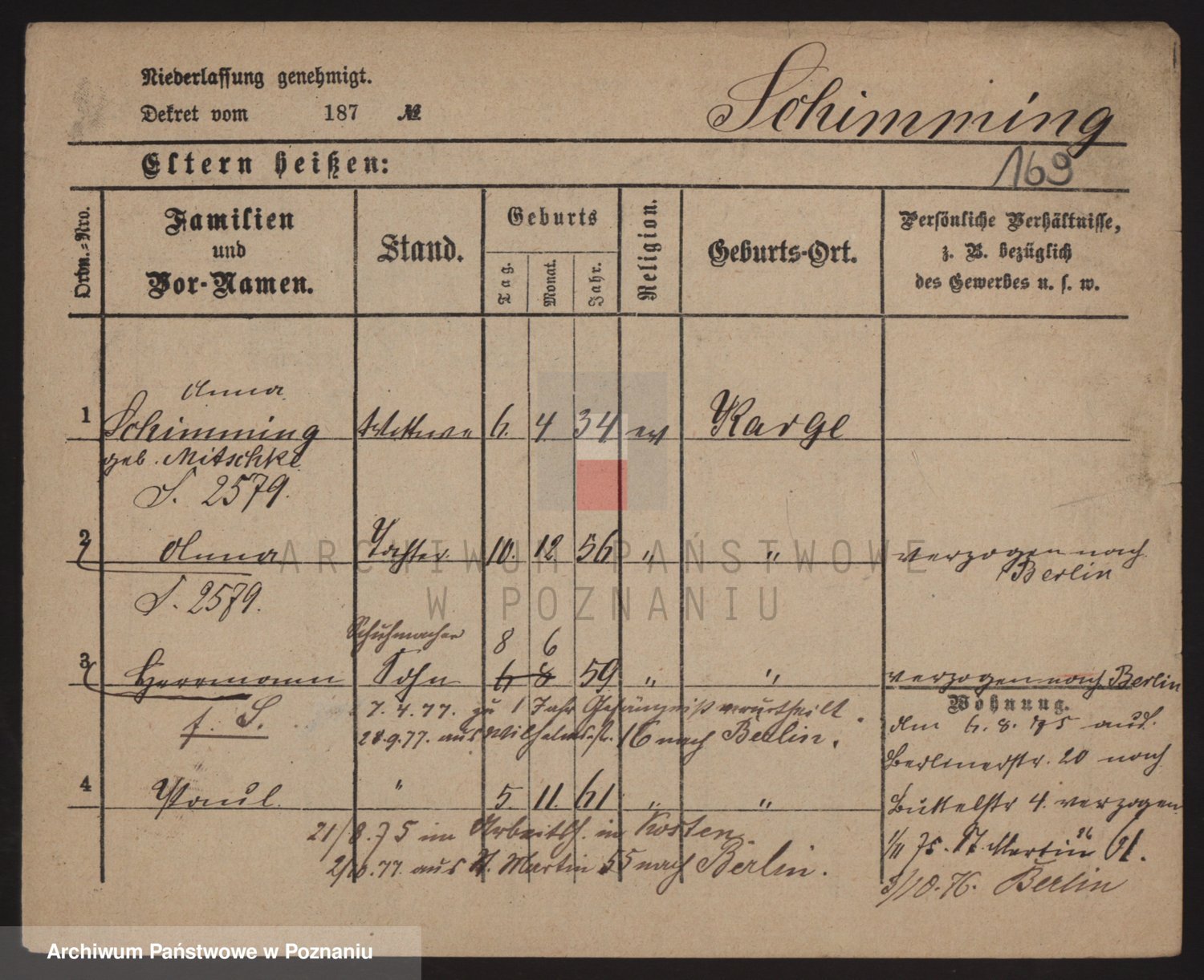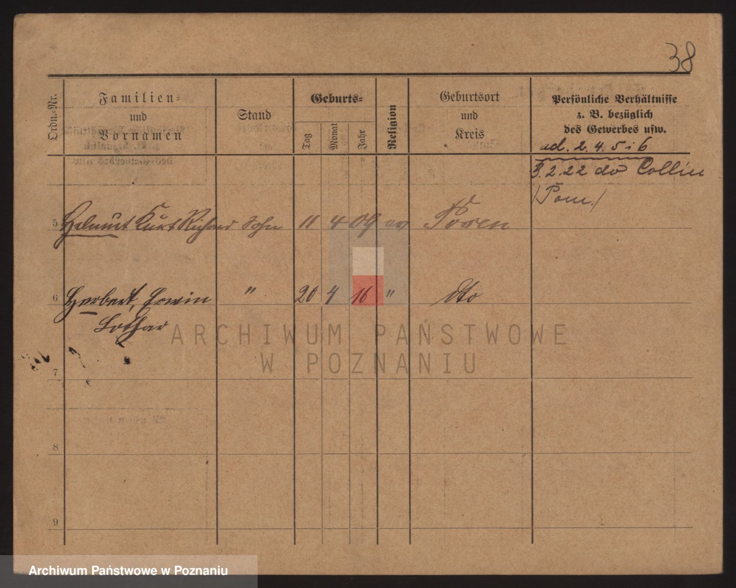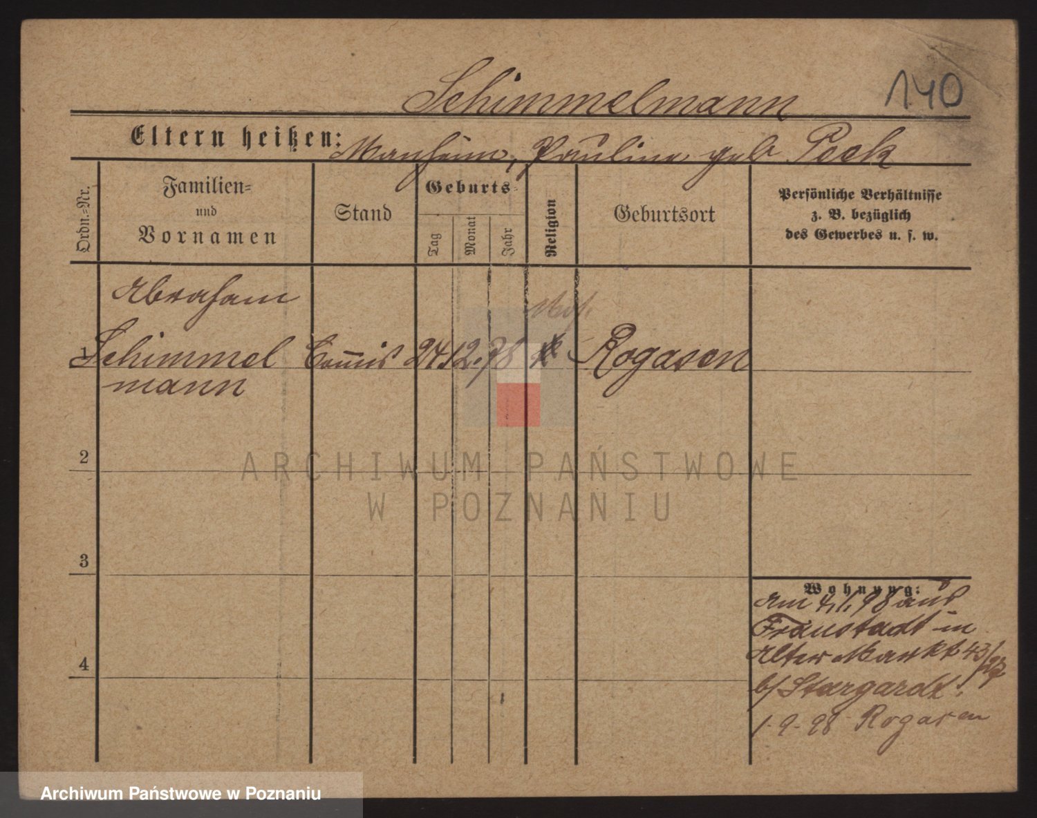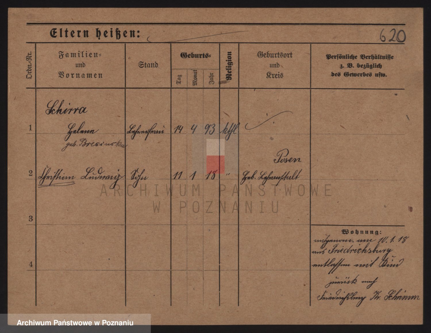 Podgląd karty osobowej dostępny jest po kliknięciu na nazwisko lub ikonkę karty. Można dokonywać powiększenia (ikony na górze) lub przechodzić między kolejnymi skanami (strzałki po bokach).