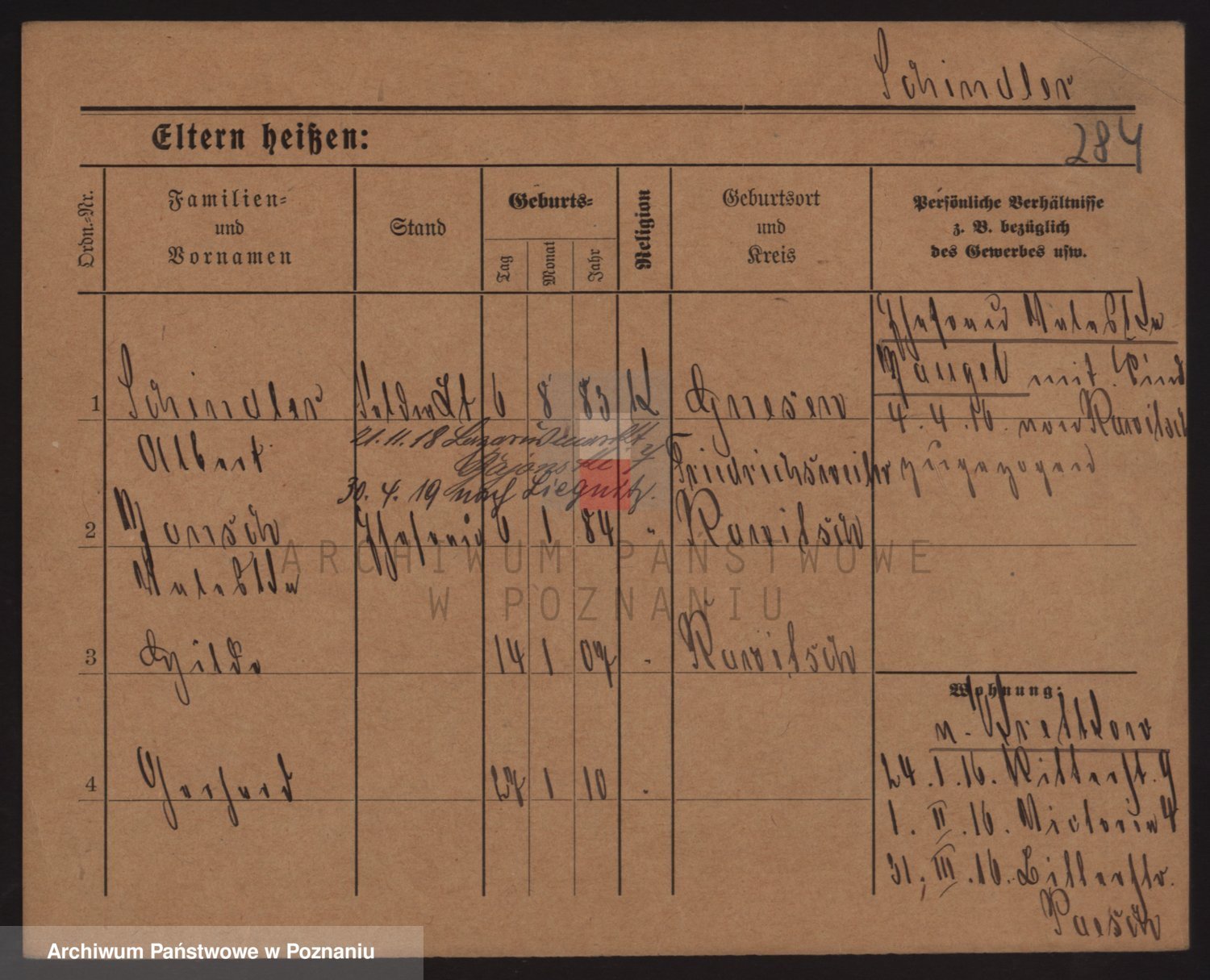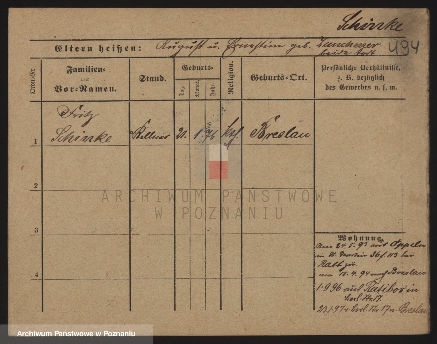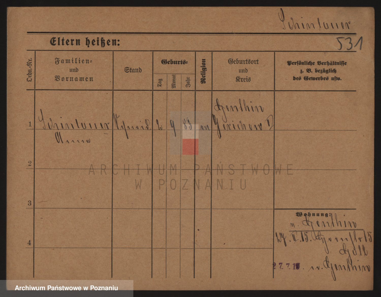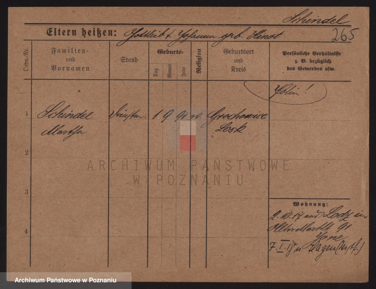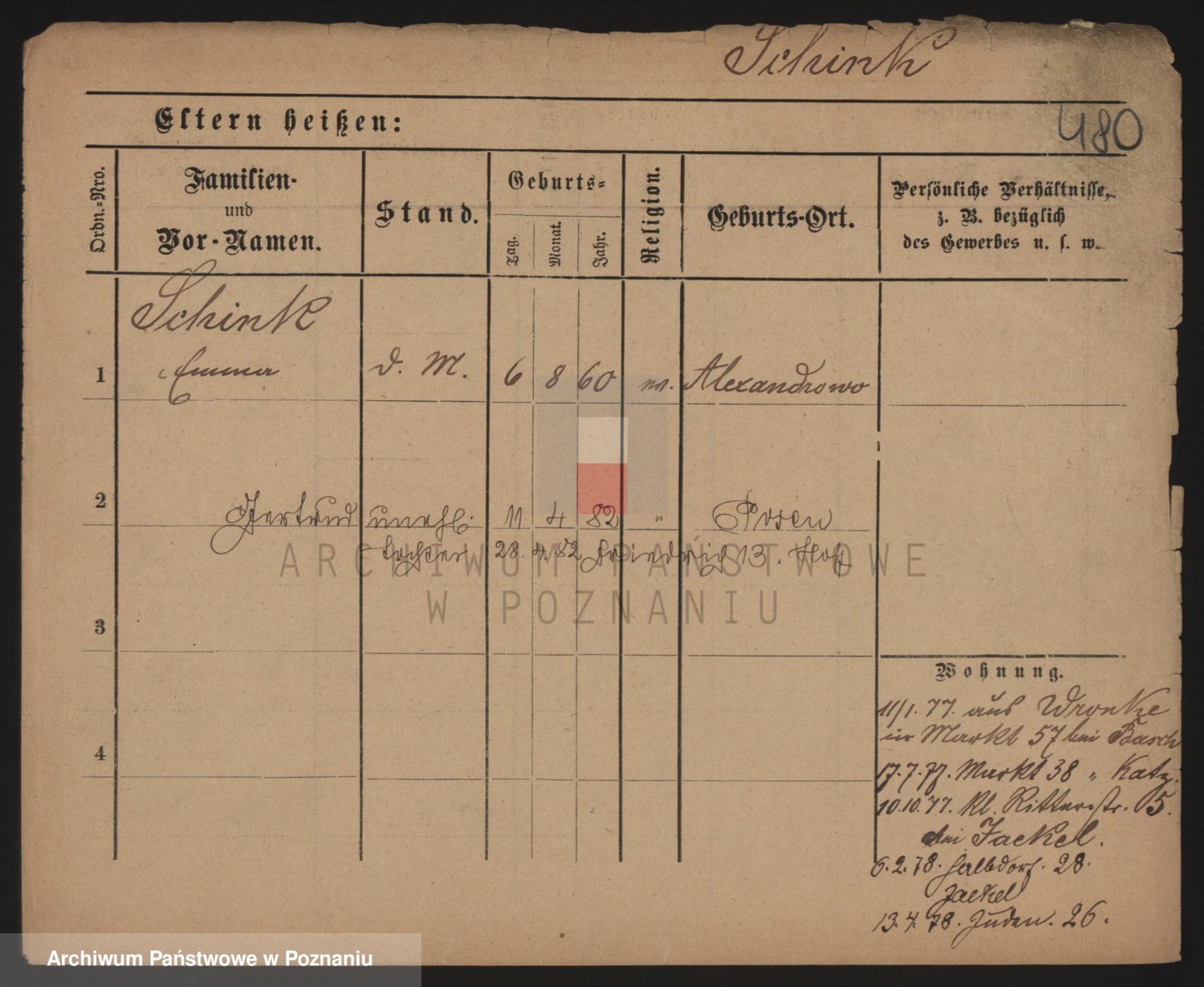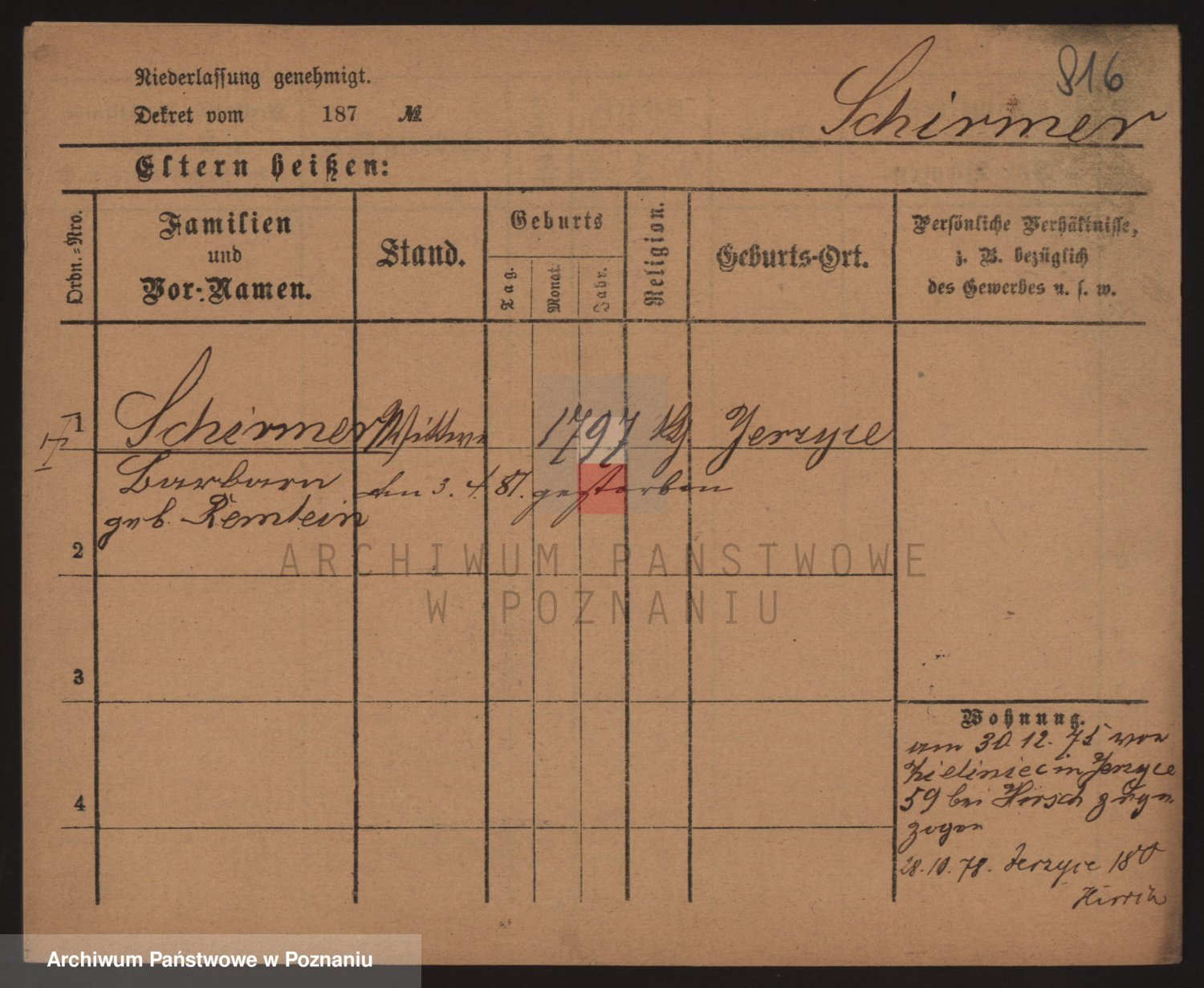 Podgląd karty osobowej dostępny jest po kliknięciu na nazwisko lub ikonkę karty. Można dokonywać powiększenia (ikony na górze) lub przechodzić między kolejnymi skanami (strzałki po bokach).
