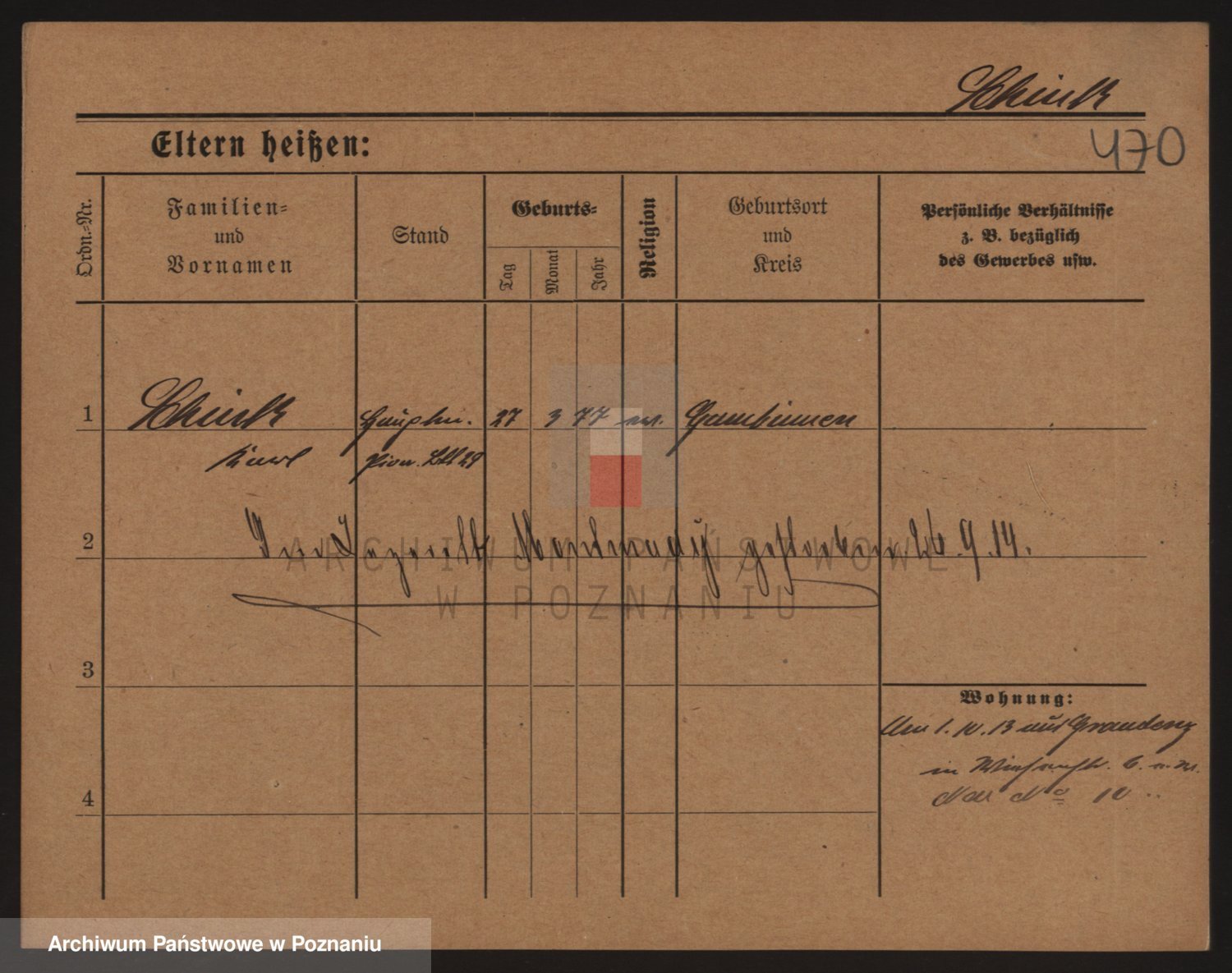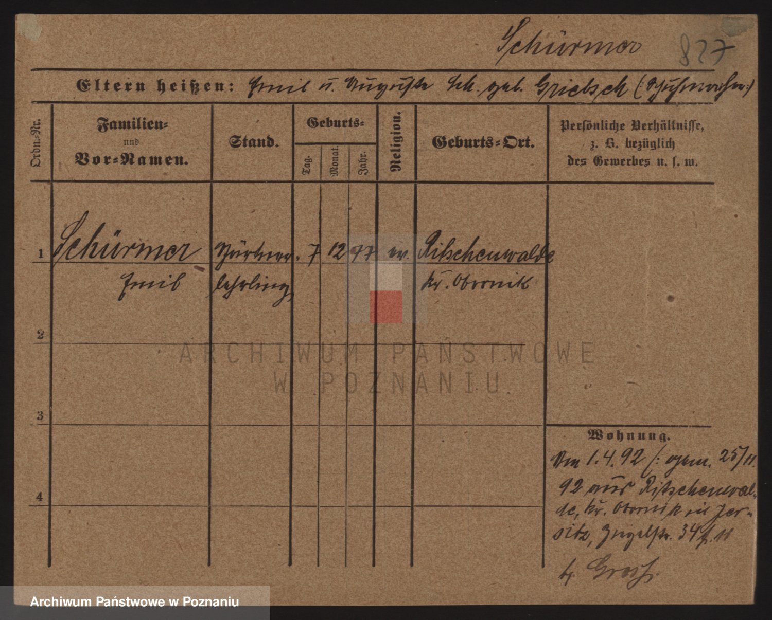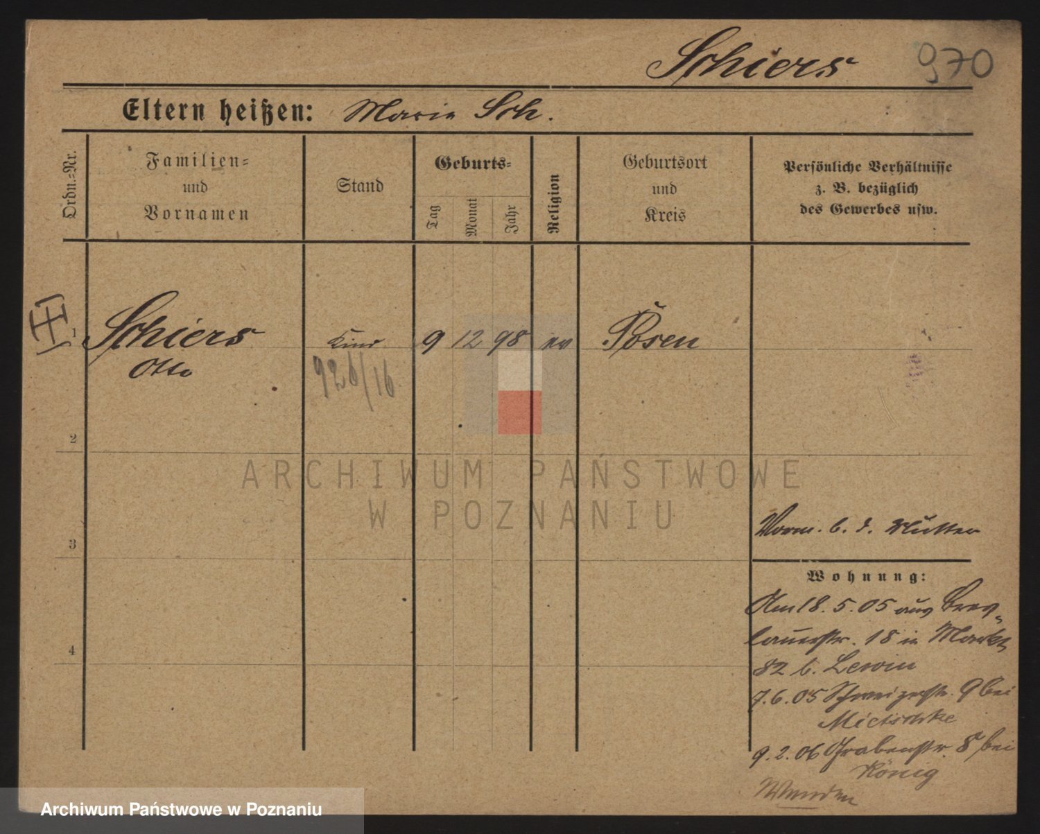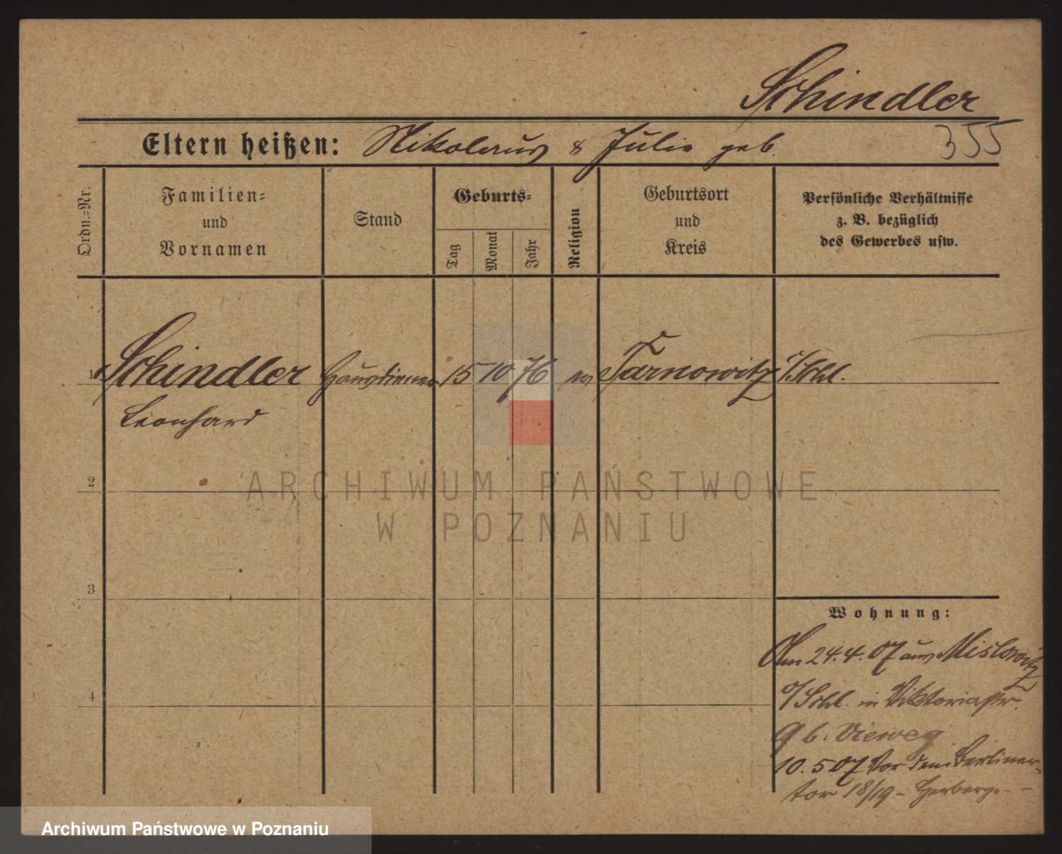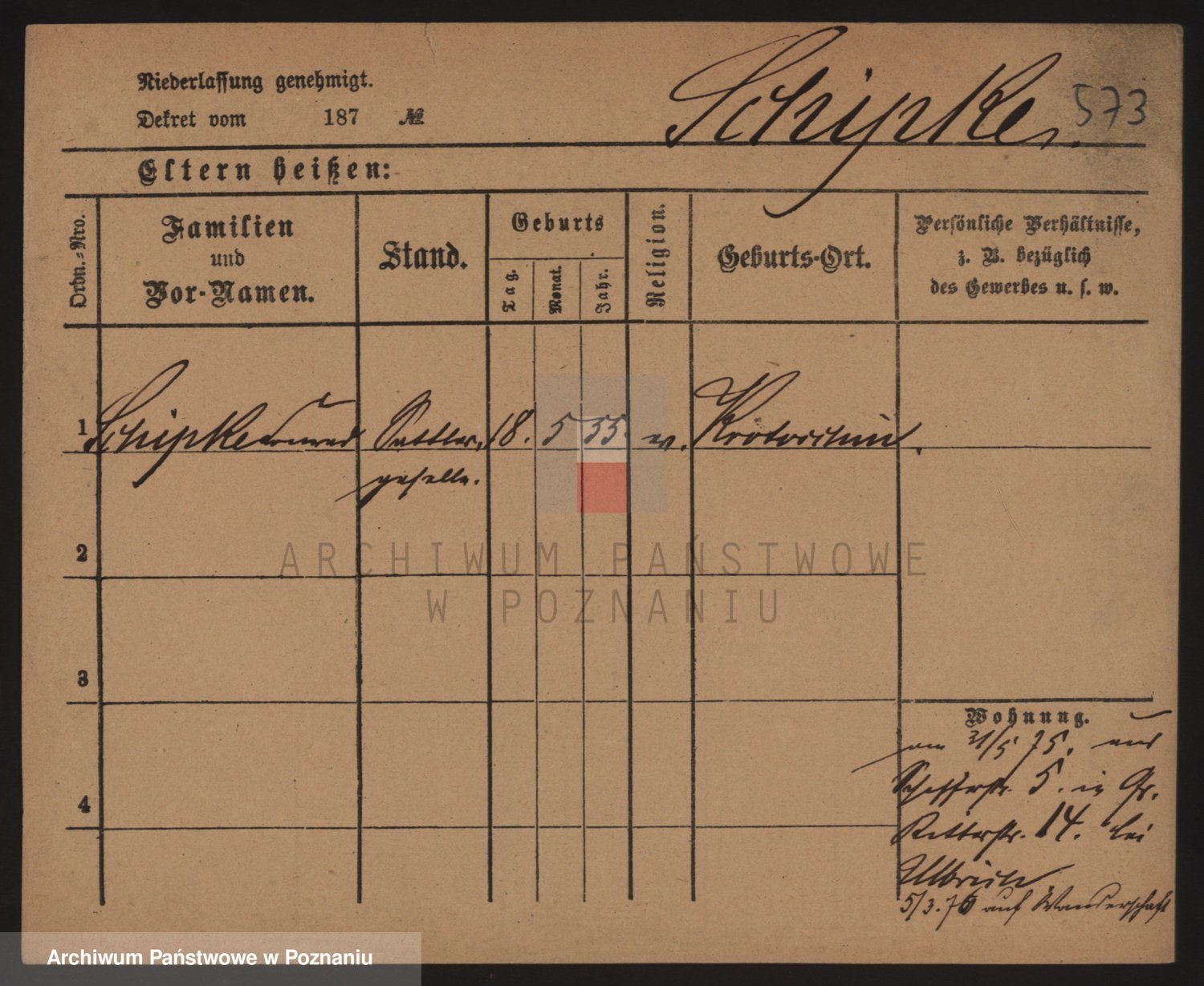 Podgląd karty osobowej dostępny jest po kliknięciu na nazwisko lub ikonkę karty. Można dokonywać powiększenia (ikony na górze) lub przechodzić między kolejnymi skanami (strzałki po bokach).