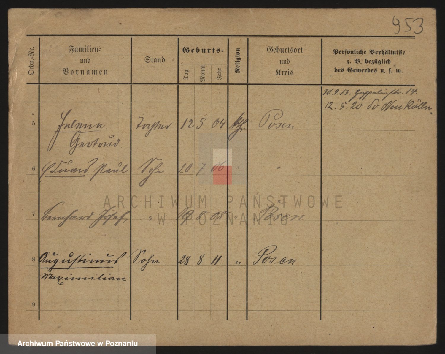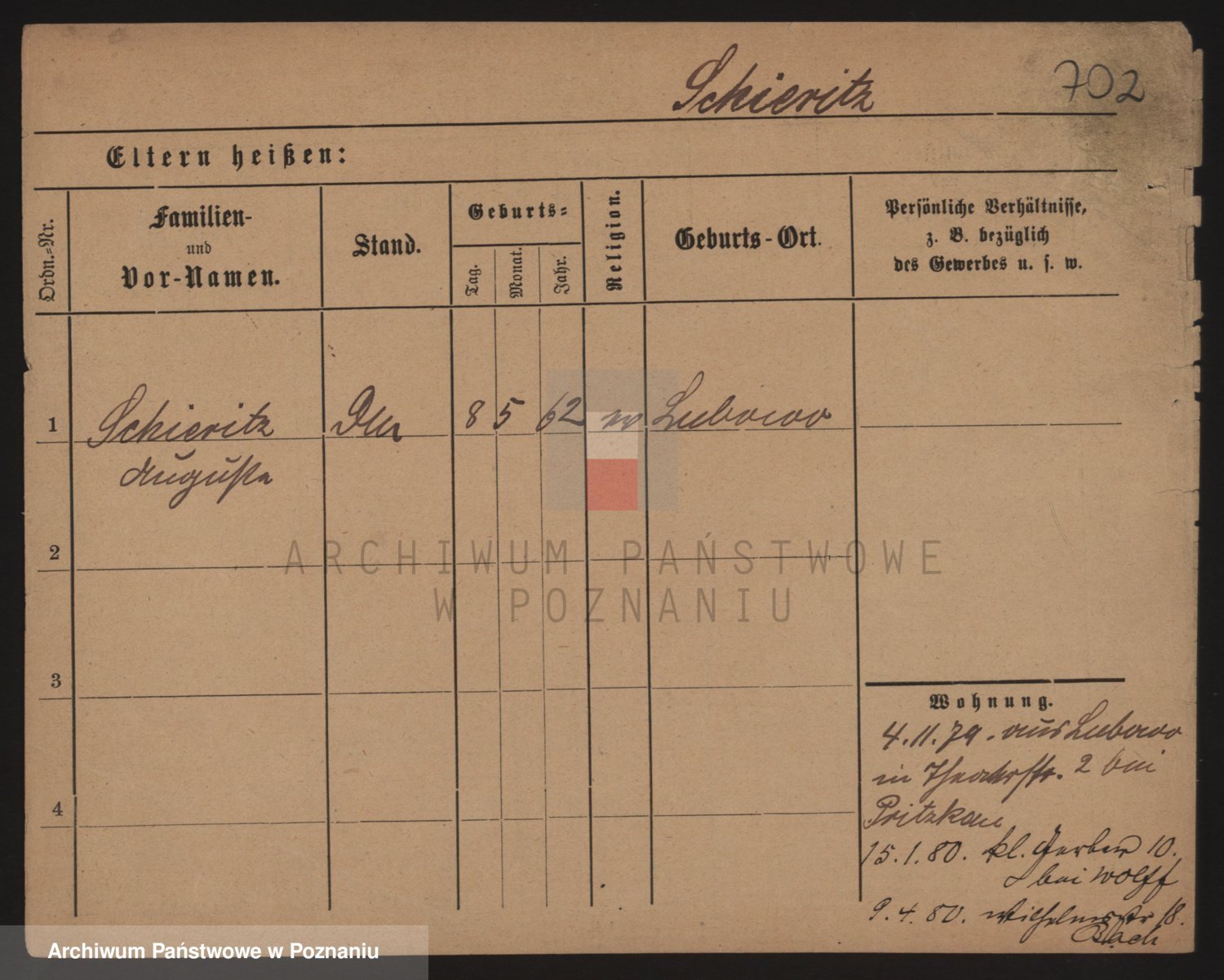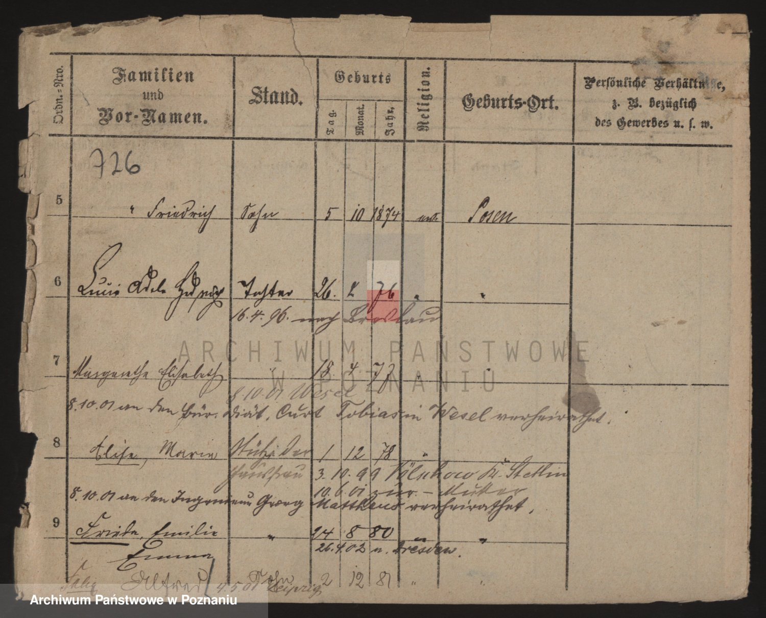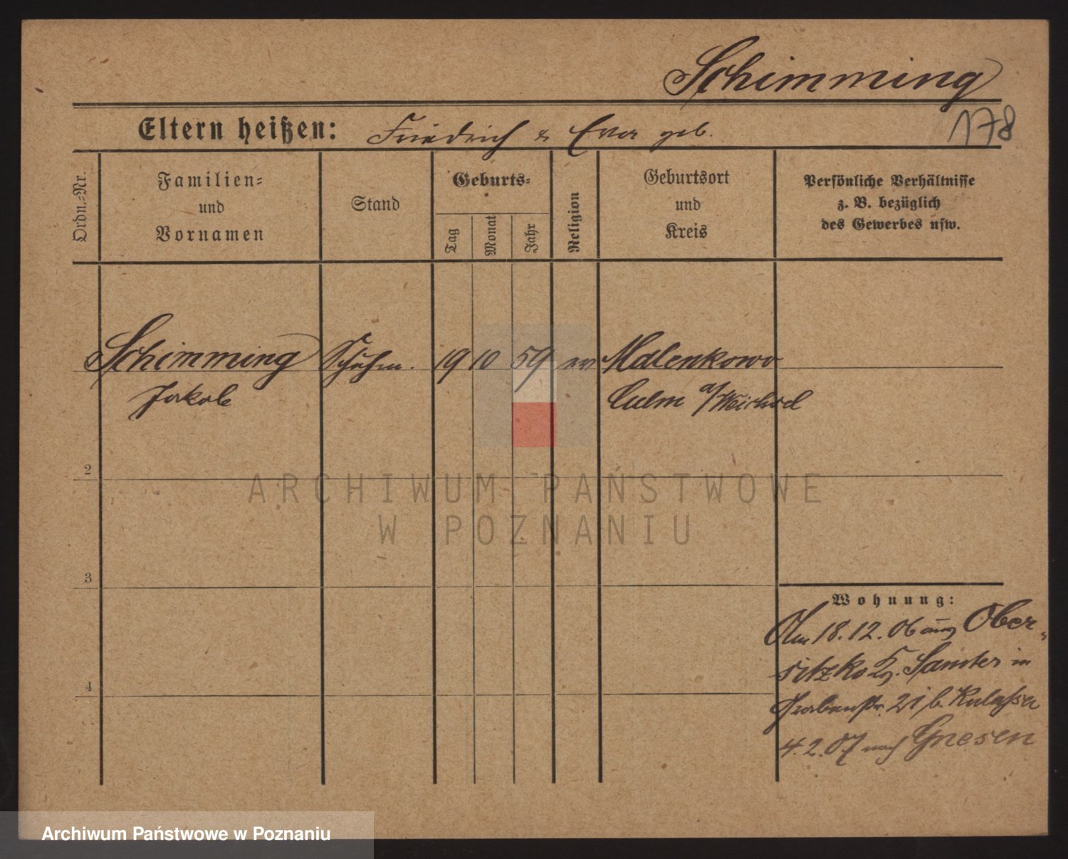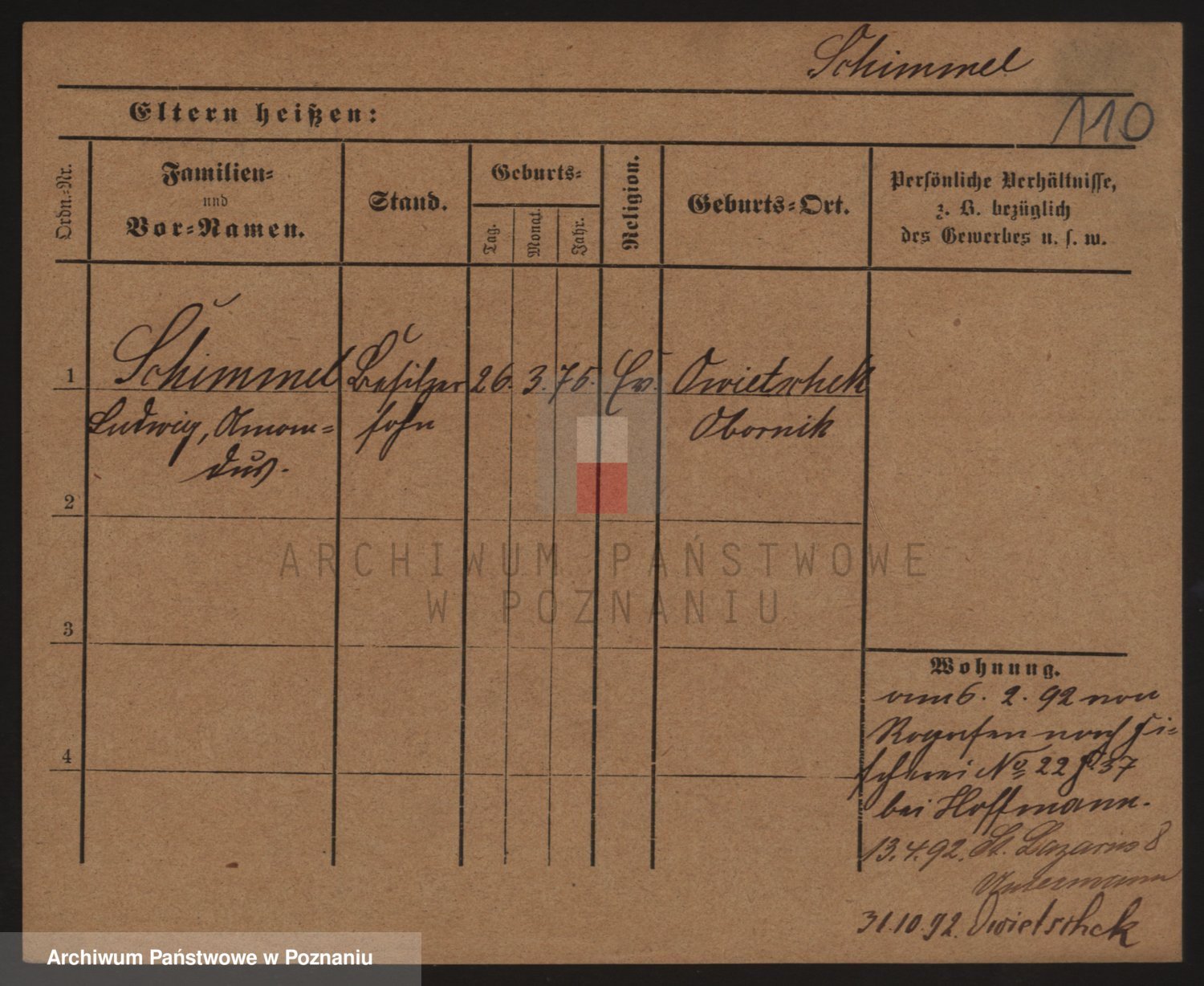 Podgląd karty osobowej dostępny jest po kliknięciu na nazwisko lub ikonkę karty. Można dokonywać powiększenia (ikony na górze) lub przechodzić między kolejnymi skanami (strzałki po bokach).