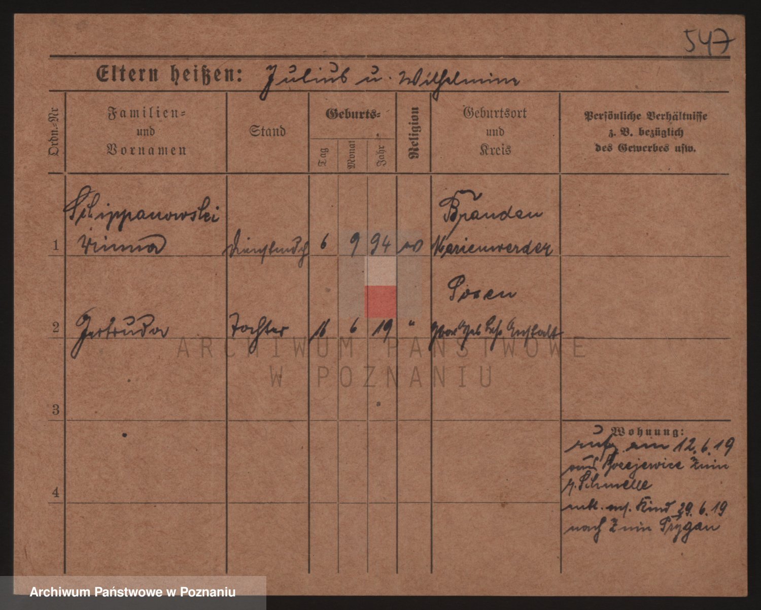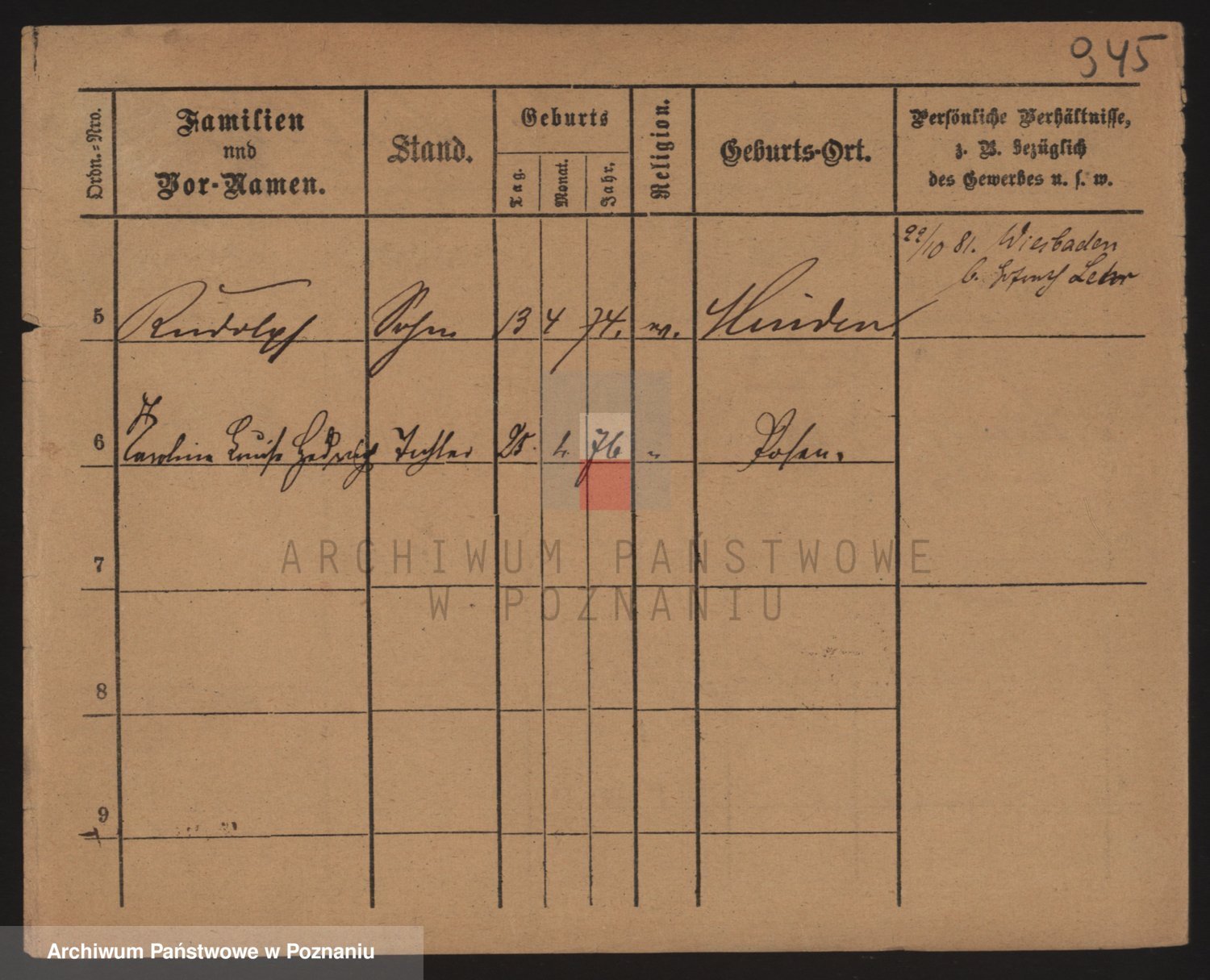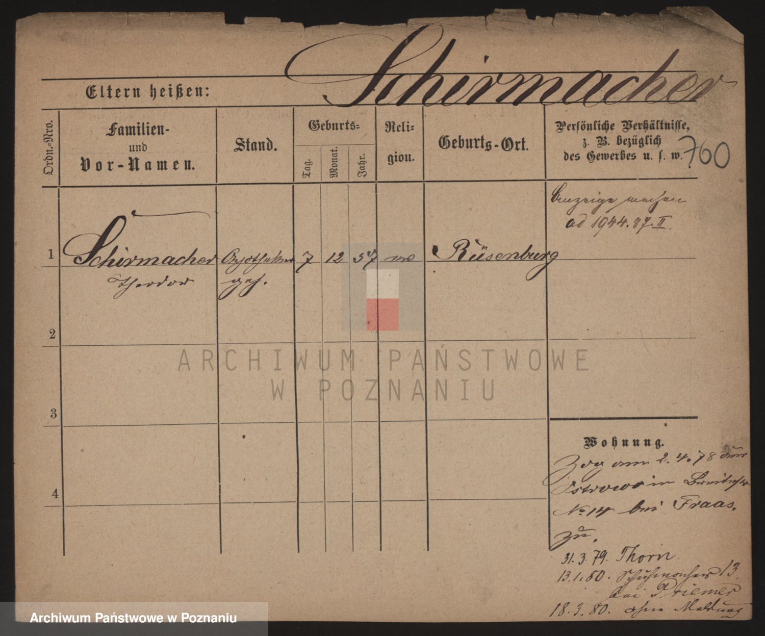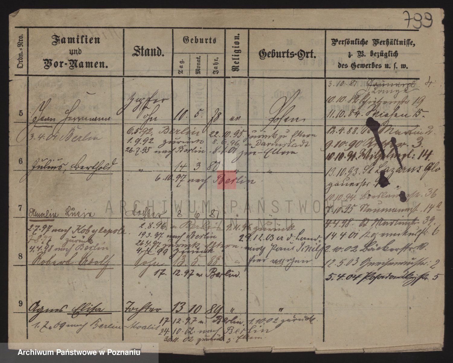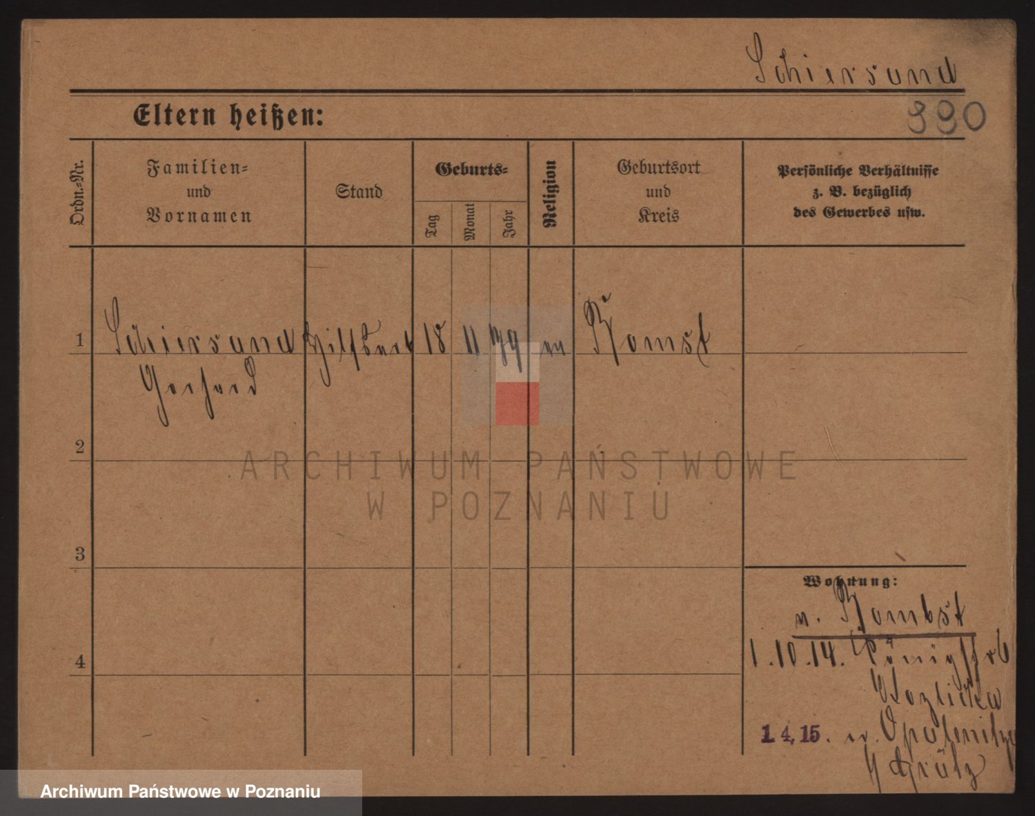 Podgląd karty osobowej dostępny jest po kliknięciu na nazwisko lub ikonkę karty. Można dokonywać powiększenia (ikony na górze) lub przechodzić między kolejnymi skanami (strzałki po bokach).