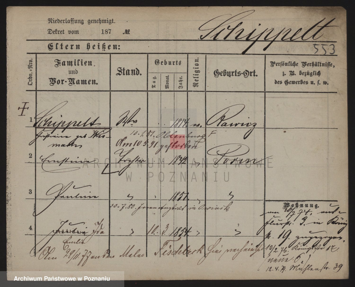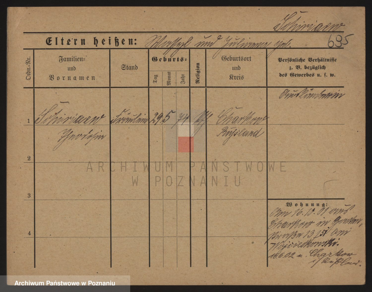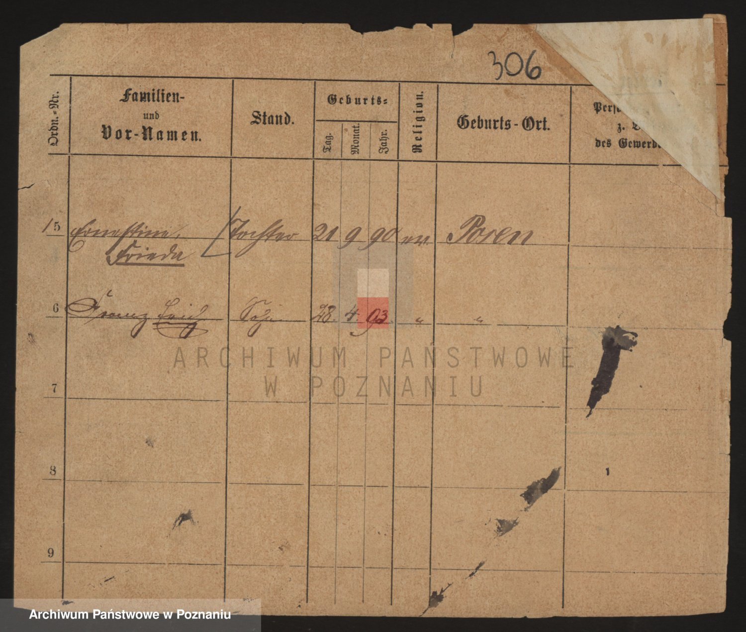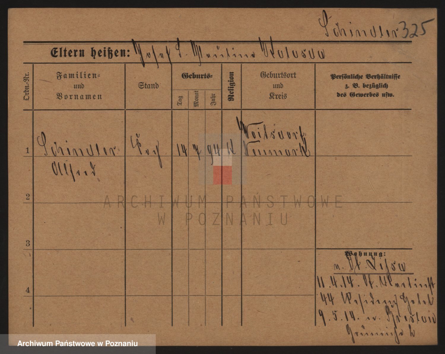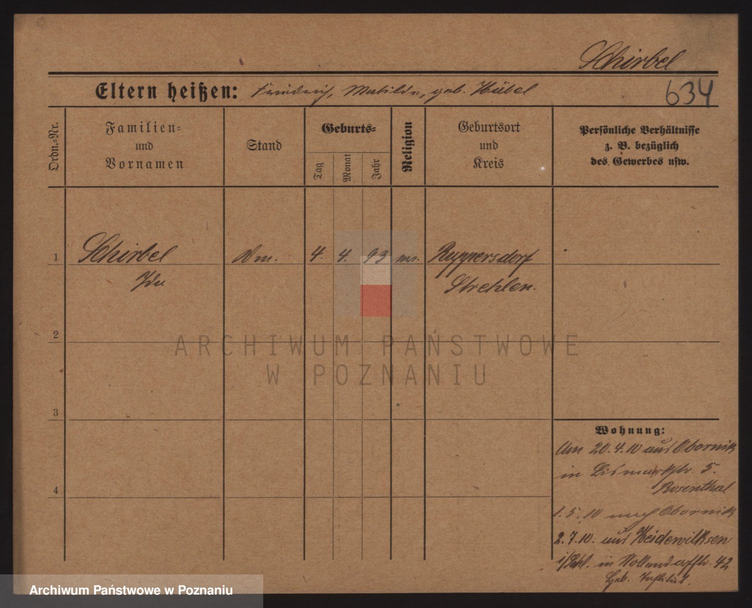 Podgląd karty osobowej dostępny jest po kliknięciu na nazwisko lub ikonkę karty. Można dokonywać powiększenia (ikony na górze) lub przechodzić między kolejnymi skanami (strzałki po bokach).