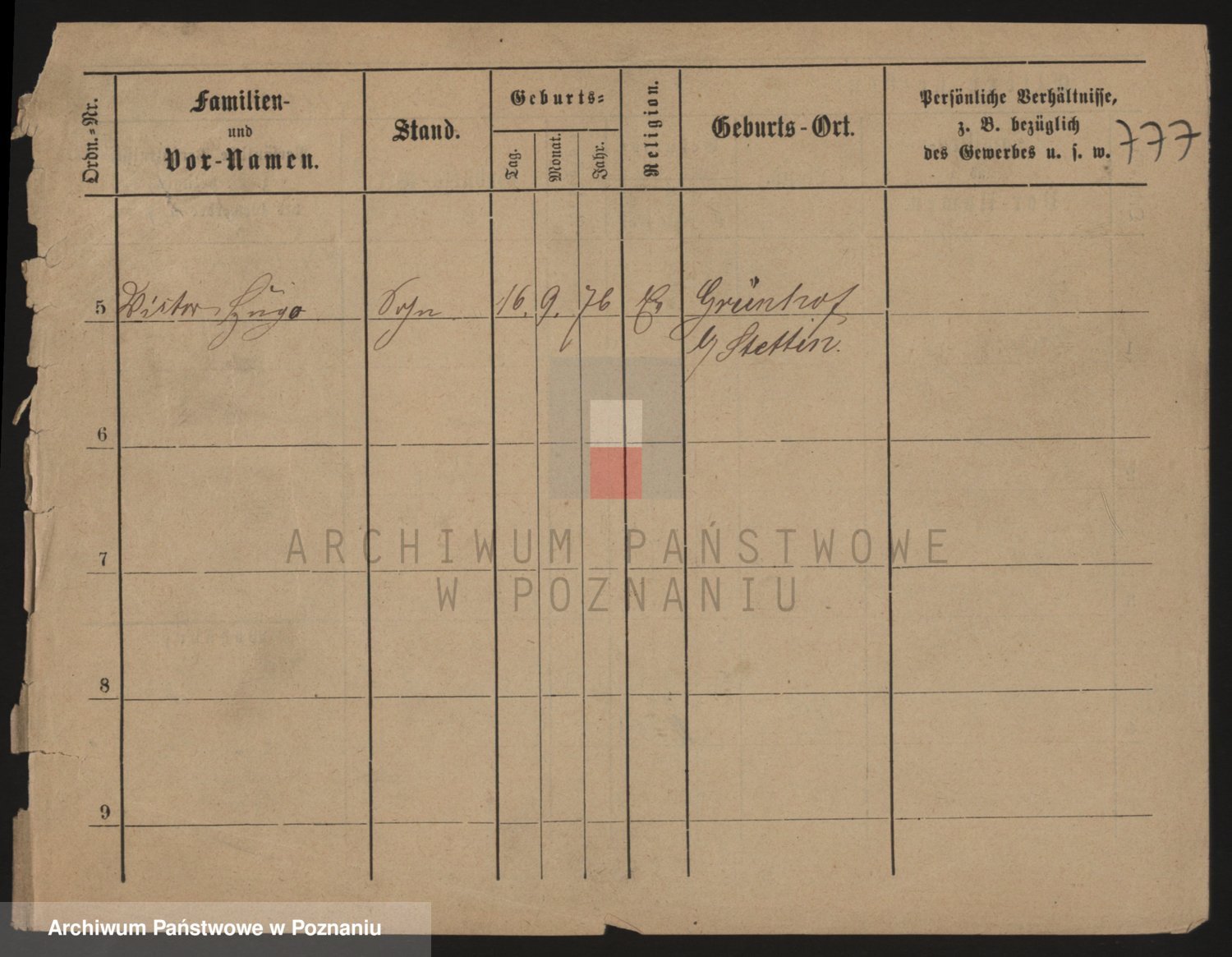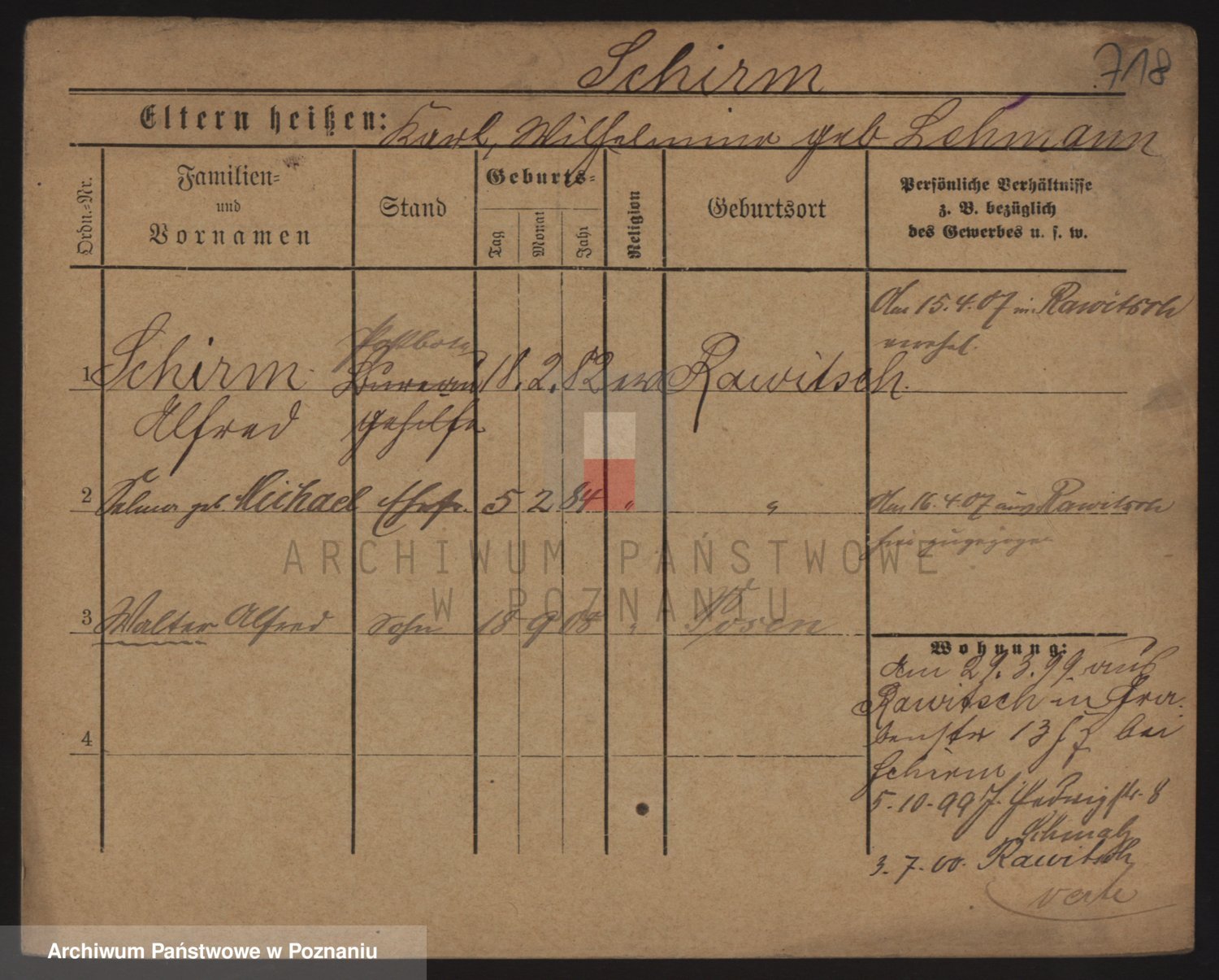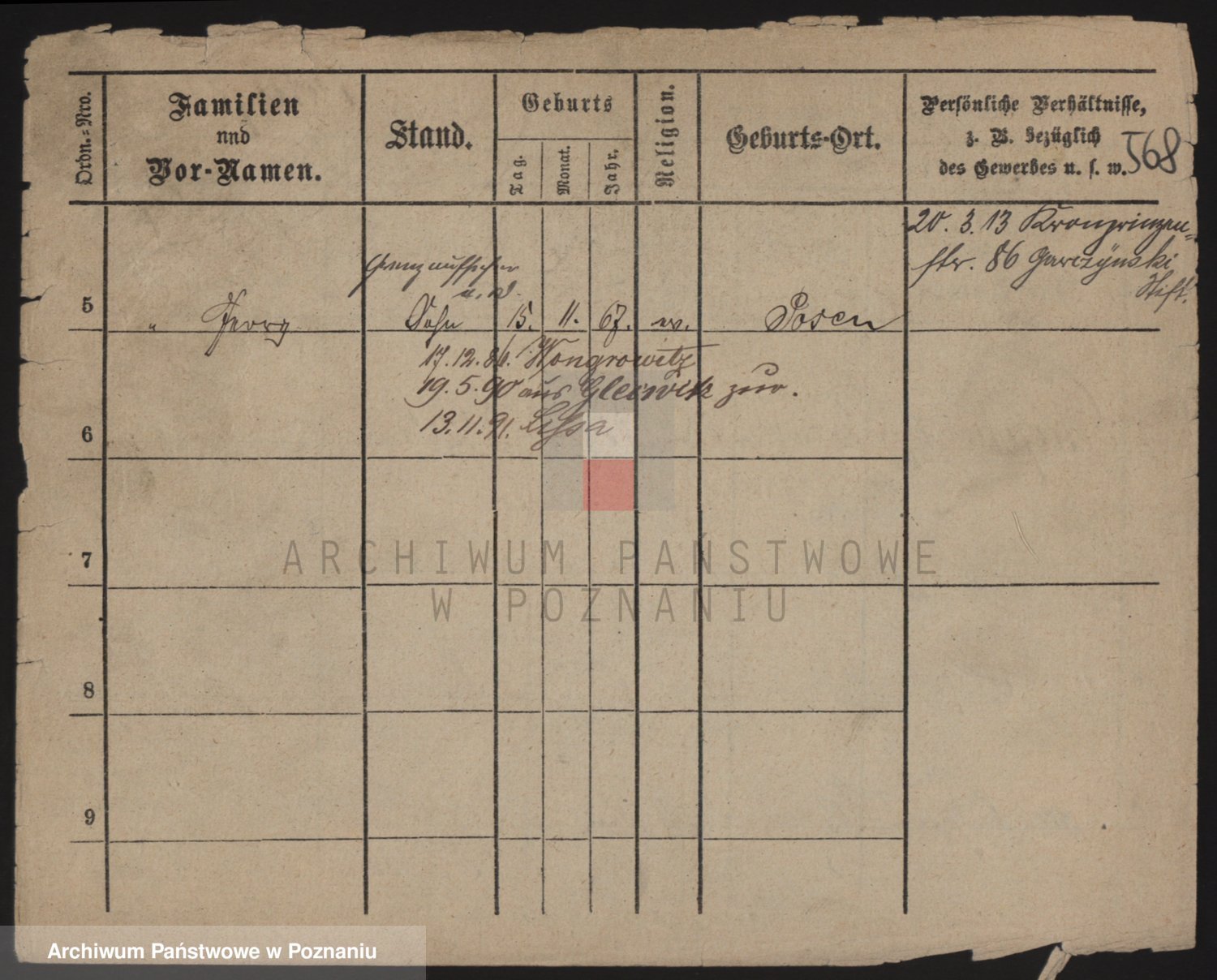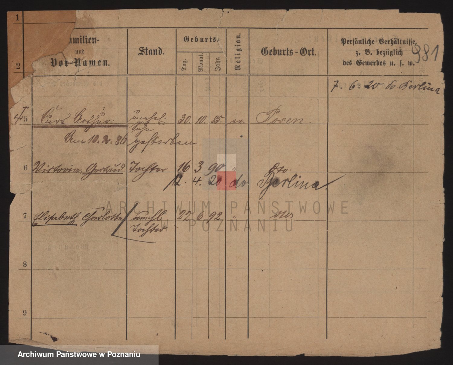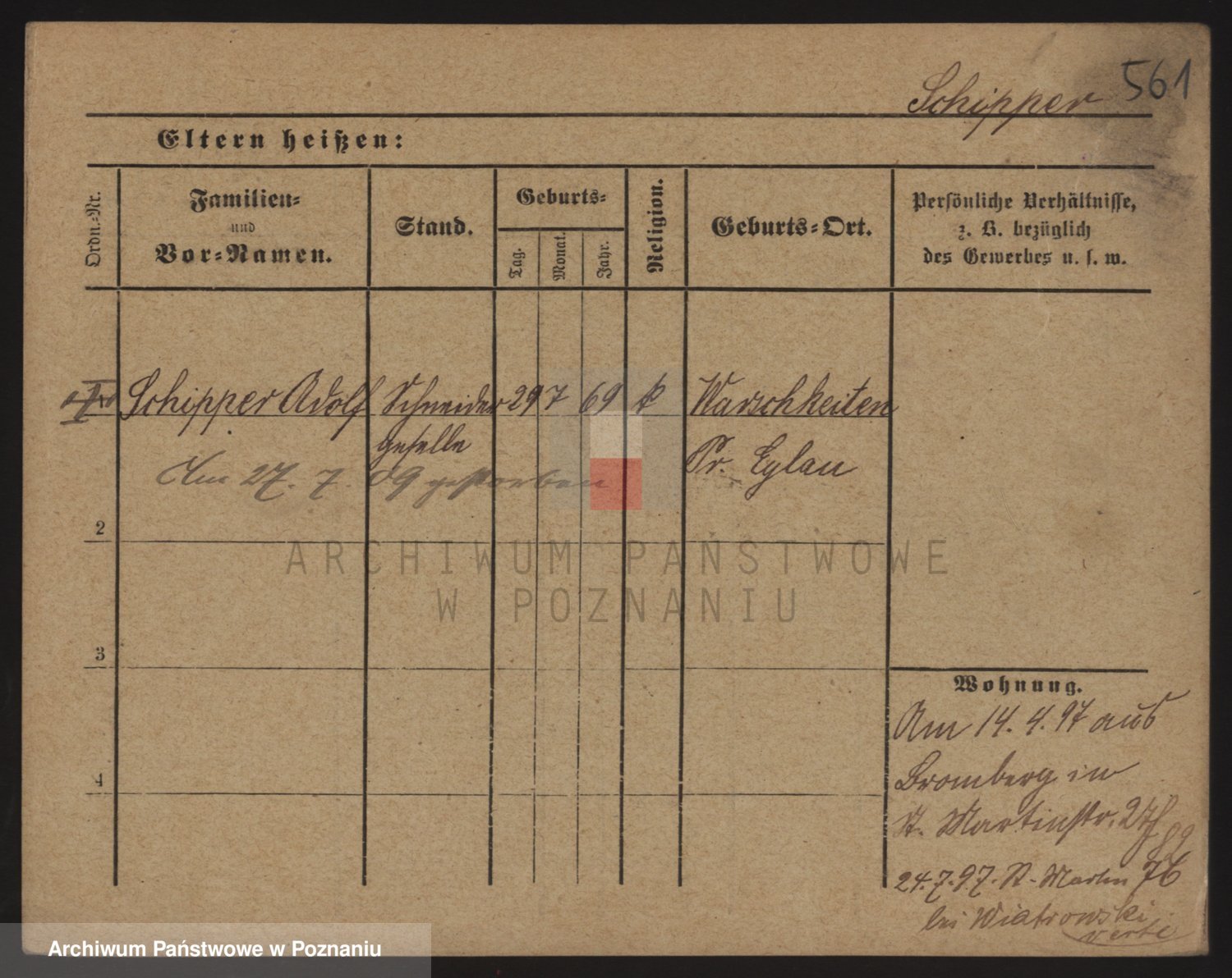 Podgląd karty osobowej dostępny jest po kliknięciu na nazwisko lub ikonkę karty. Można dokonywać powiększenia (ikony na górze) lub przechodzić między kolejnymi skanami (strzałki po bokach).