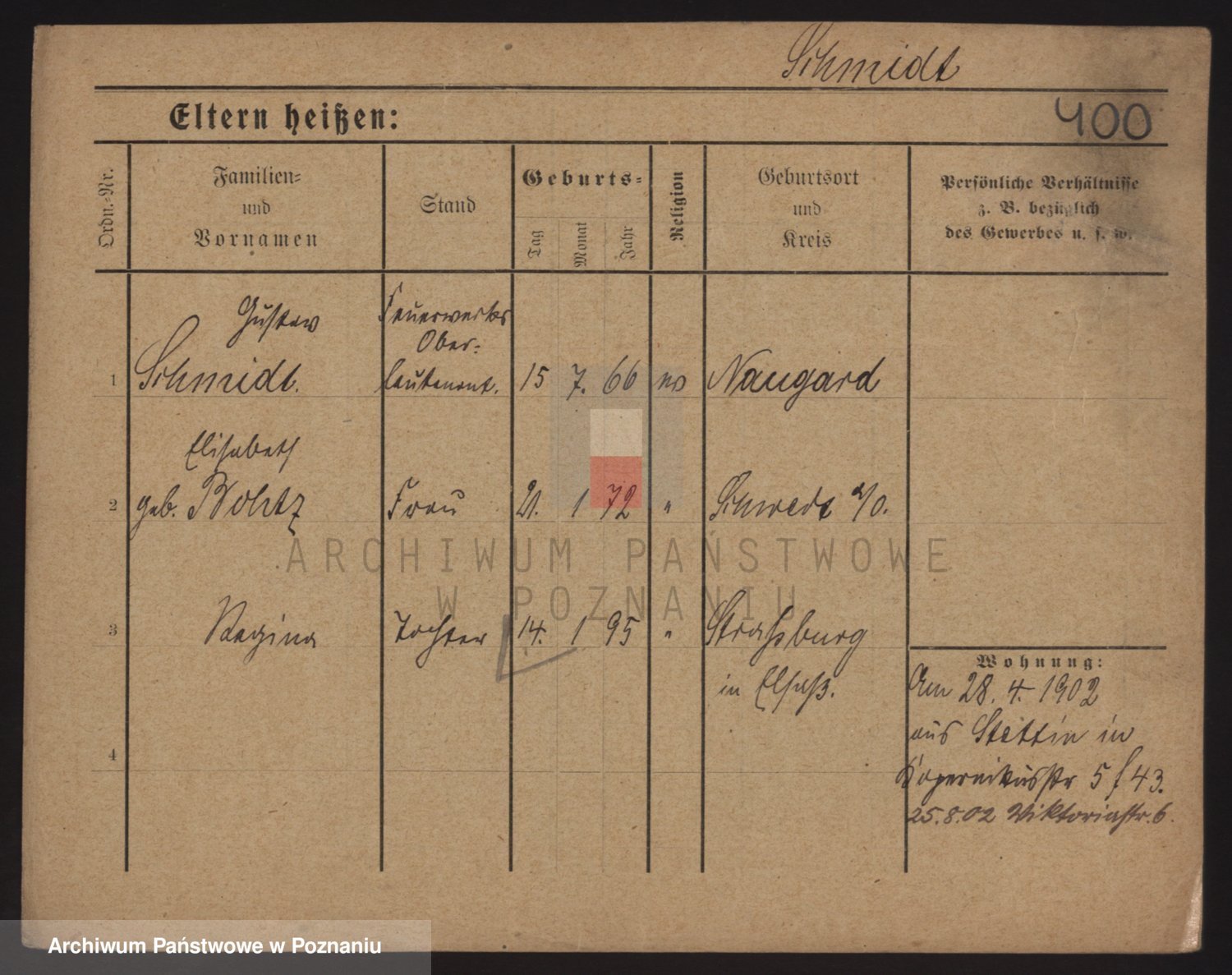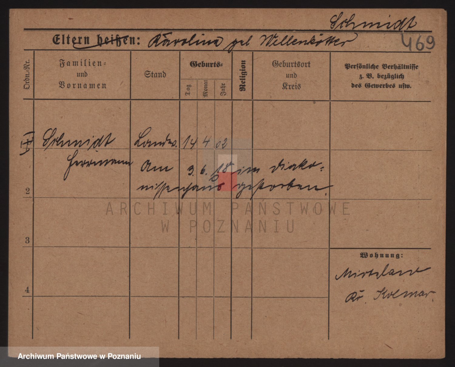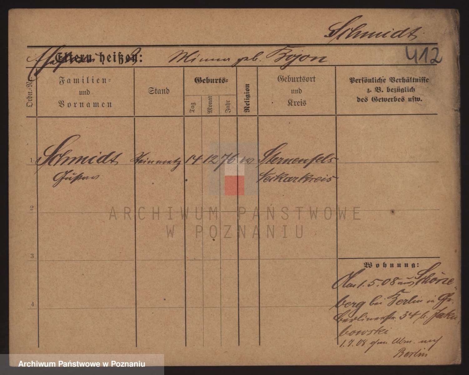 Schmidt z d. Vater I v. Preiss, Minna Emilie Bertha