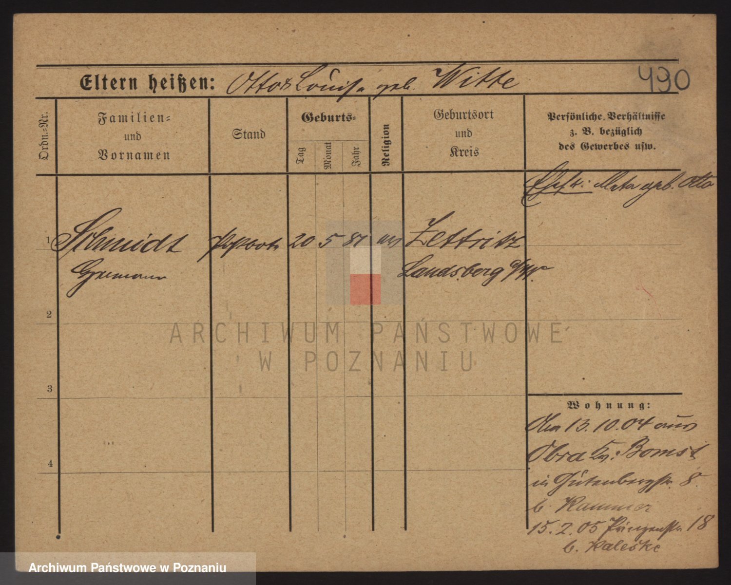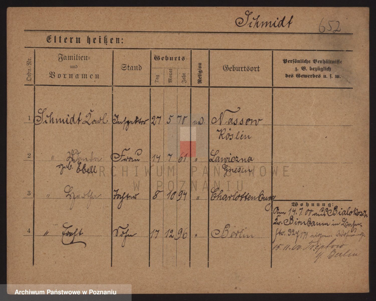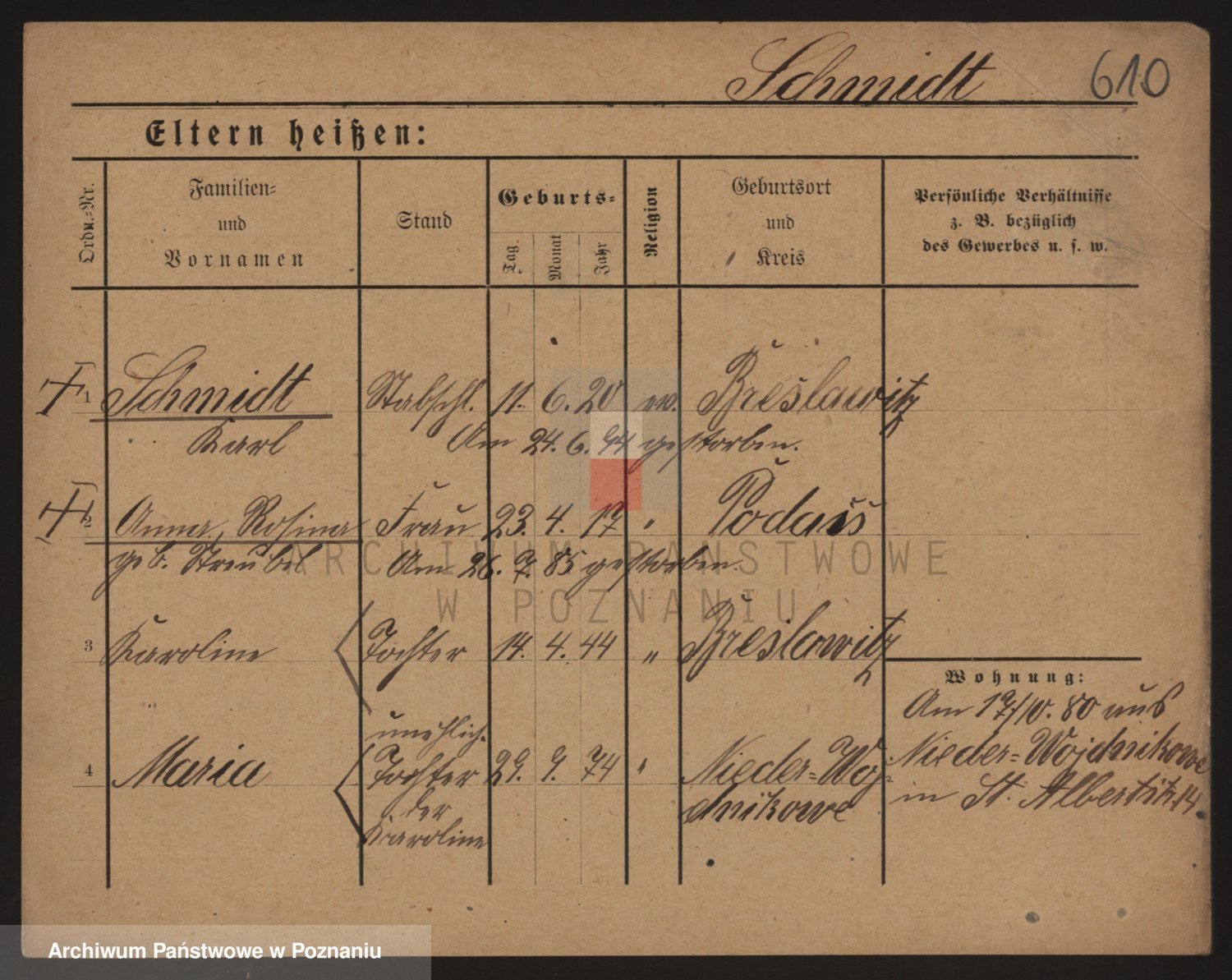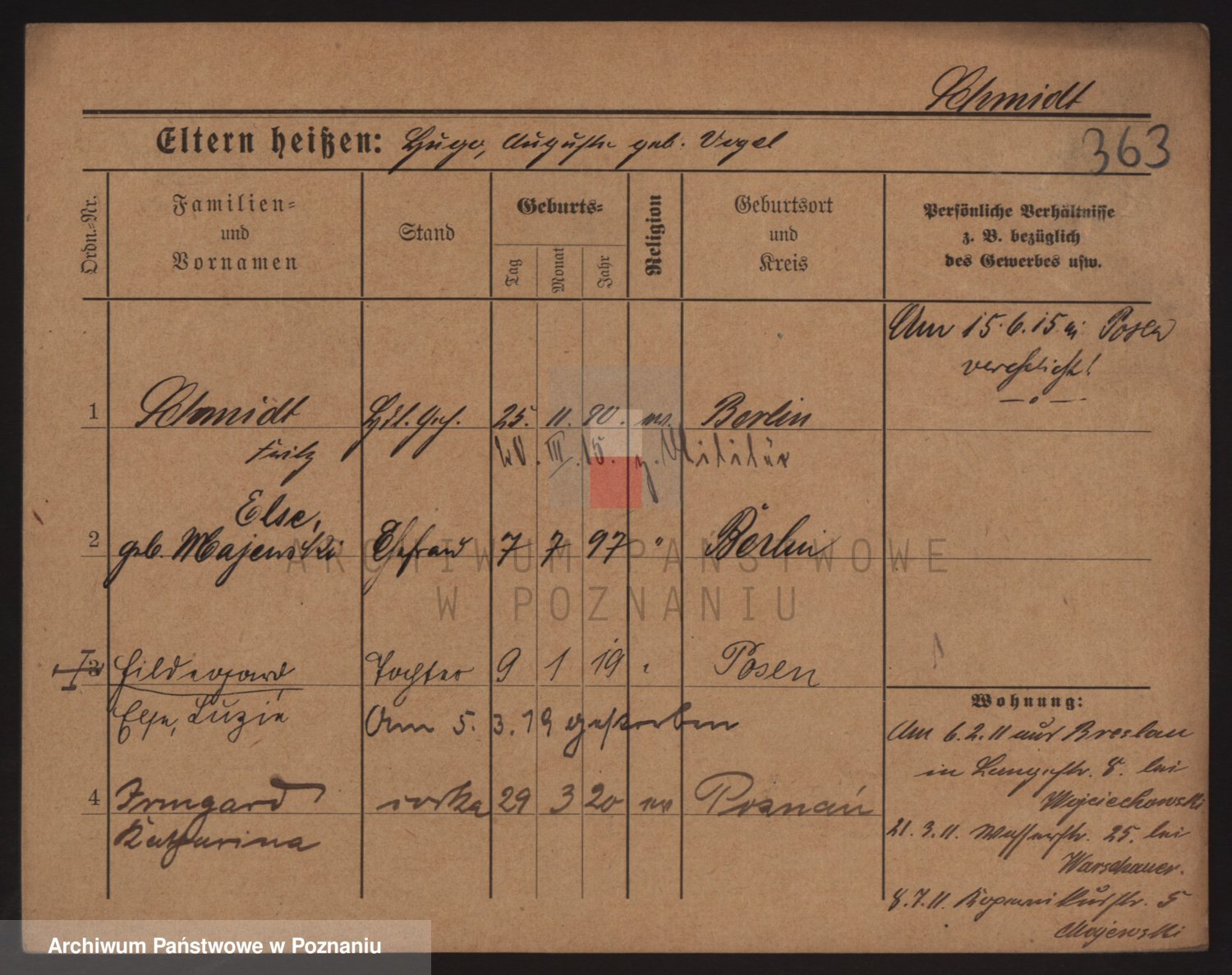 Schmidt z d. Vater I v. Preiss, Minna Emilie Bertha