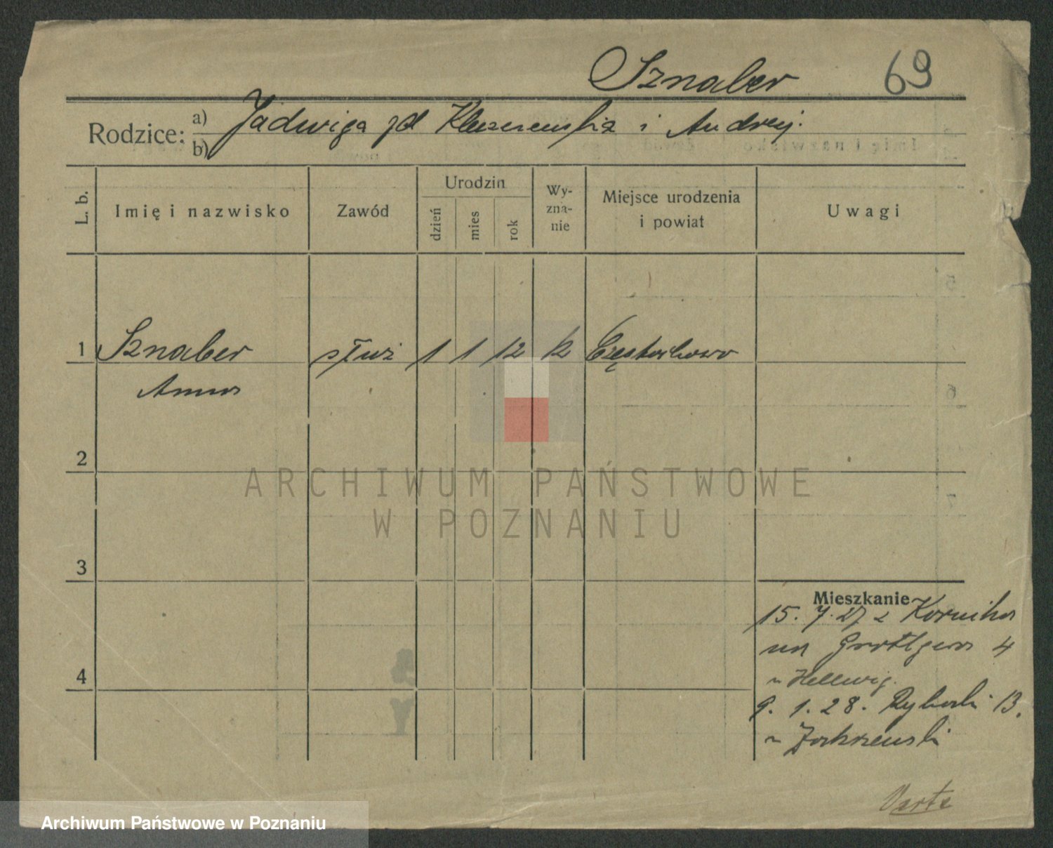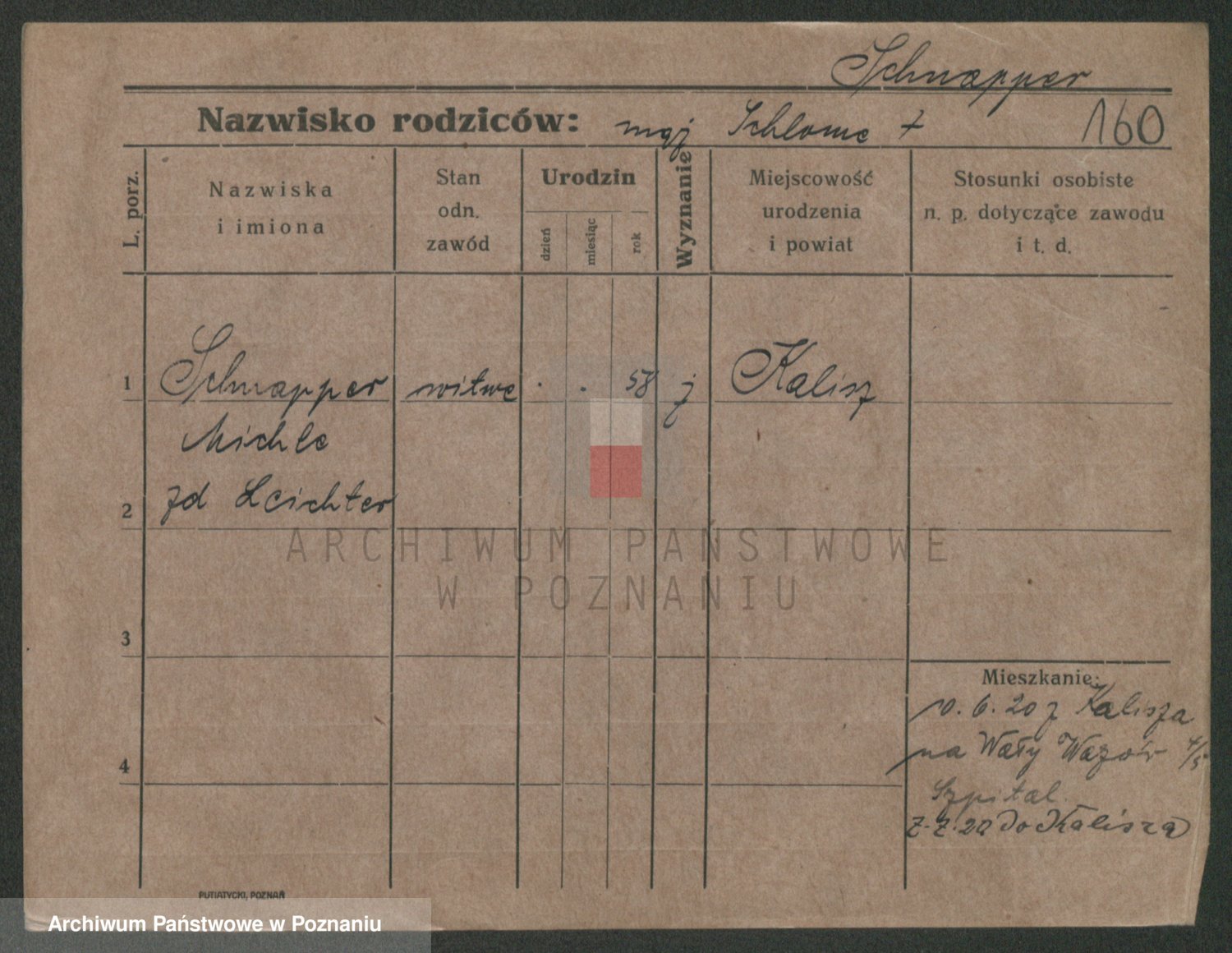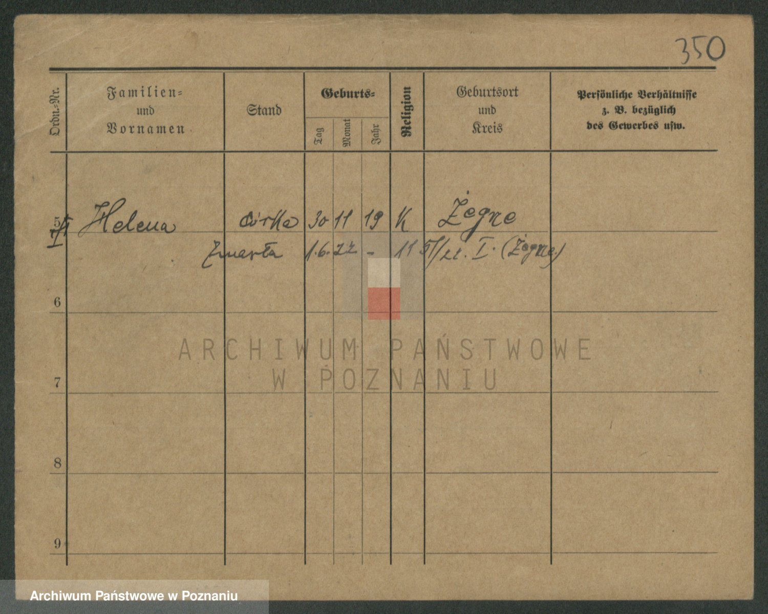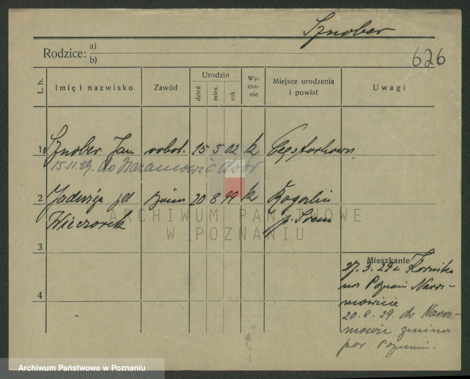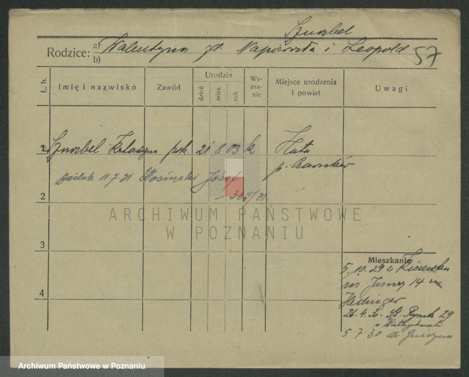 Podgląd karty osobowej dostępny jest po kliknięciu na nazwisko lub ikonkę karty. Można dokonywać powiększenia (ikony na górze) lub przechodzić między kolejnymi skanami (strzałki po bokach).