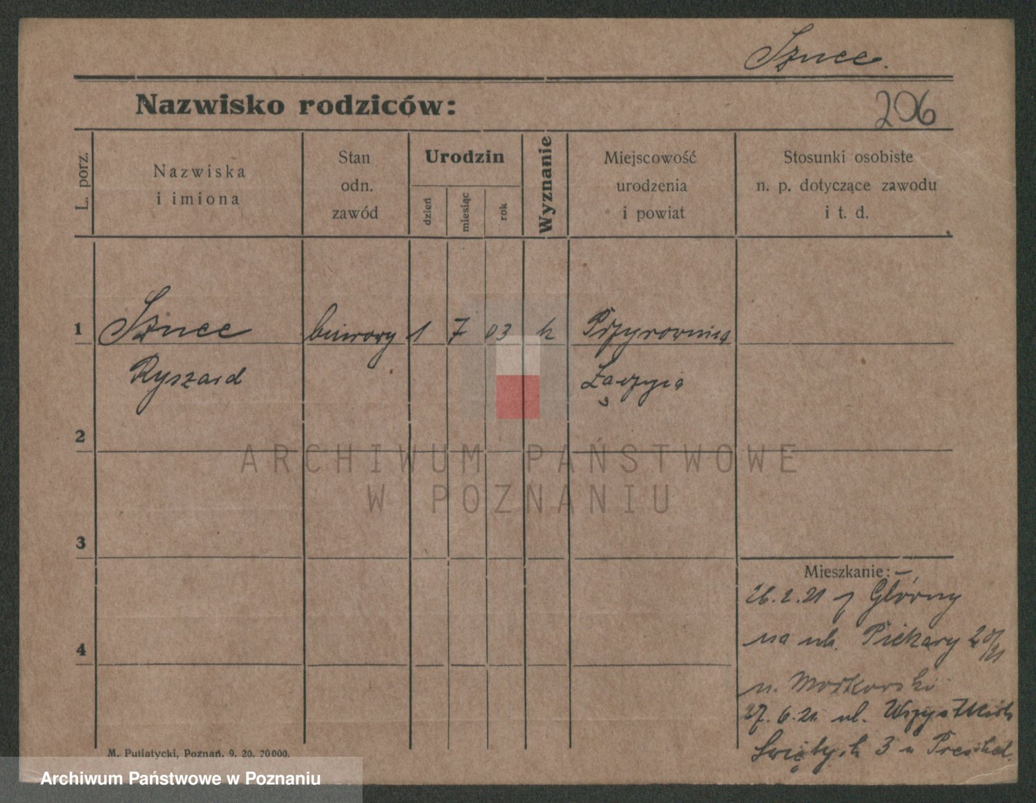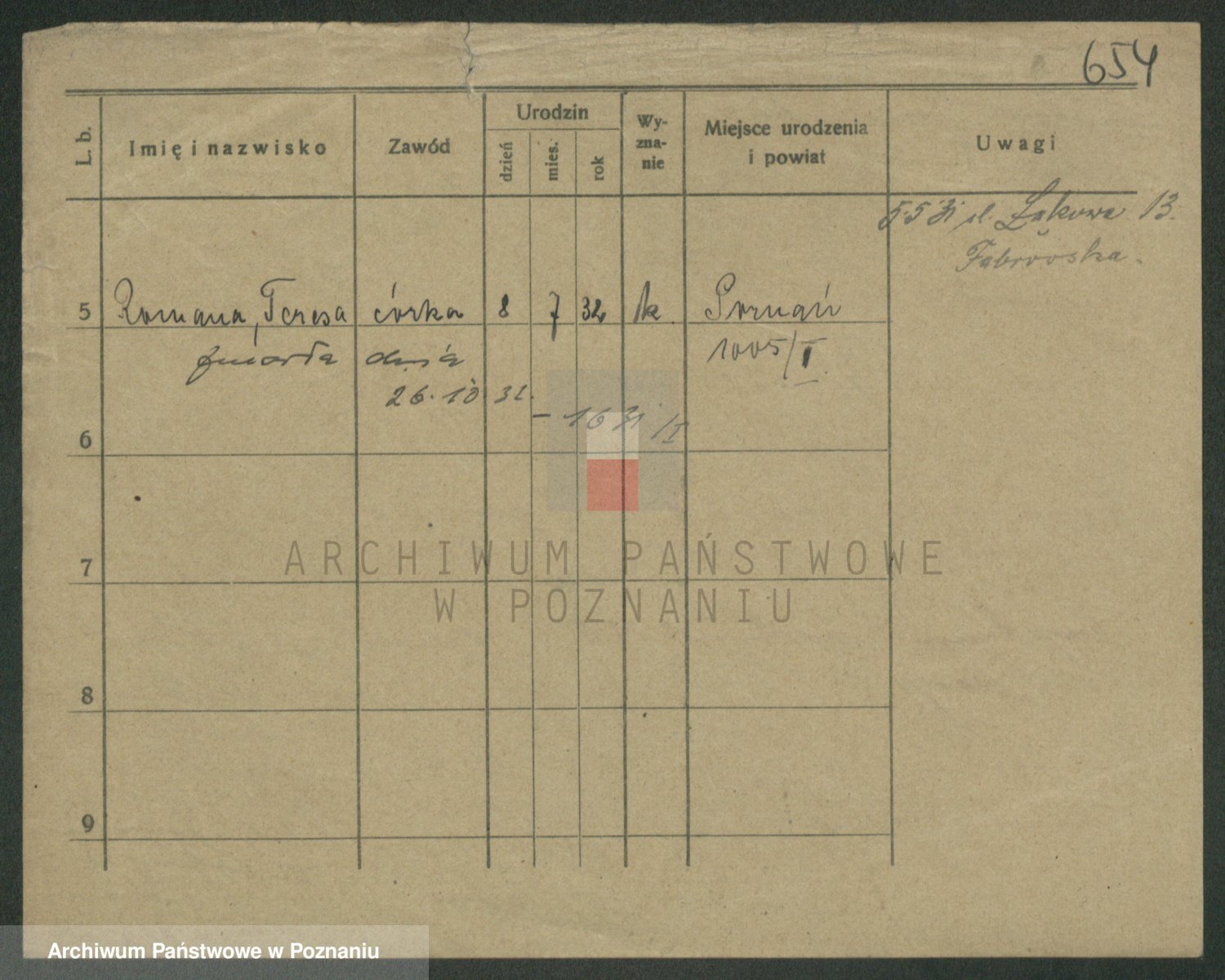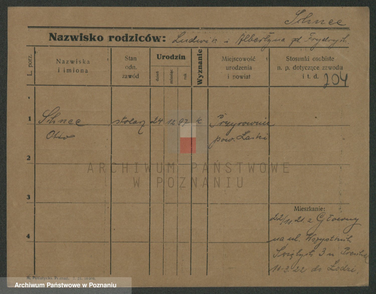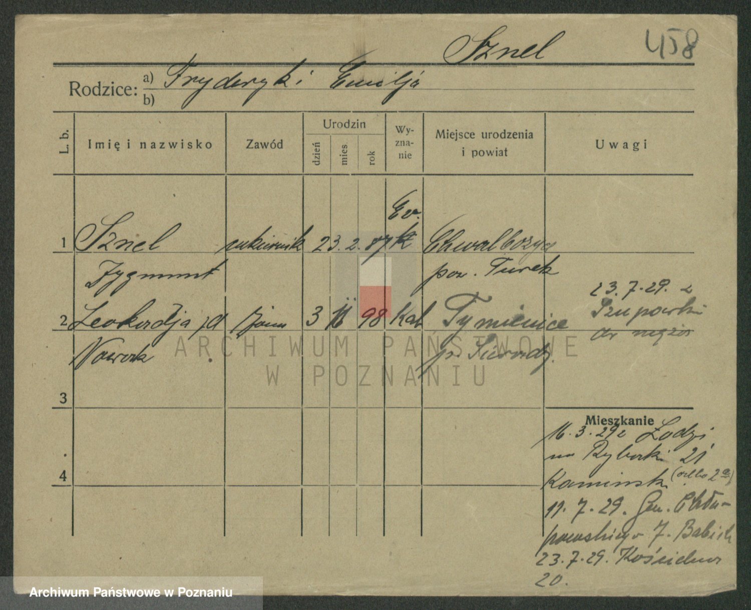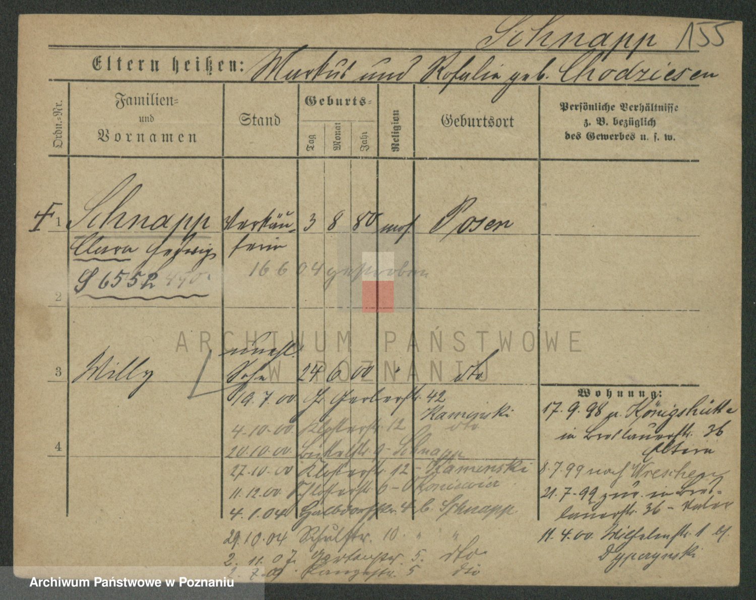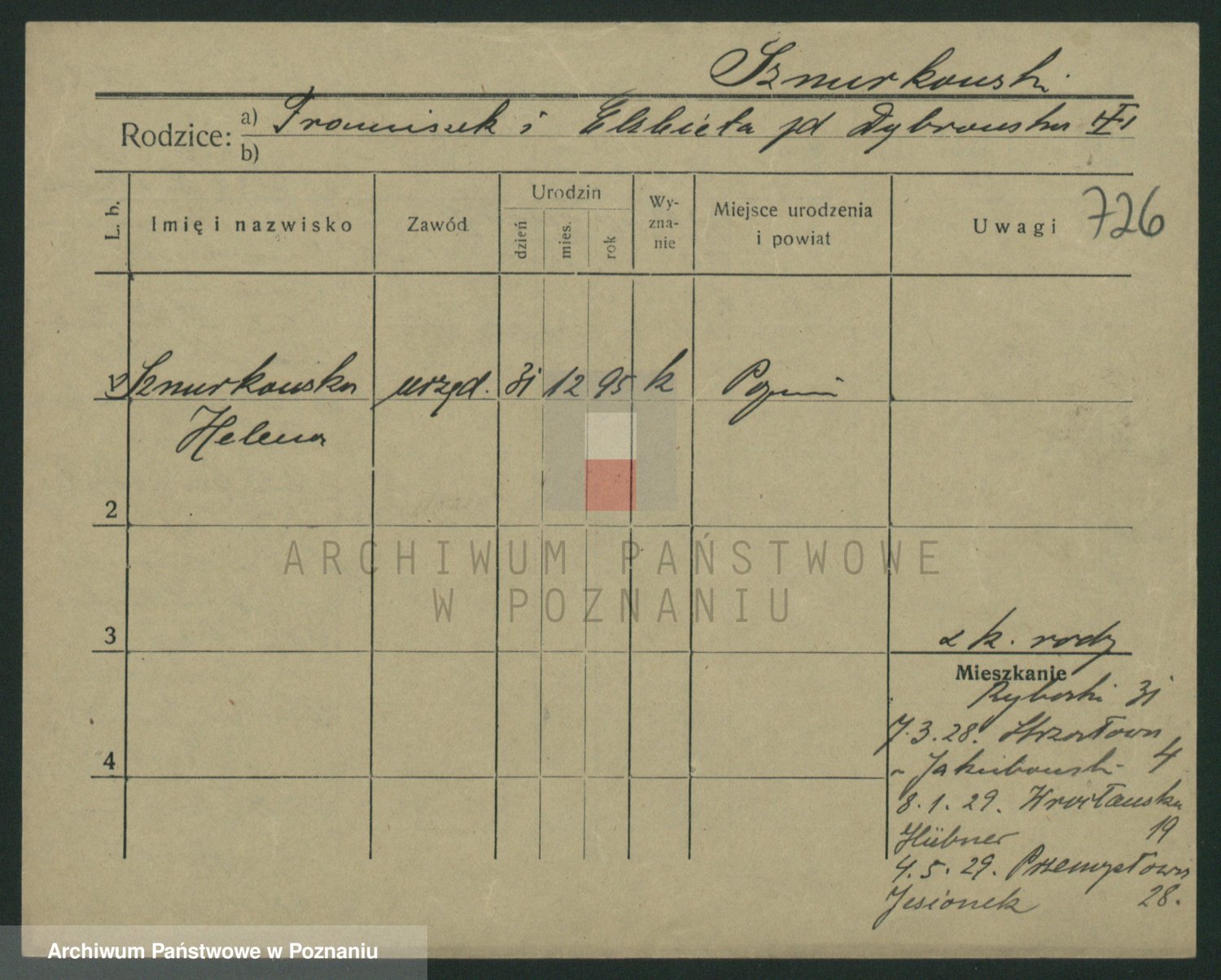 Podgląd karty osobowej dostępny jest po kliknięciu na nazwisko lub ikonkę karty. Można dokonywać powiększenia (ikony na górze) lub przechodzić między kolejnymi skanami (strzałki po bokach).