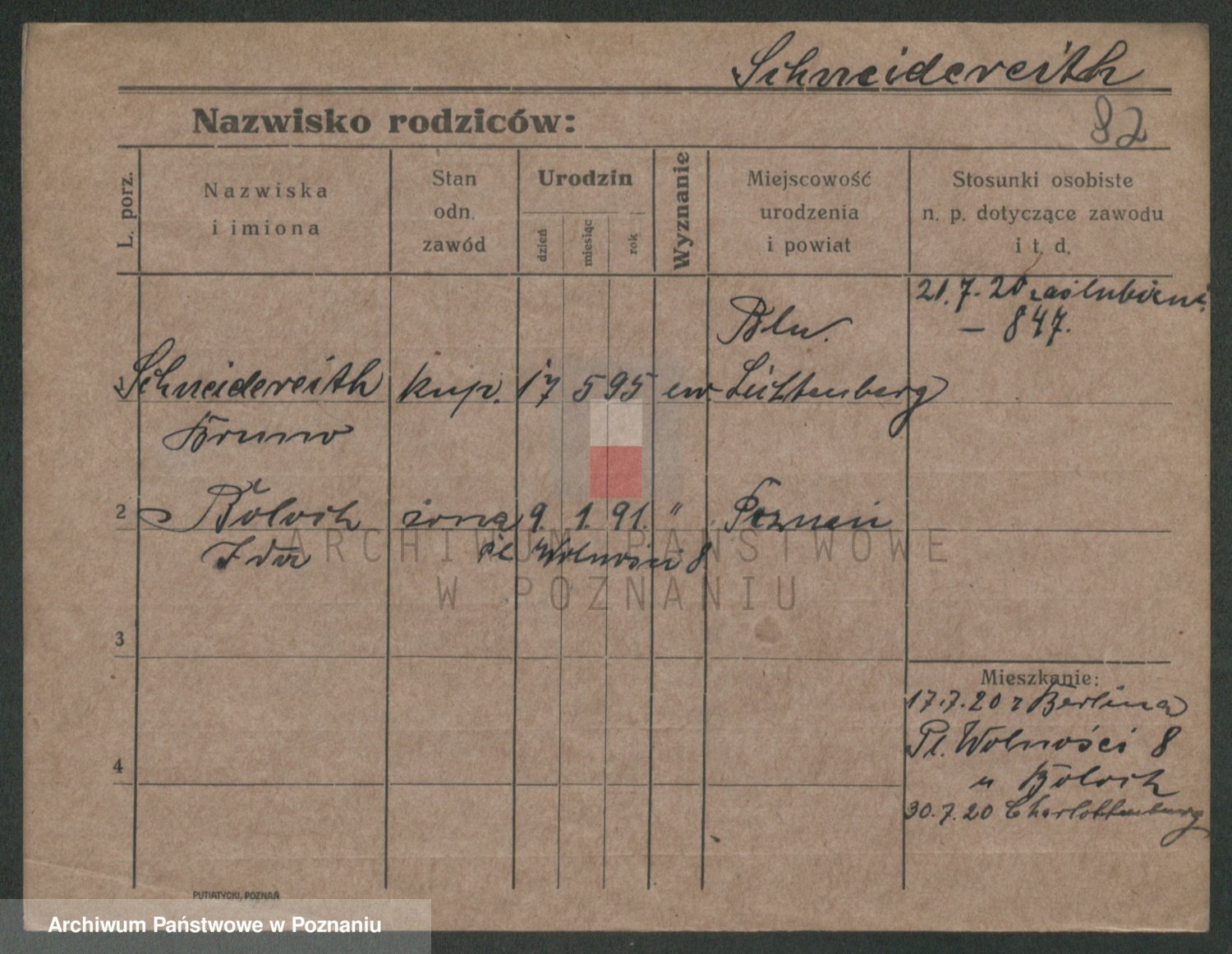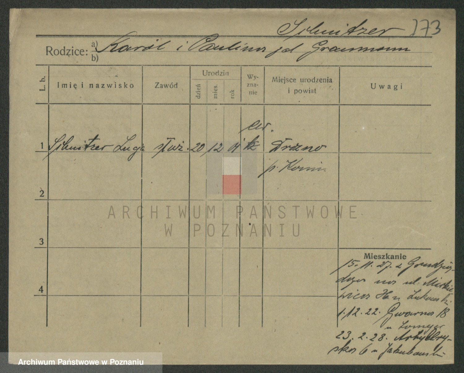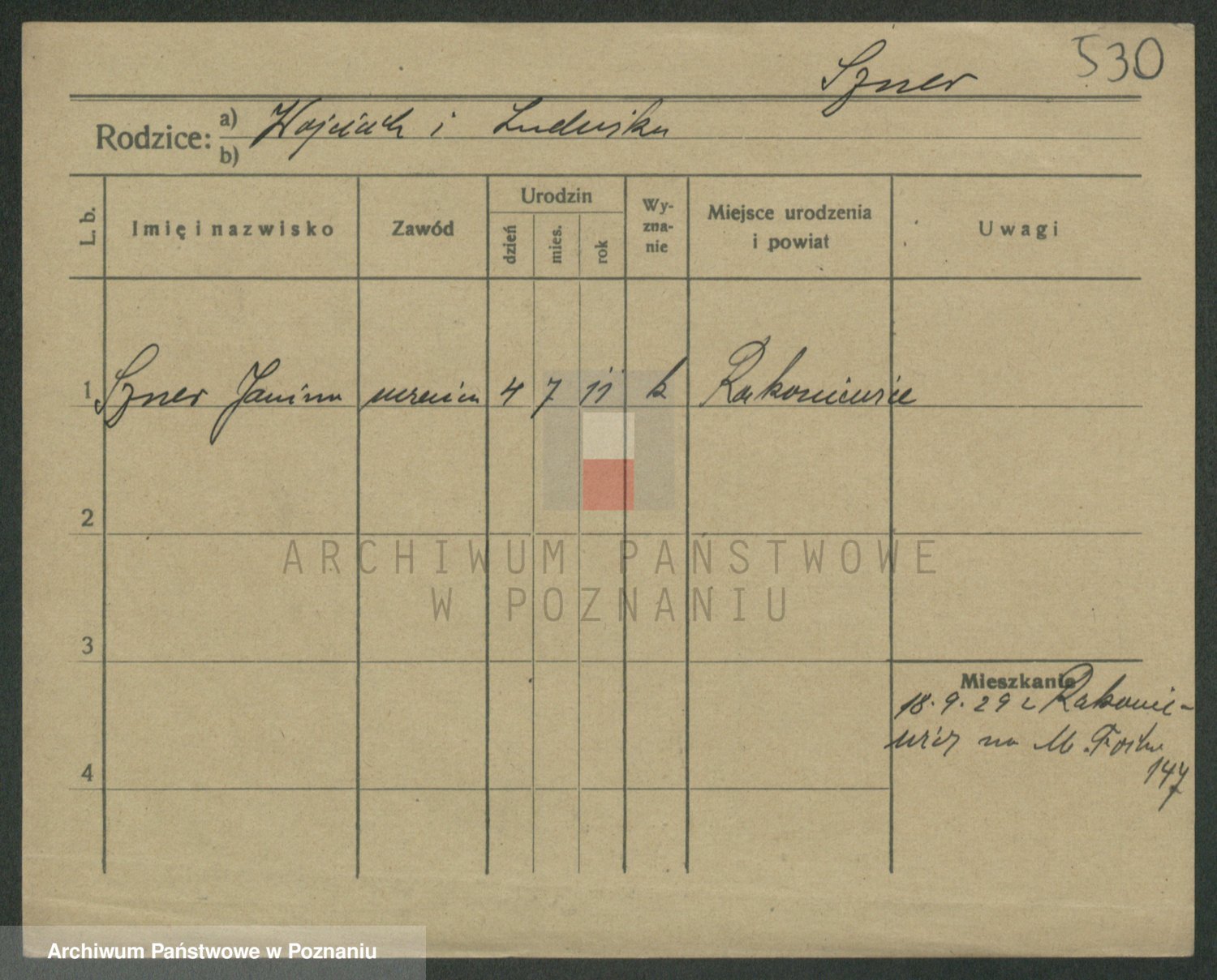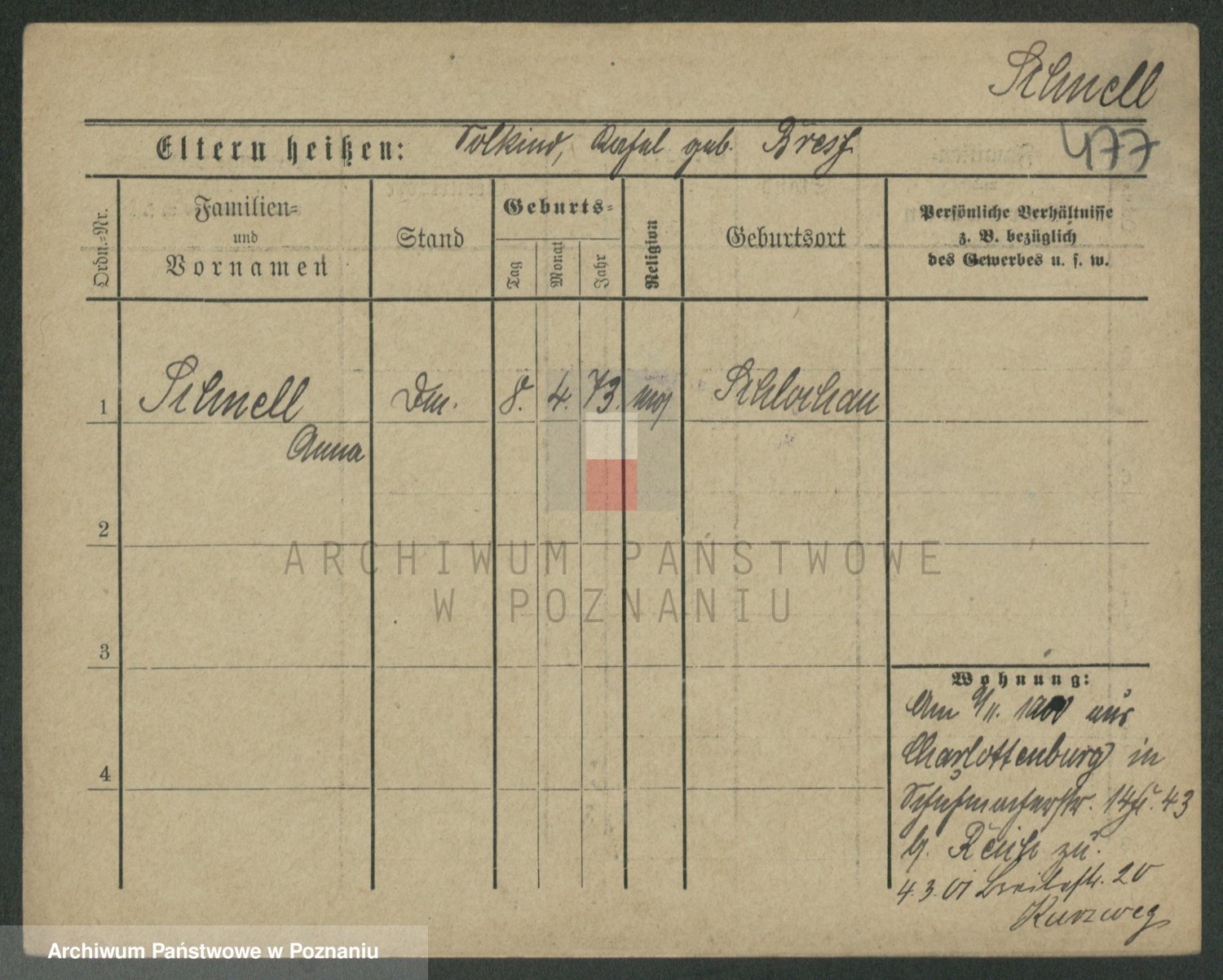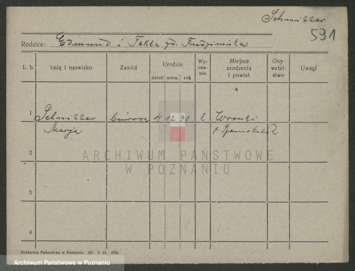 Podgląd karty osobowej dostępny jest po kliknięciu na nazwisko lub ikonkę karty. Można dokonywać powiększenia (ikony na górze) lub przechodzić między kolejnymi skanami (strzałki po bokach).
