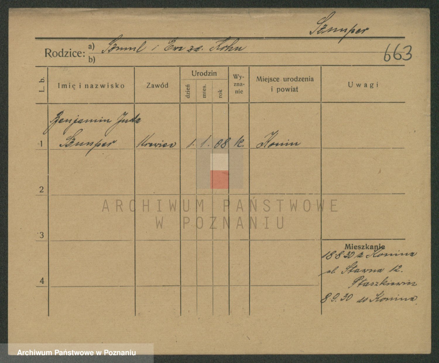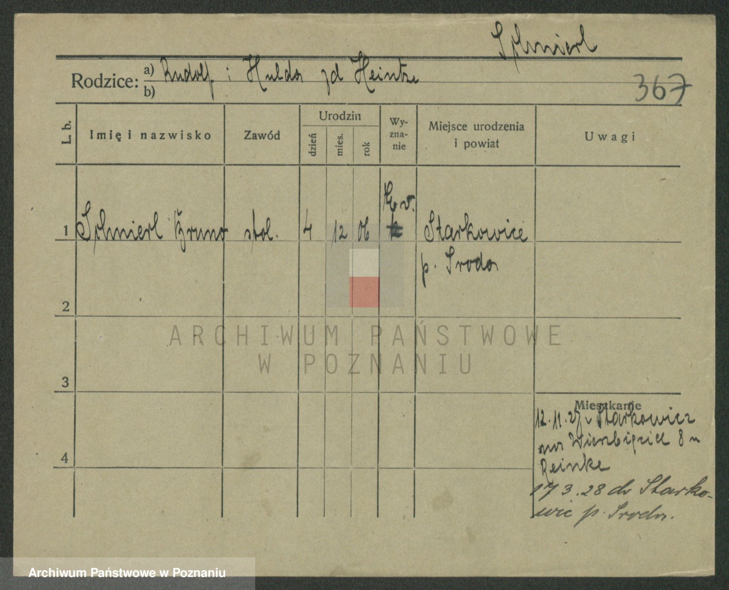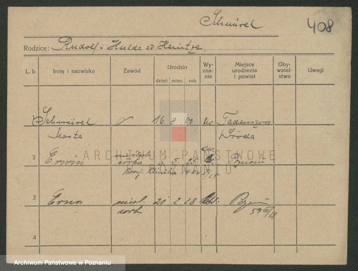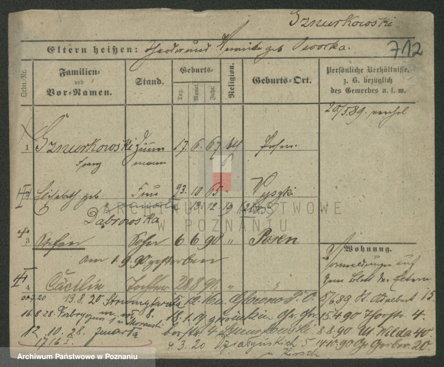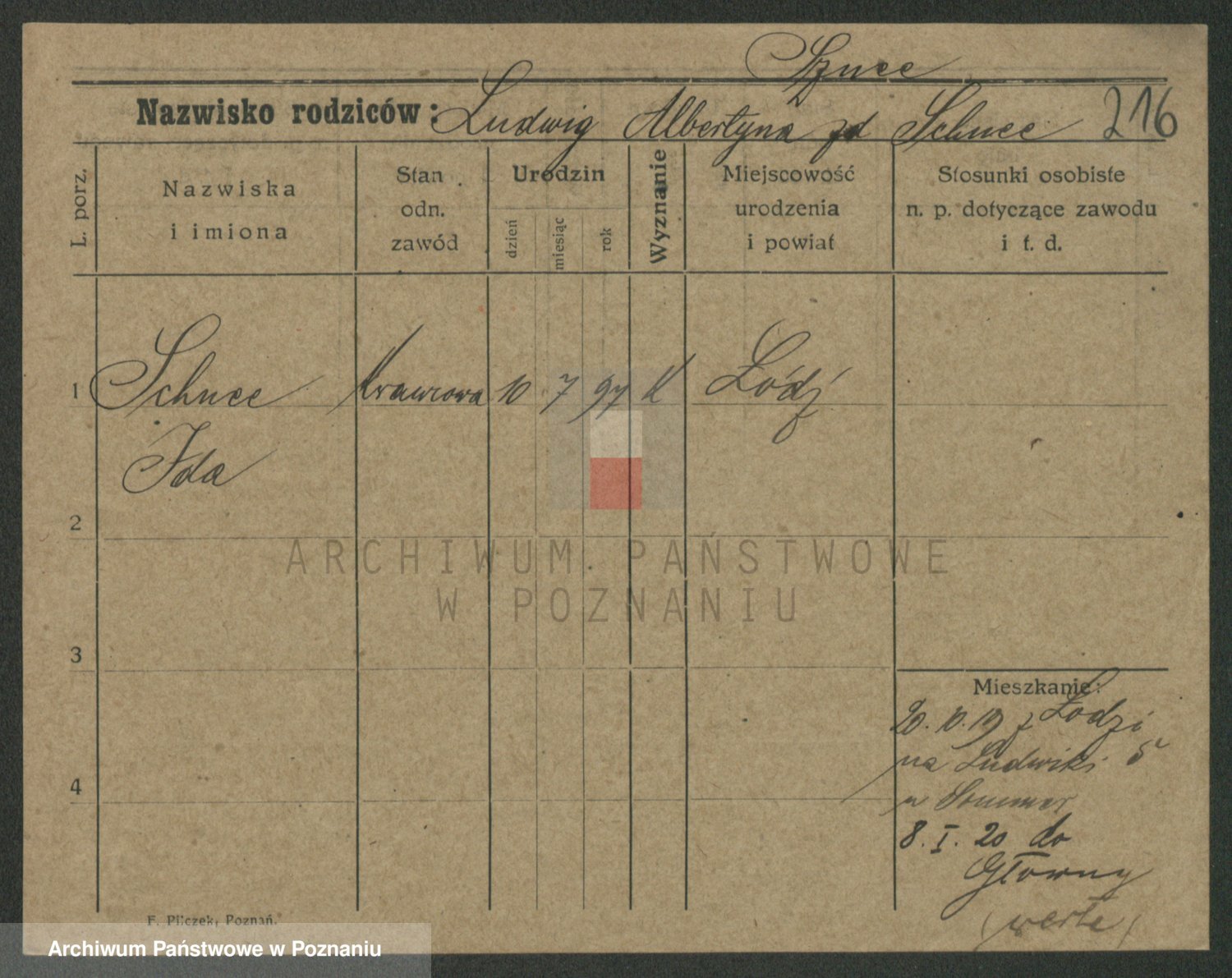 Podgląd karty osobowej dostępny jest po kliknięciu na nazwisko lub ikonkę karty. Można dokonywać powiększenia (ikony na górze) lub przechodzić między kolejnymi skanami (strzałki po bokach).