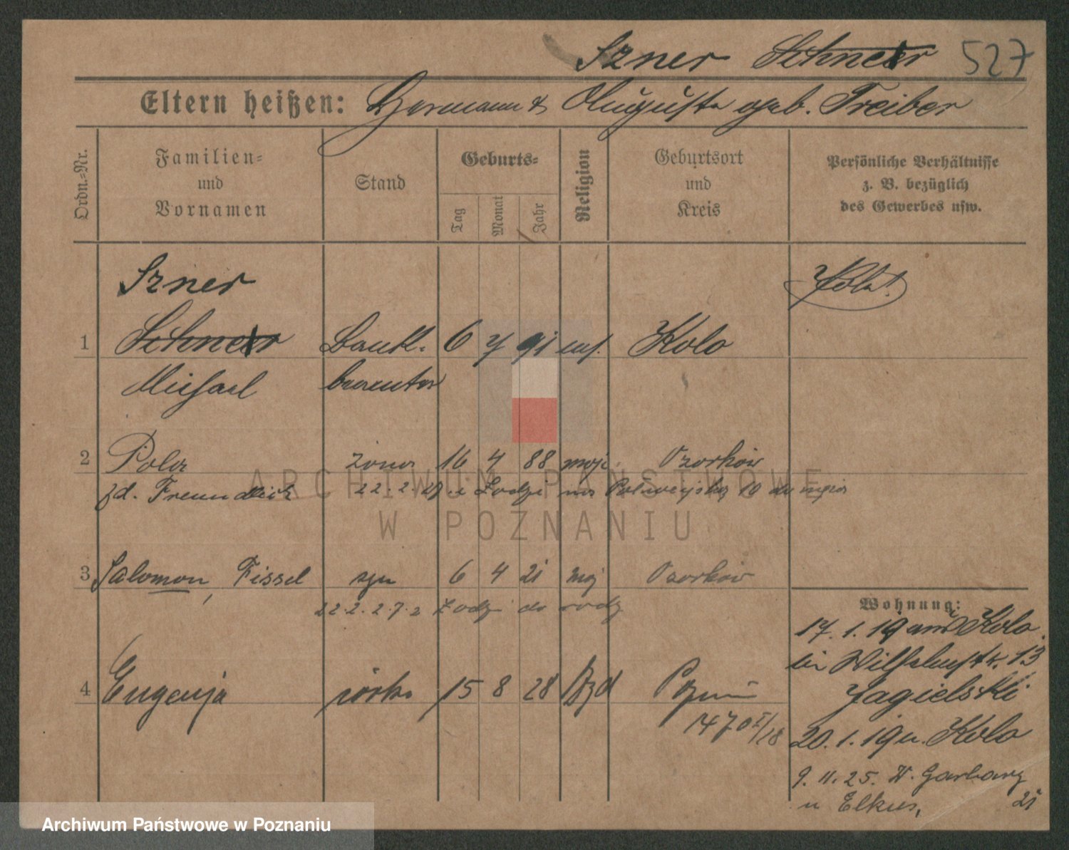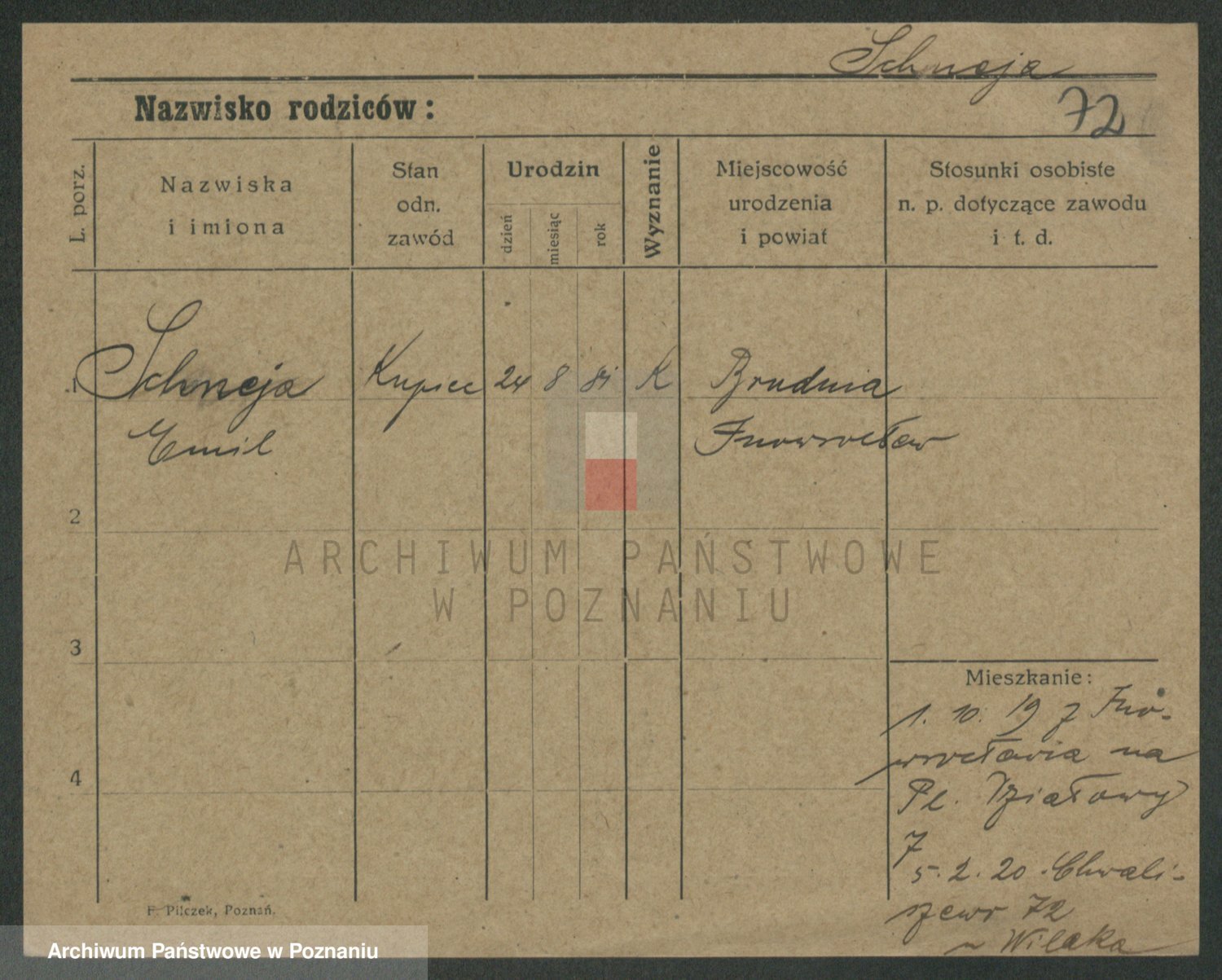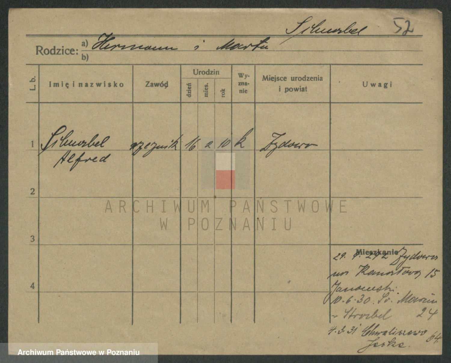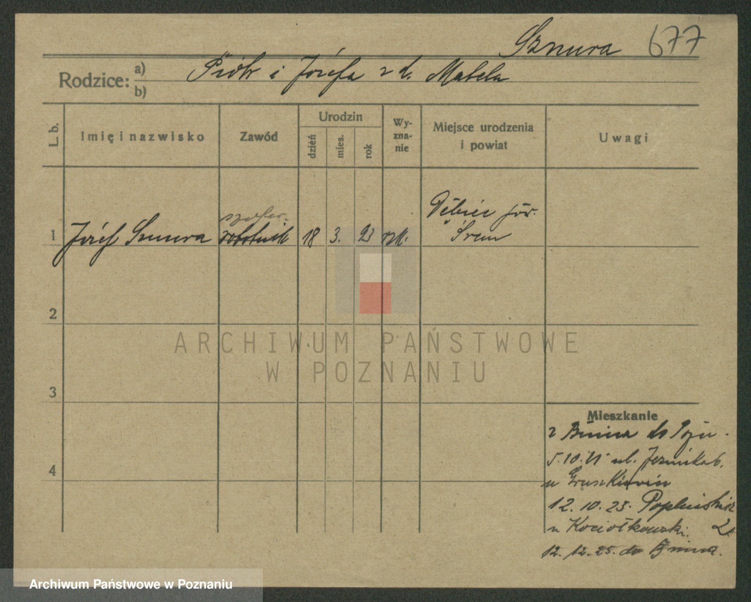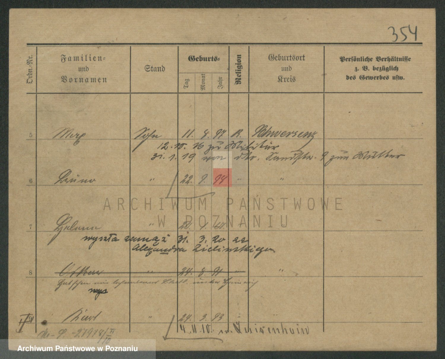 Podgląd karty osobowej dostępny jest po kliknięciu na nazwisko lub ikonkę karty. Można dokonywać powiększenia (ikony na górze) lub przechodzić między kolejnymi skanami (strzałki po bokach).
