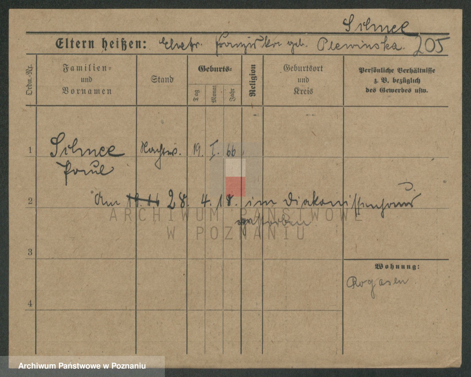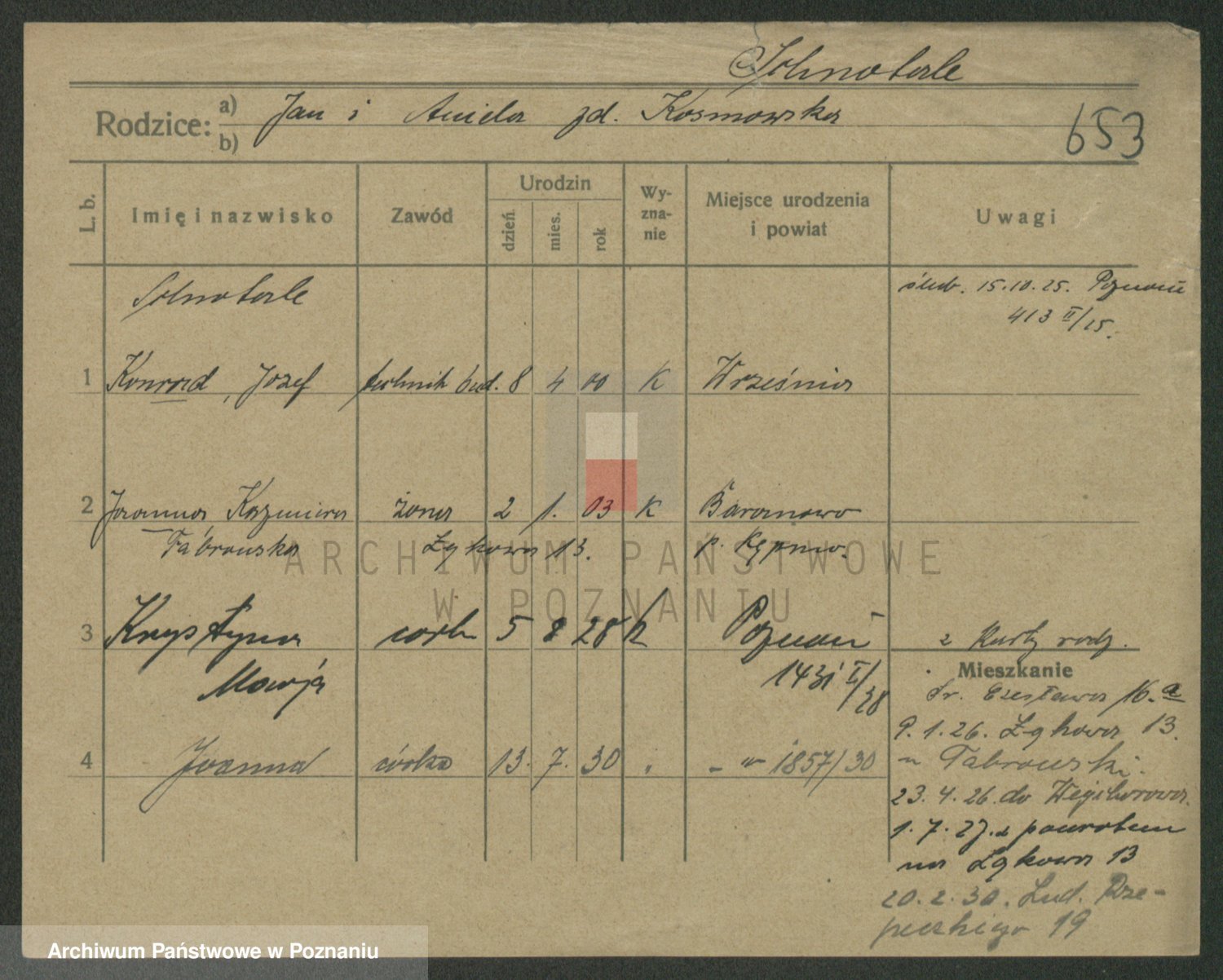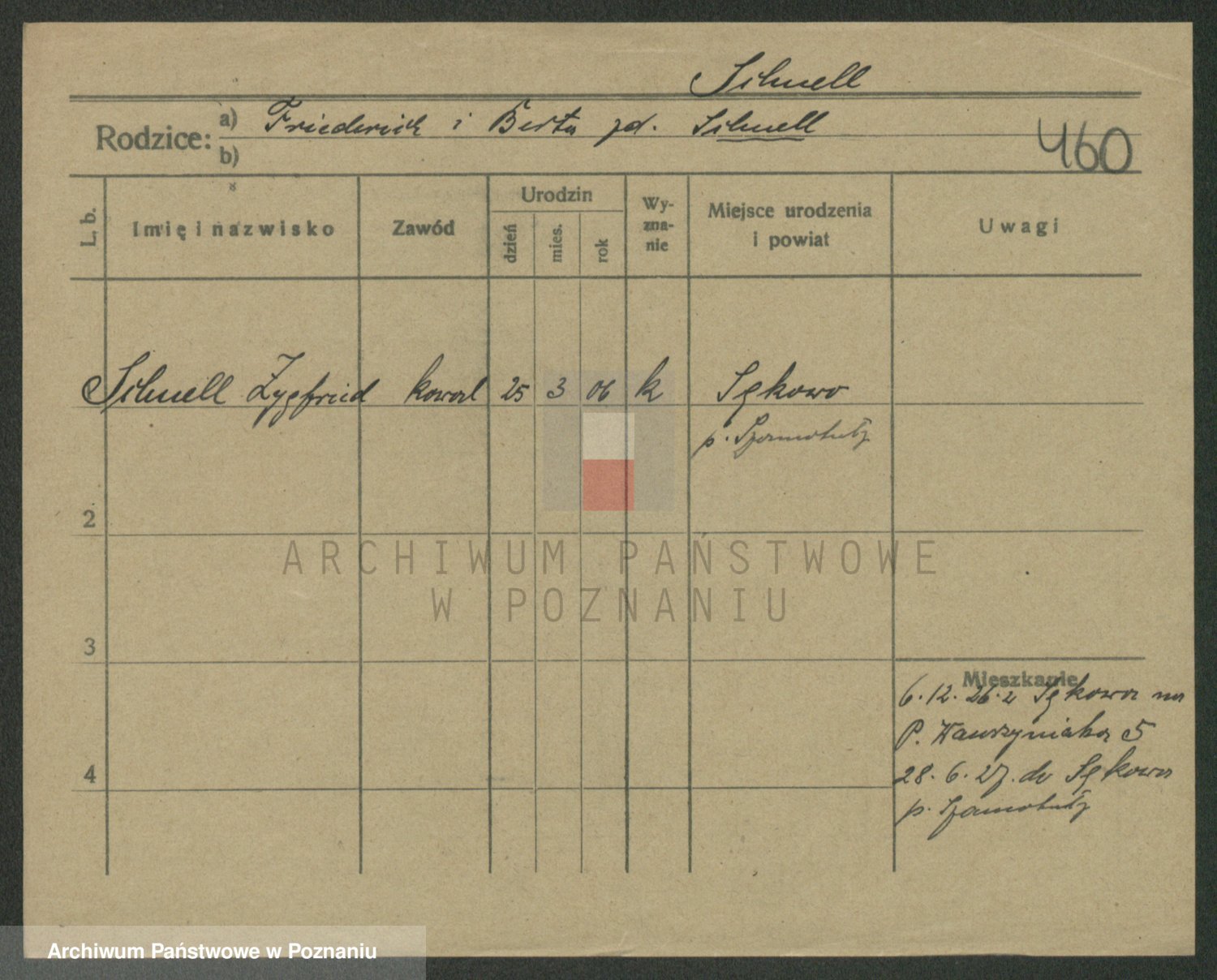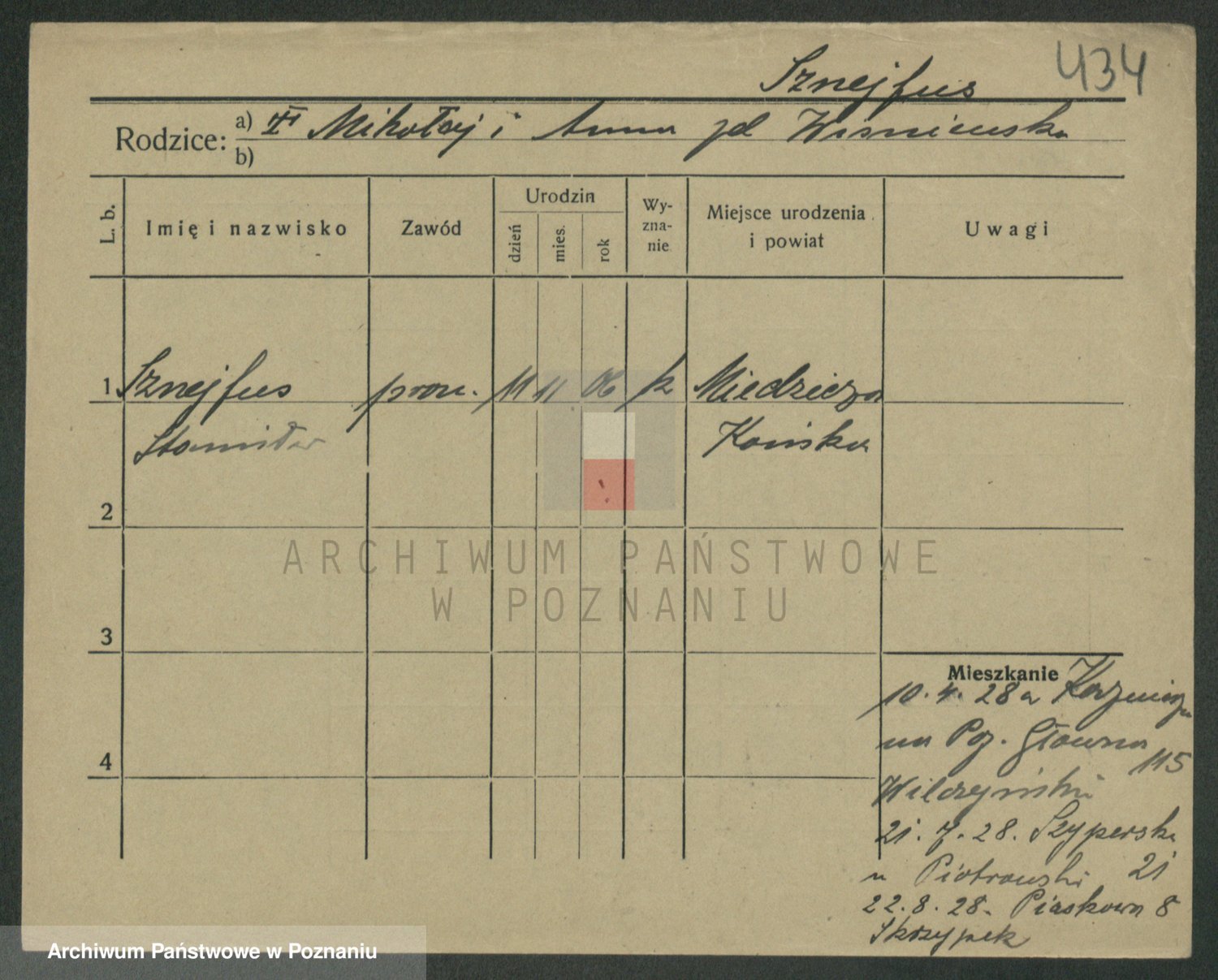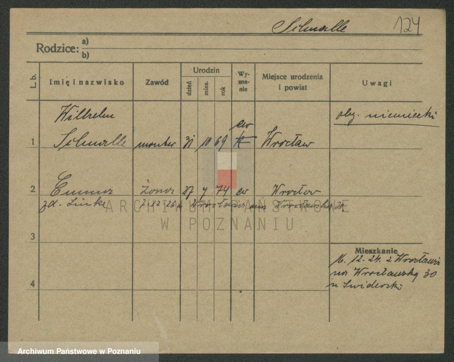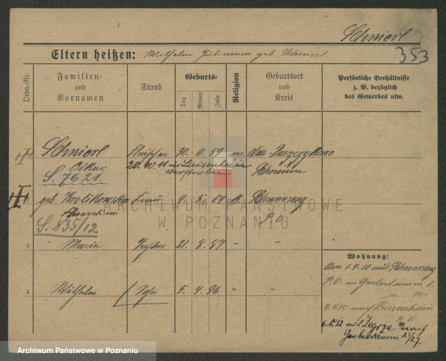 Podgląd karty osobowej dostępny jest po kliknięciu na nazwisko lub ikonkę karty. Można dokonywać powiększenia (ikony na górze) lub przechodzić między kolejnymi skanami (strzałki po bokach).