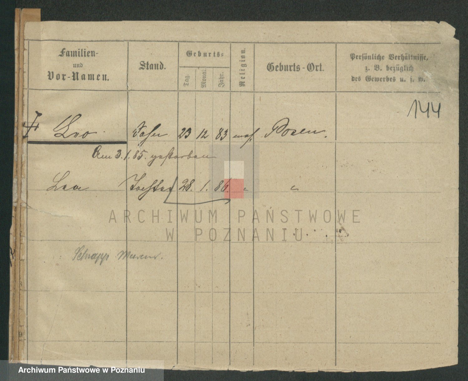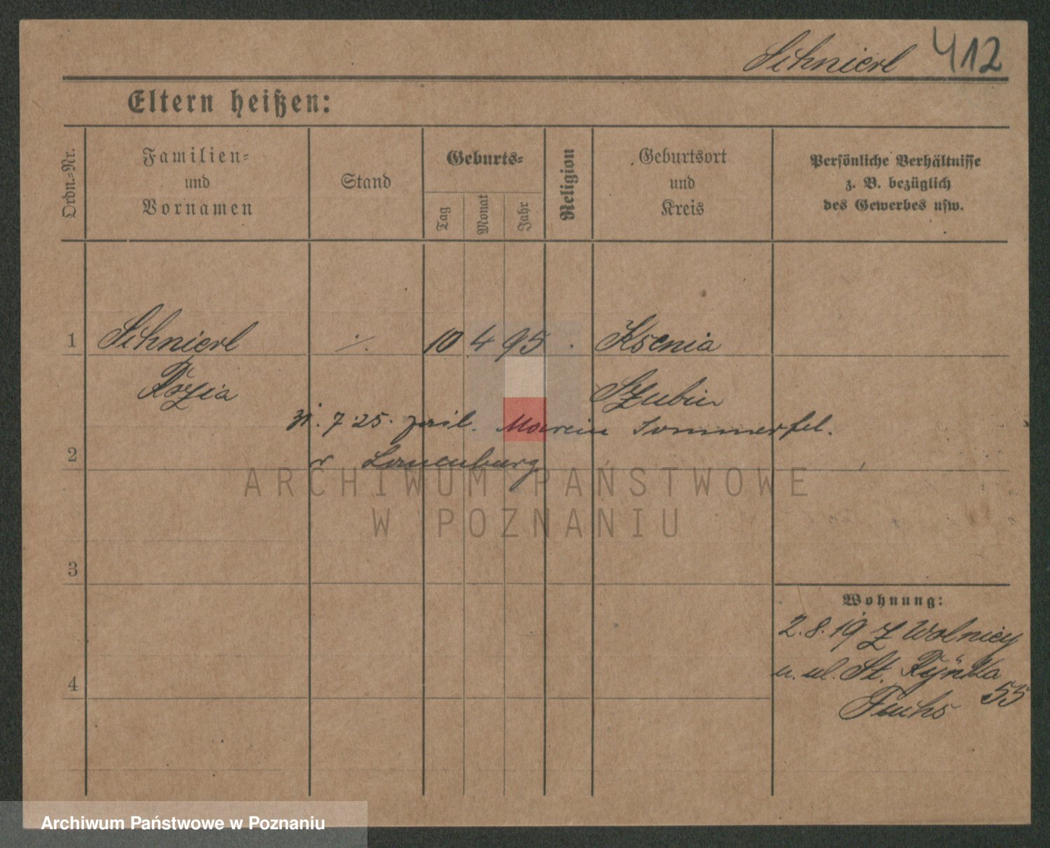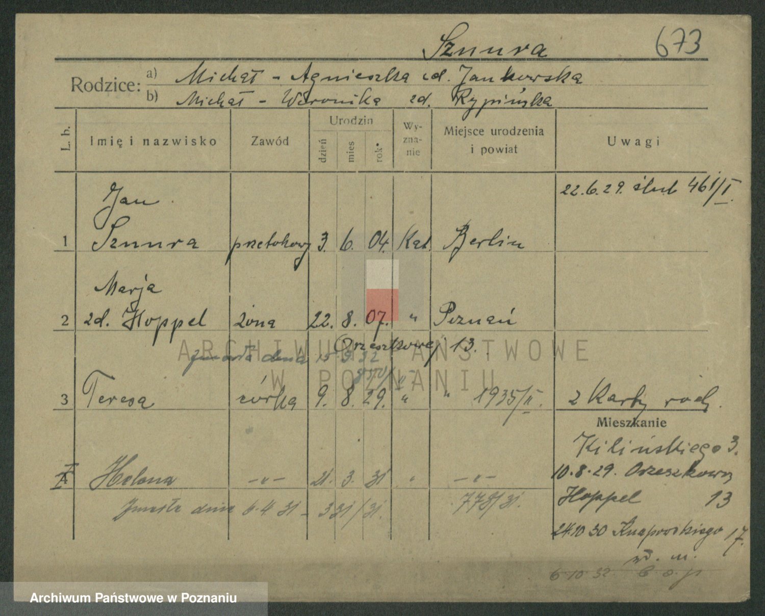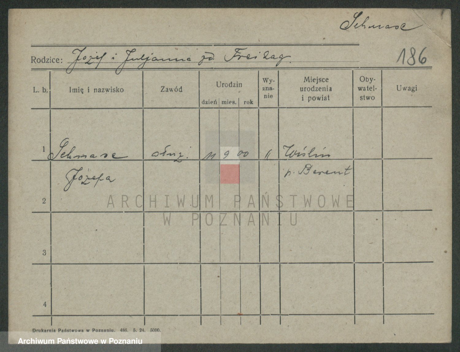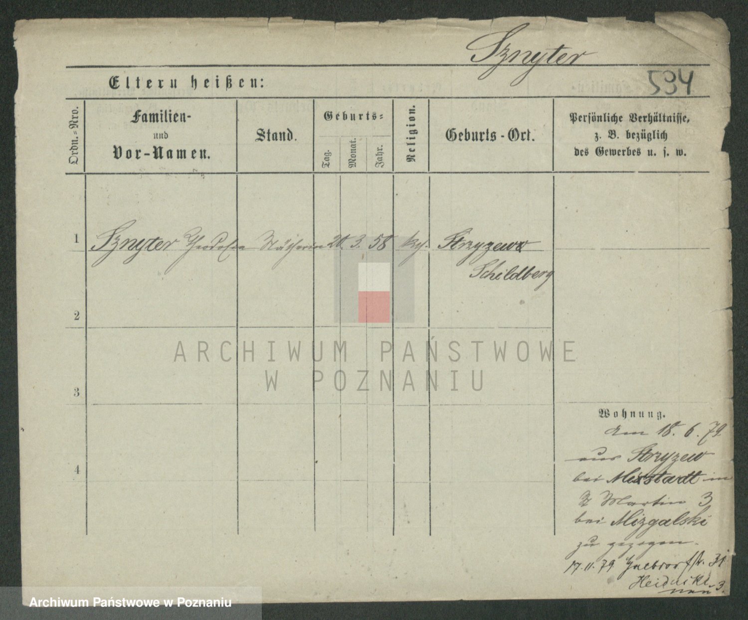Podgląd karty osobowej dostępny jest po kliknięciu na nazwisko lub ikonkę karty. Można dokonywać powiększenia (ikony na górze) lub przechodzić między kolejnymi skanami (strzałki po bokach).