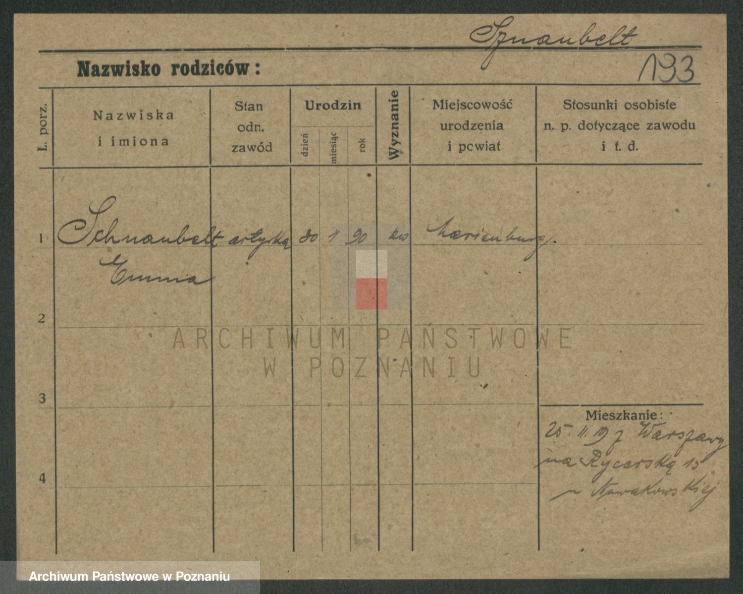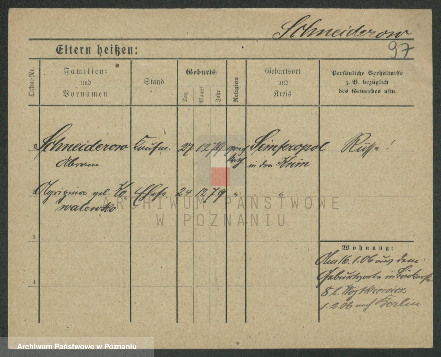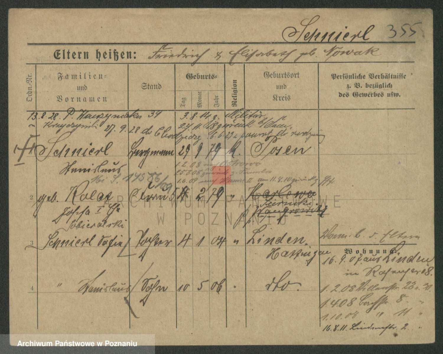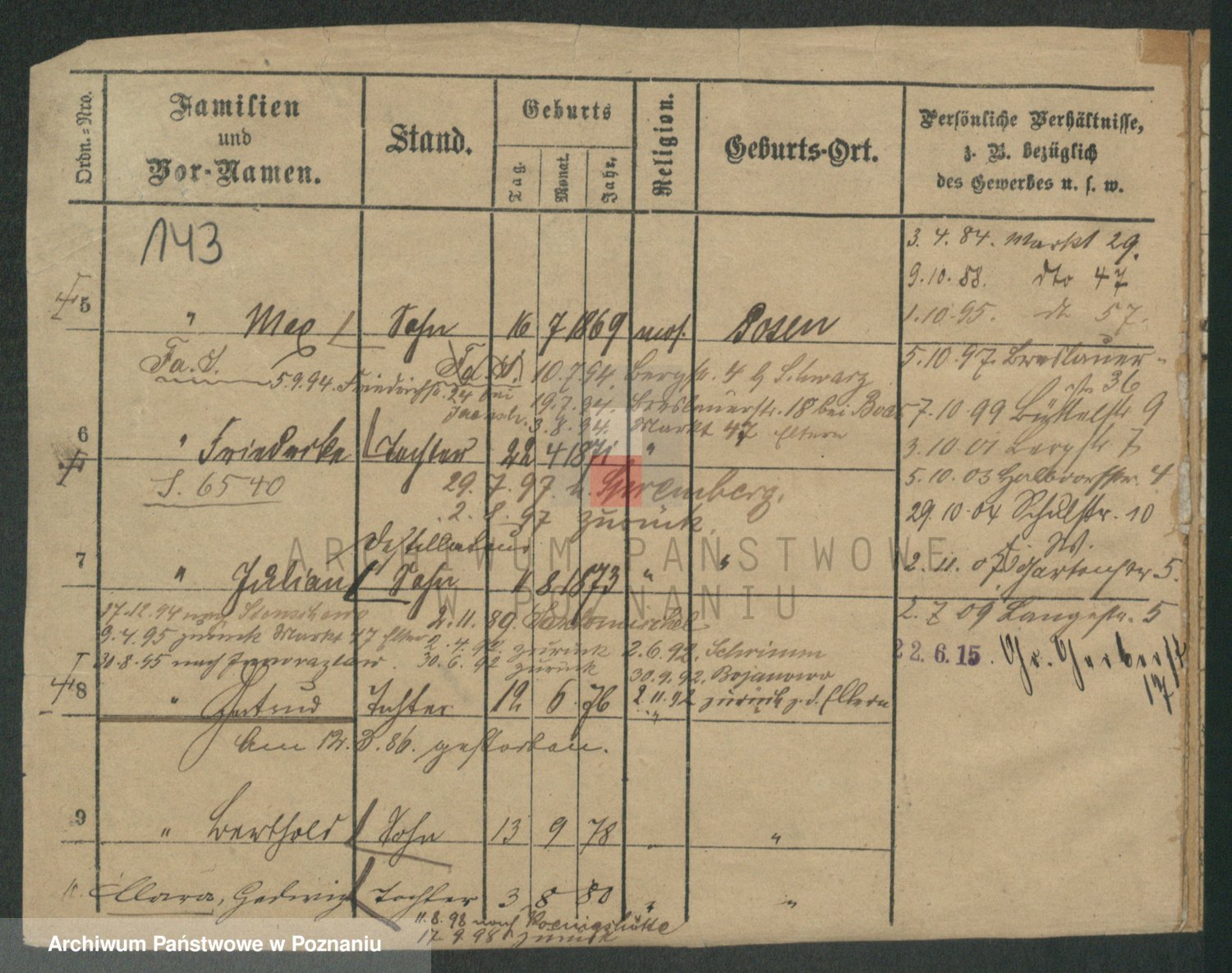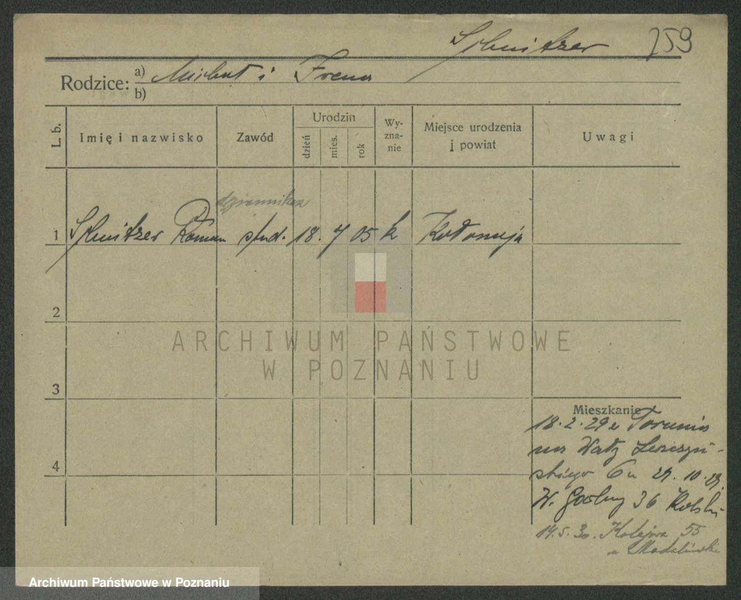 Podgląd karty osobowej dostępny jest po kliknięciu na nazwisko lub ikonkę karty. Można dokonywać powiększenia (ikony na górze) lub przechodzić między kolejnymi skanami (strzałki po bokach).