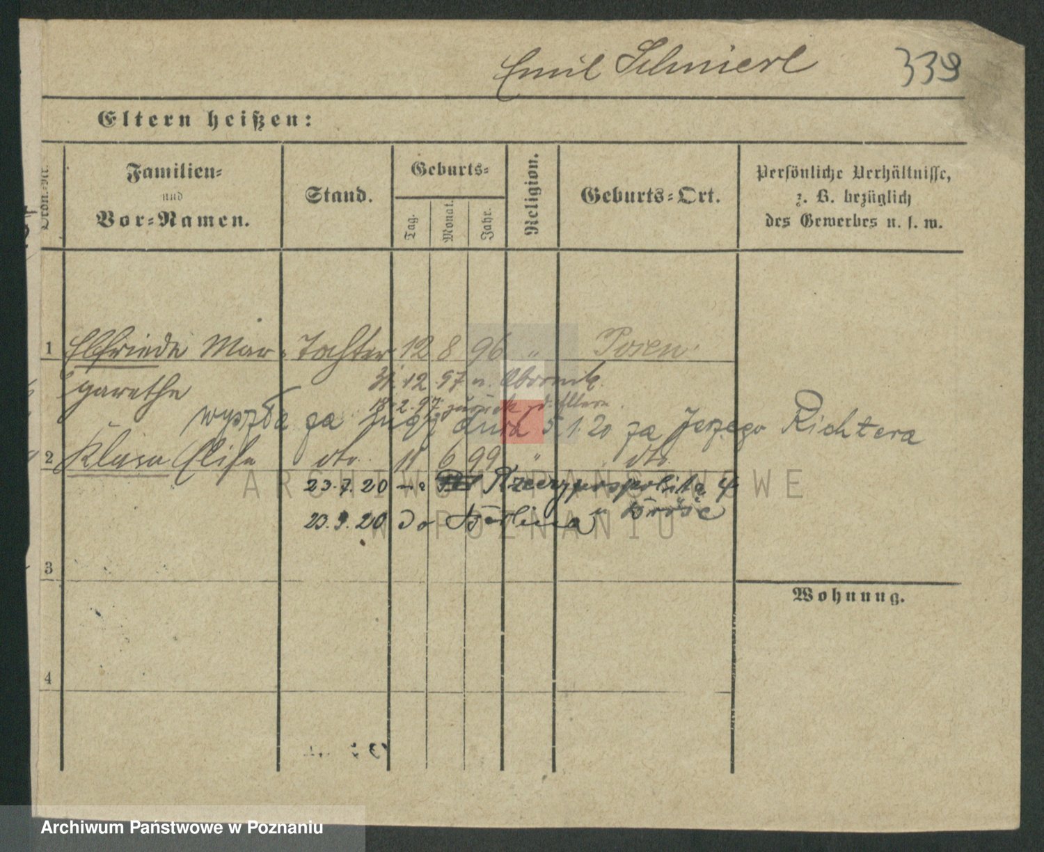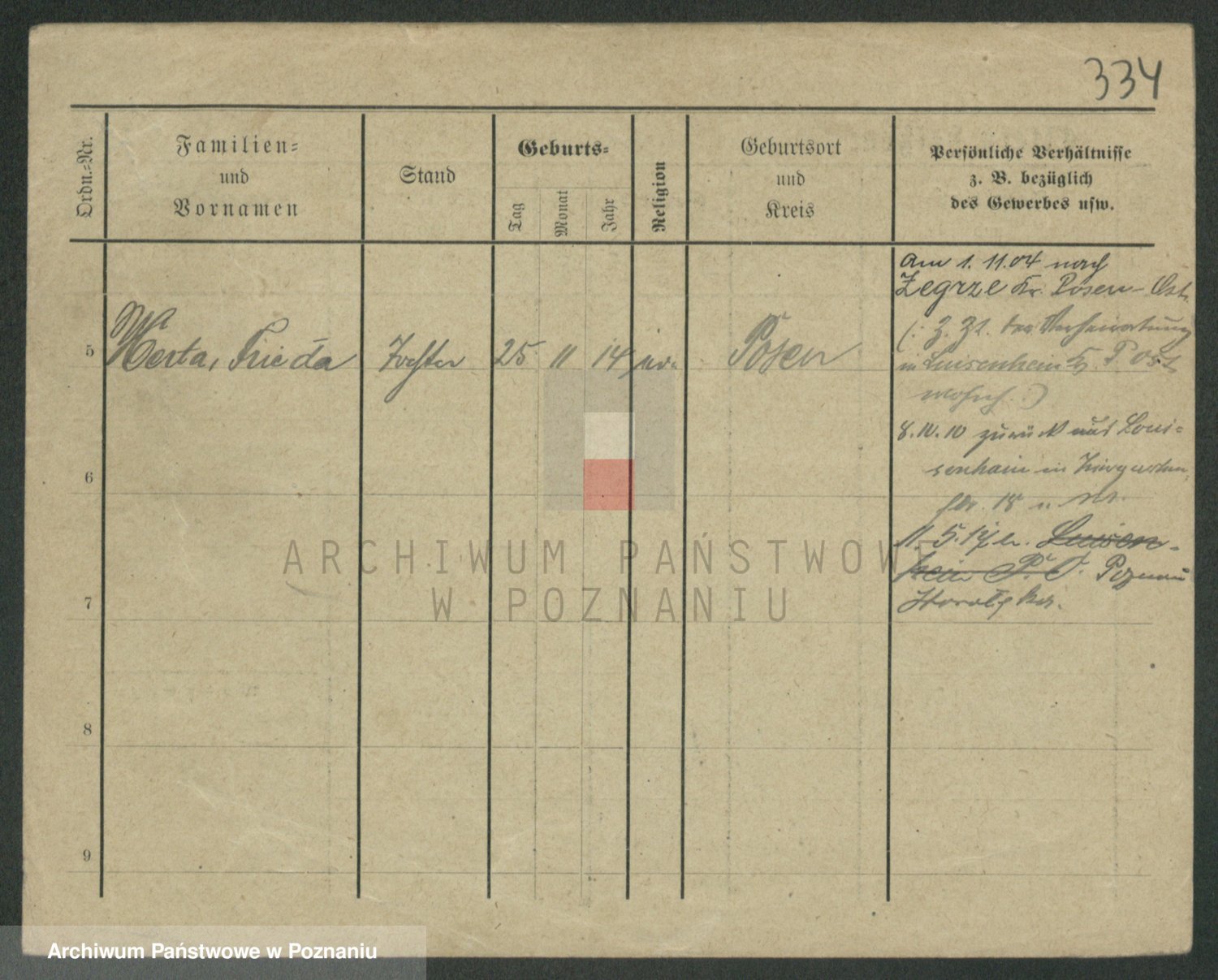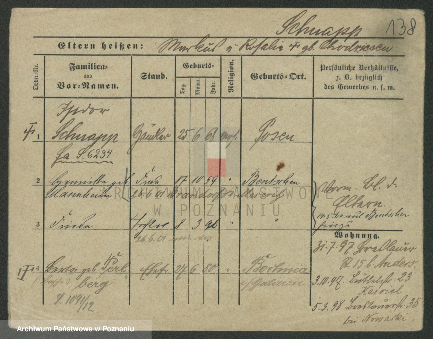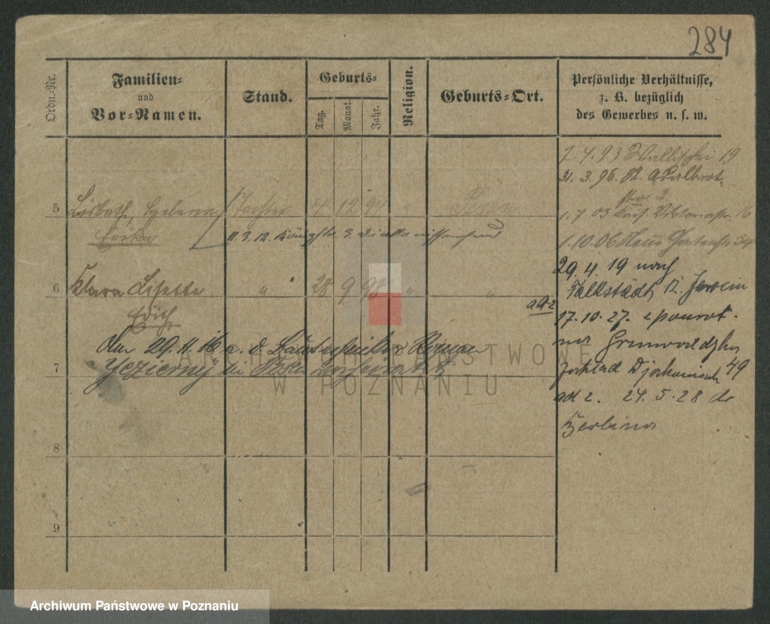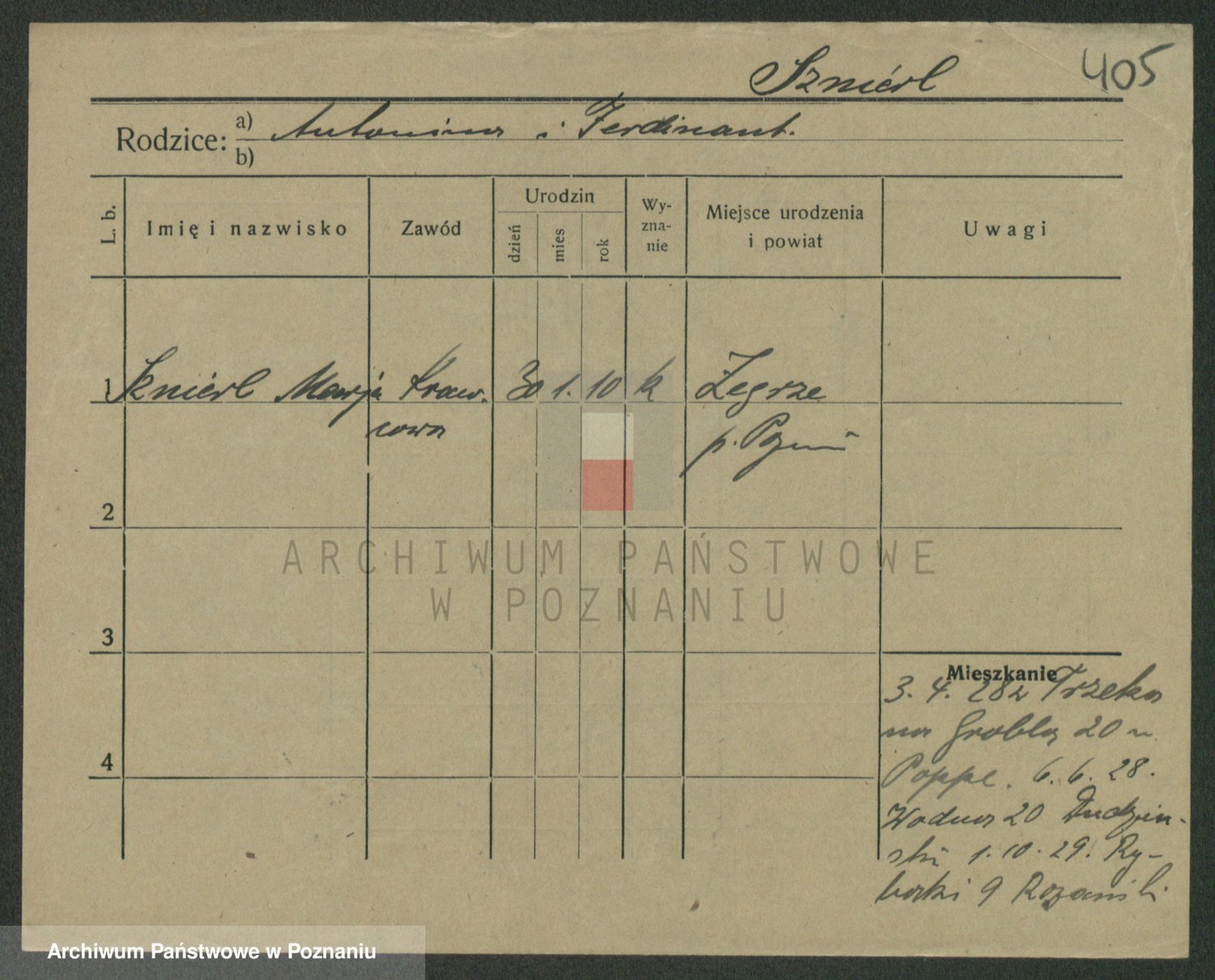 Podgląd karty osobowej dostępny jest po kliknięciu na nazwisko lub ikonkę karty. Można dokonywać powiększenia (ikony na górze) lub przechodzić między kolejnymi skanami (strzałki po bokach).