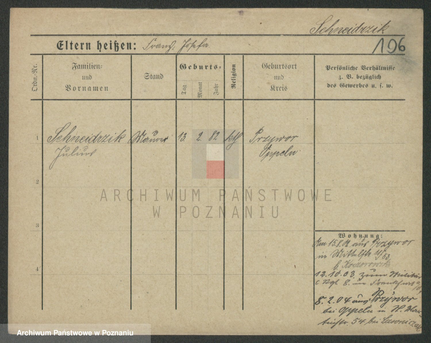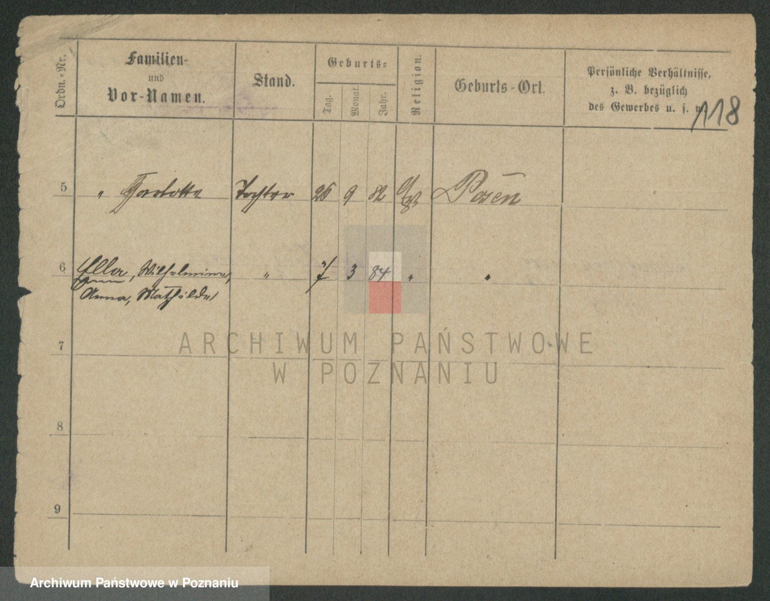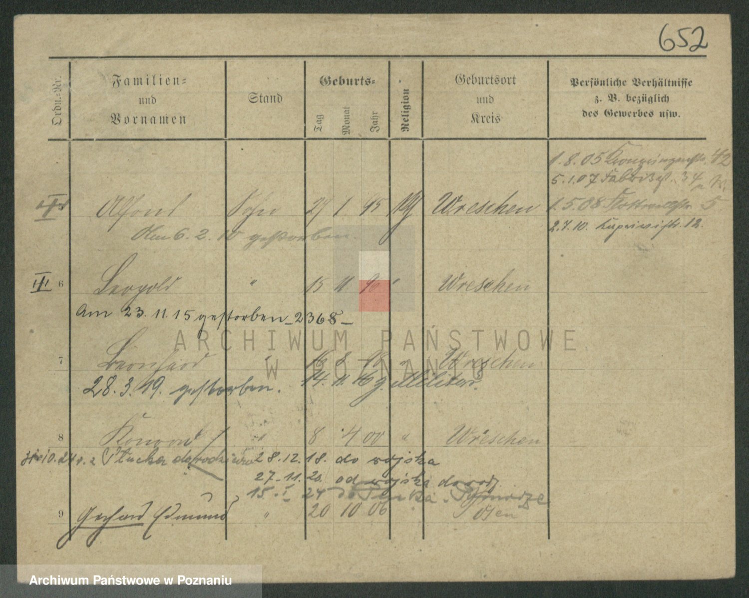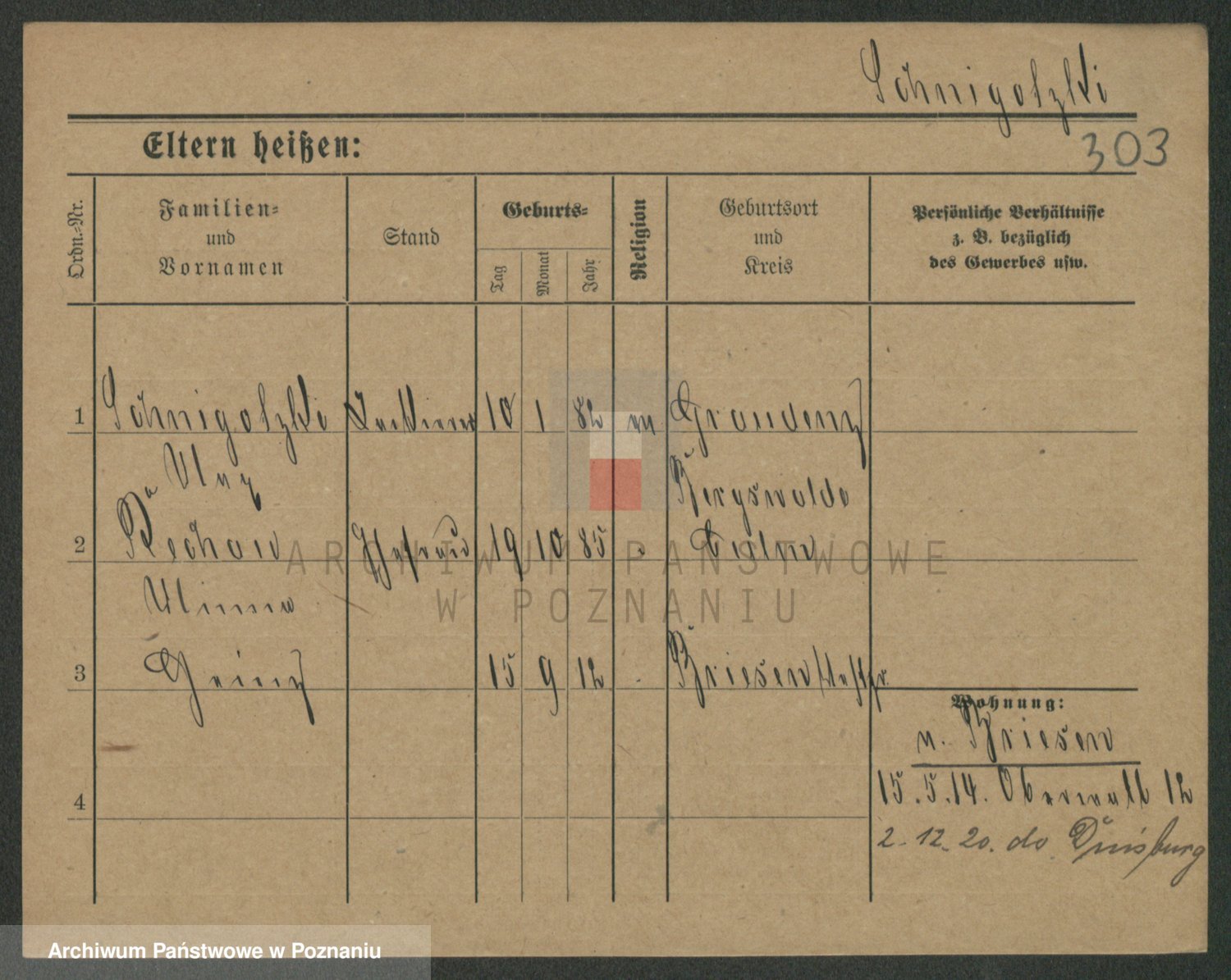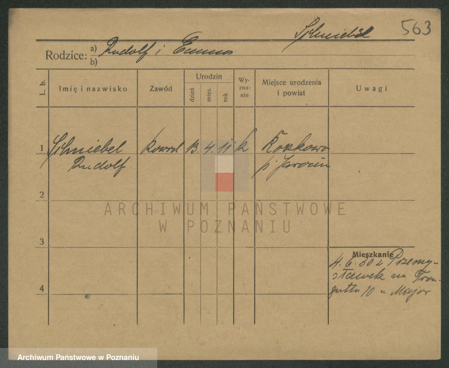 Podgląd karty osobowej dostępny jest po kliknięciu na nazwisko lub ikonkę karty. Można dokonywać powiększenia (ikony na górze) lub przechodzić między kolejnymi skanami (strzałki po bokach).