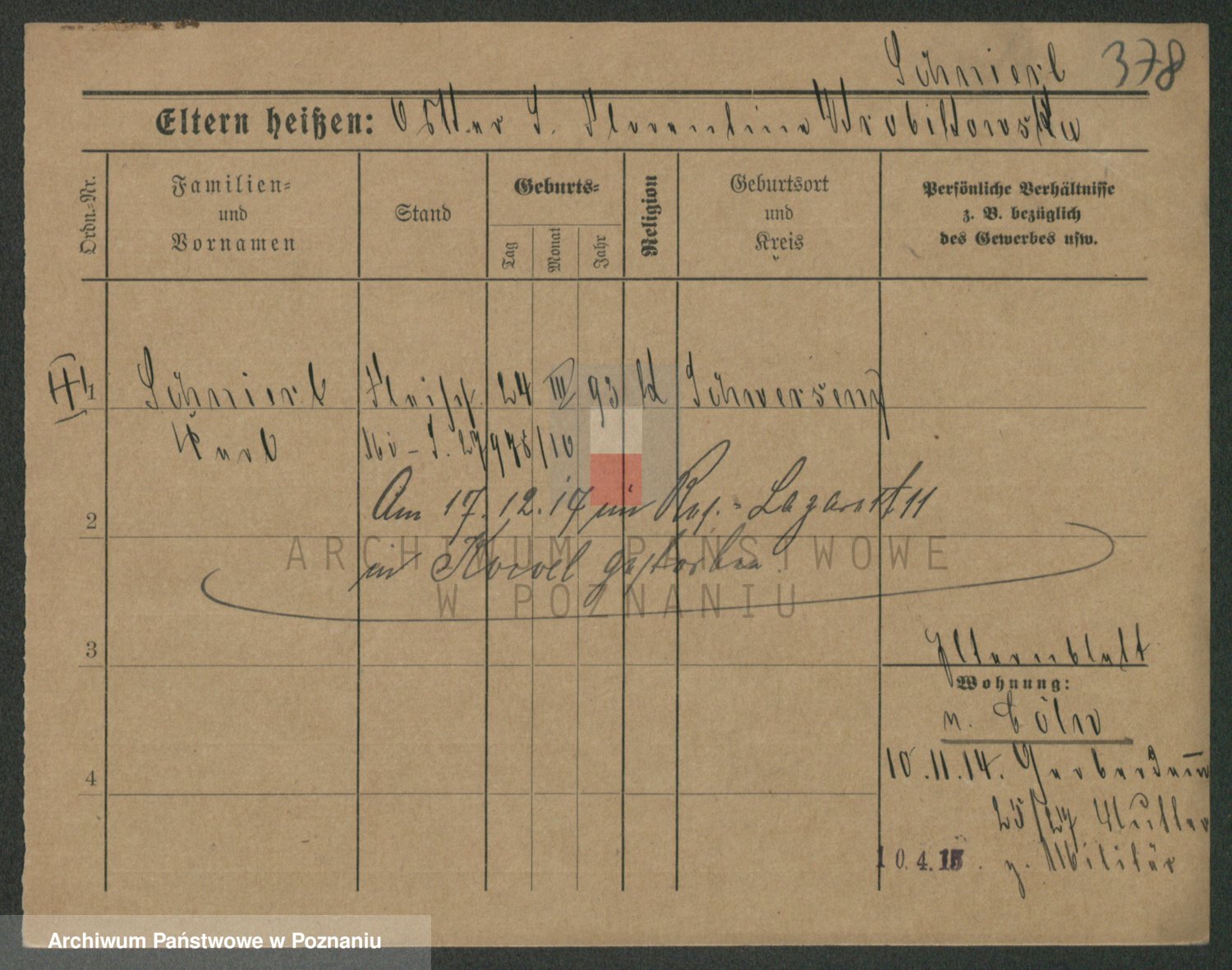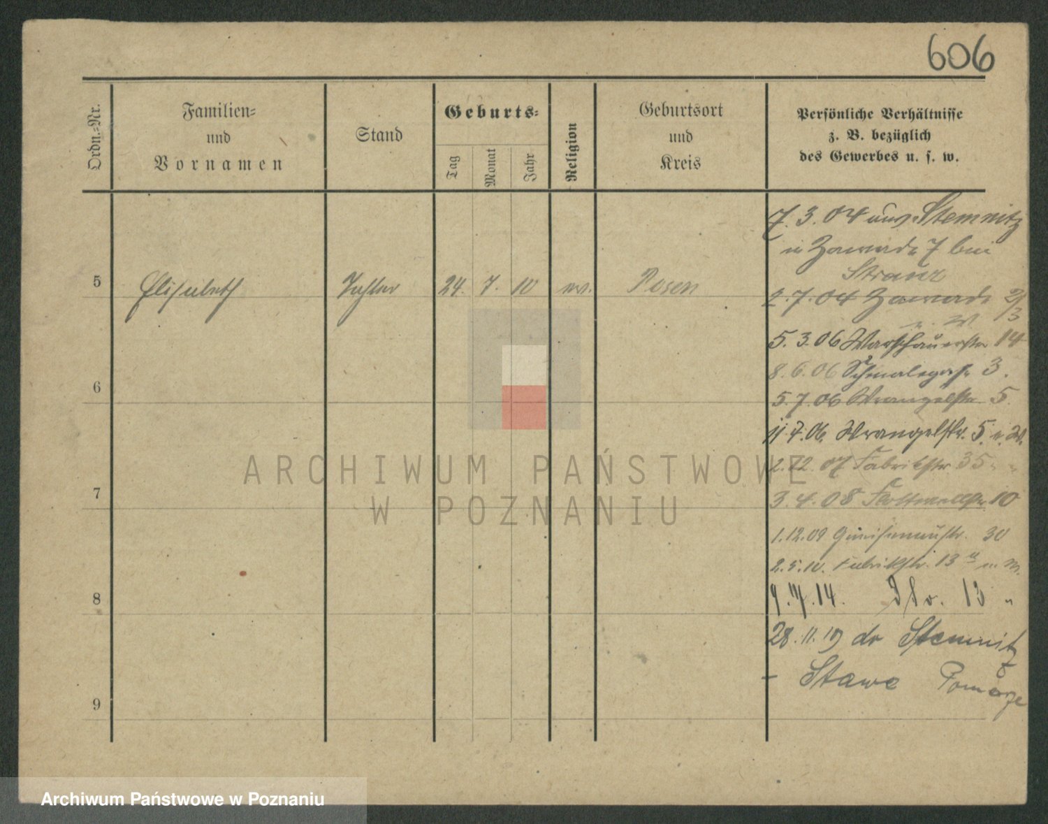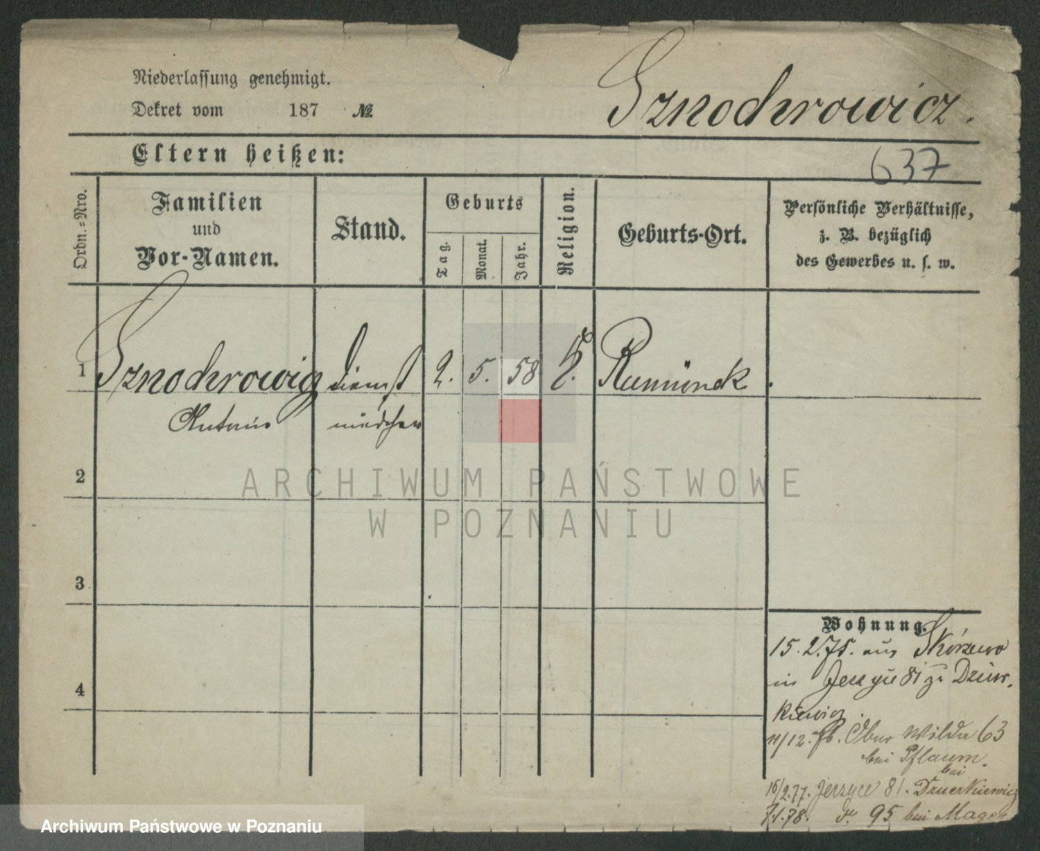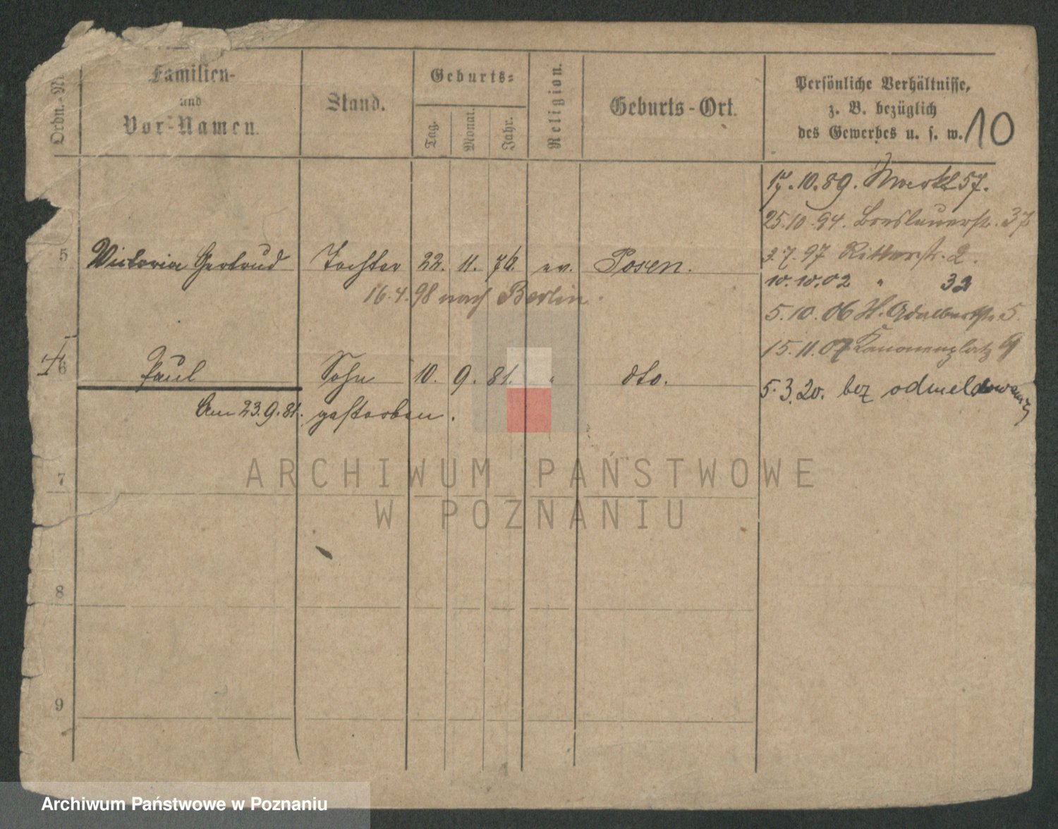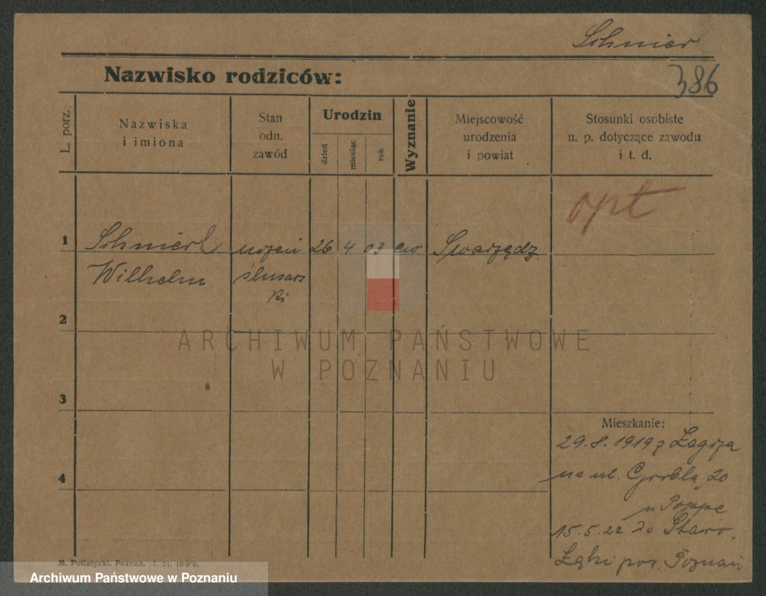 Podgląd karty osobowej dostępny jest po kliknięciu na nazwisko lub ikonkę karty. Można dokonywać powiększenia (ikony na górze) lub przechodzić między kolejnymi skanami (strzałki po bokach).