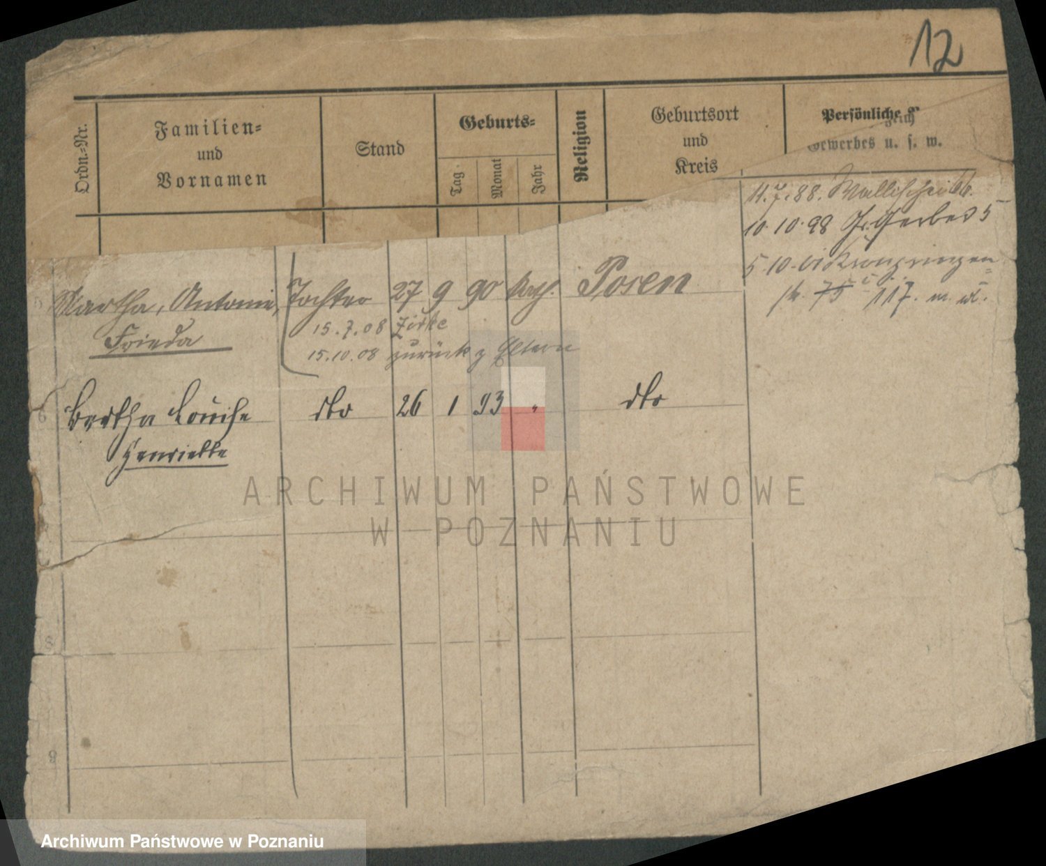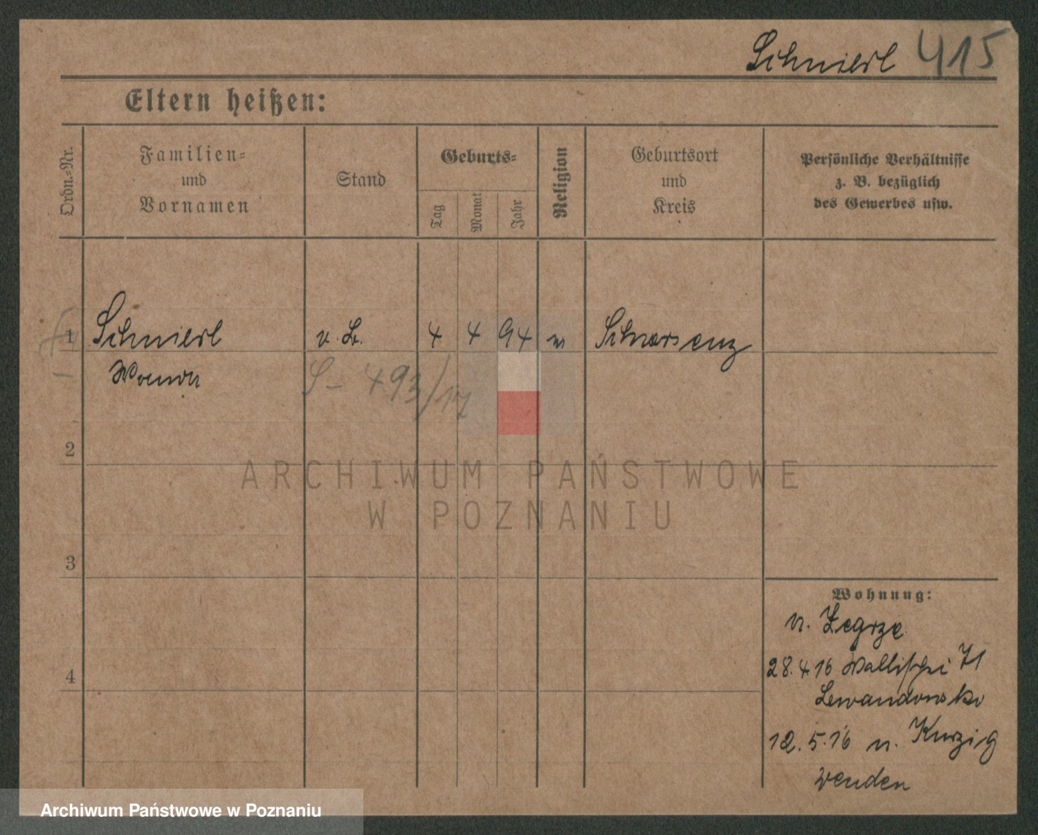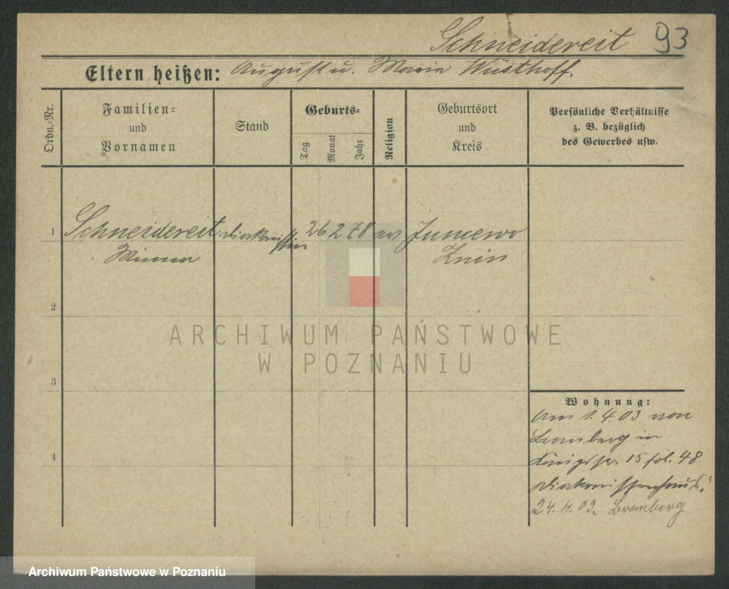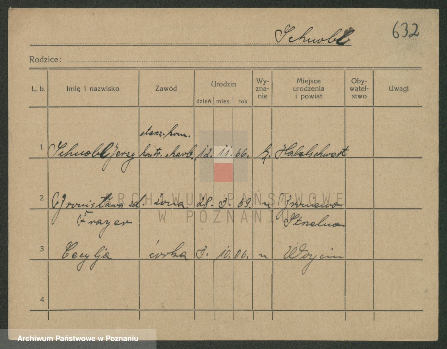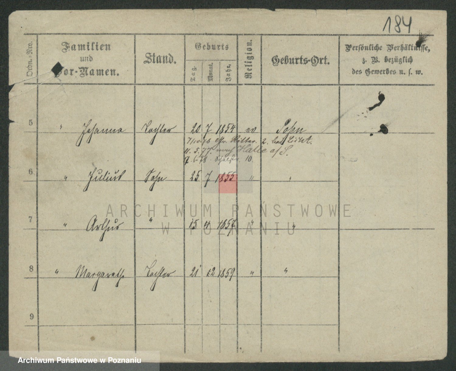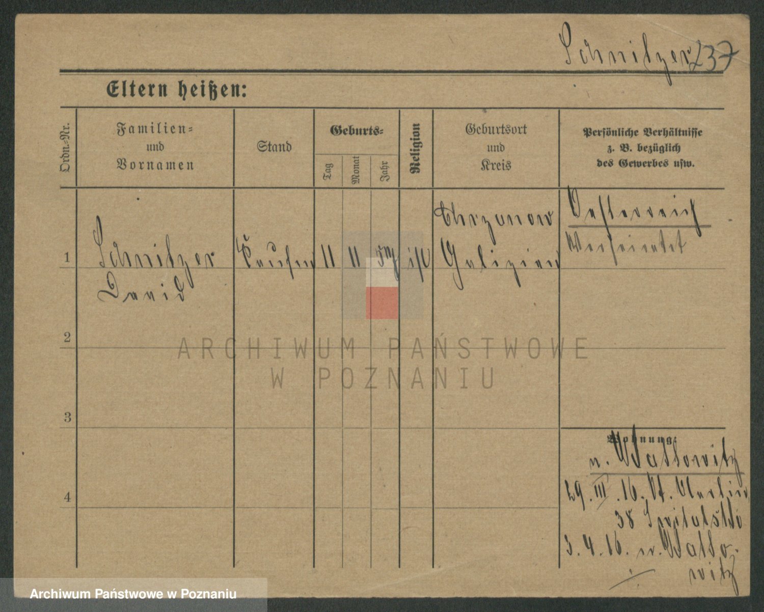 Podgląd karty osobowej dostępny jest po kliknięciu na nazwisko lub ikonkę karty. Można dokonywać powiększenia (ikony na górze) lub przechodzić między kolejnymi skanami (strzałki po bokach).