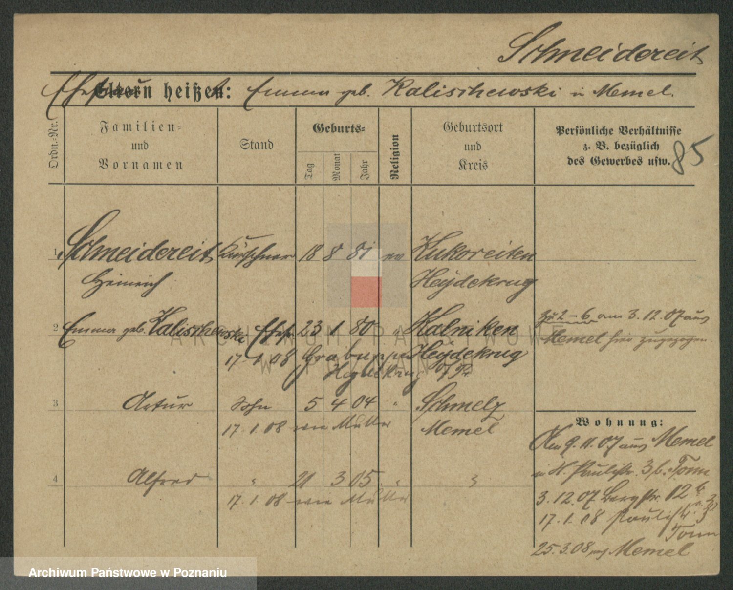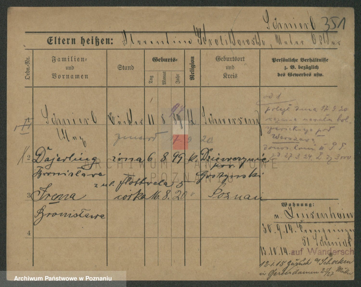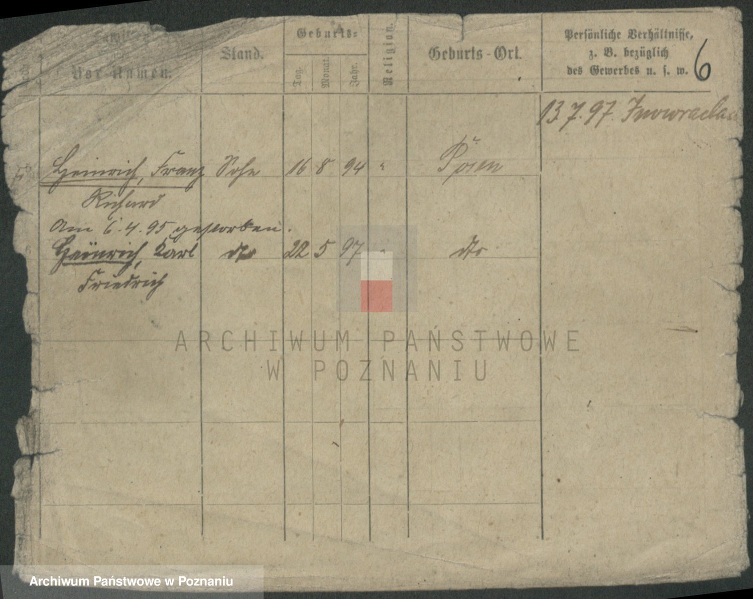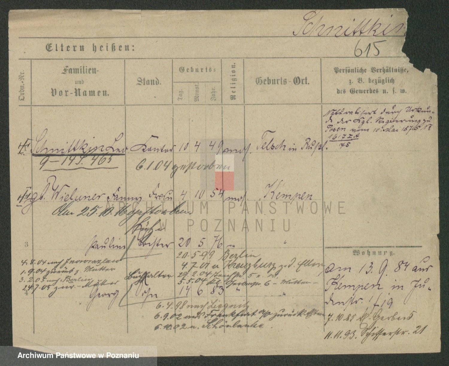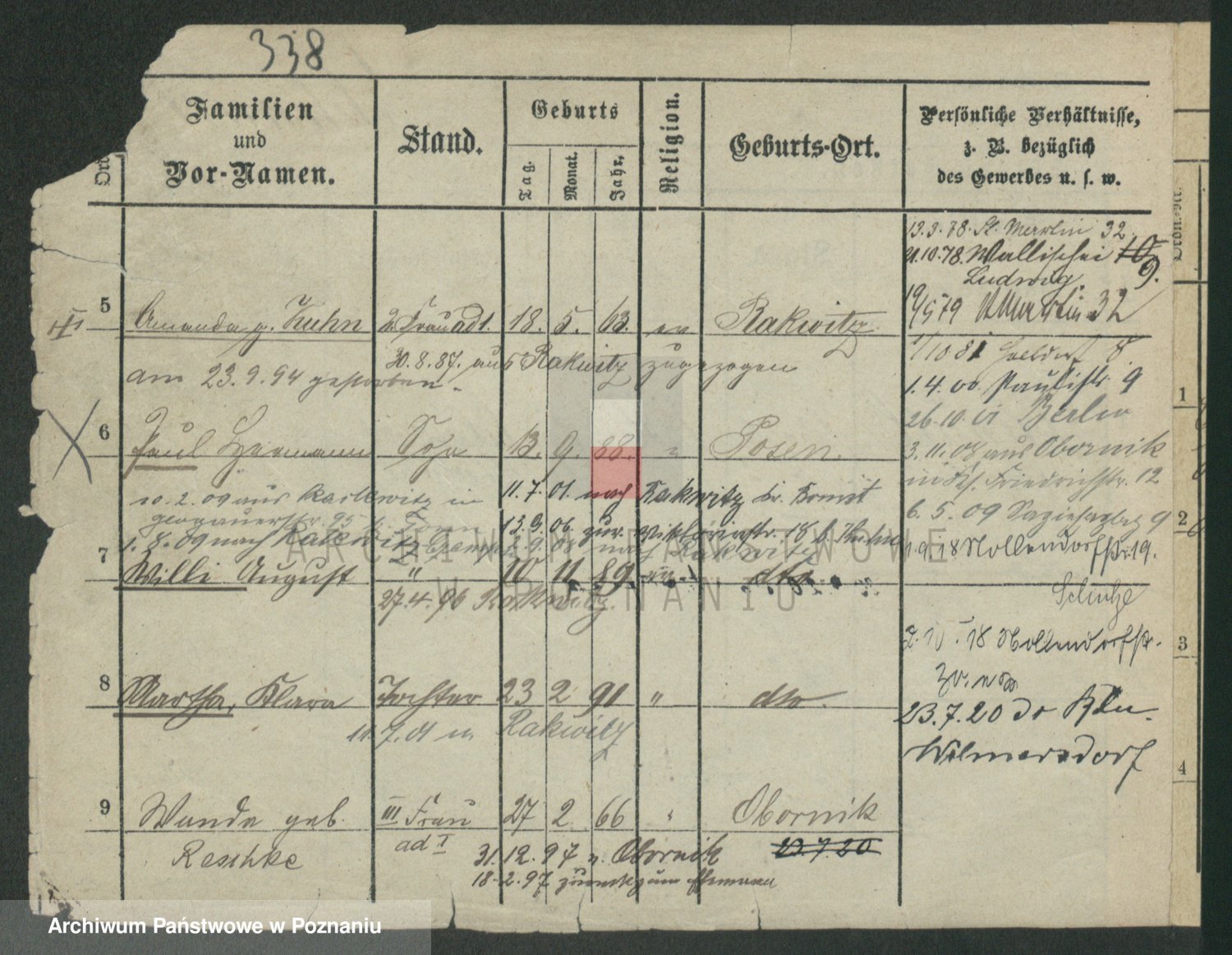 Podgląd karty osobowej dostępny jest po kliknięciu na nazwisko lub ikonkę karty. Można dokonywać powiększenia (ikony na górze) lub przechodzić między kolejnymi skanami (strzałki po bokach).