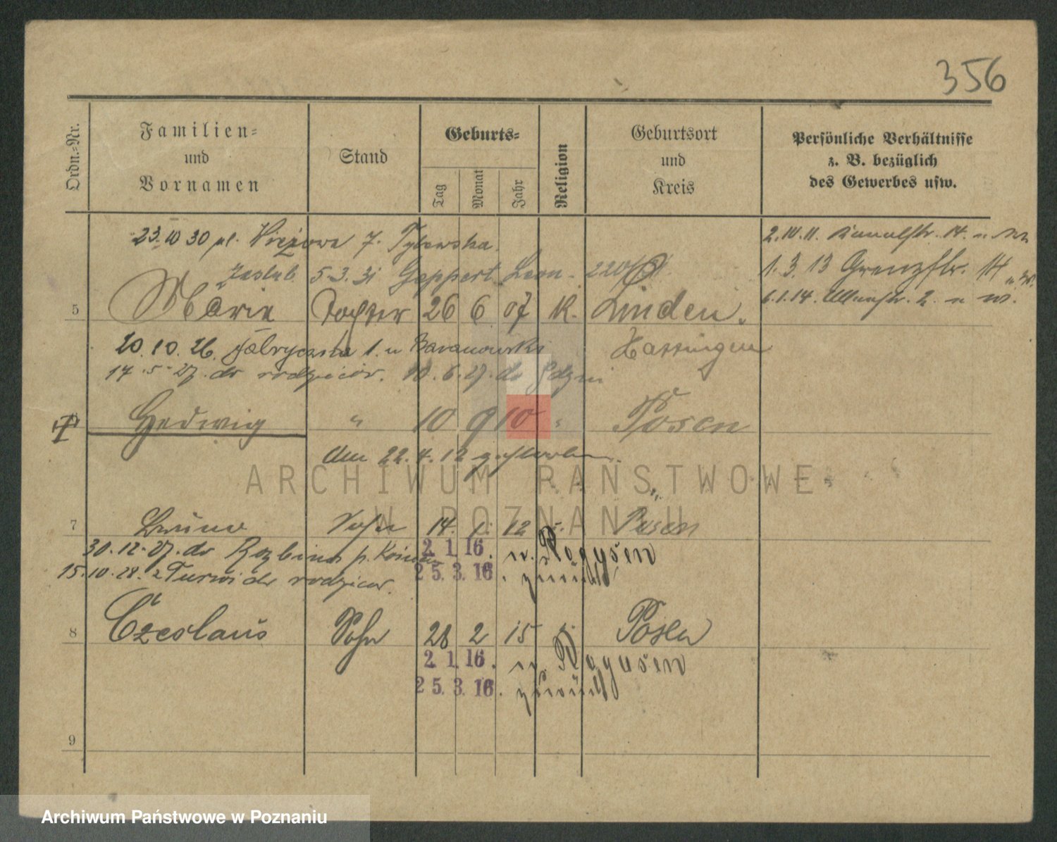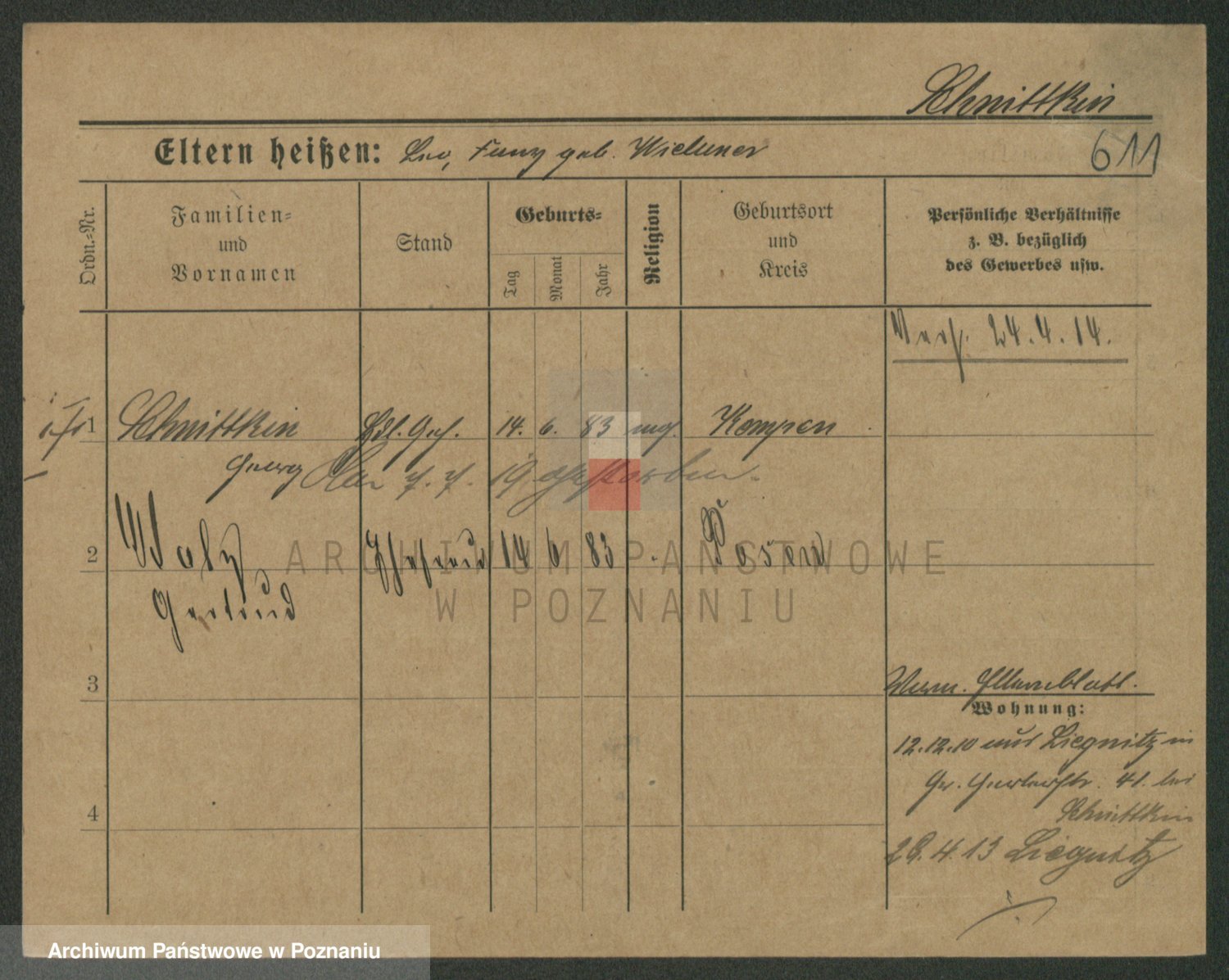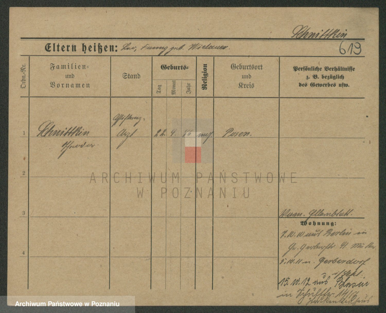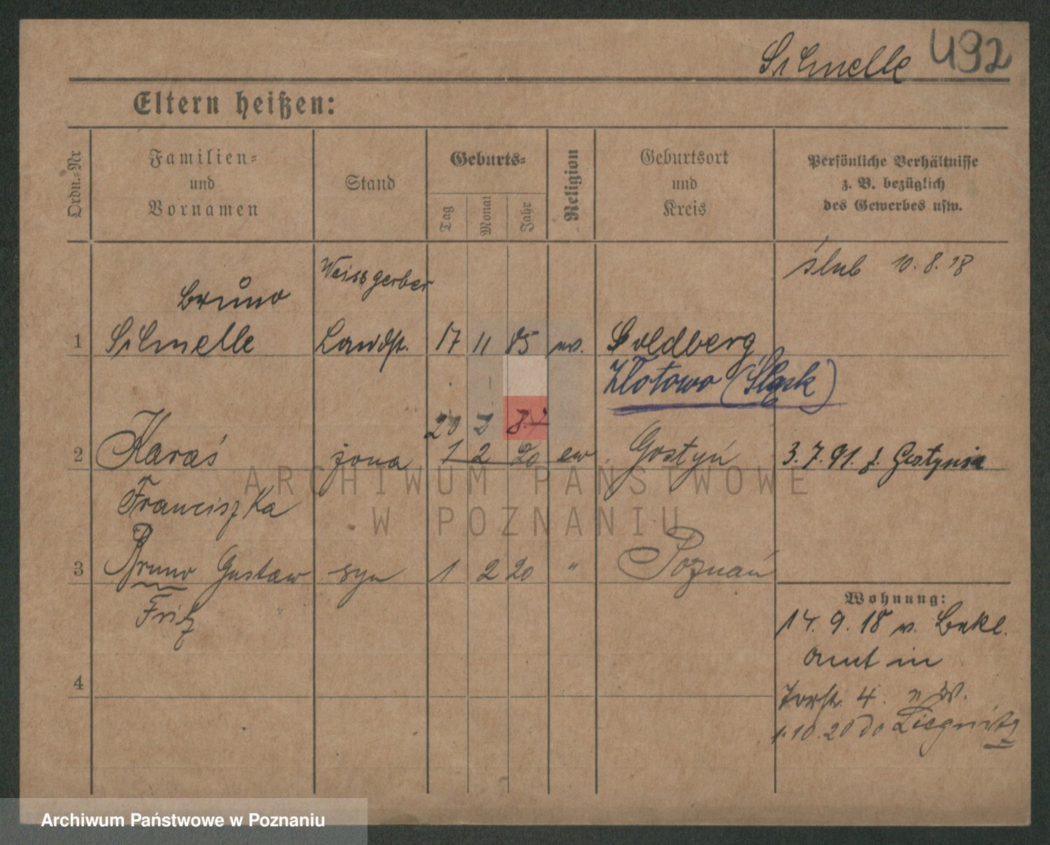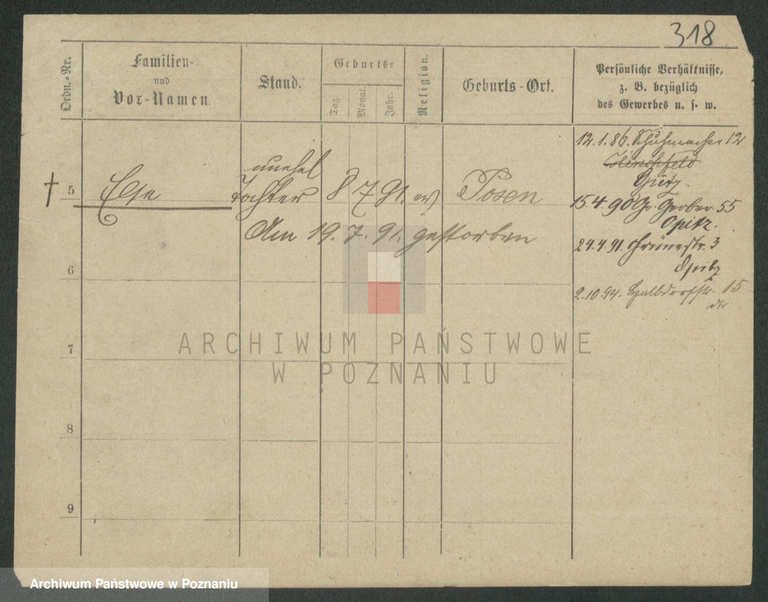 Podgląd karty osobowej dostępny jest po kliknięciu na nazwisko lub ikonkę karty. Można dokonywać powiększenia (ikony na górze) lub przechodzić między kolejnymi skanami (strzałki po bokach).
