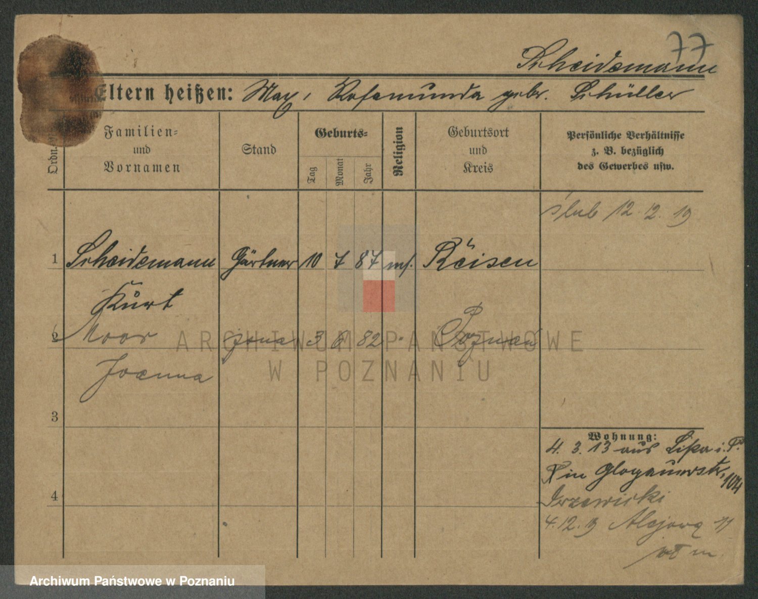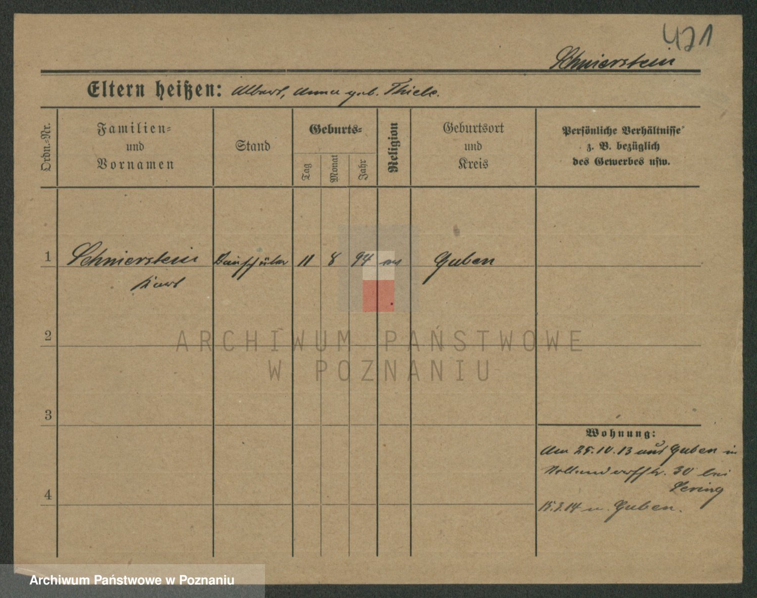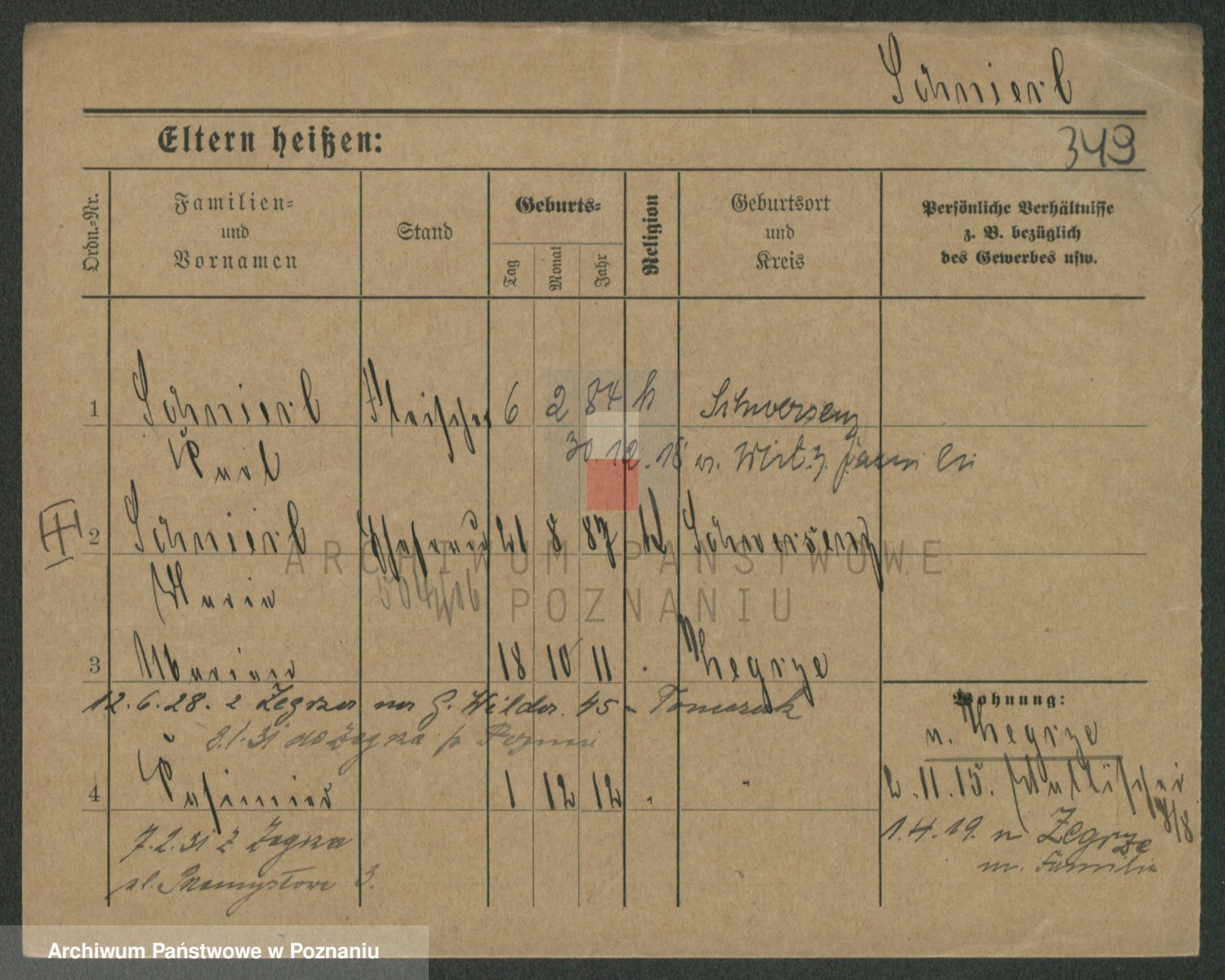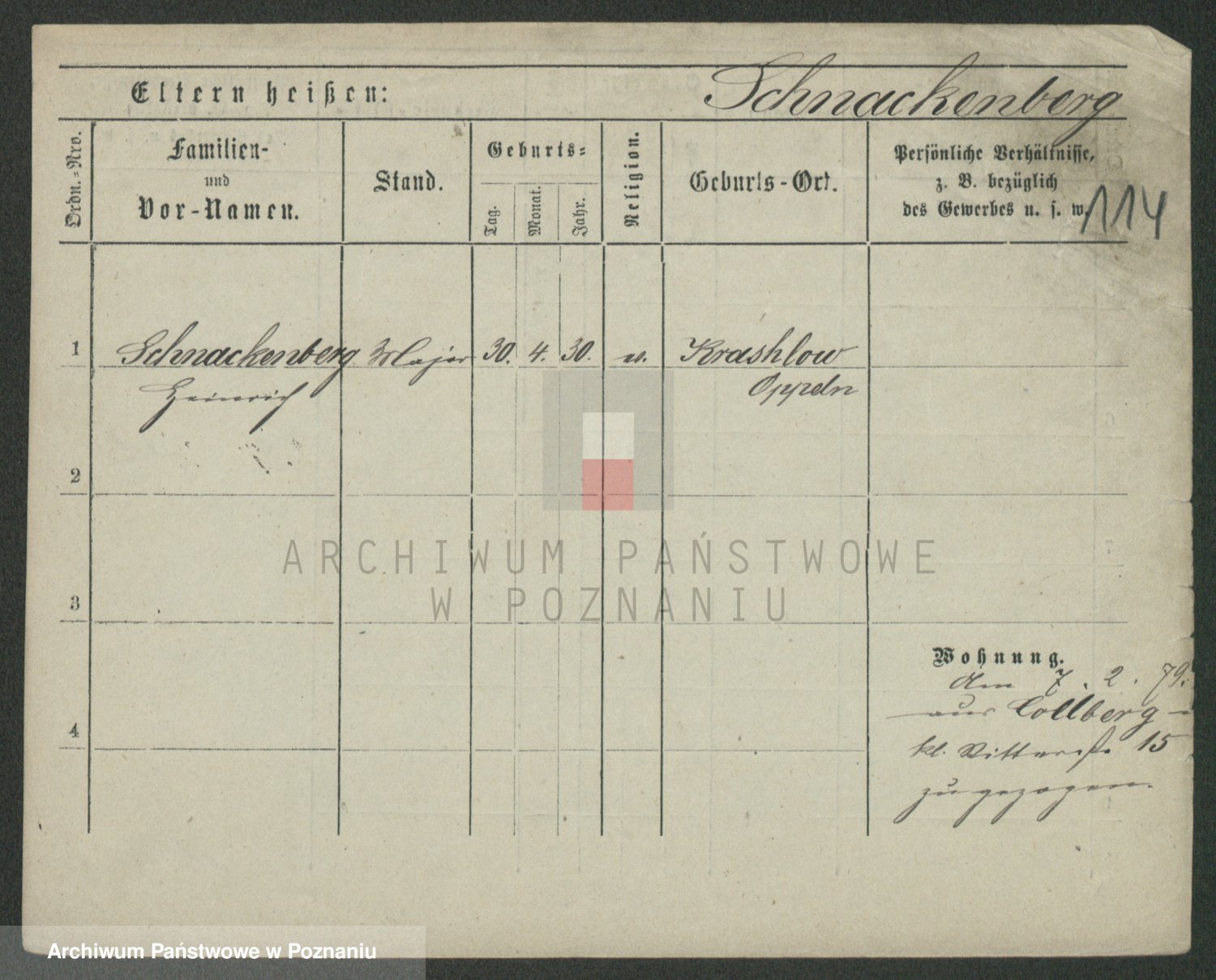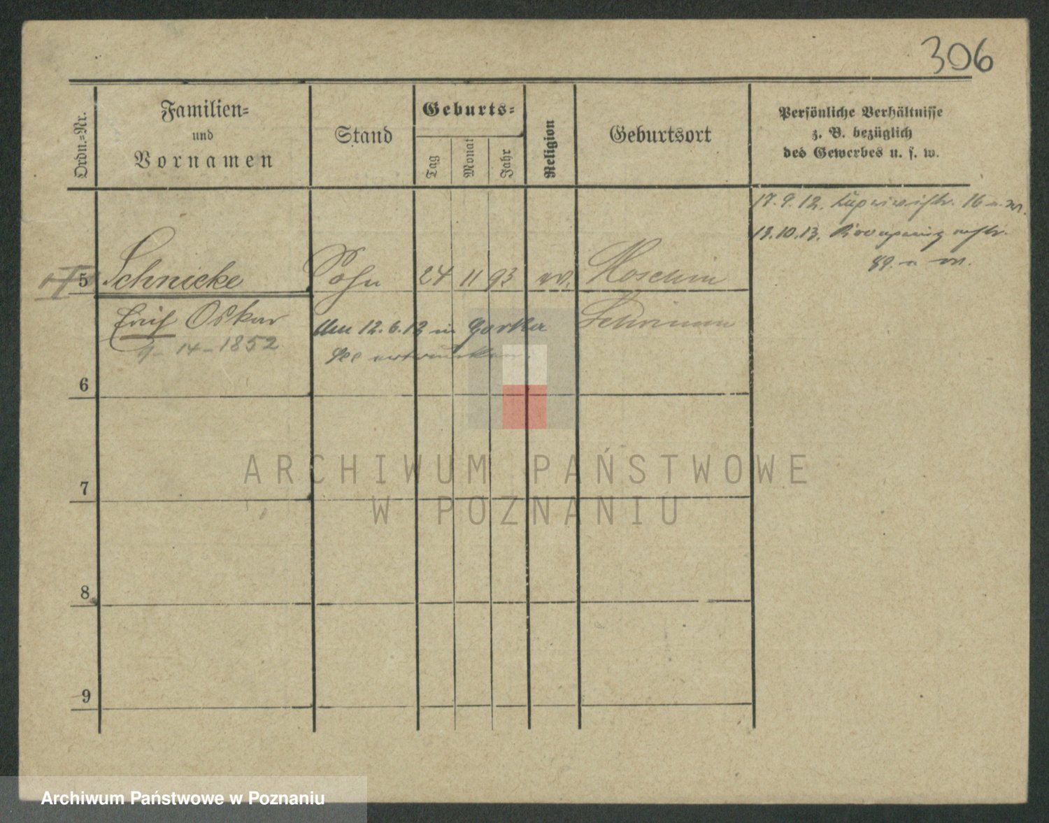 Podgląd karty osobowej dostępny jest po kliknięciu na nazwisko lub ikonkę karty. Można dokonywać powiększenia (ikony na górze) lub przechodzić między kolejnymi skanami (strzałki po bokach).