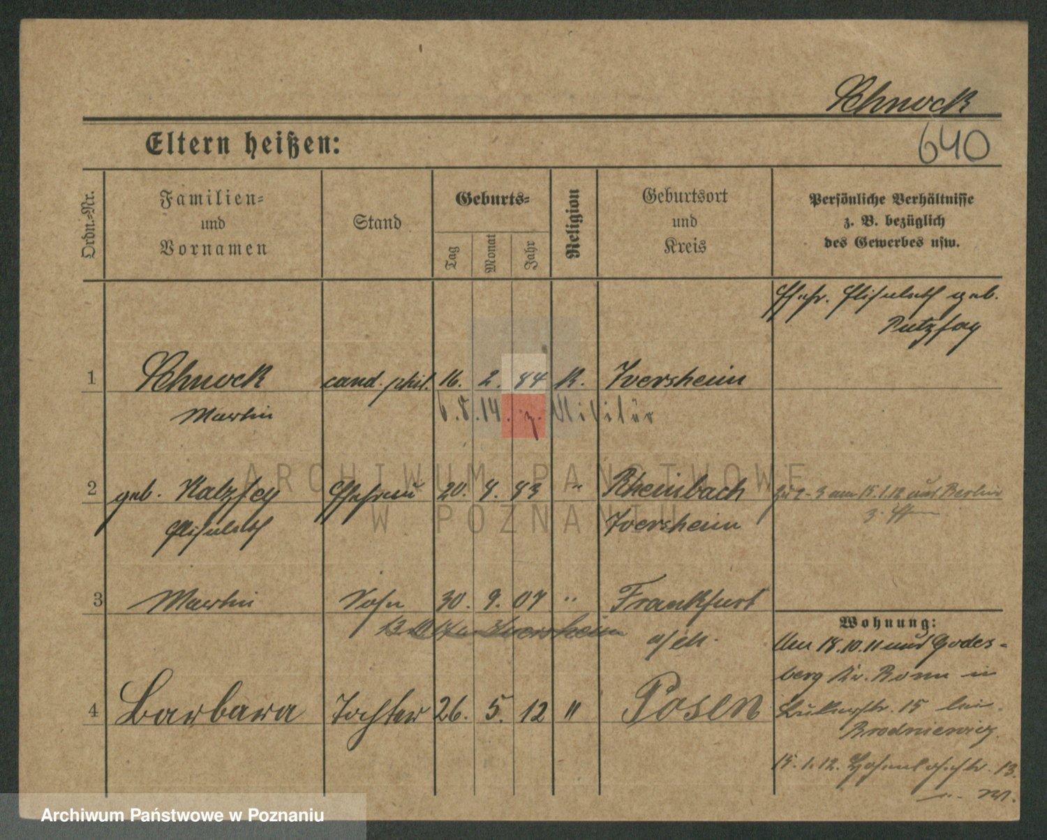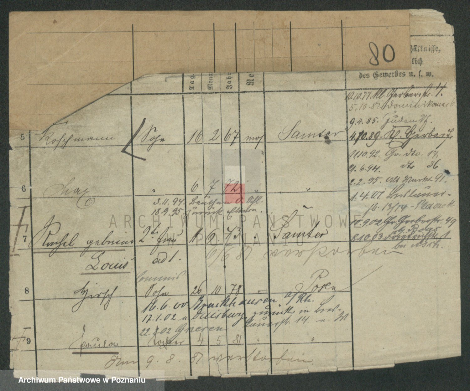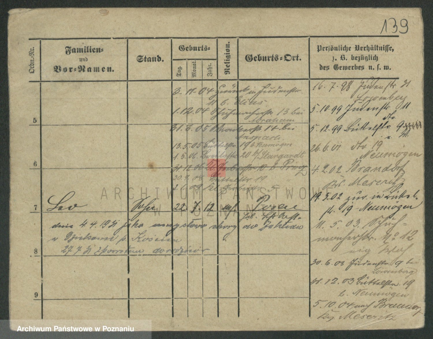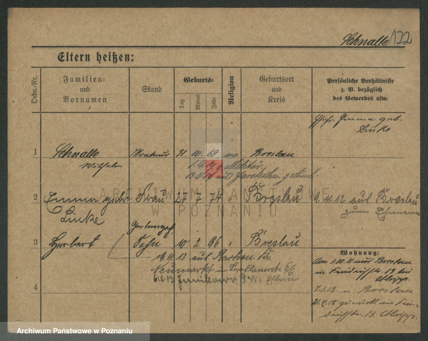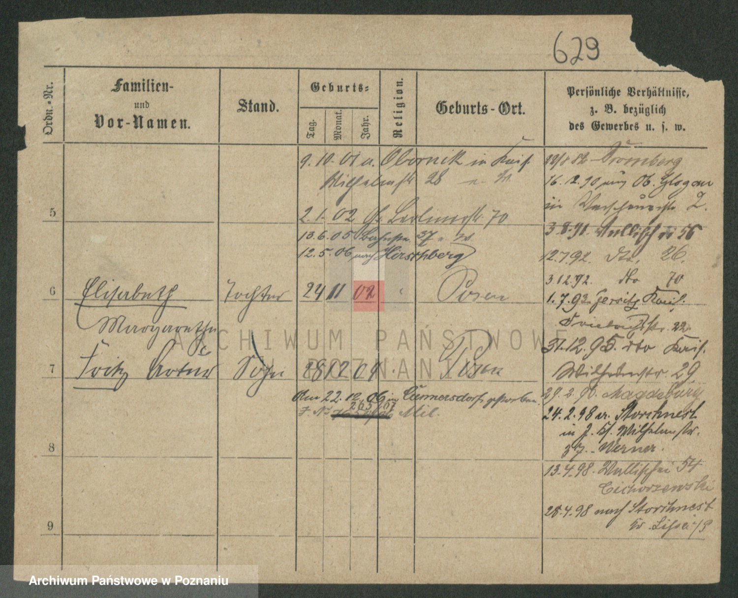 Podgląd karty osobowej dostępny jest po kliknięciu na nazwisko lub ikonkę karty. Można dokonywać powiększenia (ikony na górze) lub przechodzić między kolejnymi skanami (strzałki po bokach).