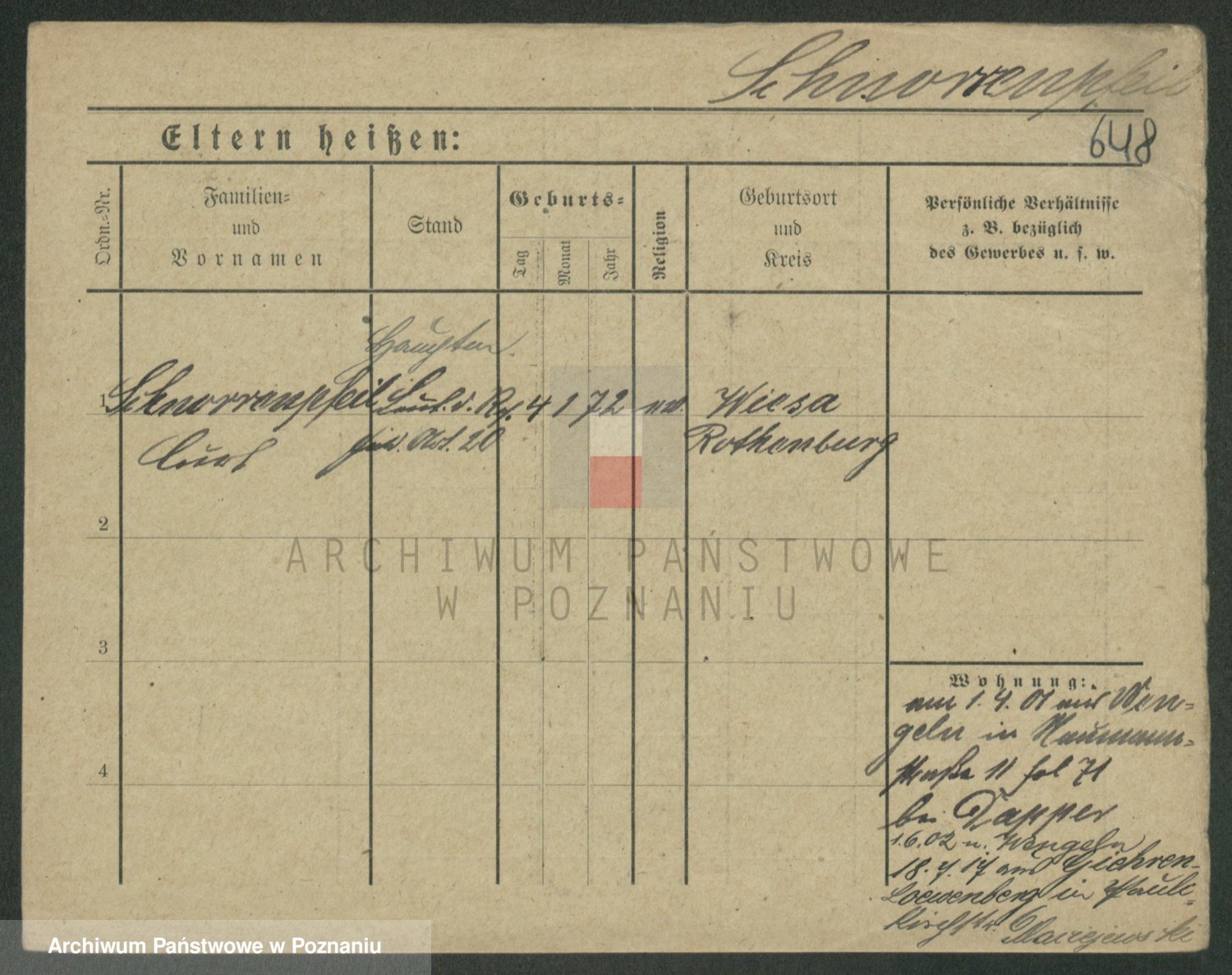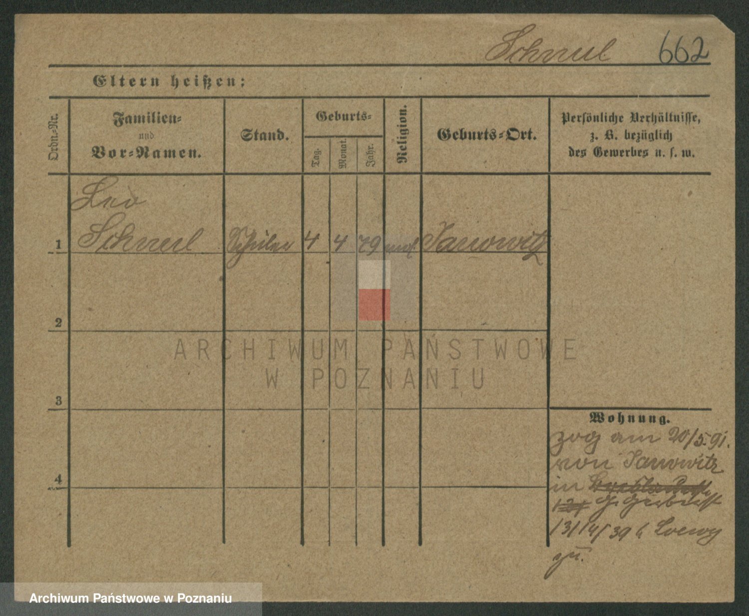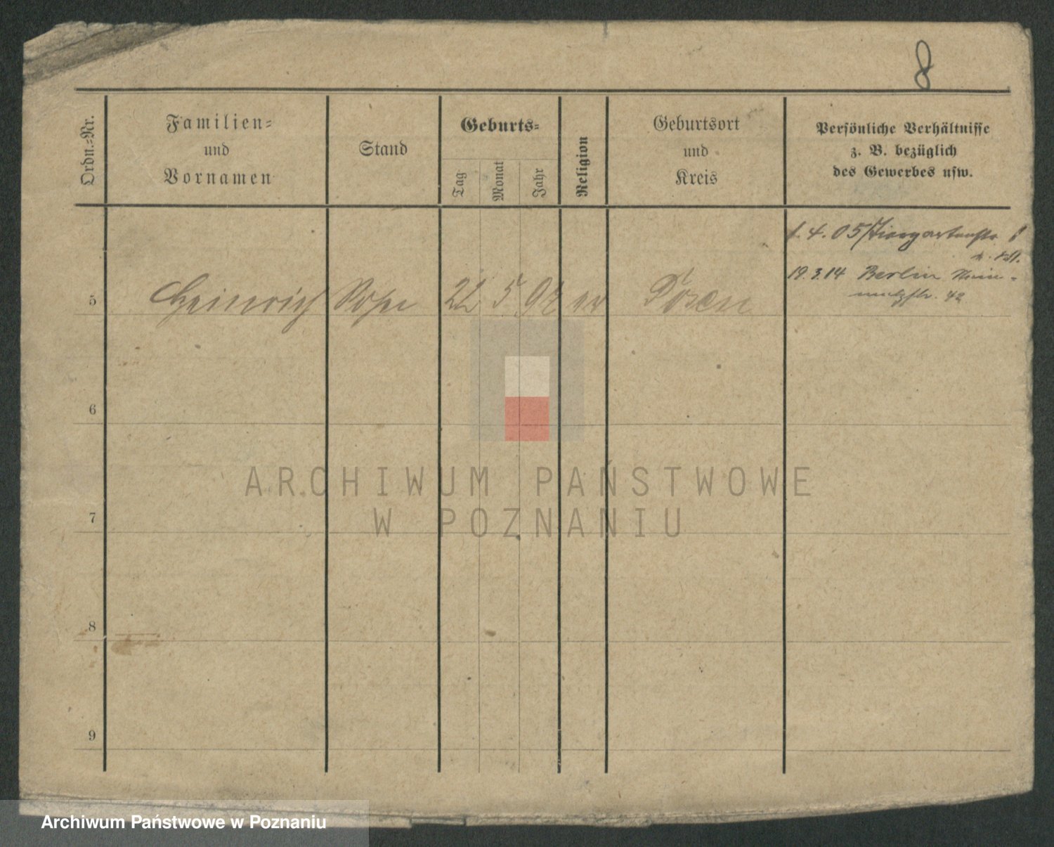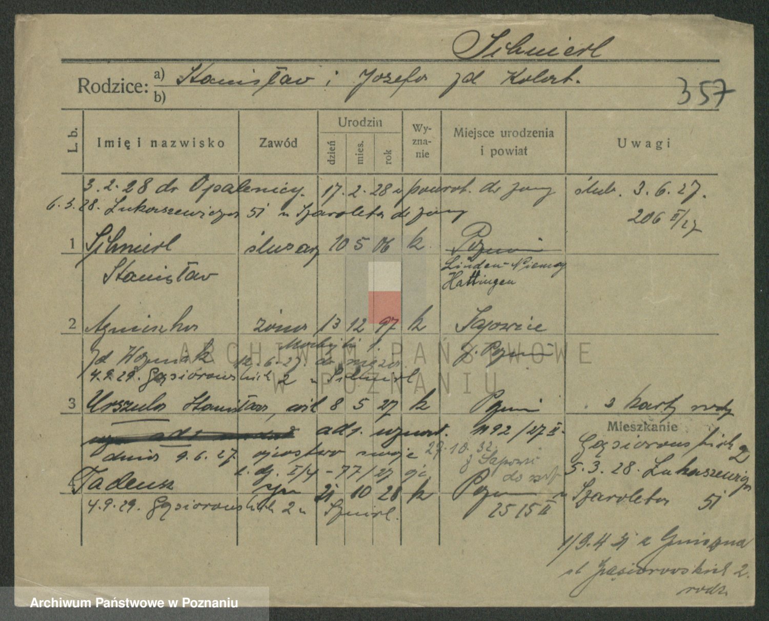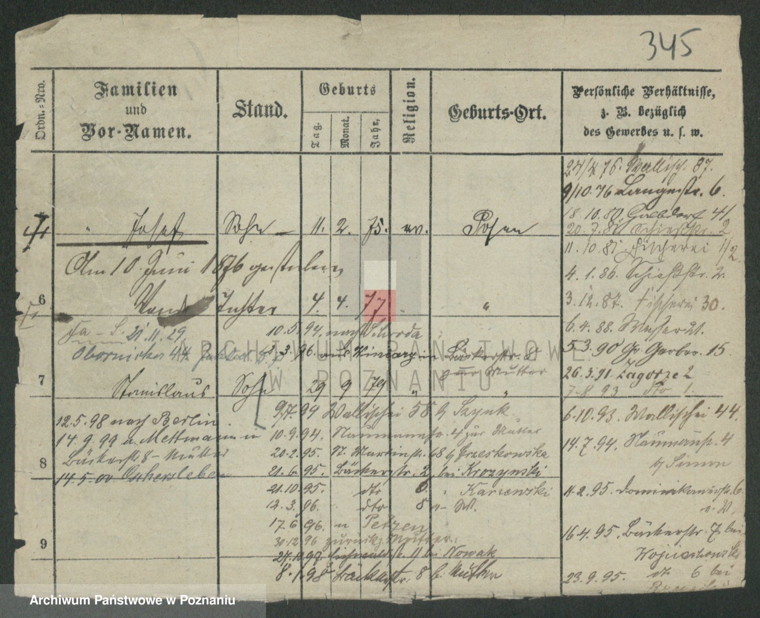 Podgląd karty osobowej dostępny jest po kliknięciu na nazwisko lub ikonkę karty. Można dokonywać powiększenia (ikony na górze) lub przechodzić między kolejnymi skanami (strzałki po bokach).