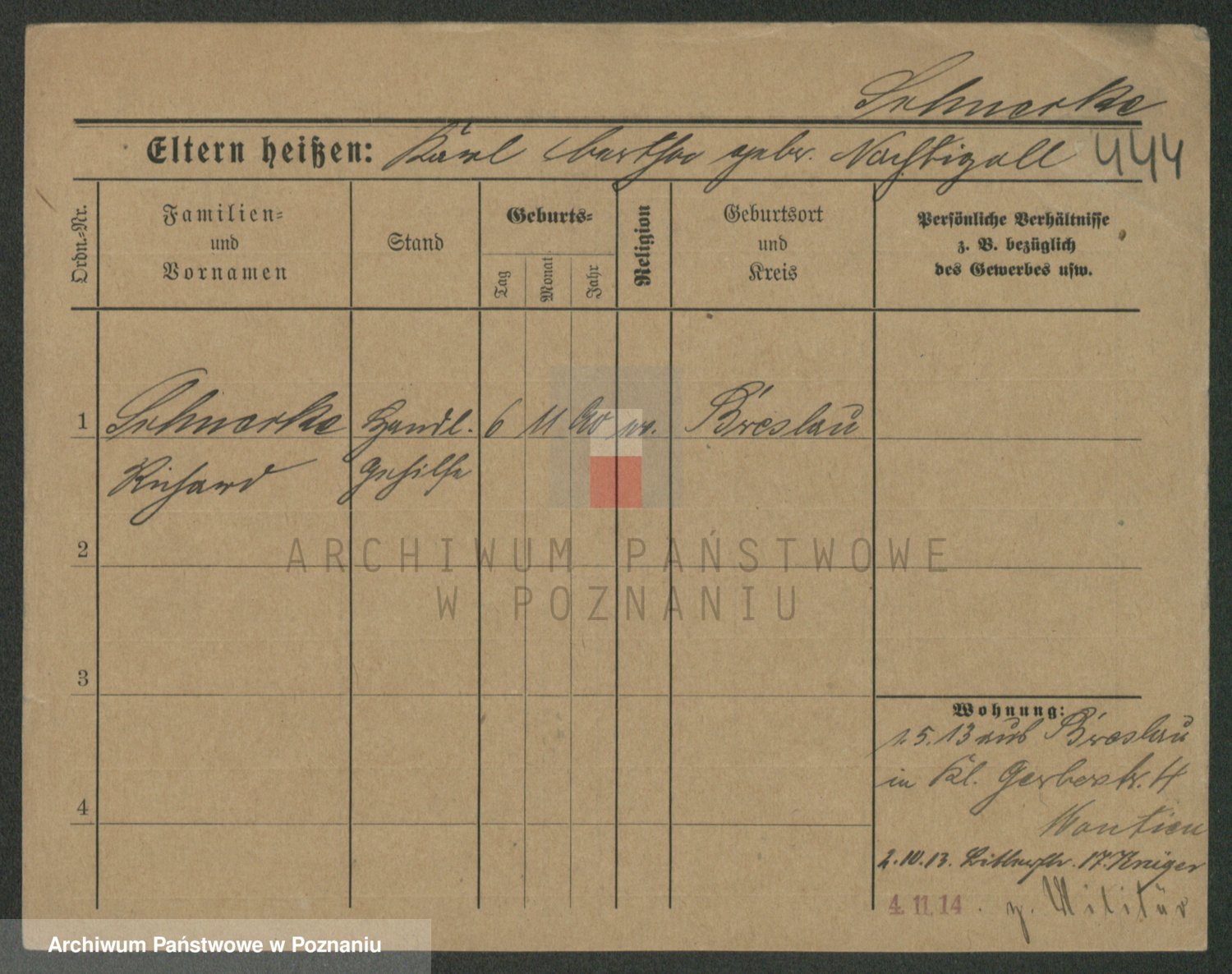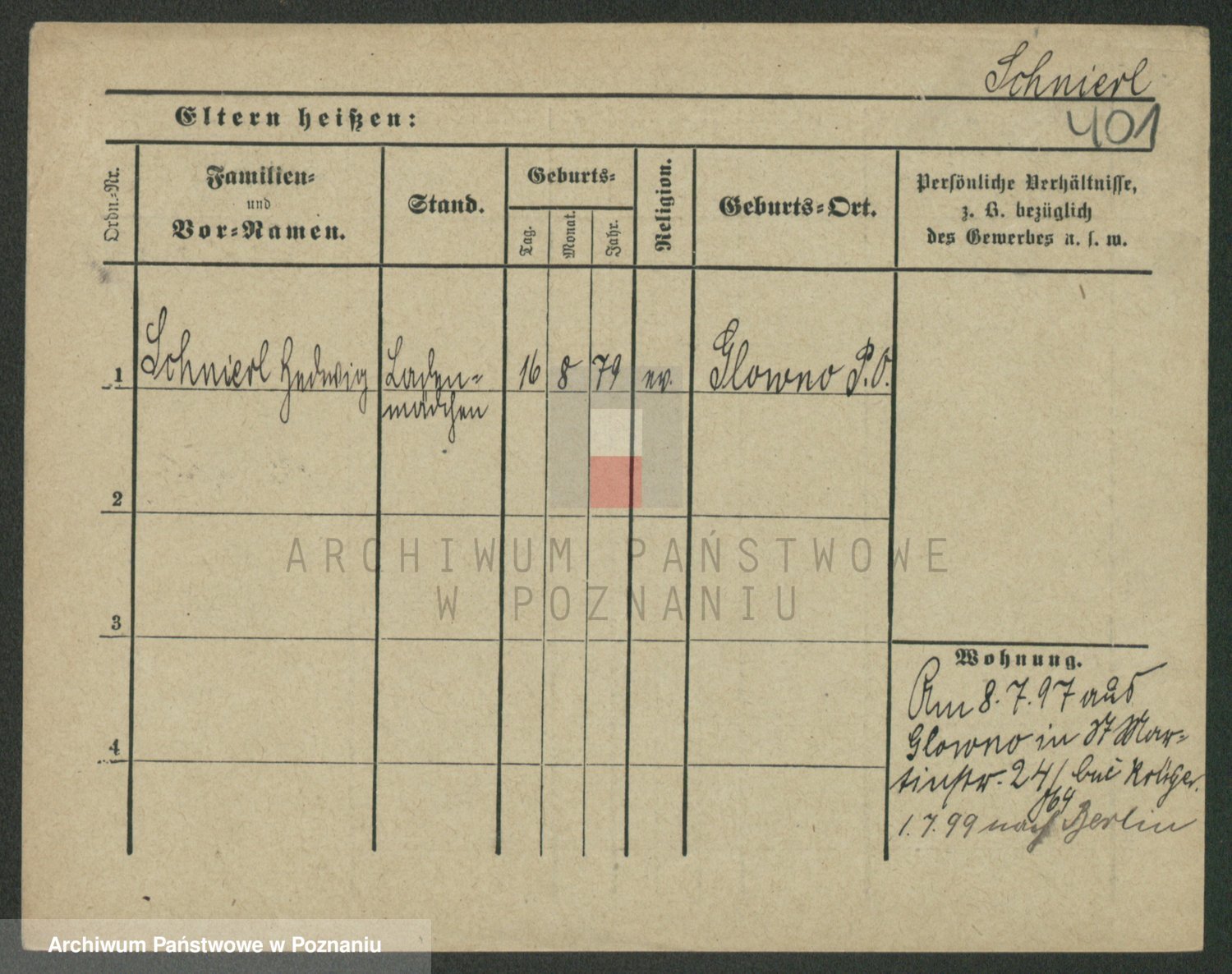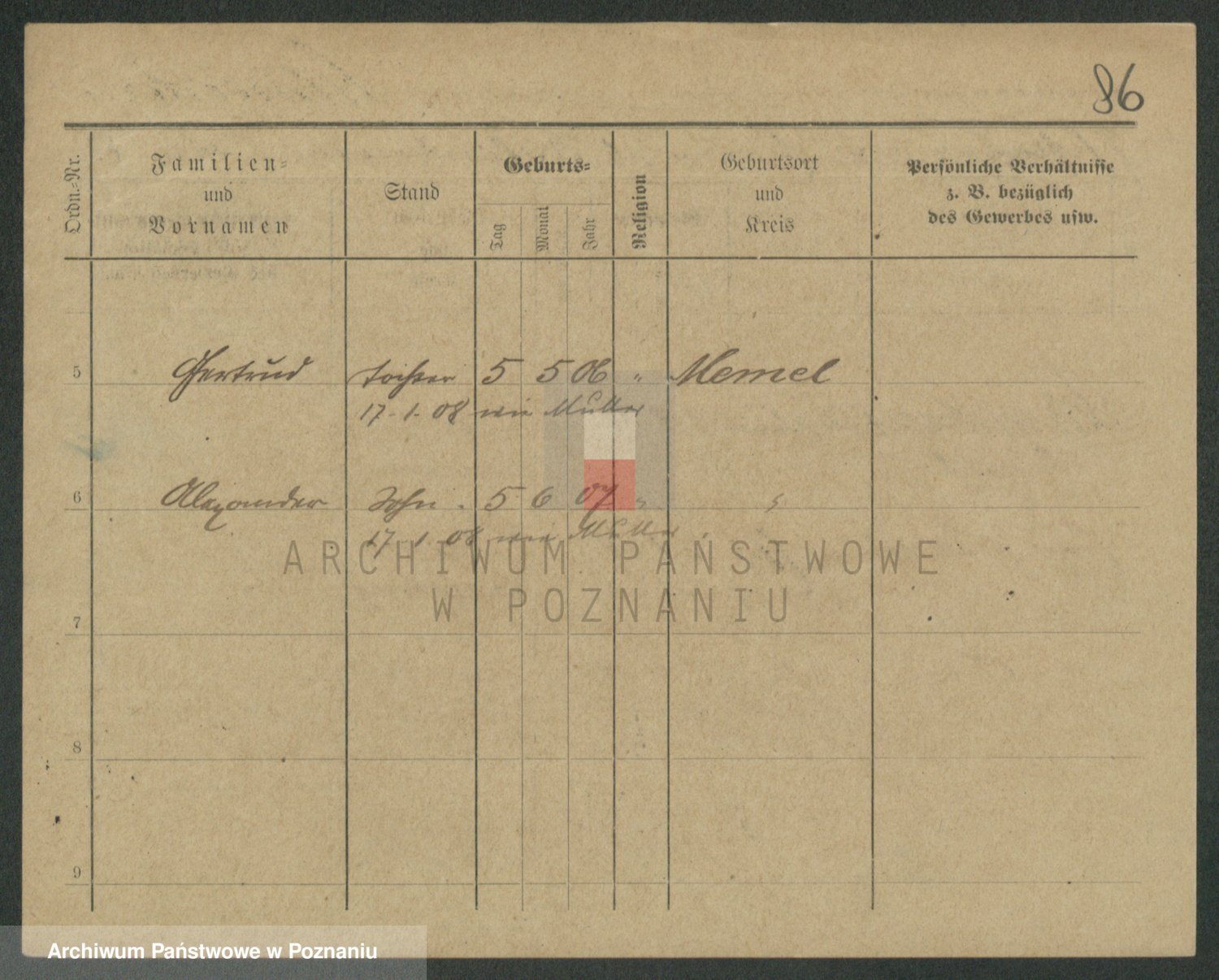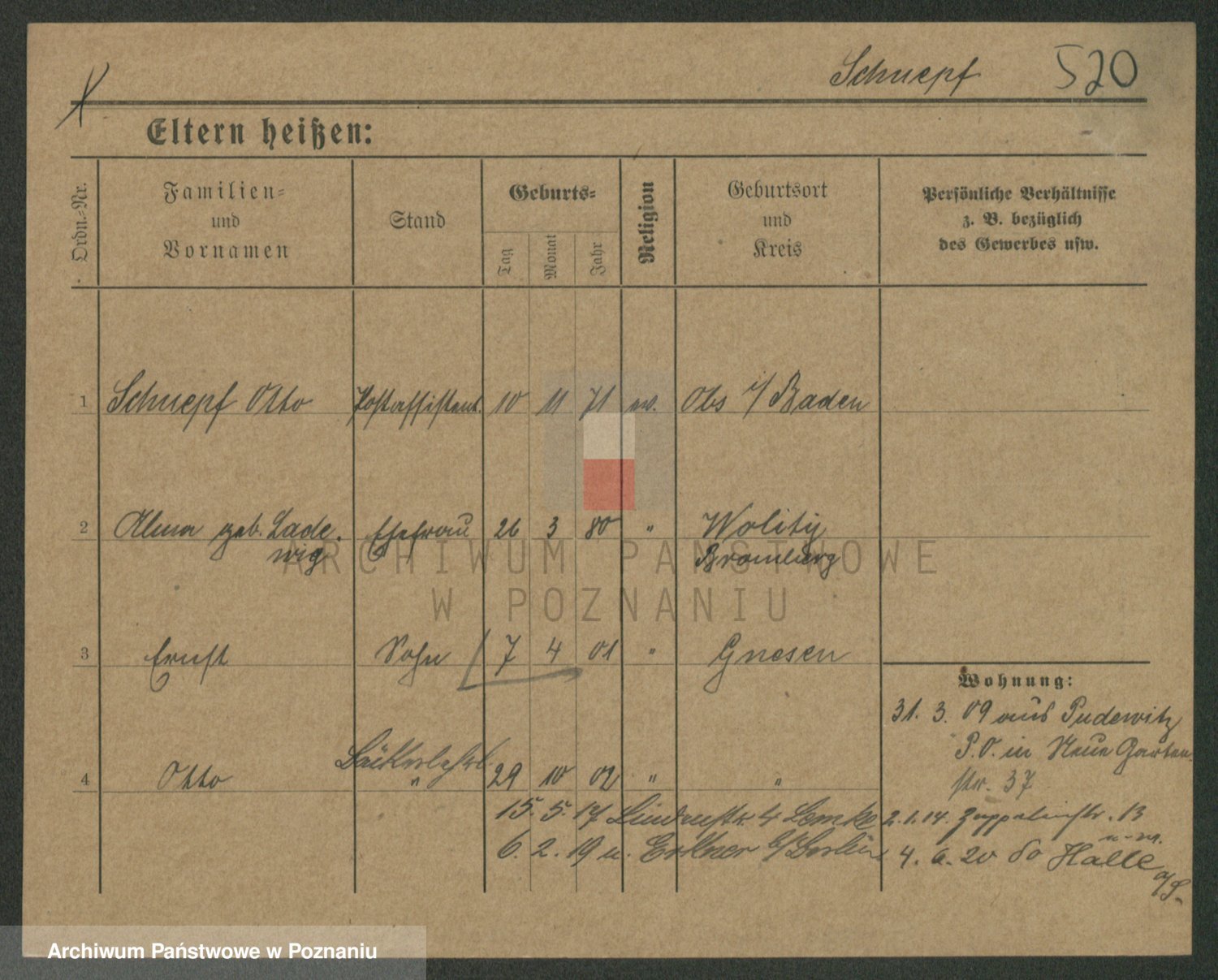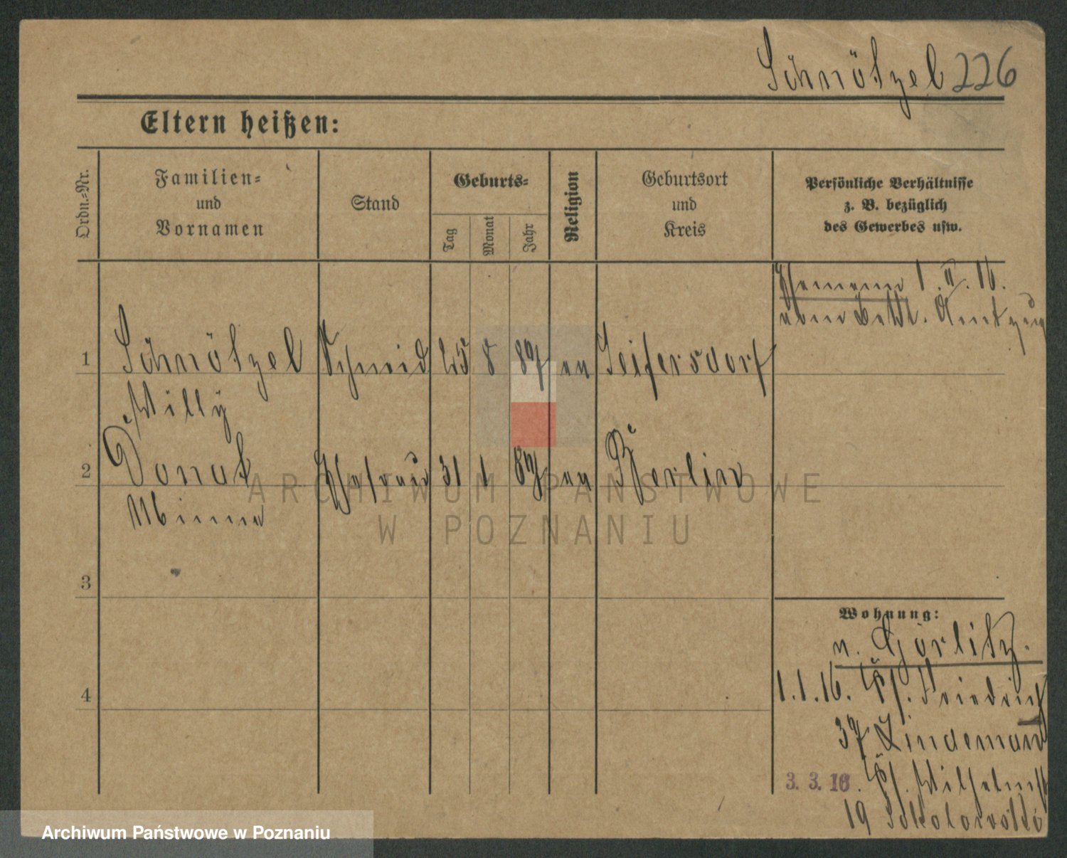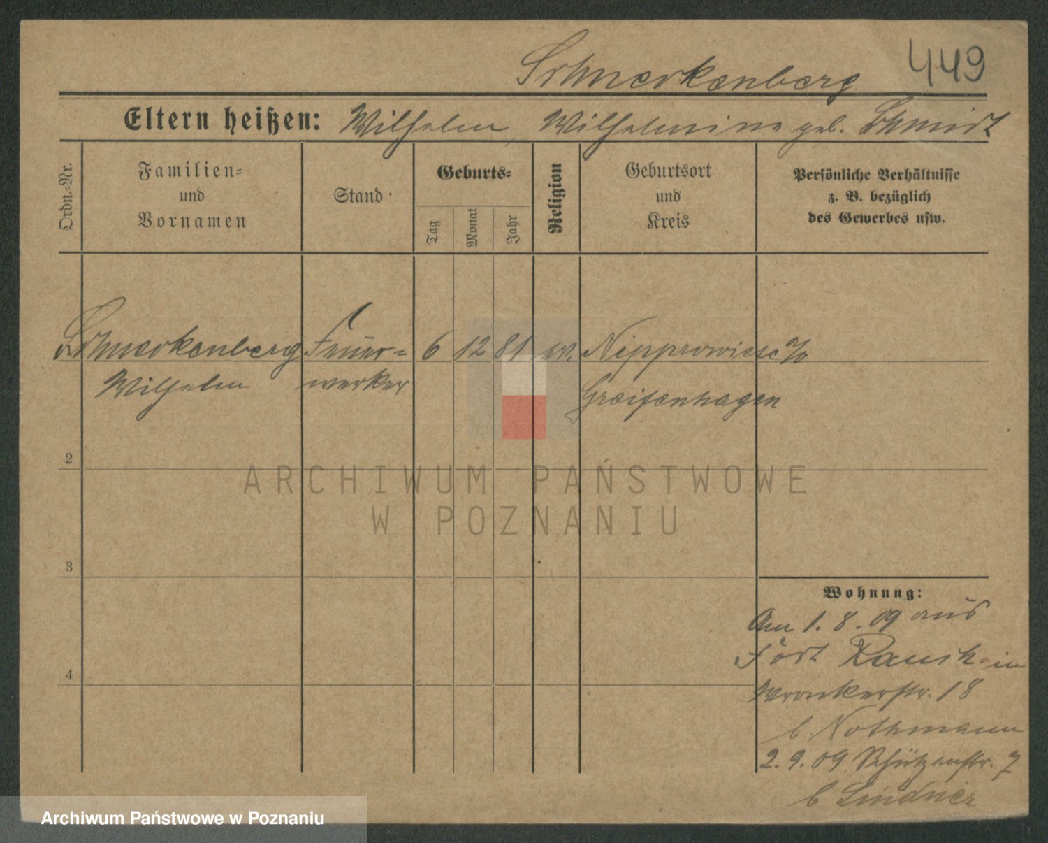 Podgląd karty osobowej dostępny jest po kliknięciu na nazwisko lub ikonkę karty. Można dokonywać powiększenia (ikony na górze) lub przechodzić między kolejnymi skanami (strzałki po bokach).