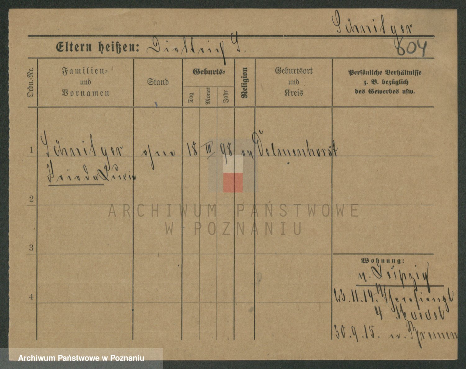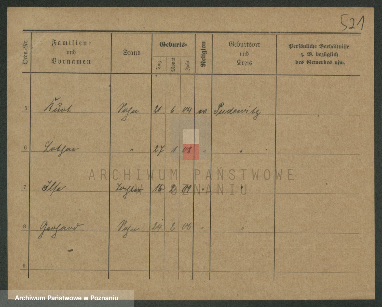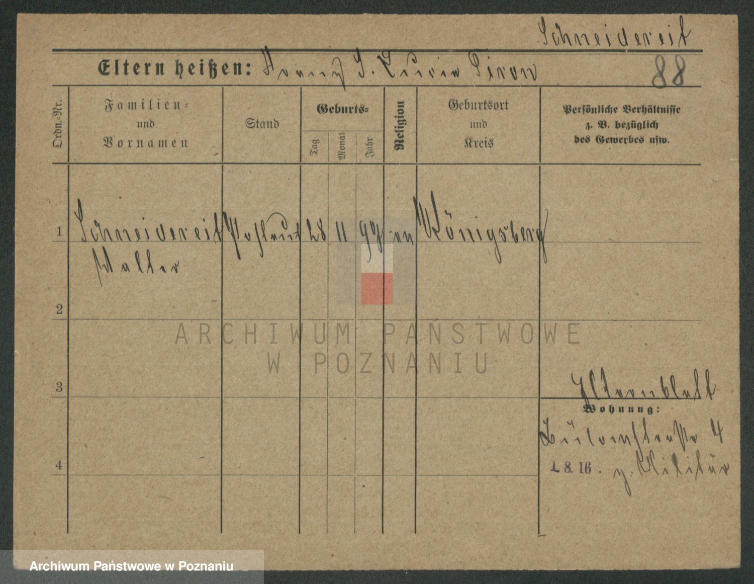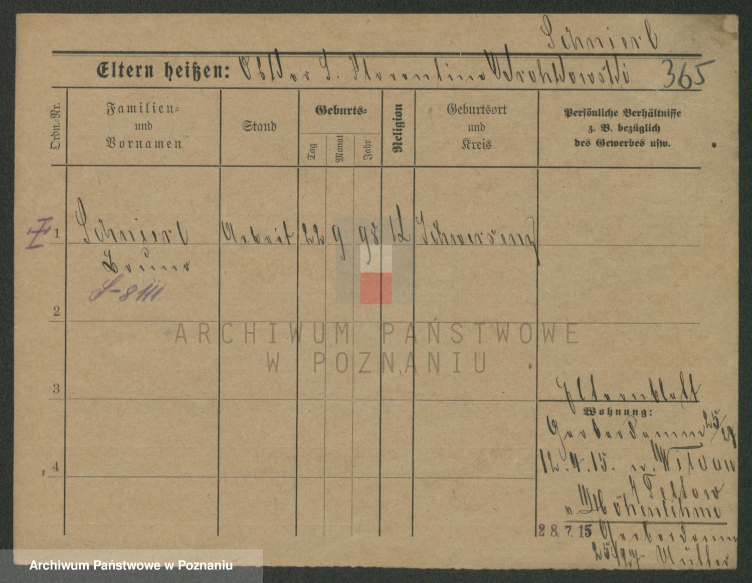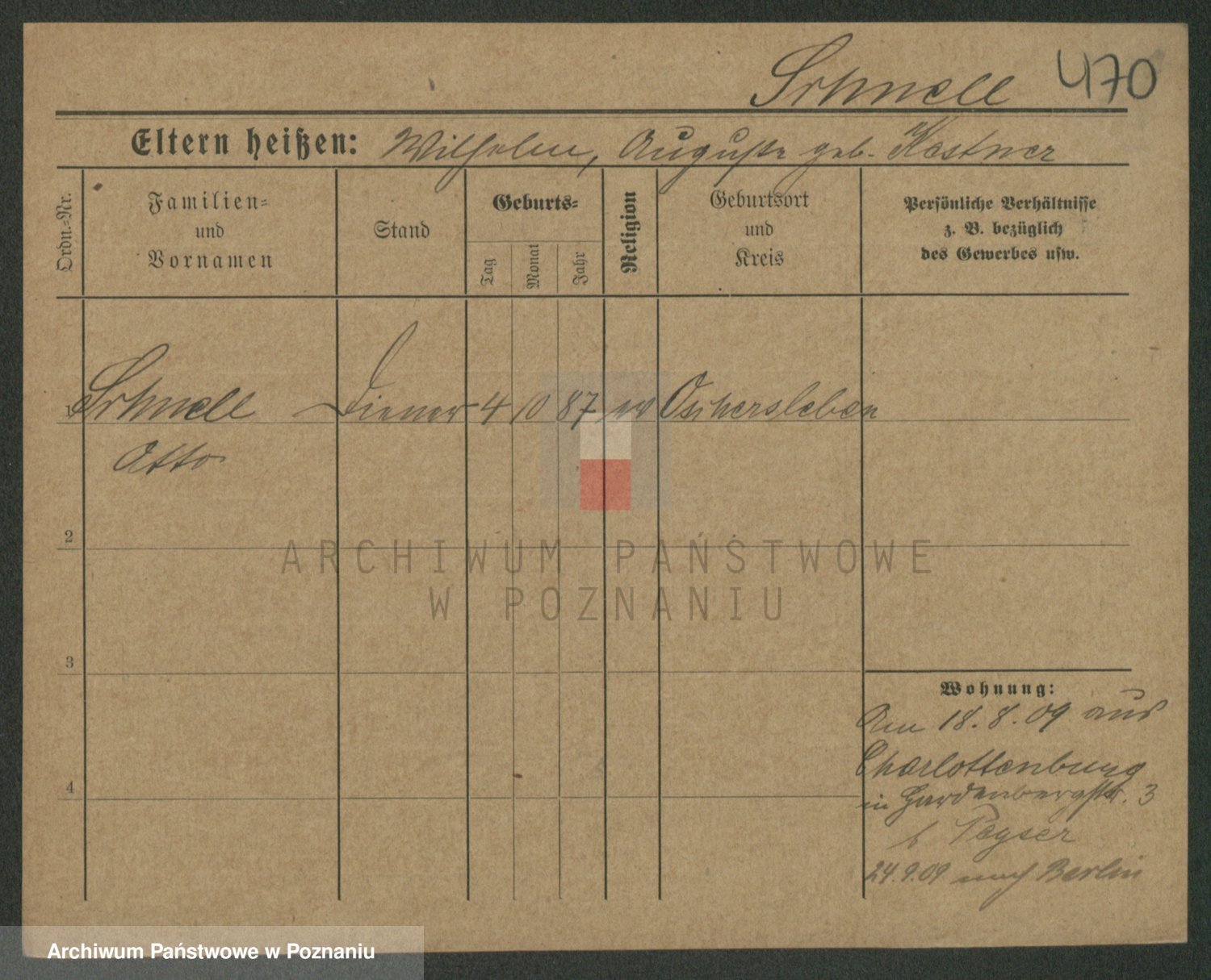 Podgląd karty osobowej dostępny jest po kliknięciu na nazwisko lub ikonkę karty. Można dokonywać powiększenia (ikony na górze) lub przechodzić między kolejnymi skanami (strzałki po bokach).