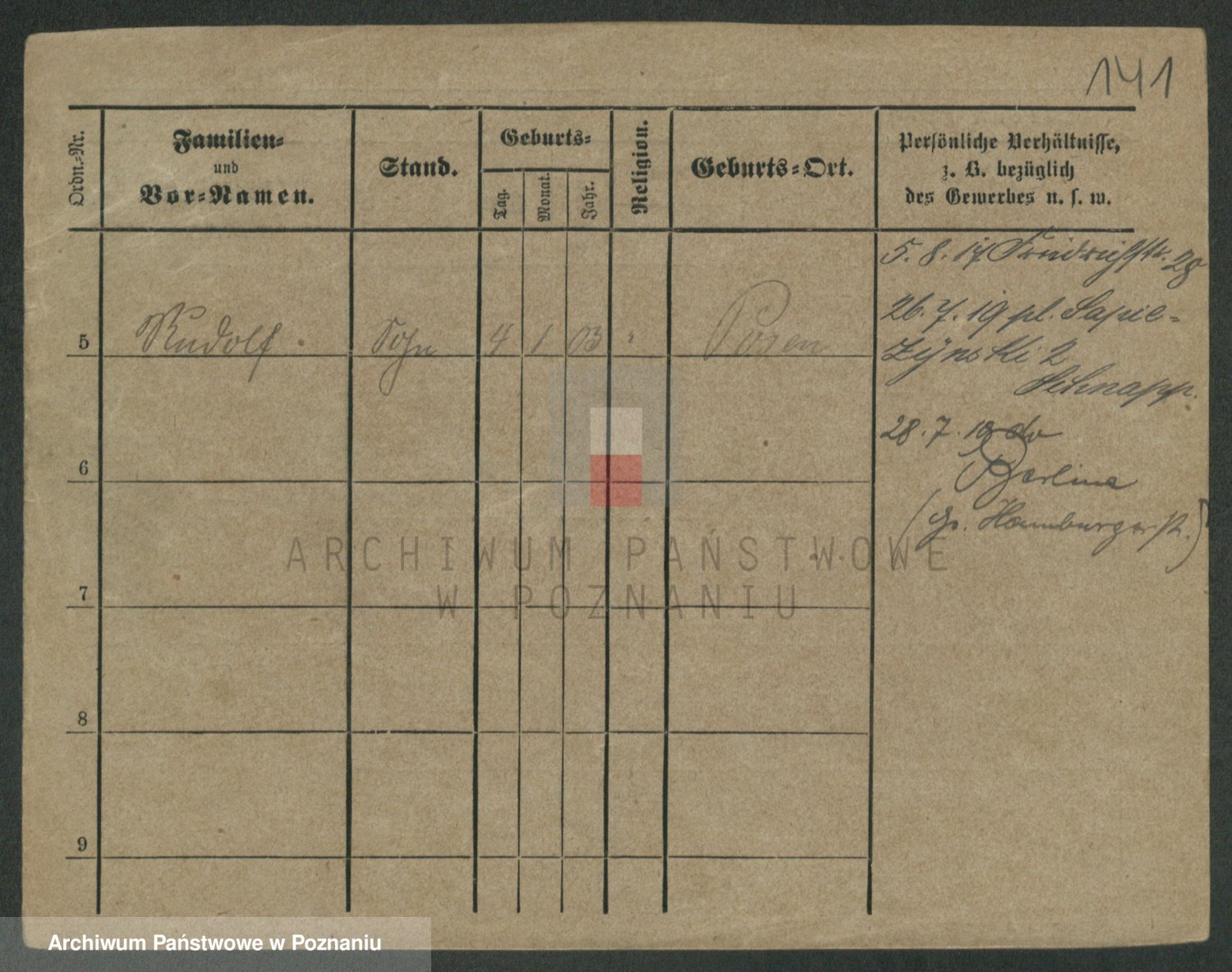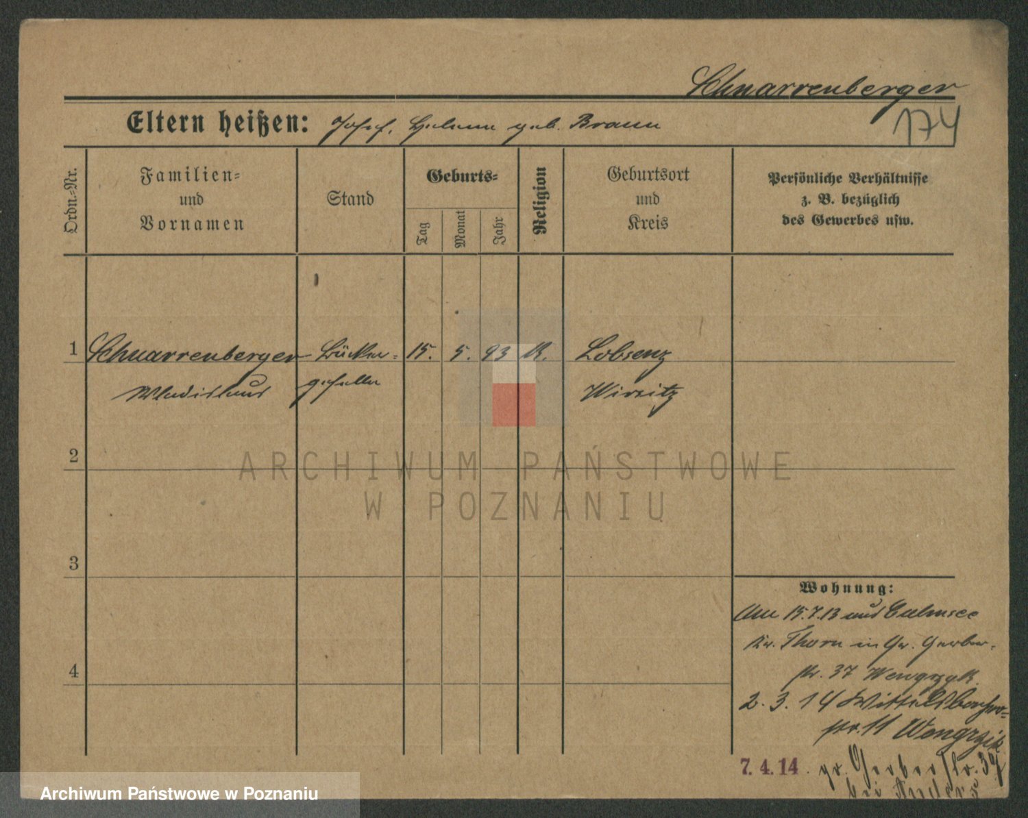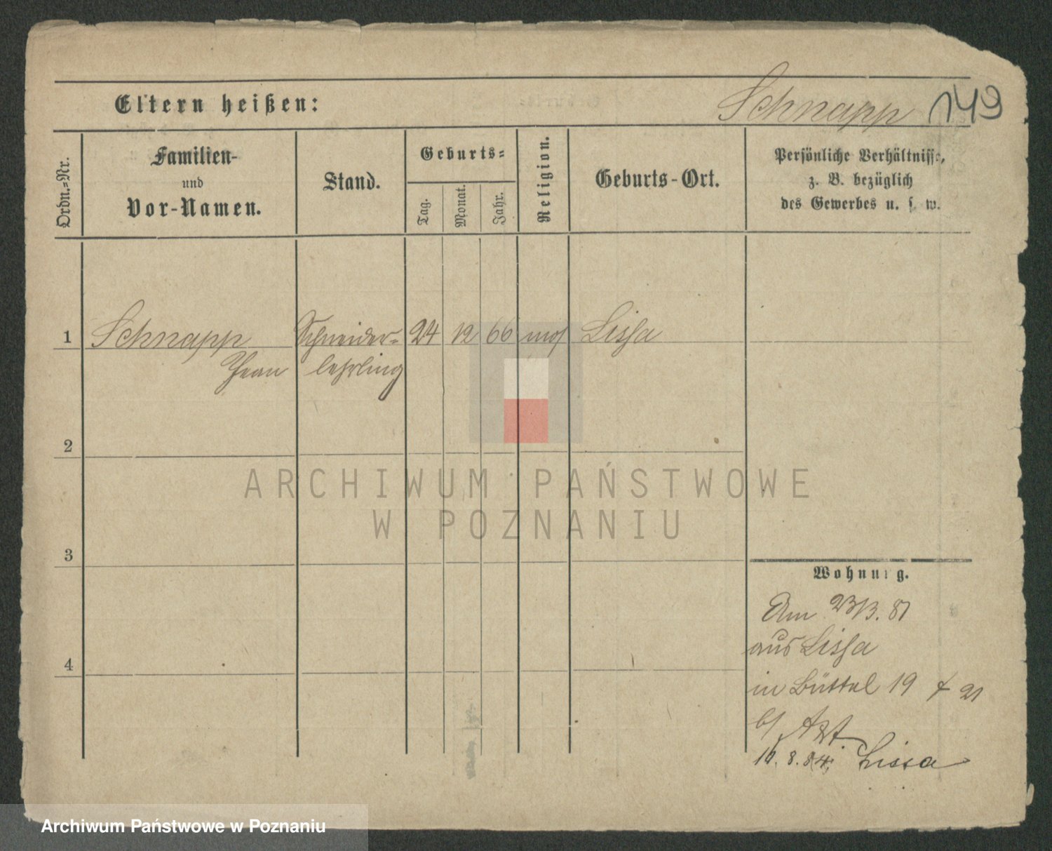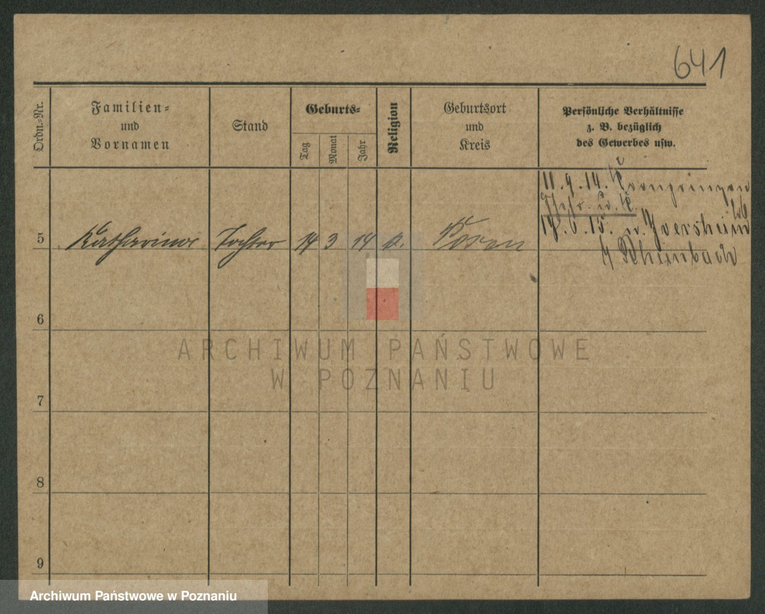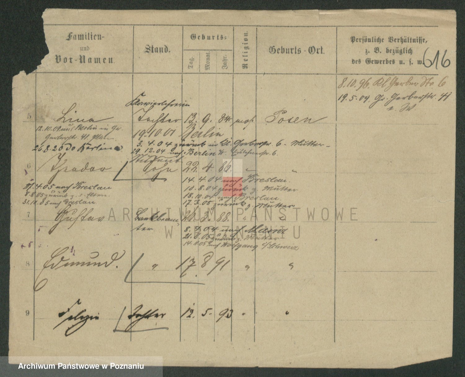 Podgląd karty osobowej dostępny jest po kliknięciu na nazwisko lub ikonkę karty. Można dokonywać powiększenia (ikony na górze) lub przechodzić między kolejnymi skanami (strzałki po bokach).