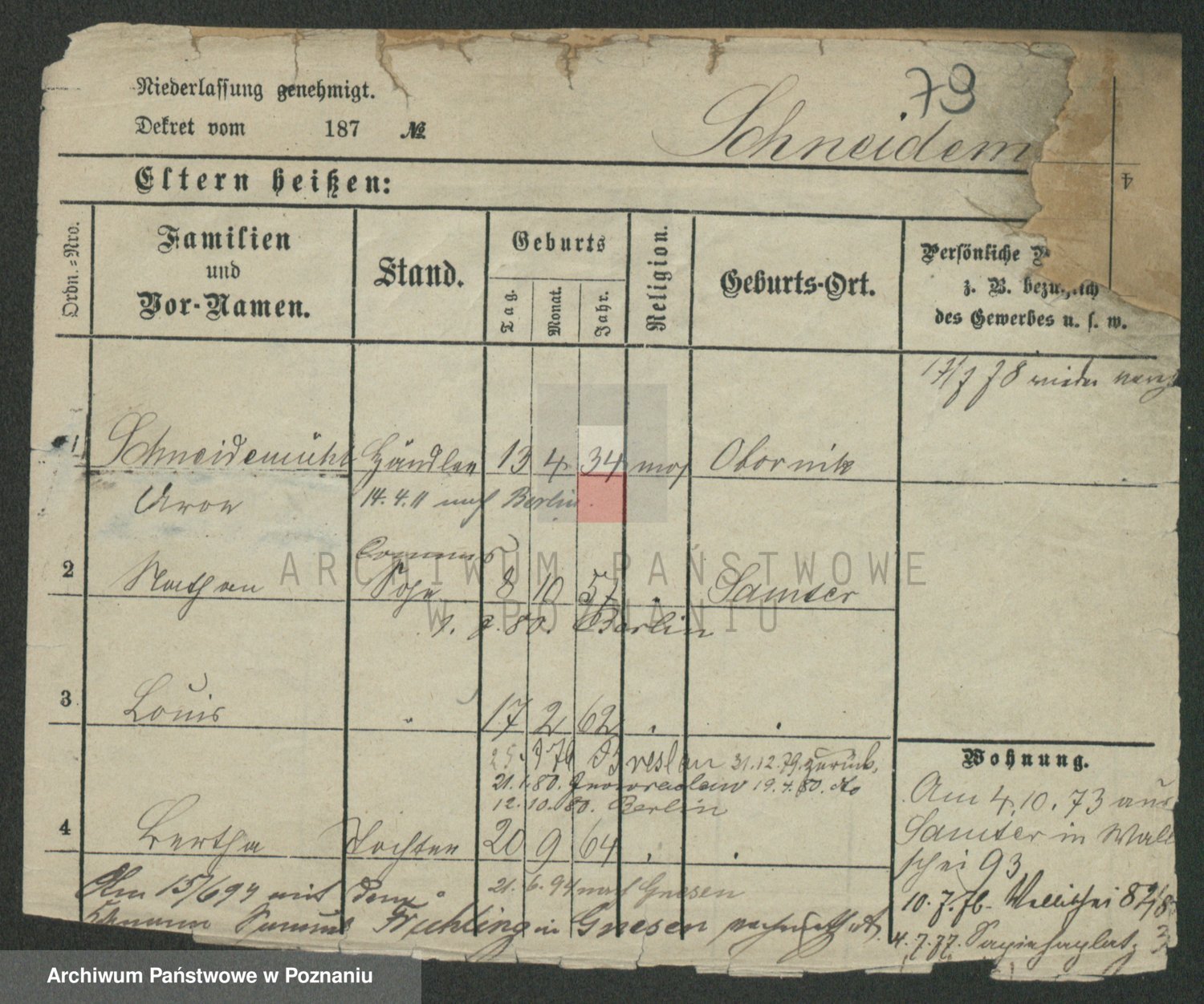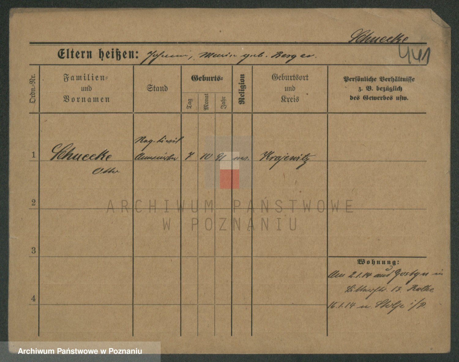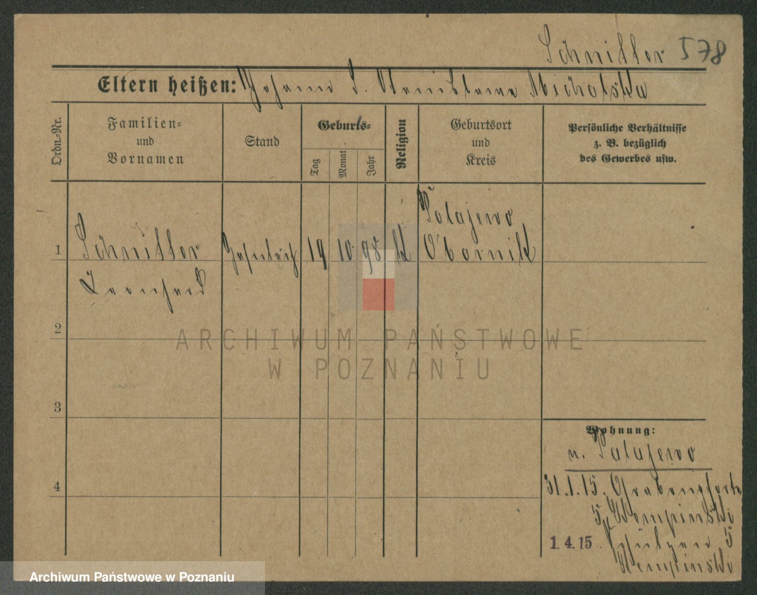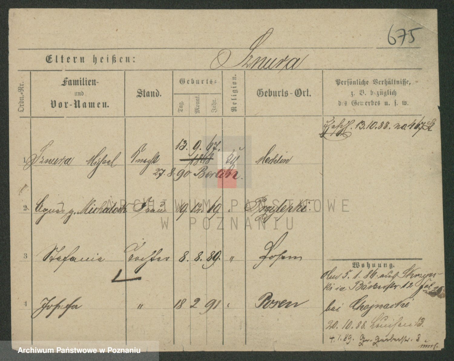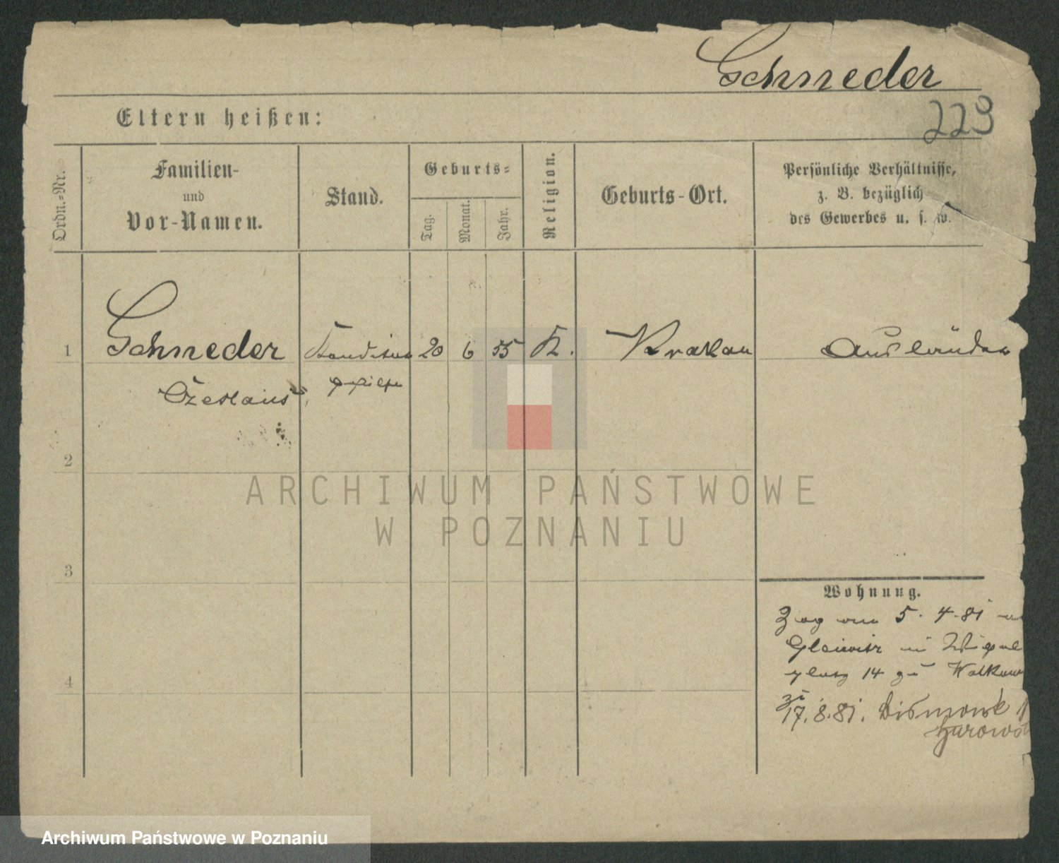 Podgląd karty osobowej dostępny jest po kliknięciu na nazwisko lub ikonkę karty. Można dokonywać powiększenia (ikony na górze) lub przechodzić między kolejnymi skanami (strzałki po bokach).