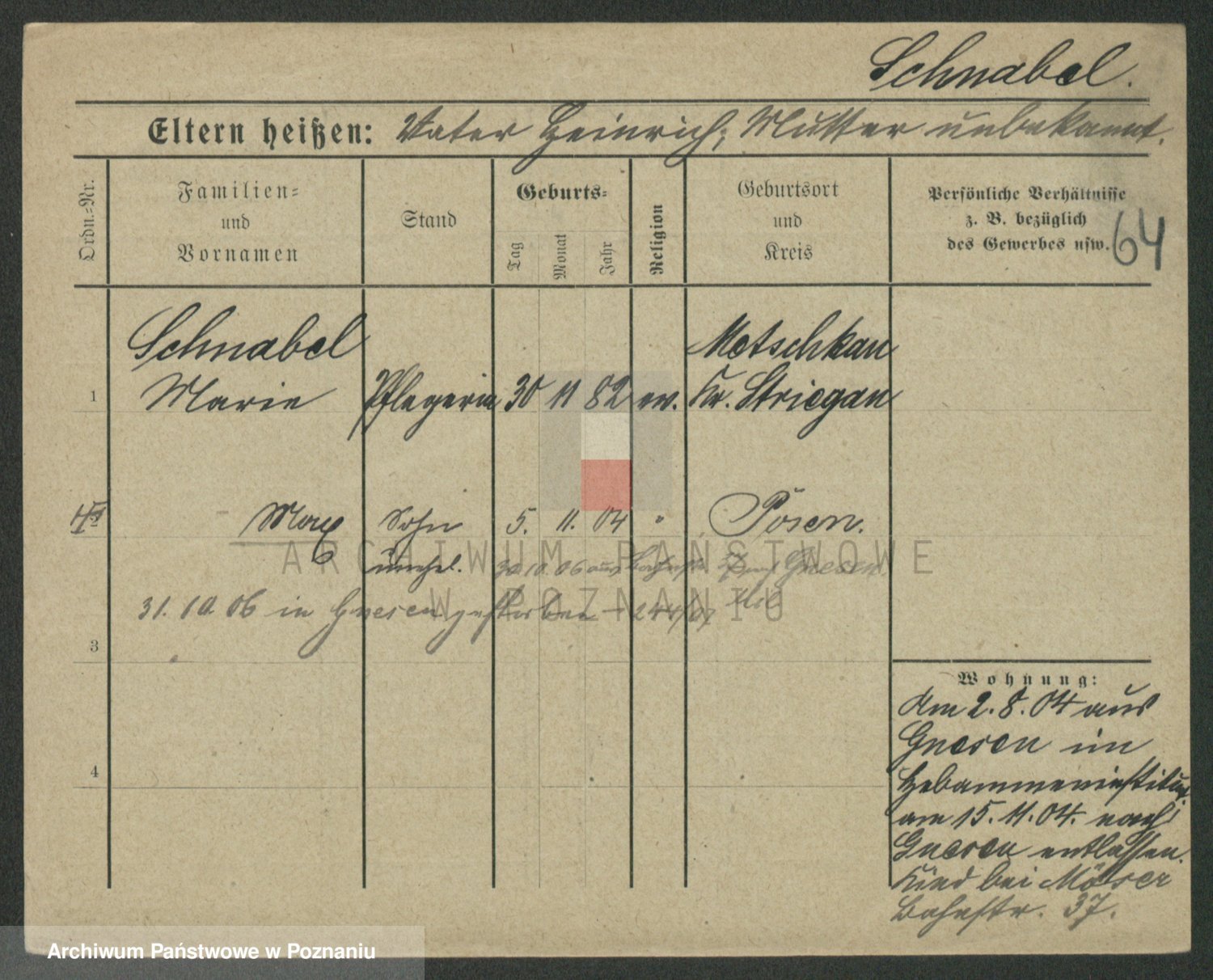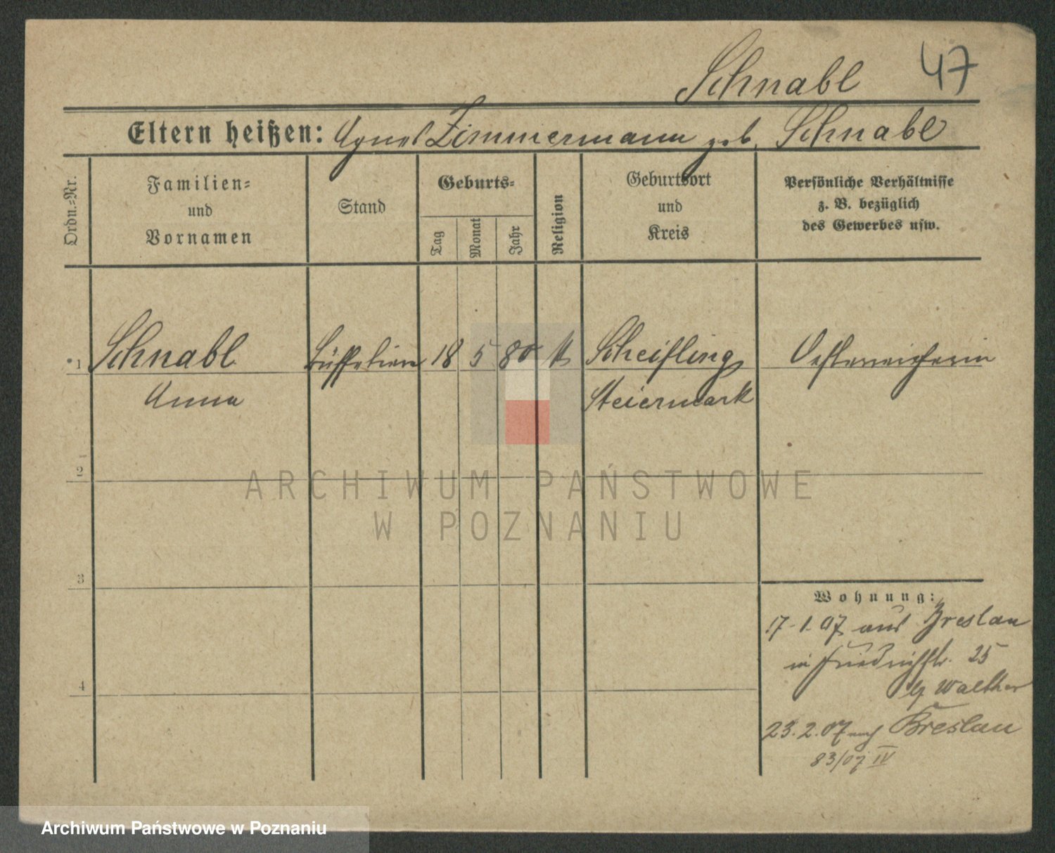 Schnabel z d. Grüsser, Johanna Marie