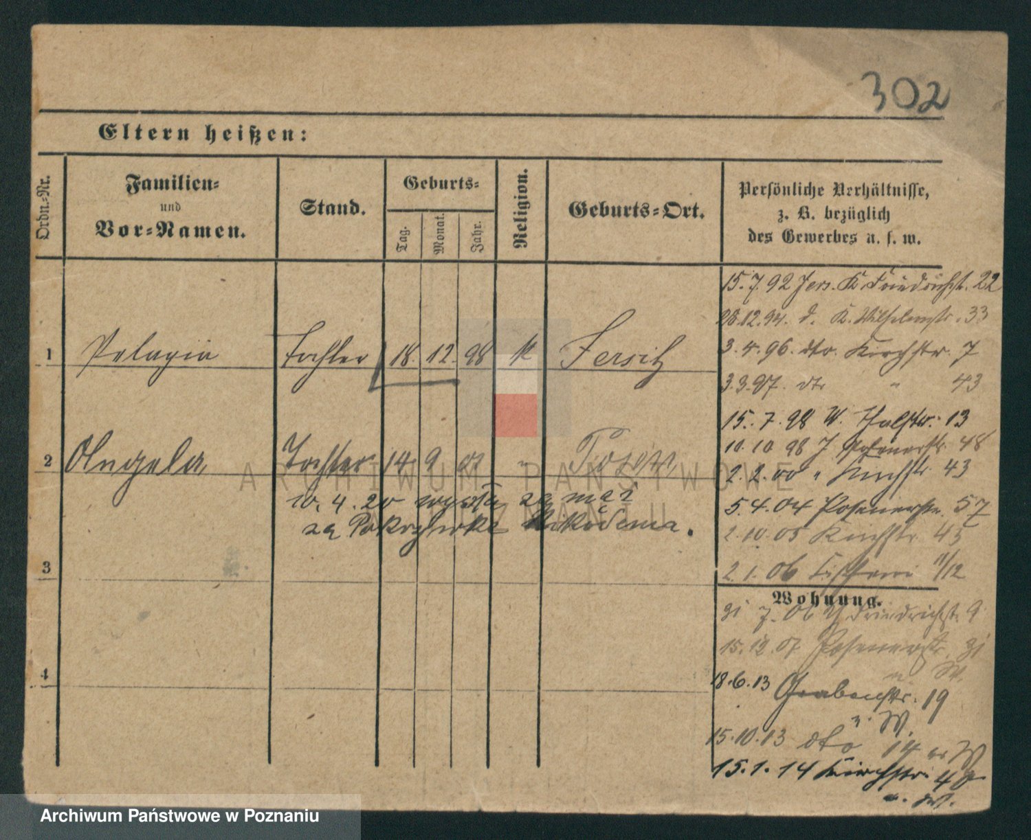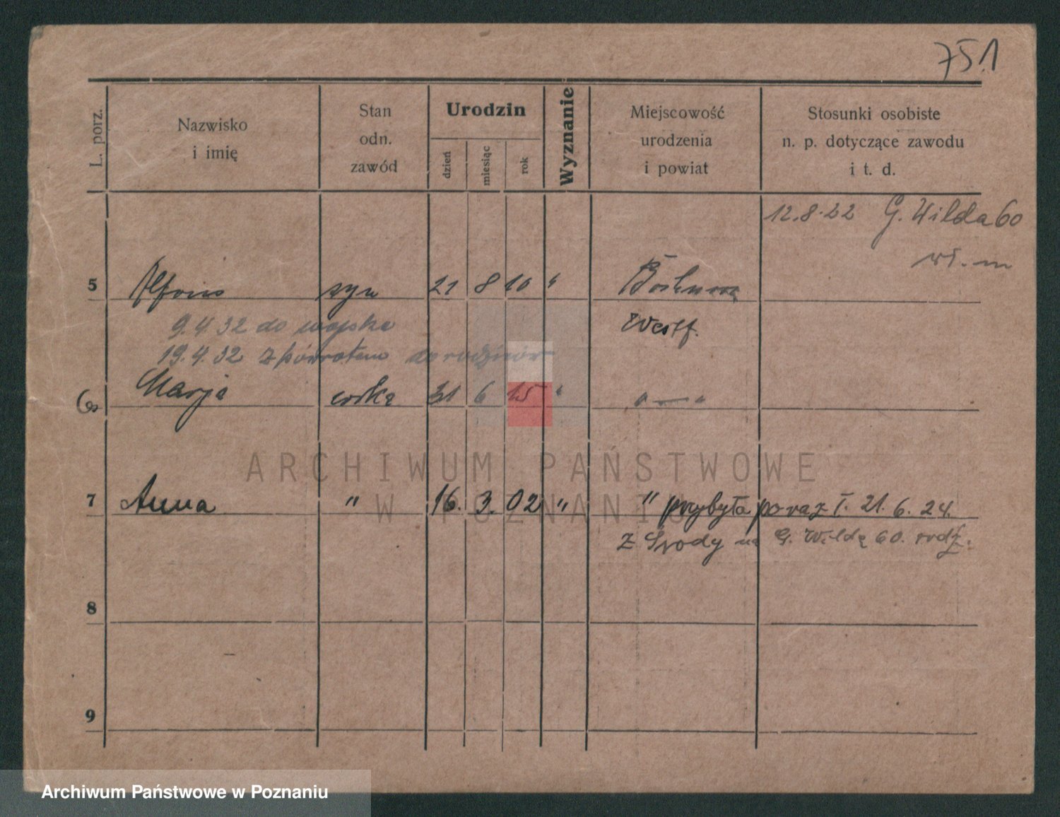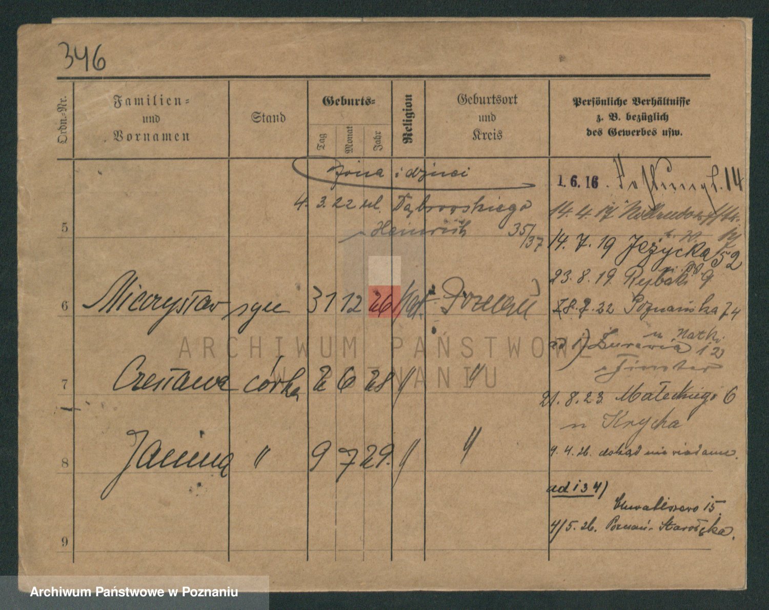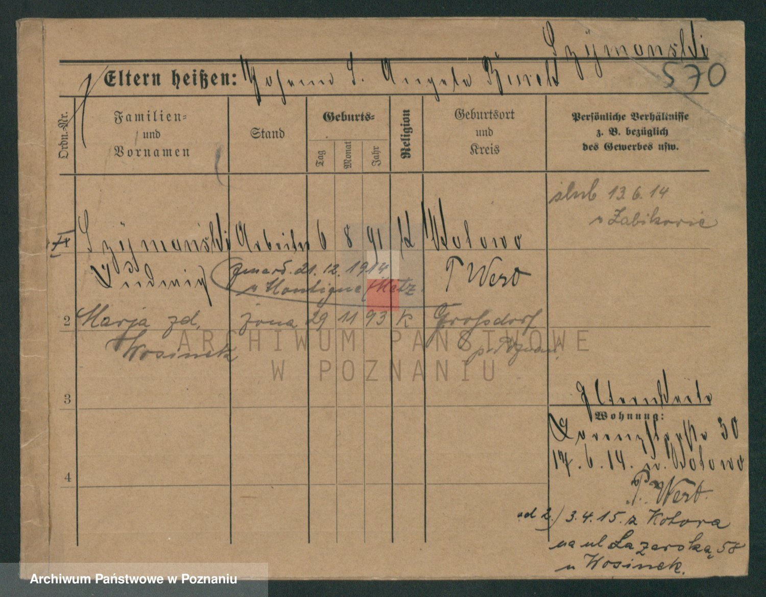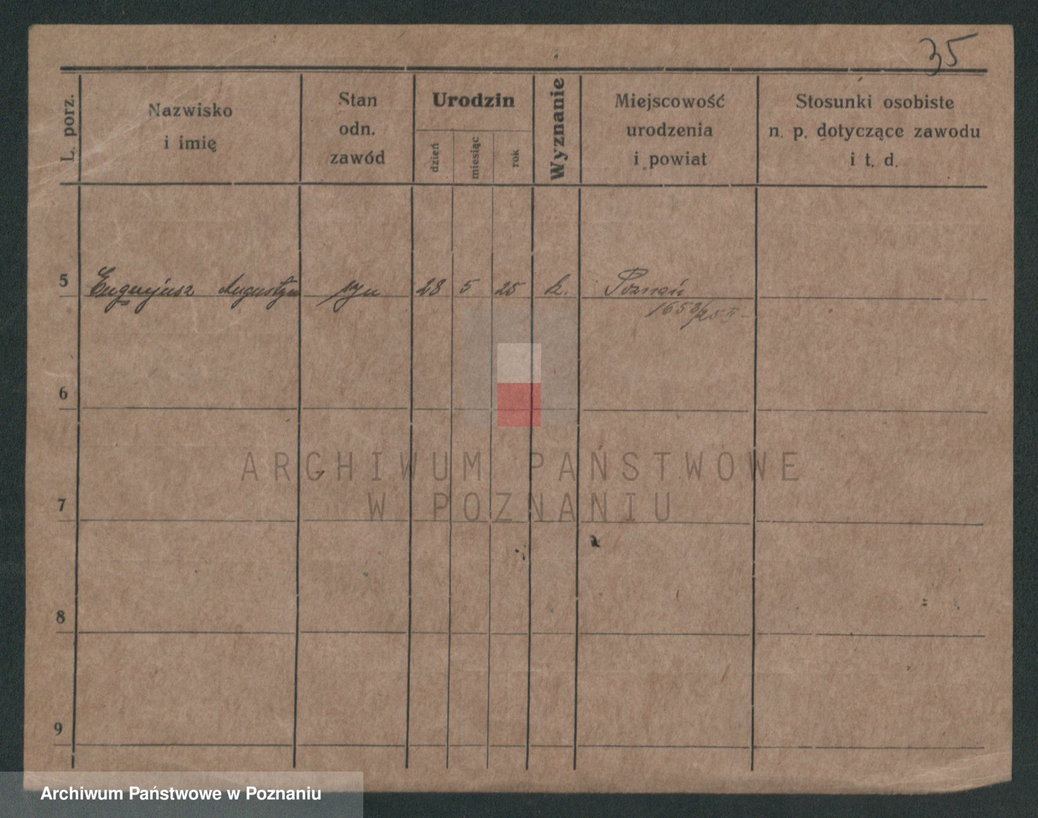 Podgląd karty osobowej dostępny jest po kliknięciu na nazwisko lub ikonkę karty. Można dokonywać powiększenia (ikony na górze) lub przechodzić między kolejnymi skanami (strzałki po bokach).