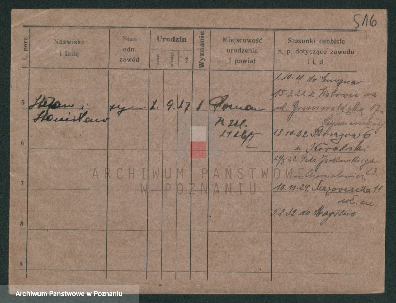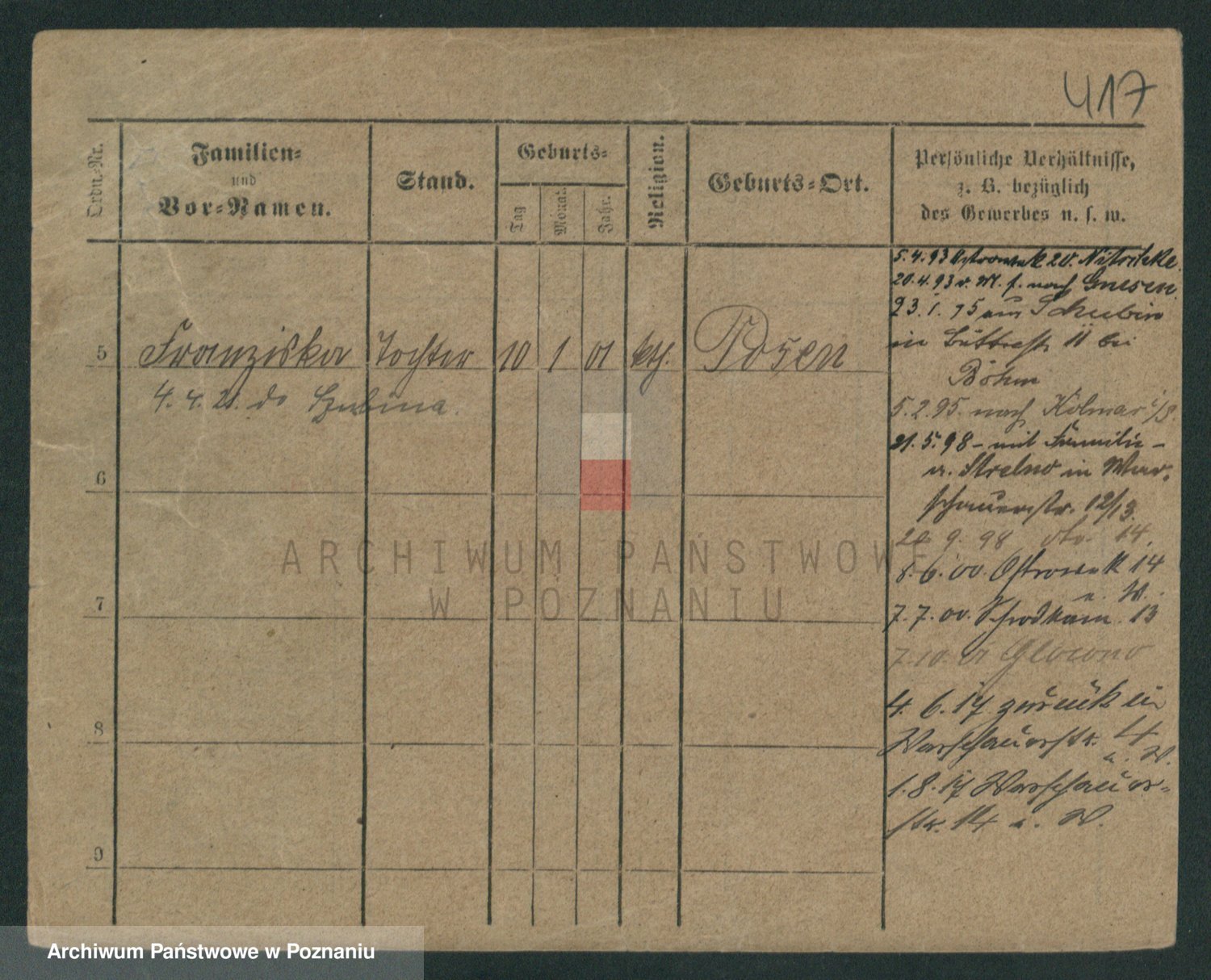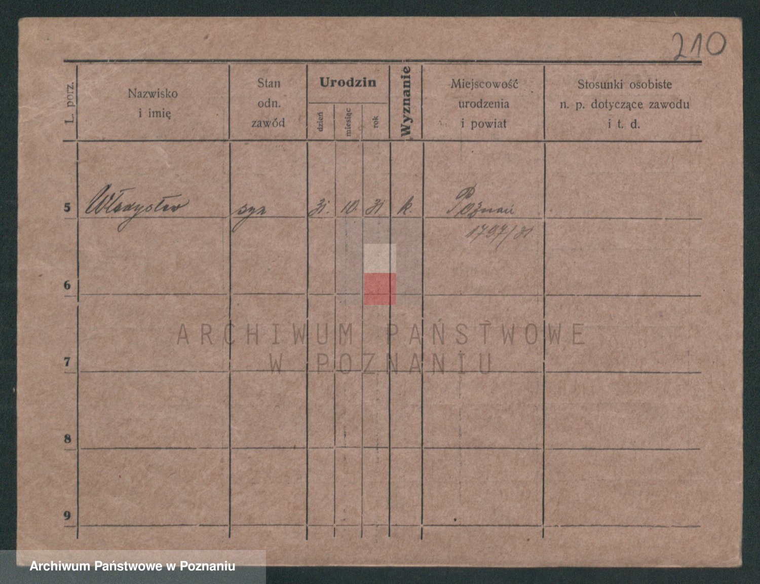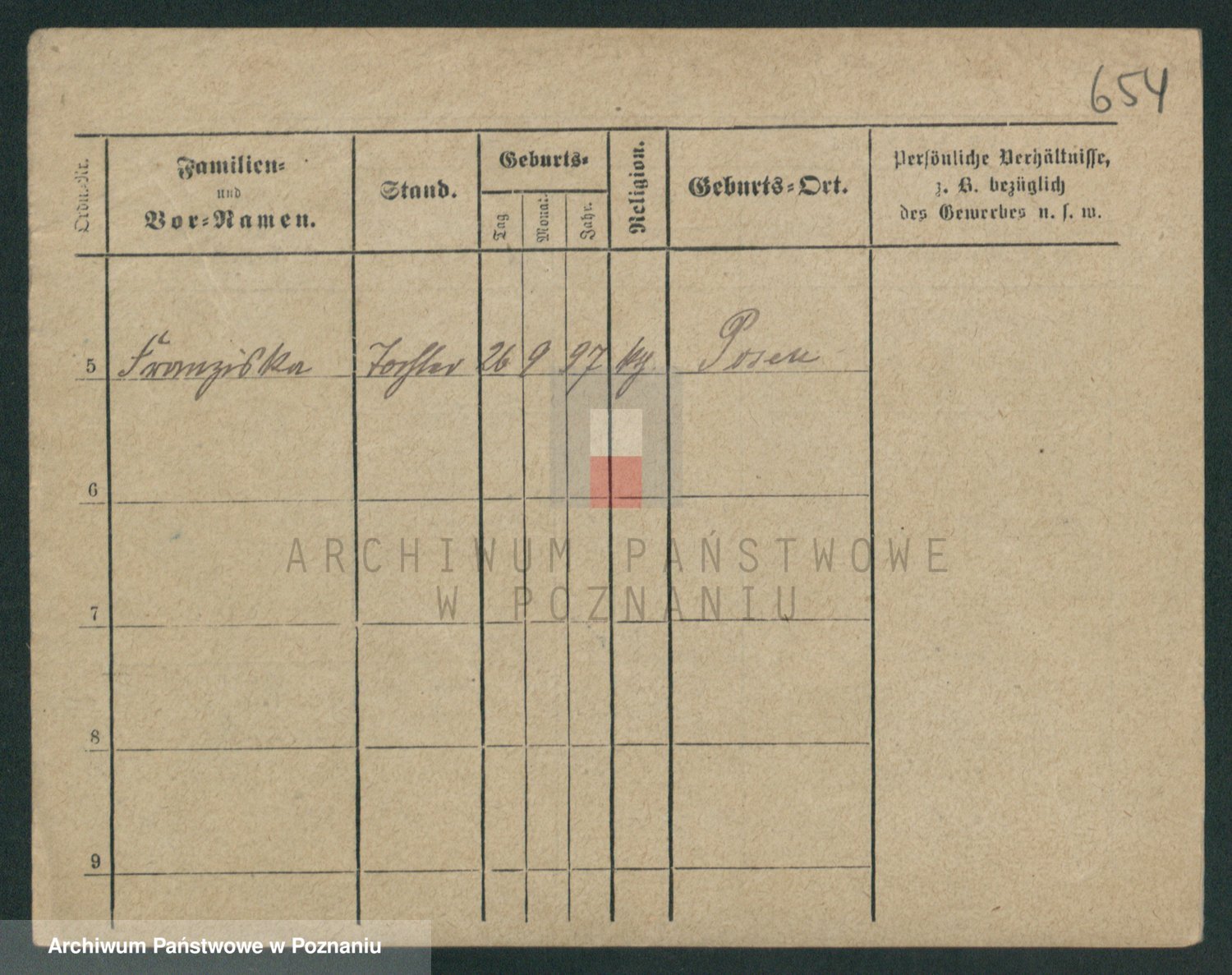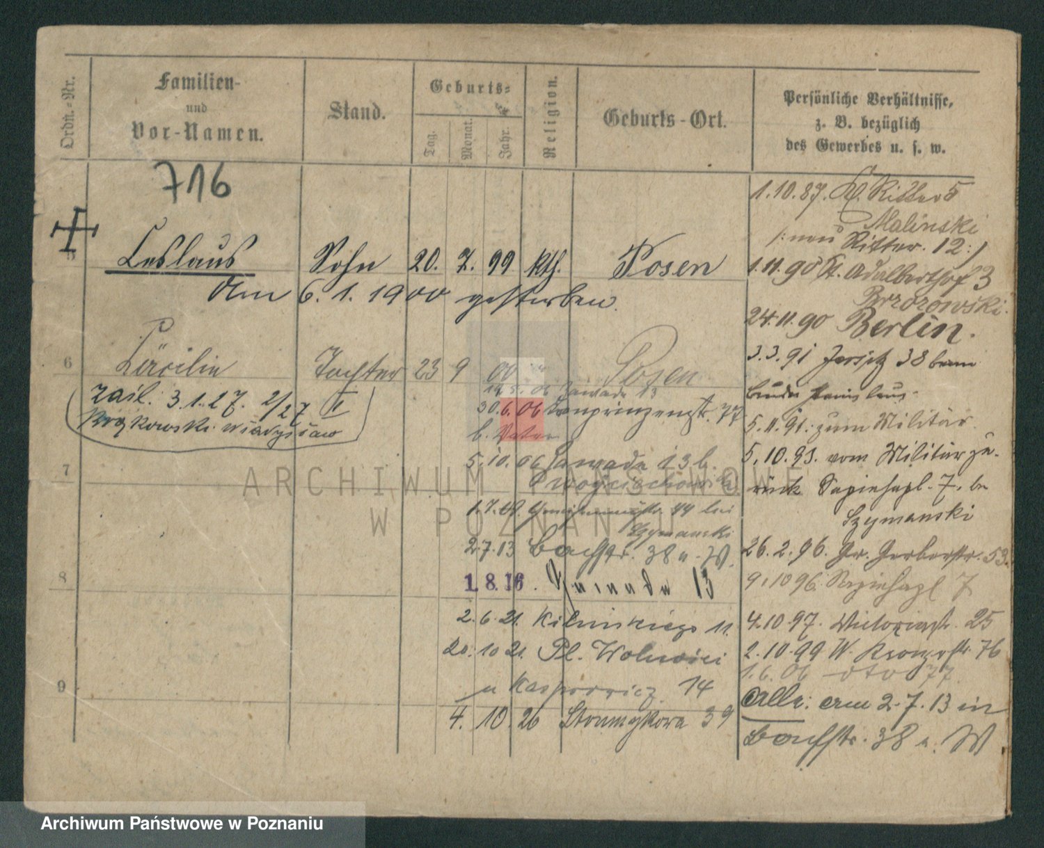 Podgląd karty osobowej dostępny jest po kliknięciu na nazwisko lub ikonkę karty. Można dokonywać powiększenia (ikony na górze) lub przechodzić między kolejnymi skanami (strzałki po bokach).