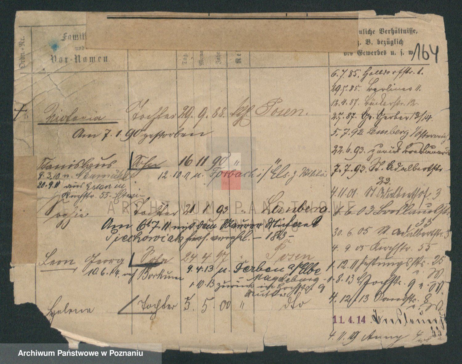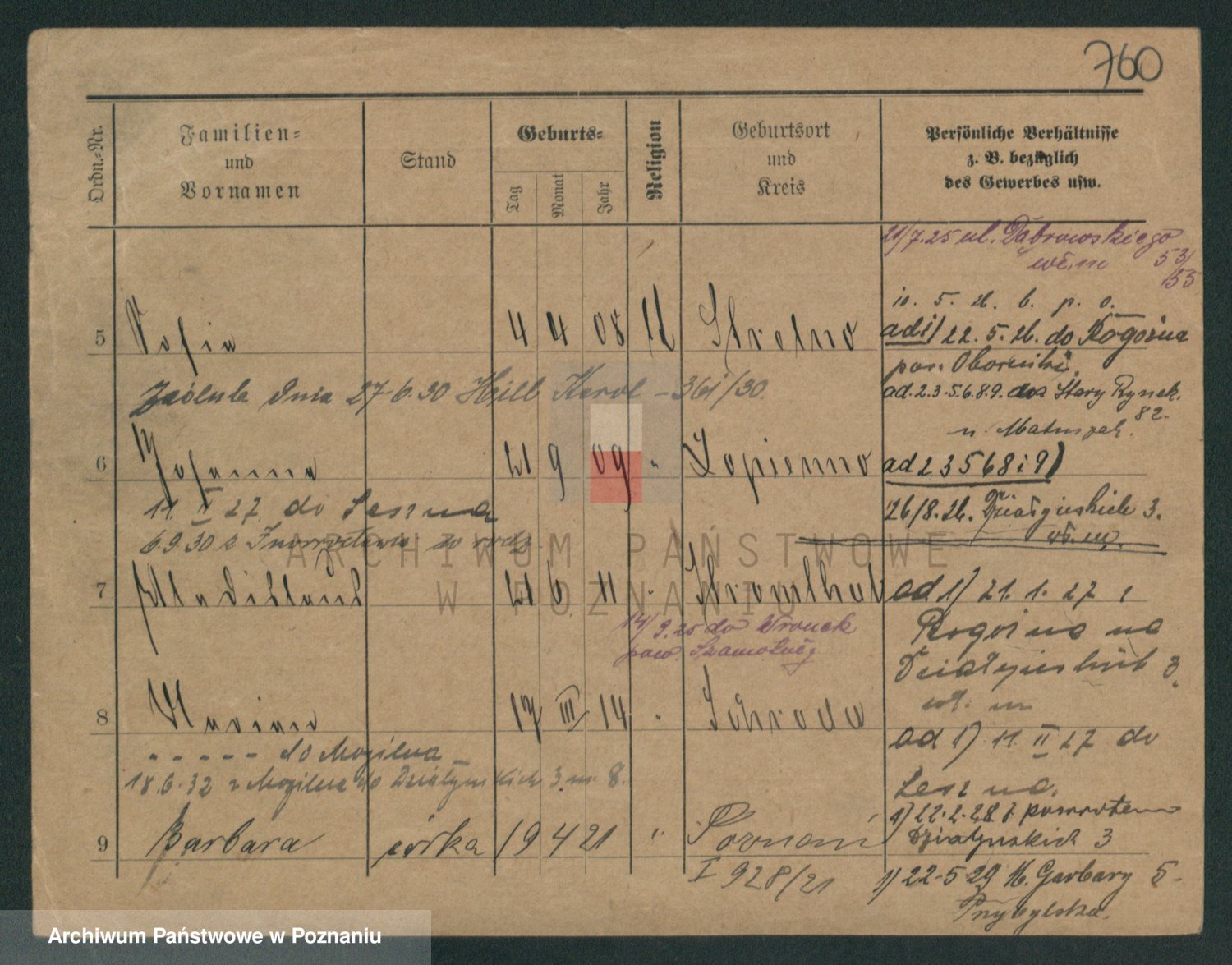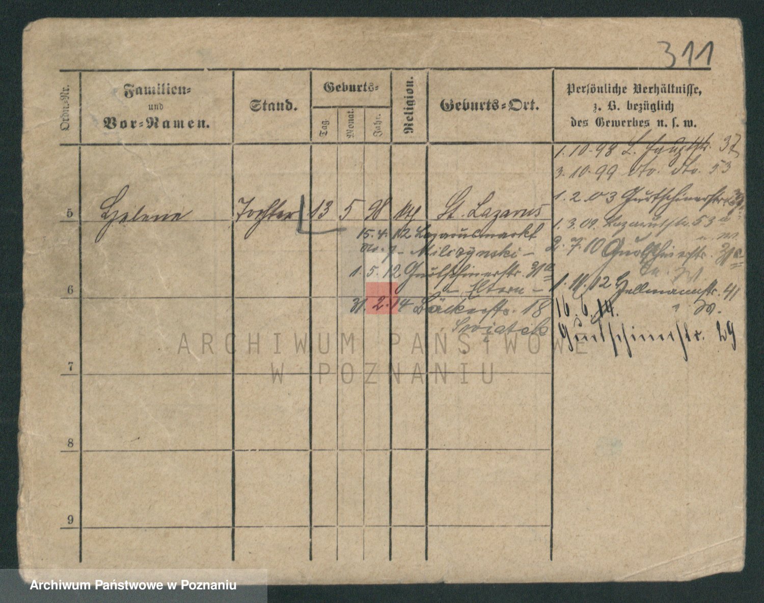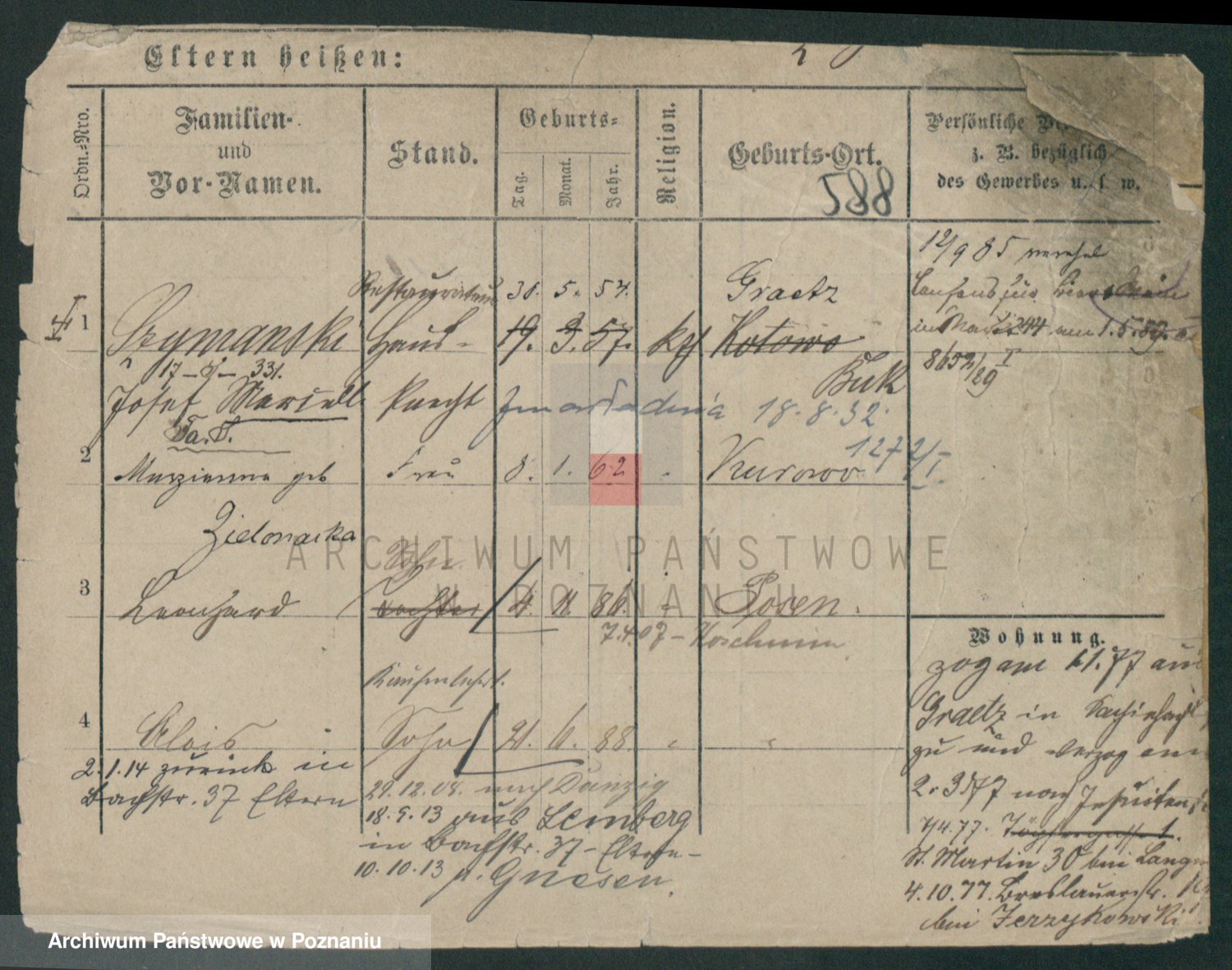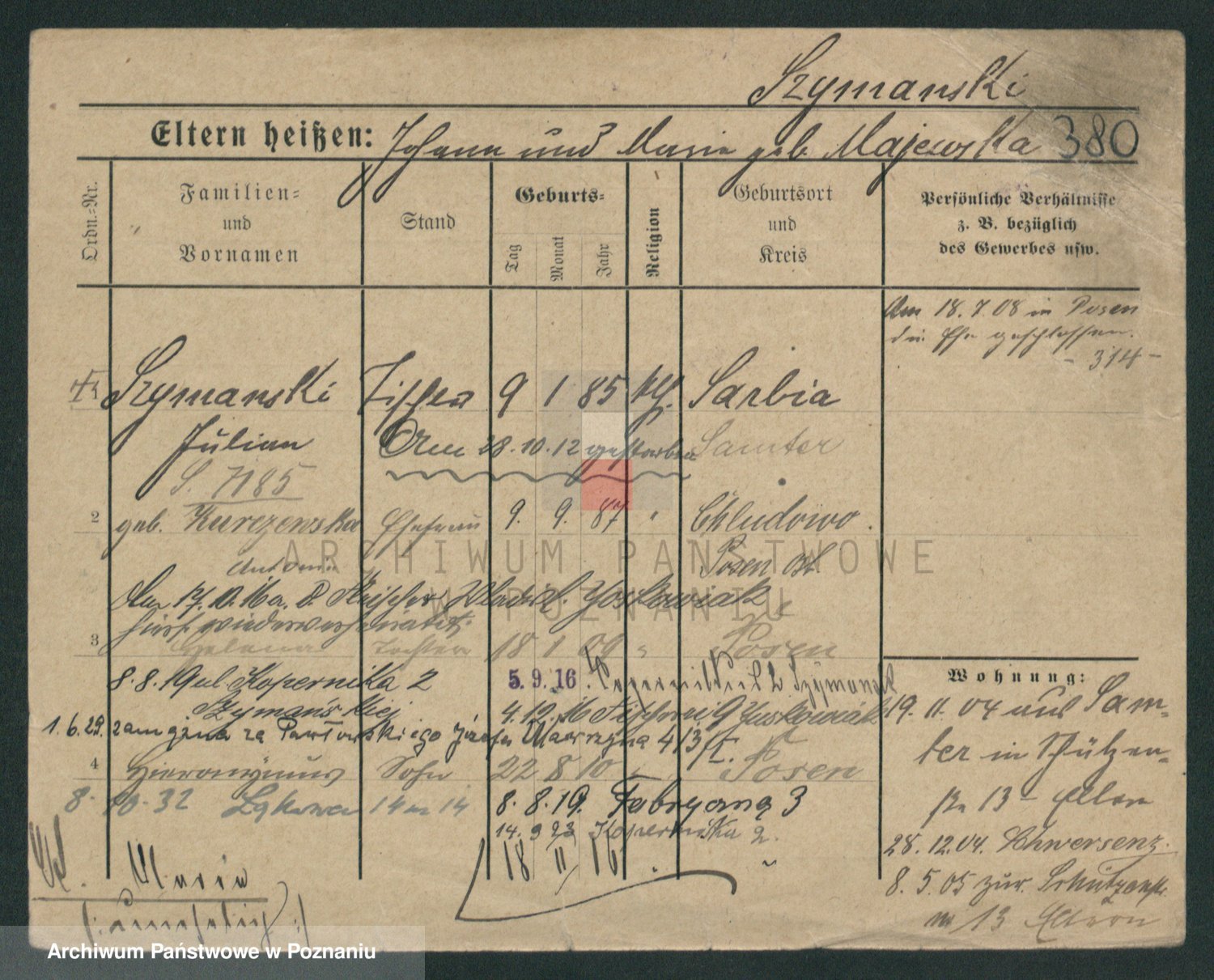 Podgląd karty osobowej dostępny jest po kliknięciu na nazwisko lub ikonkę karty. Można dokonywać powiększenia (ikony na górze) lub przechodzić między kolejnymi skanami (strzałki po bokach).