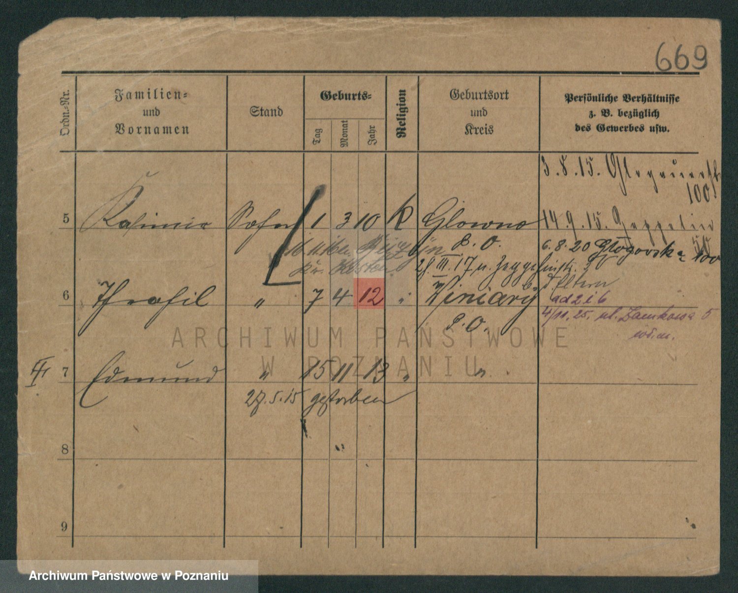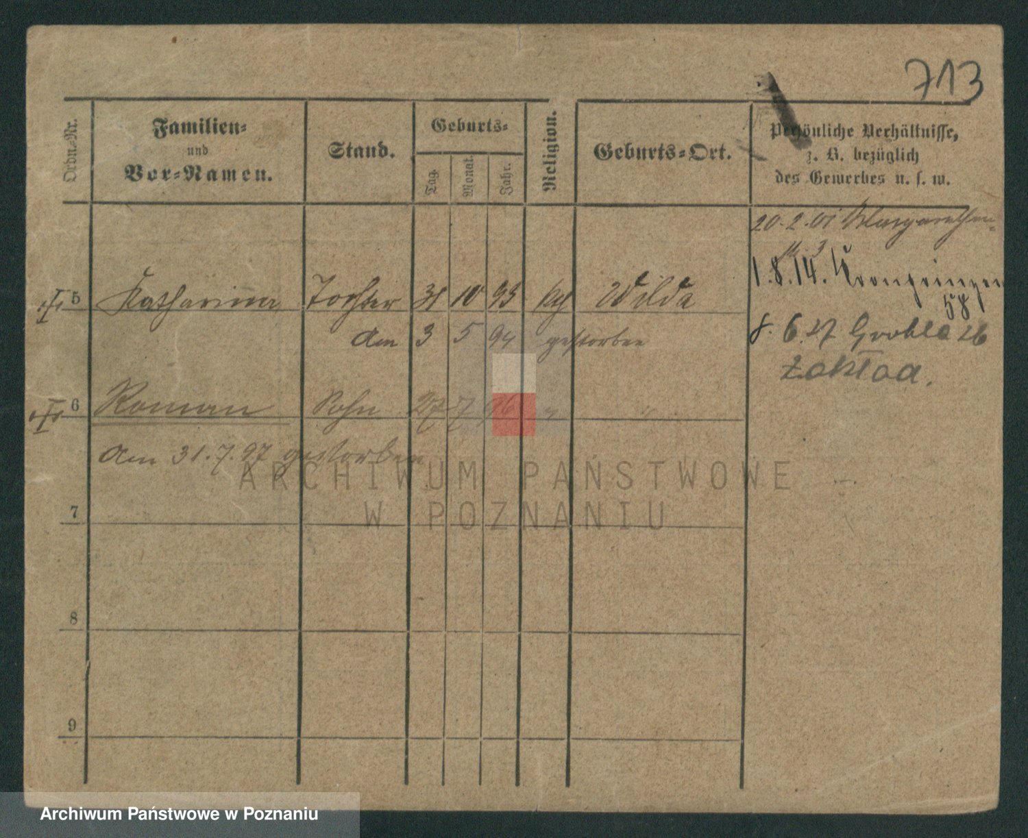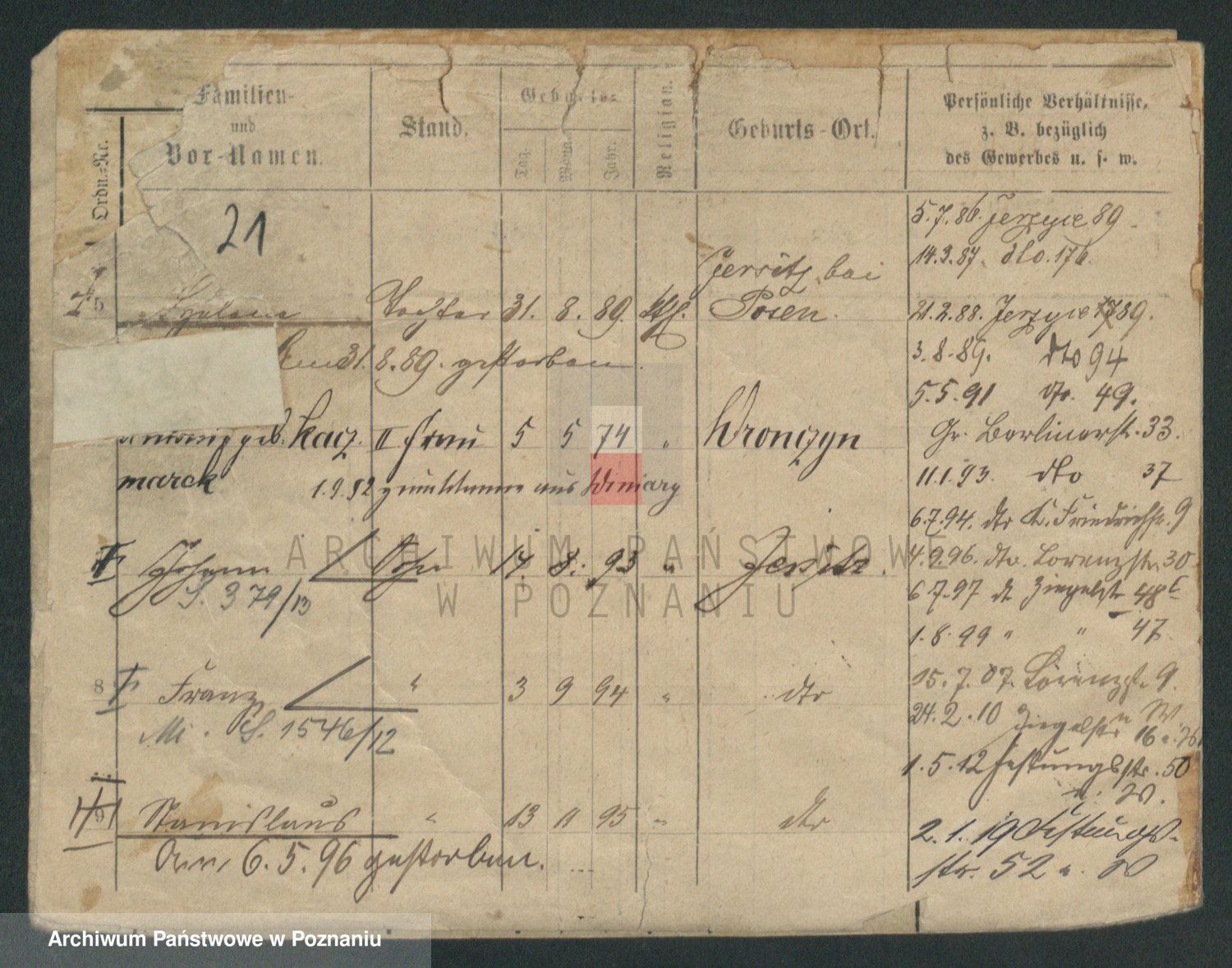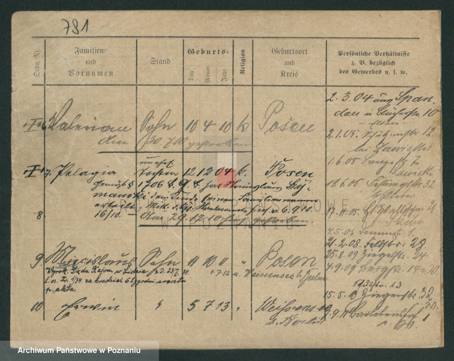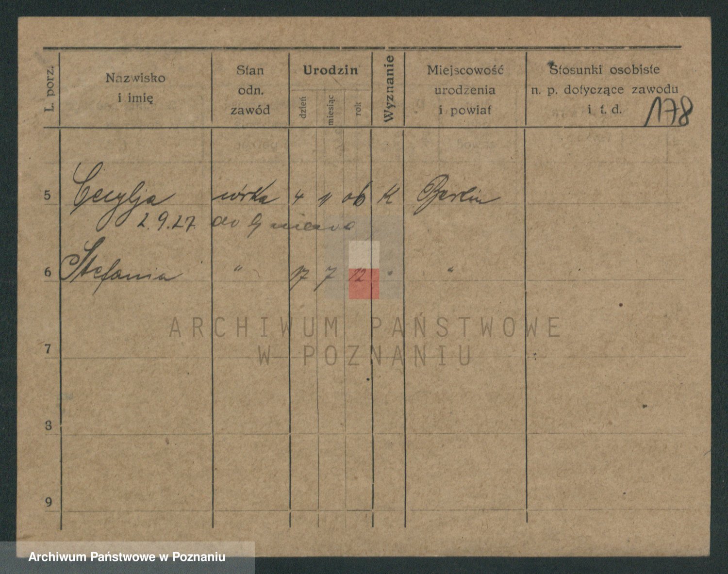 Podgląd karty osobowej dostępny jest po kliknięciu na nazwisko lub ikonkę karty. Można dokonywać powiększenia (ikony na górze) lub przechodzić między kolejnymi skanami (strzałki po bokach).
