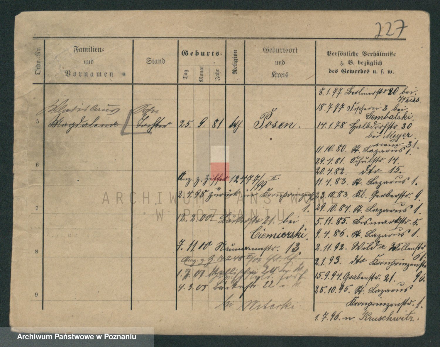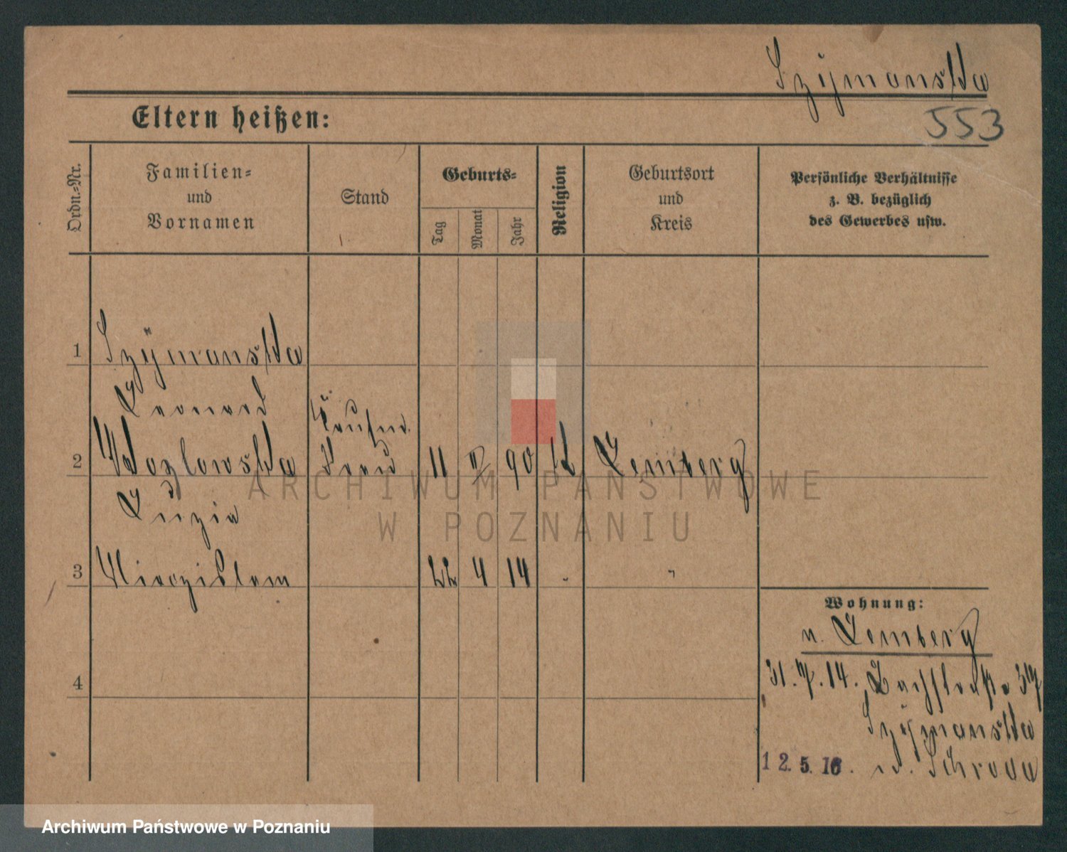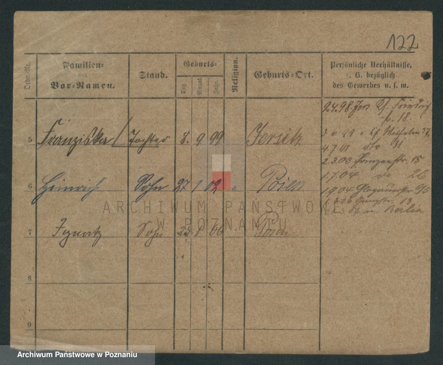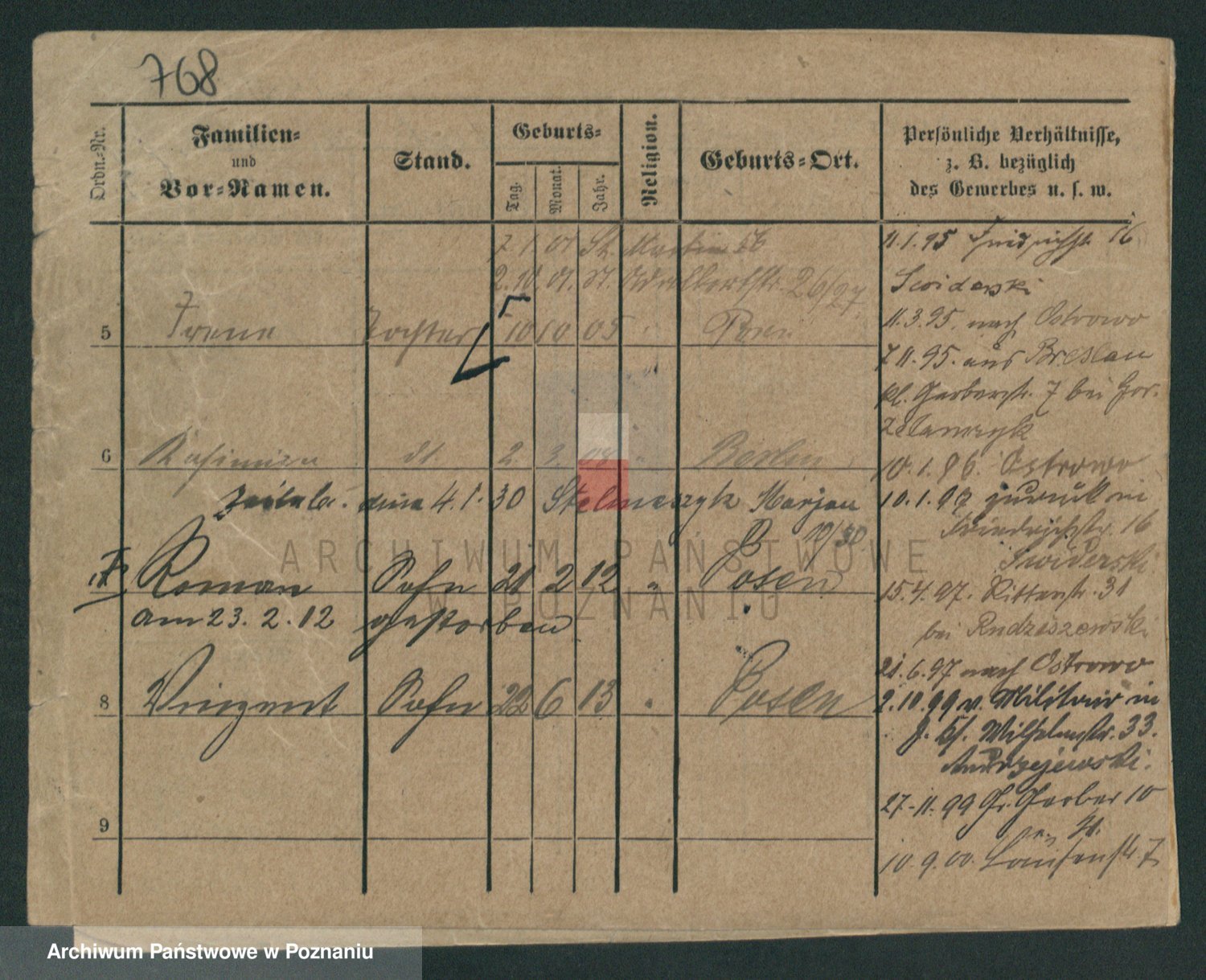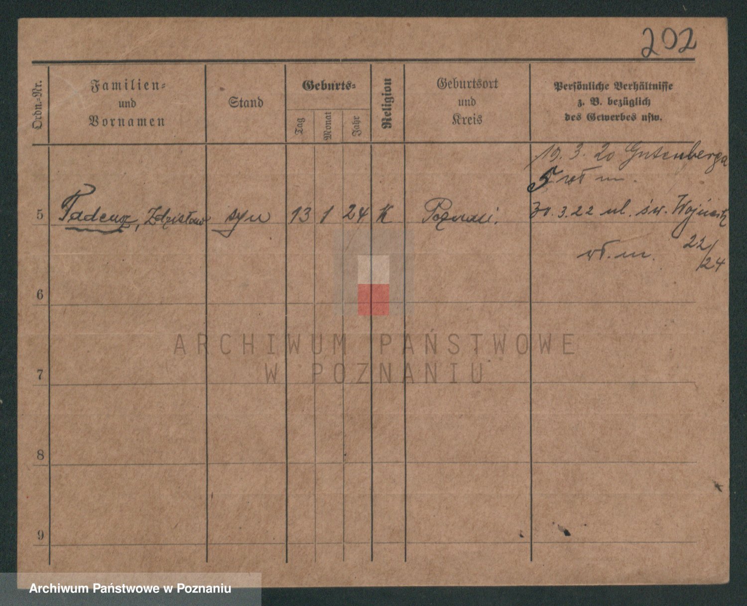 Podgląd karty osobowej dostępny jest po kliknięciu na nazwisko lub ikonkę karty. Można dokonywać powiększenia (ikony na górze) lub przechodzić między kolejnymi skanami (strzałki po bokach).