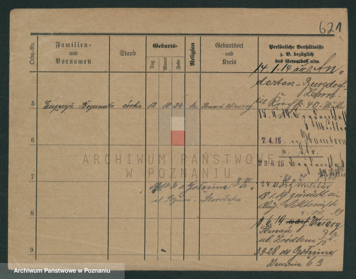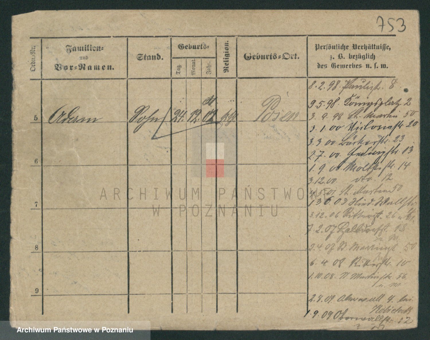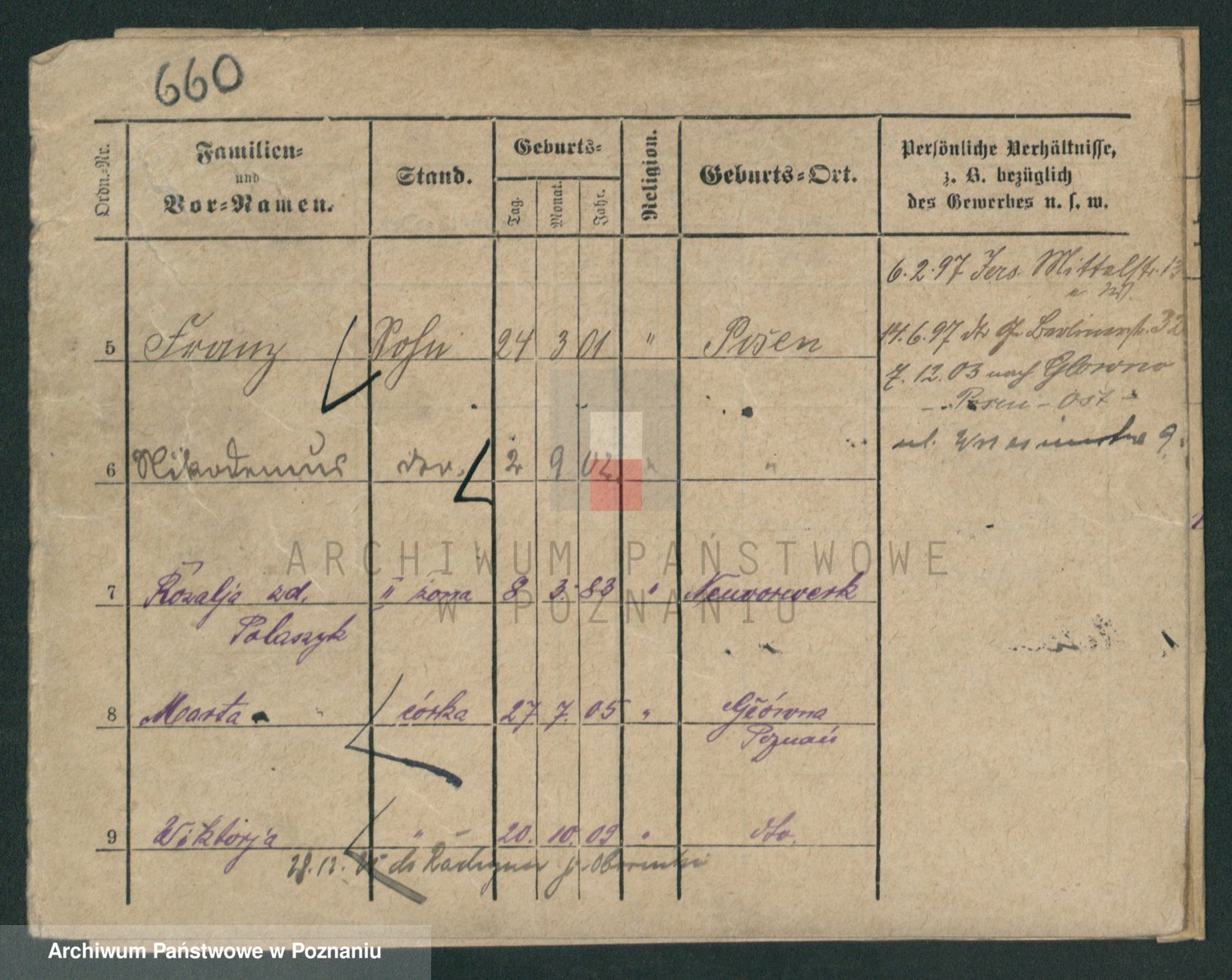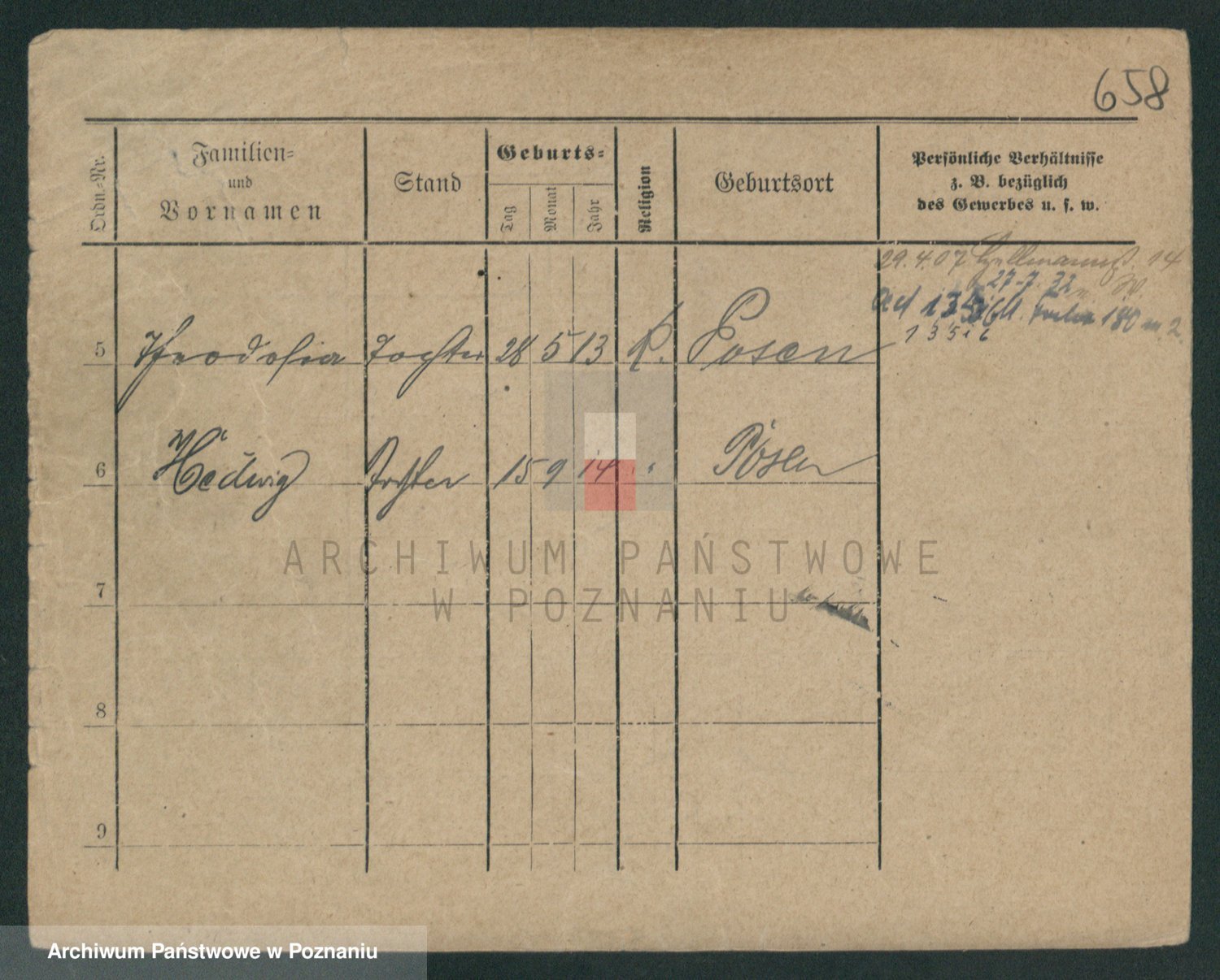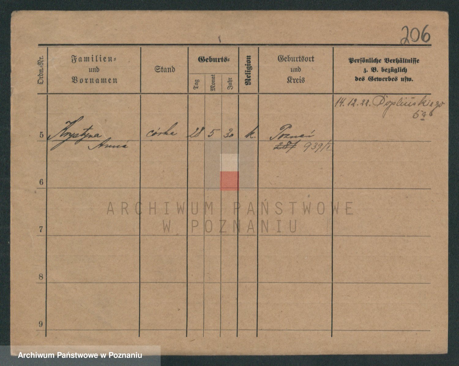 Podgląd karty osobowej dostępny jest po kliknięciu na nazwisko lub ikonkę karty. Można dokonywać powiększenia (ikony na górze) lub przechodzić między kolejnymi skanami (strzałki po bokach).