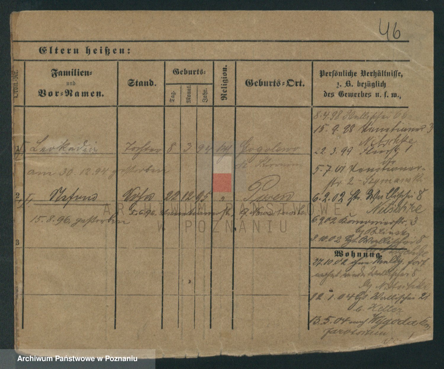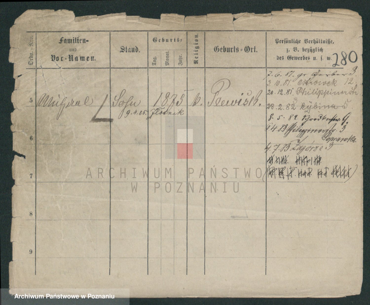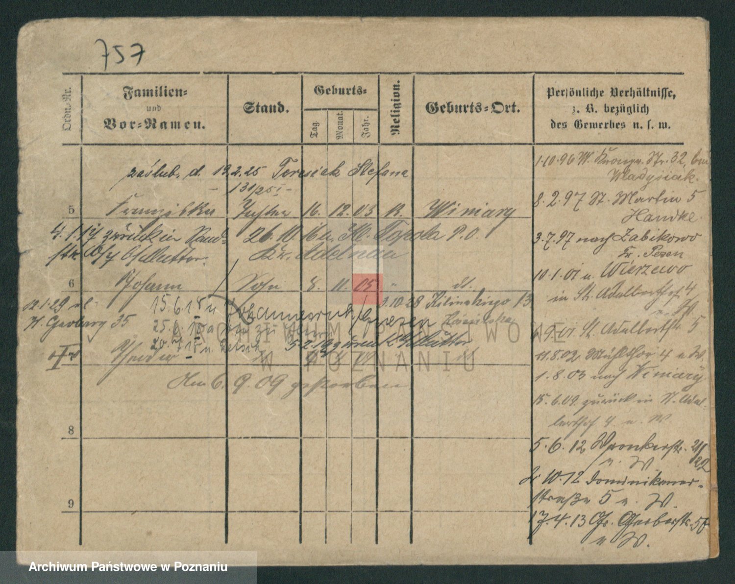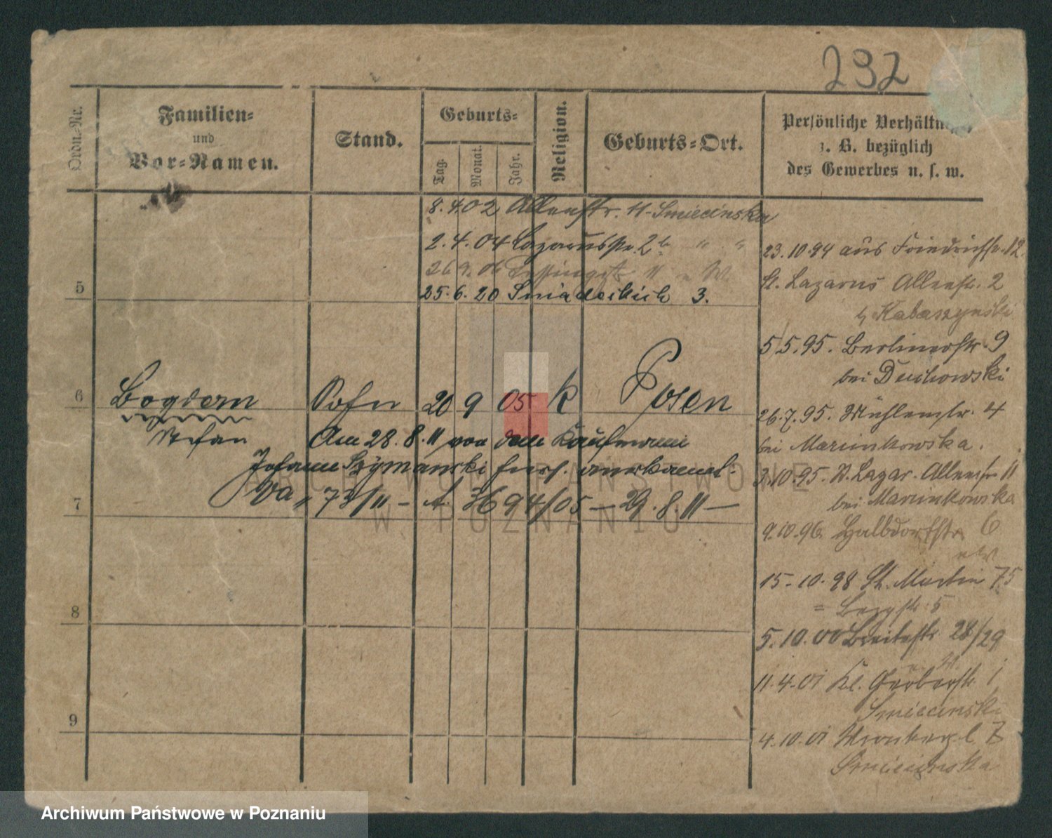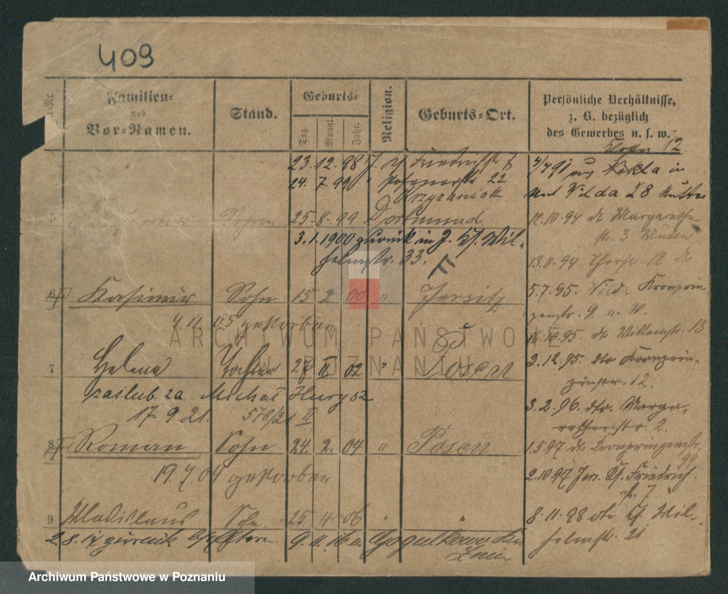 Podgląd karty osobowej dostępny jest po kliknięciu na nazwisko lub ikonkę karty. Można dokonywać powiększenia (ikony na górze) lub przechodzić między kolejnymi skanami (strzałki po bokach).